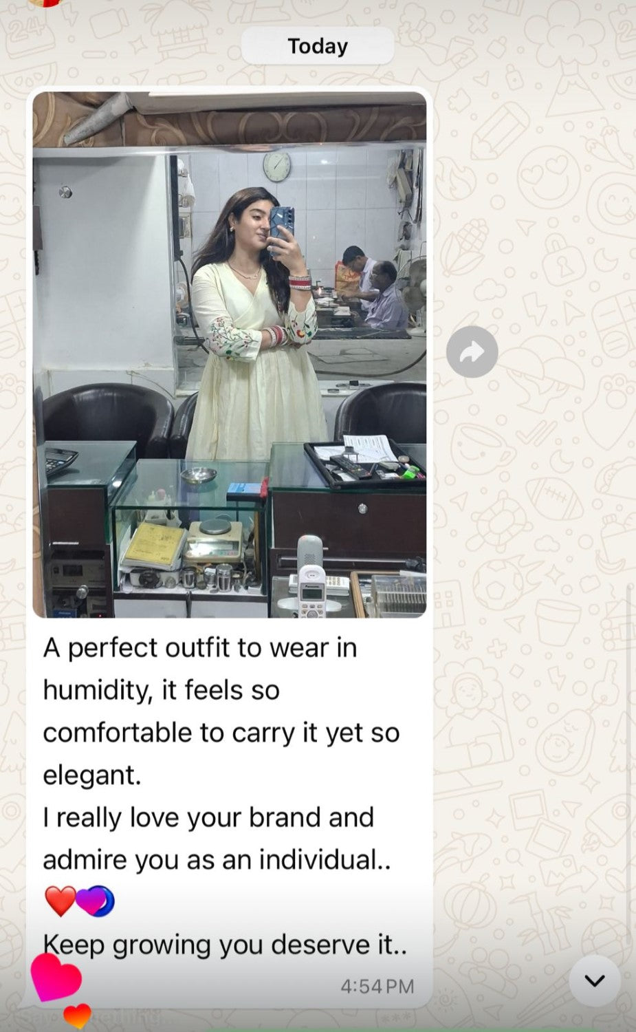 Hello, Recieved all the beautiful and amazing collections. Really iam a big fan of ur embroidery Kurtis that's why couldn't control from buying this elegant pieces. Thanks a lot dear.