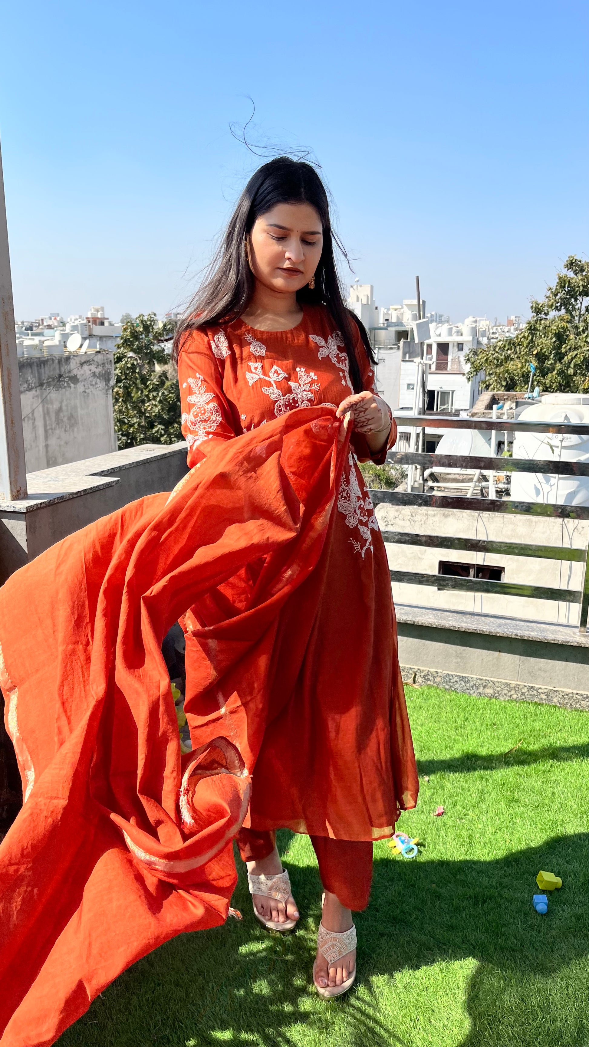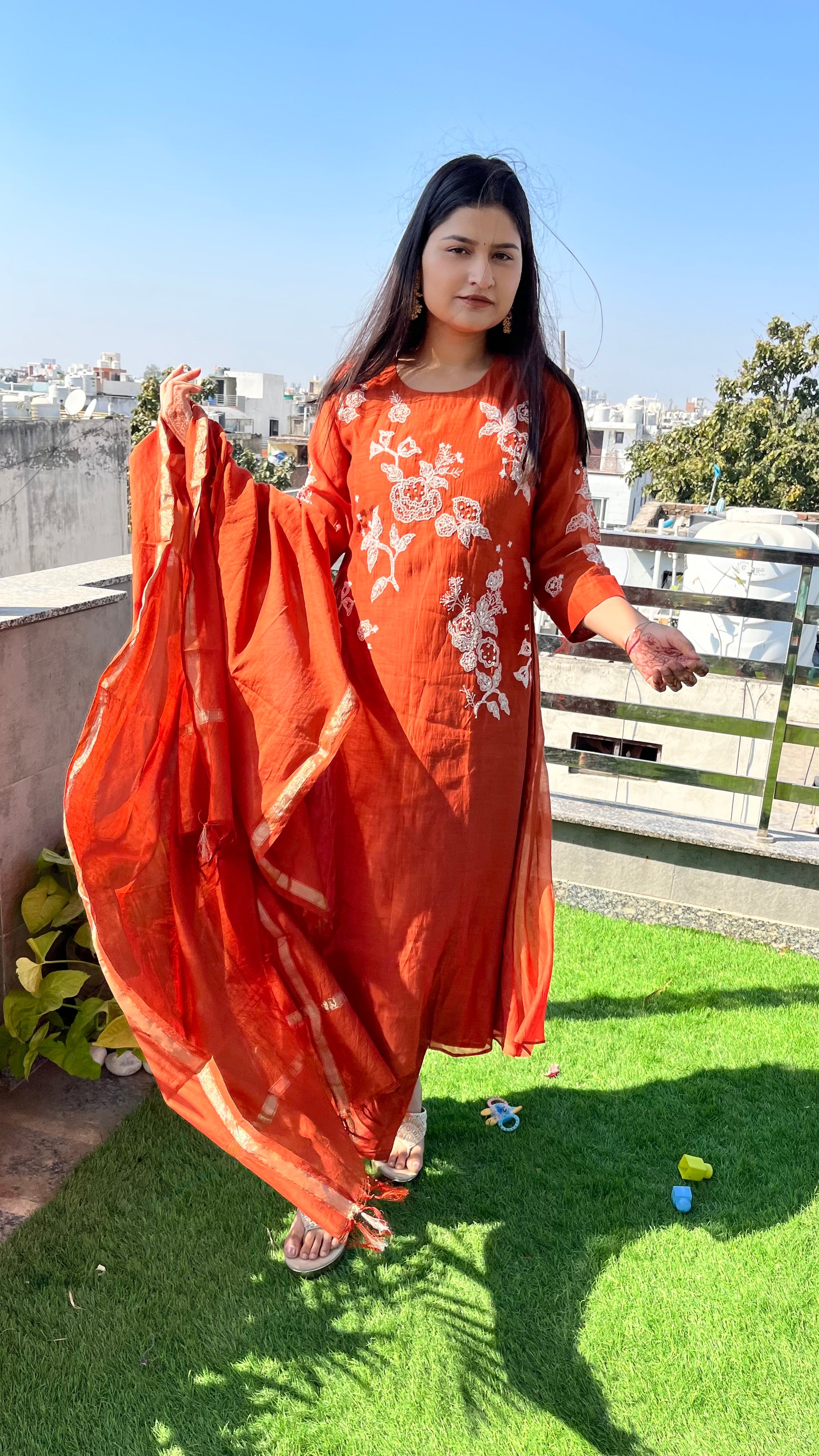 - The set includes a lined kurta, matching pants, and a complementing dupatta, making it an ideal choice for festive and casual occasions.