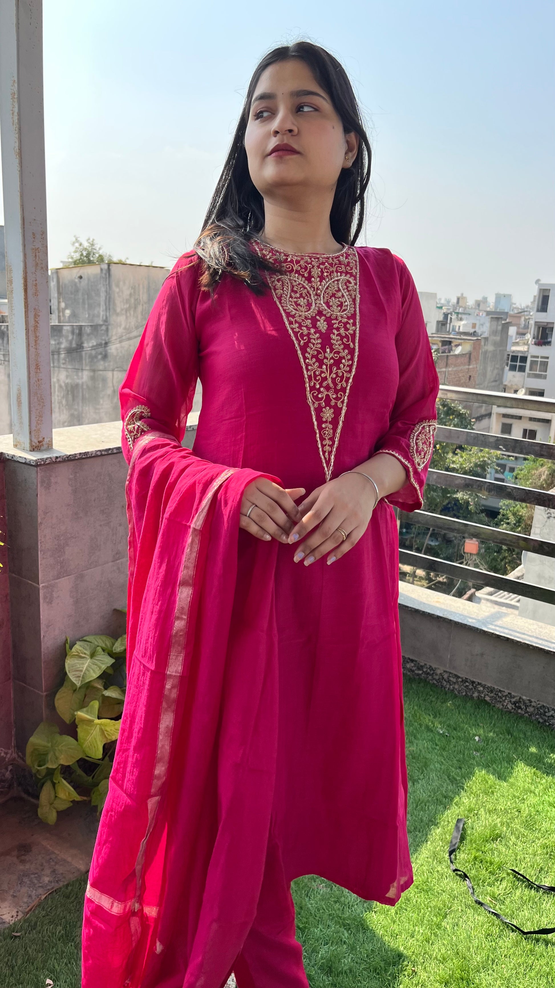 - The set includes a lined kurta, matching pants, and a complementing dupatta, making it an ideal choice for festive and casual occasions.