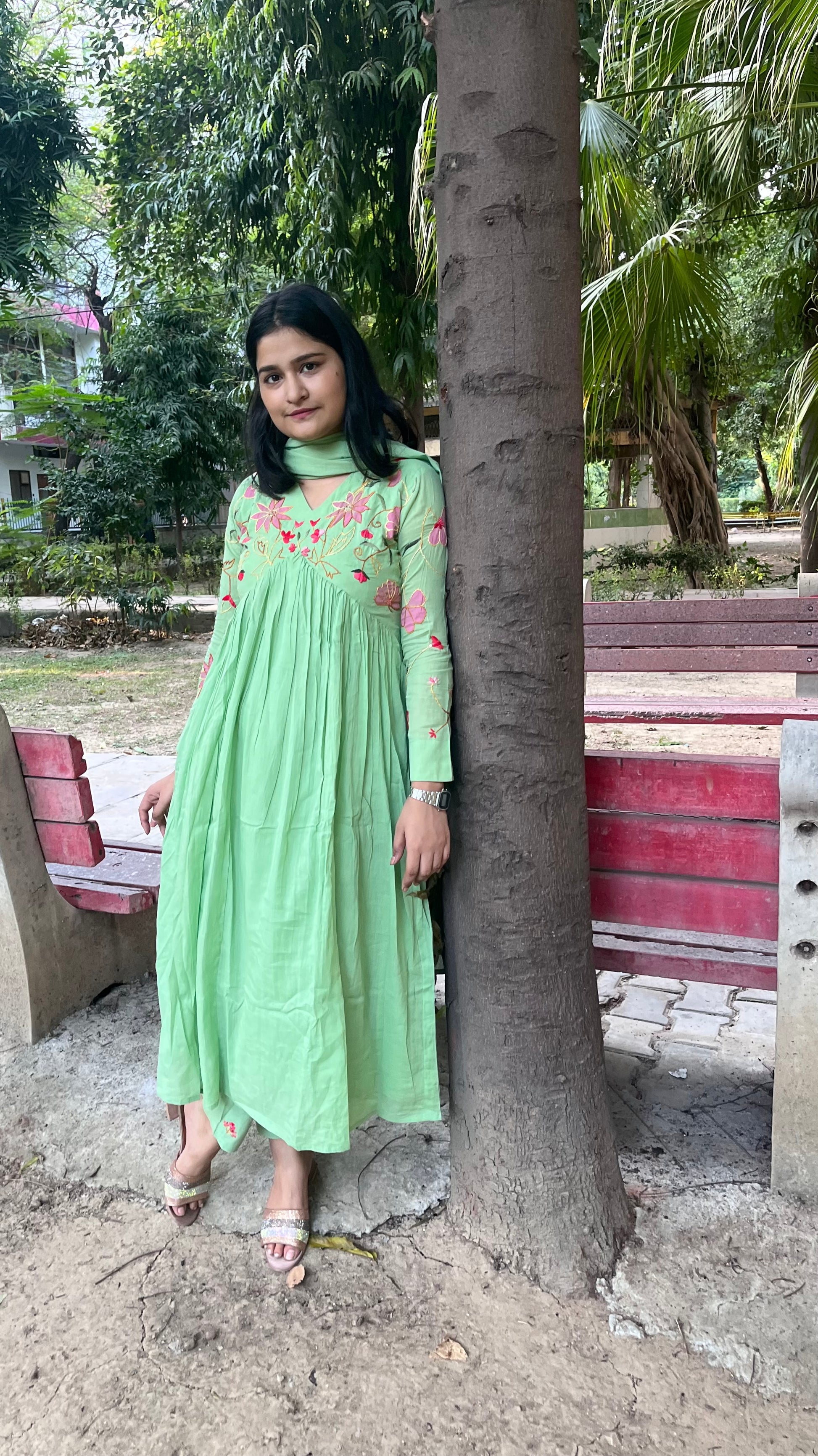 - The exquisite hand embroidery adorns the sleeves, yoke, bottom of the pants, and dupatta