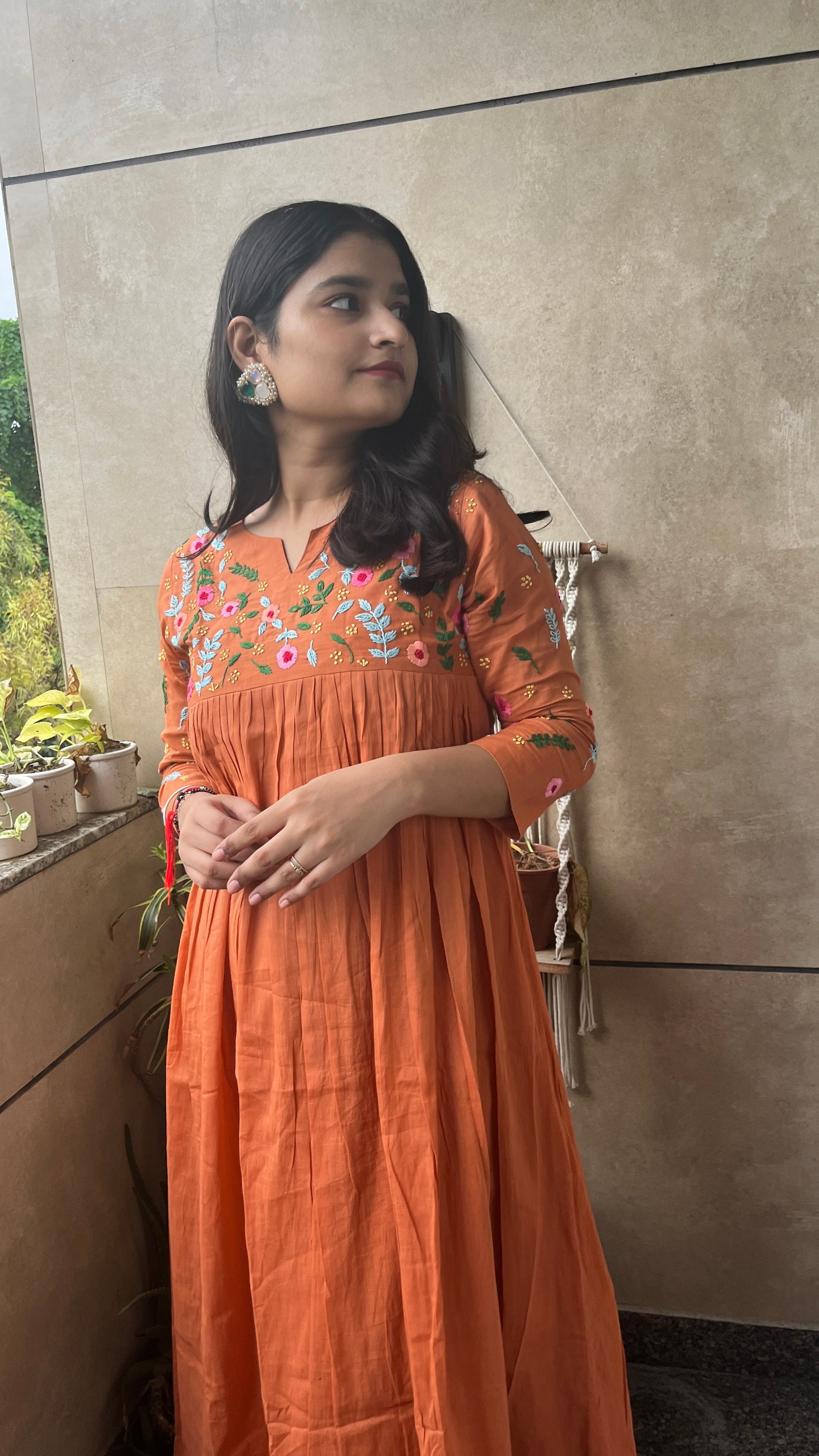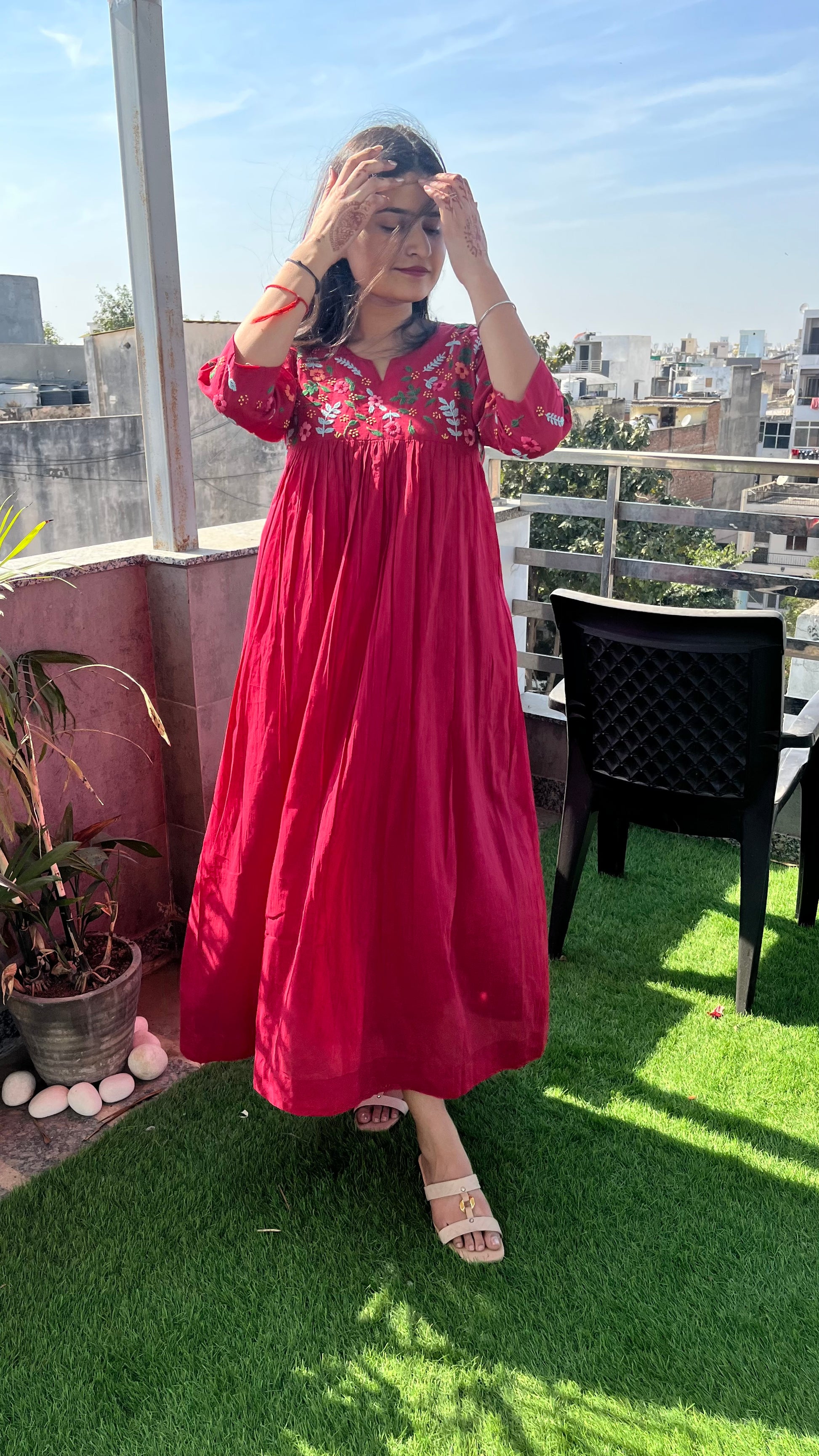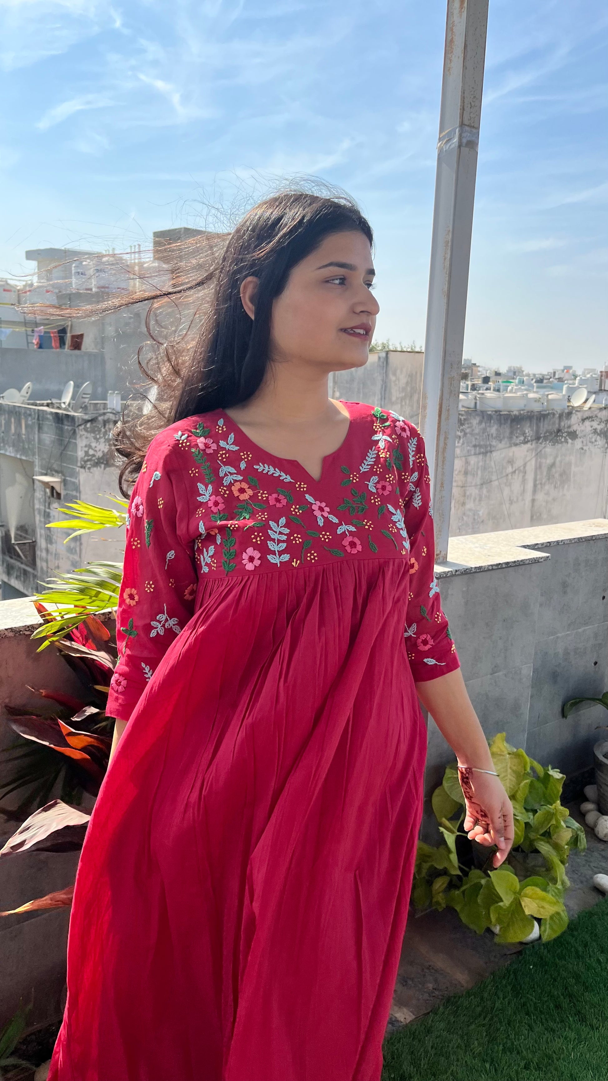 - The vibrant floral hand embroidery on the yoke and sleeves enhance its feminine charm, making it a perfect choice for casual outings or festive occasions