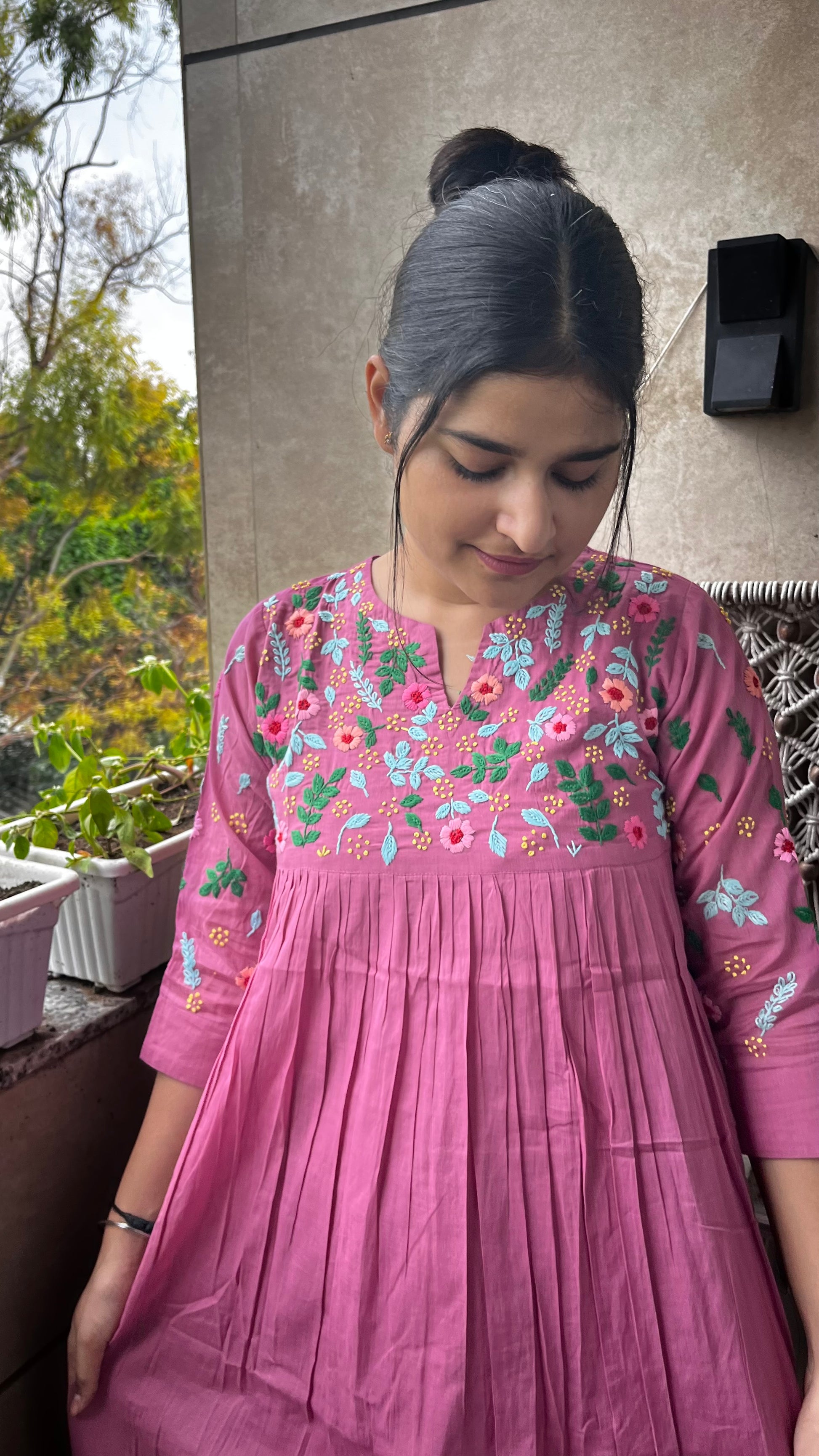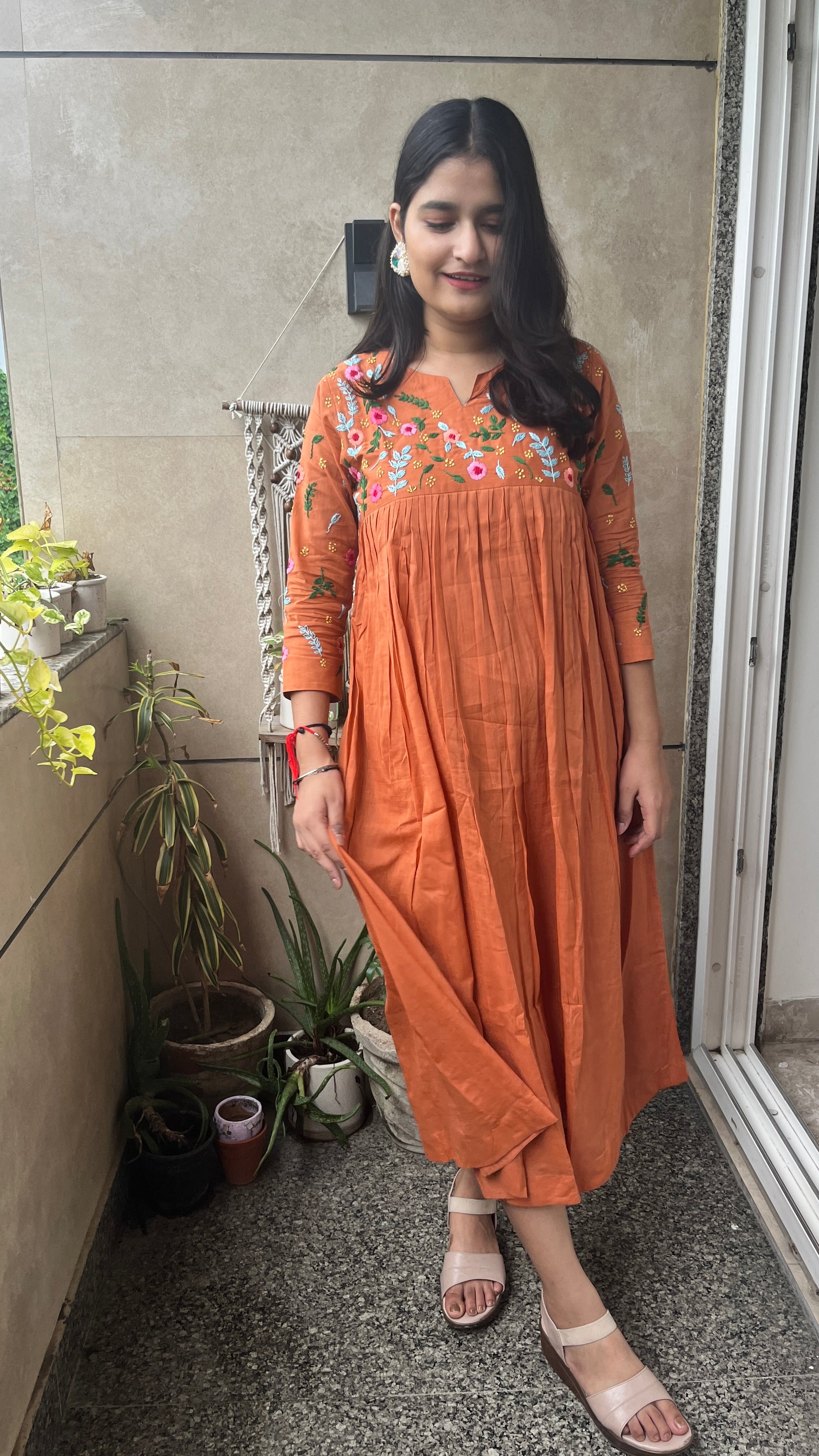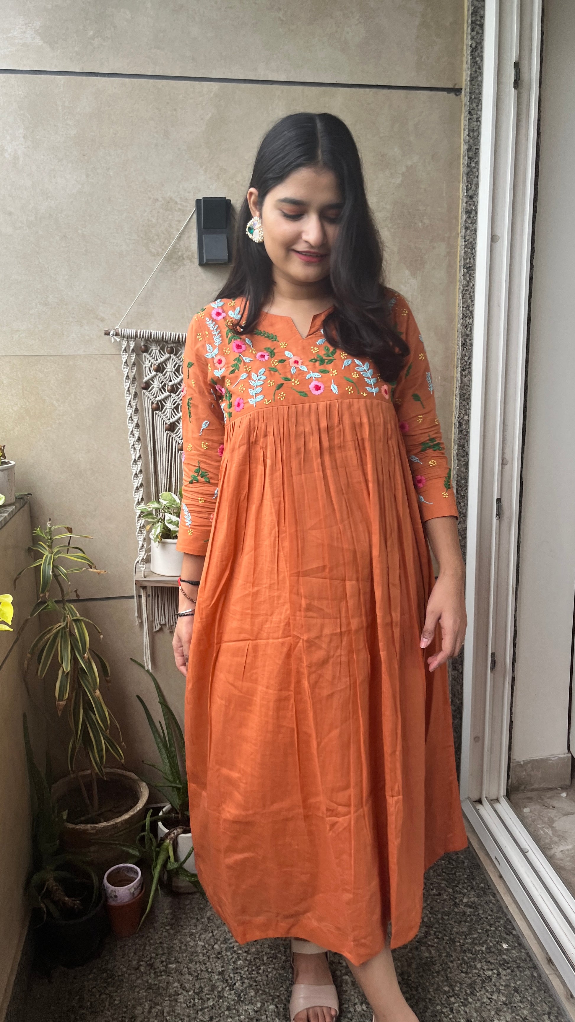 - The vibrant floral hand embroidery on the yoke and sleeves enhance its feminine charm, making it a perfect choice for casual outings or festive occasions