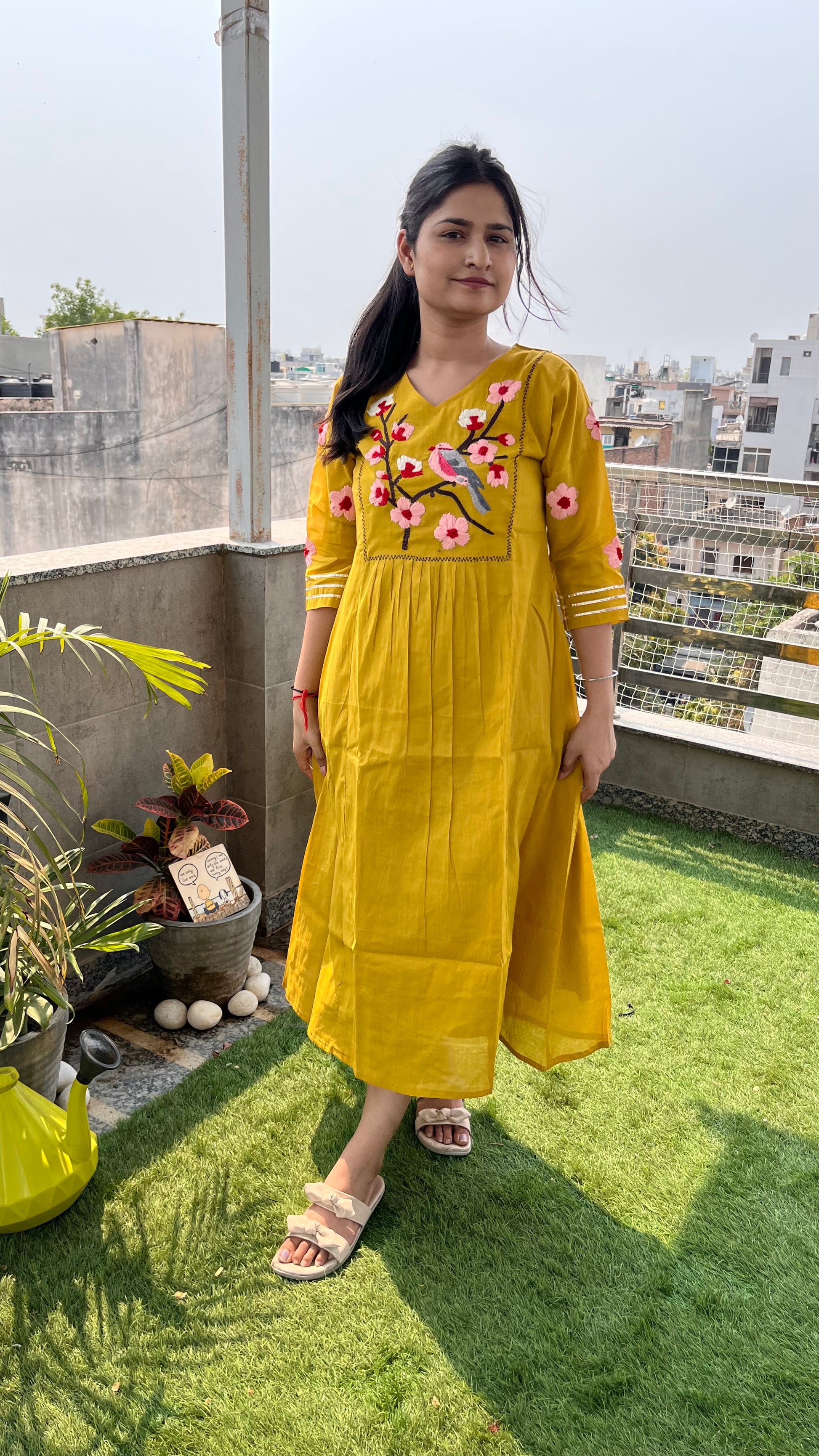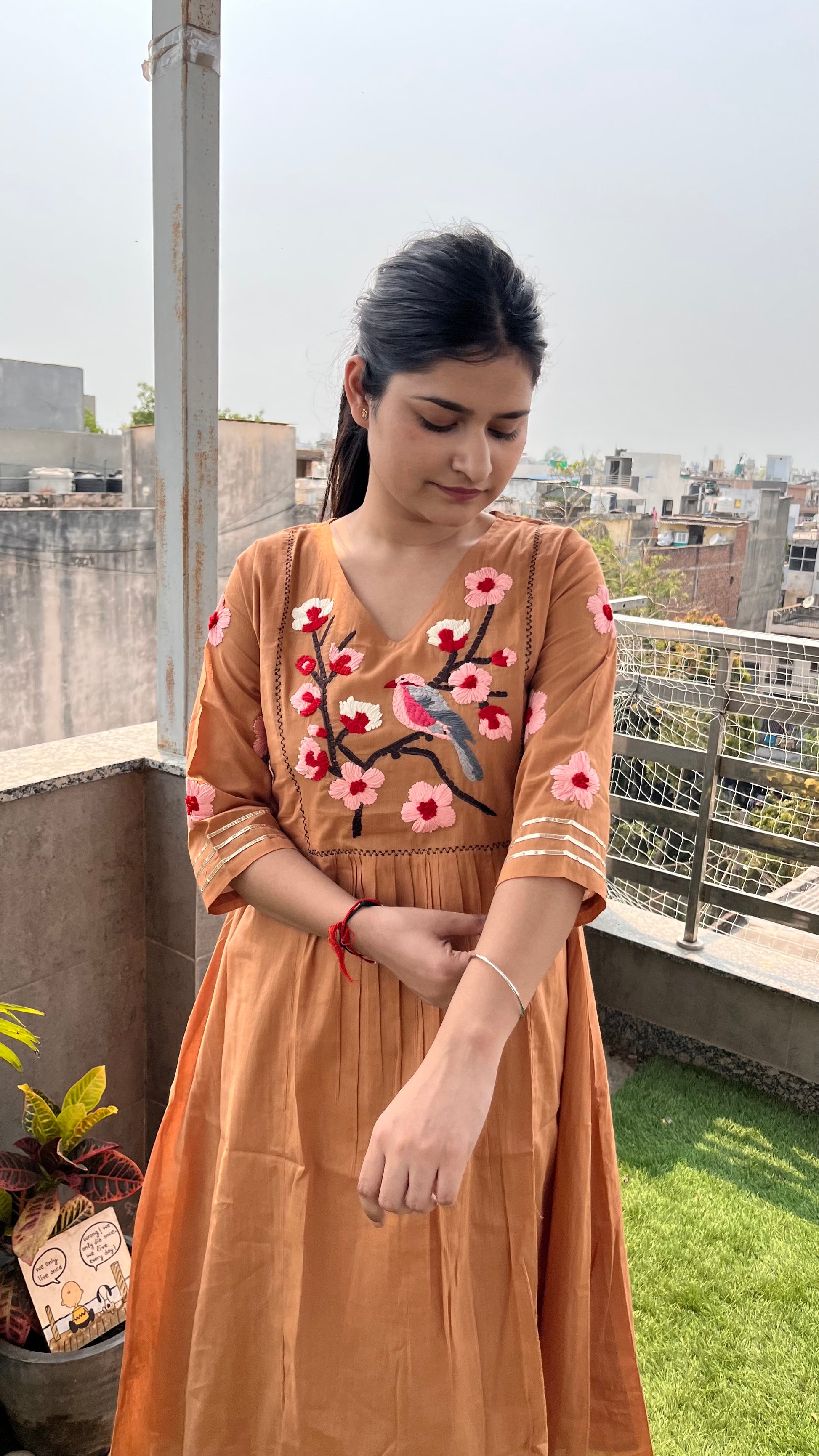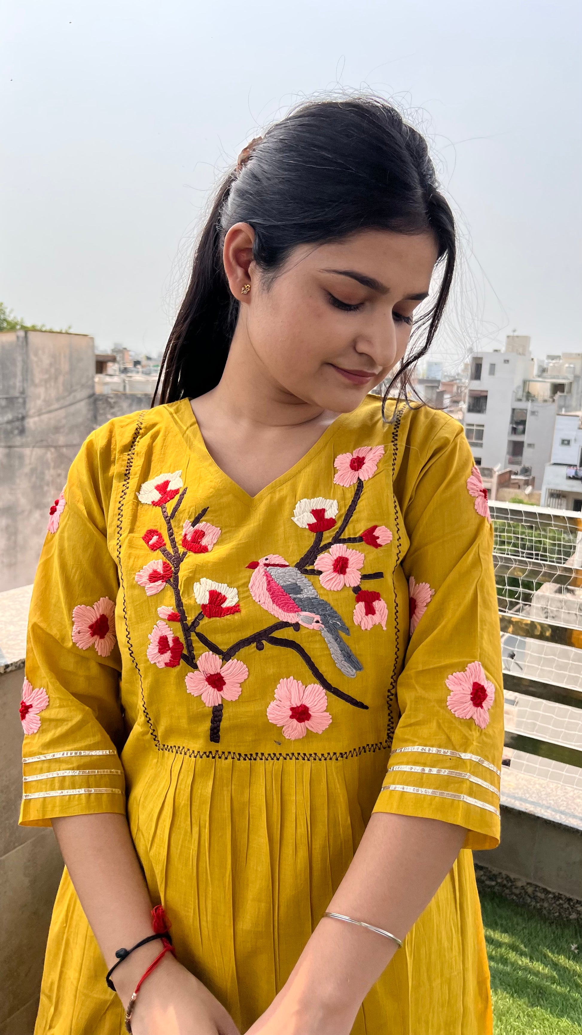 - The detailed hand embroidery with colorful floral patterns and birds detailing adds a touch of elegance.