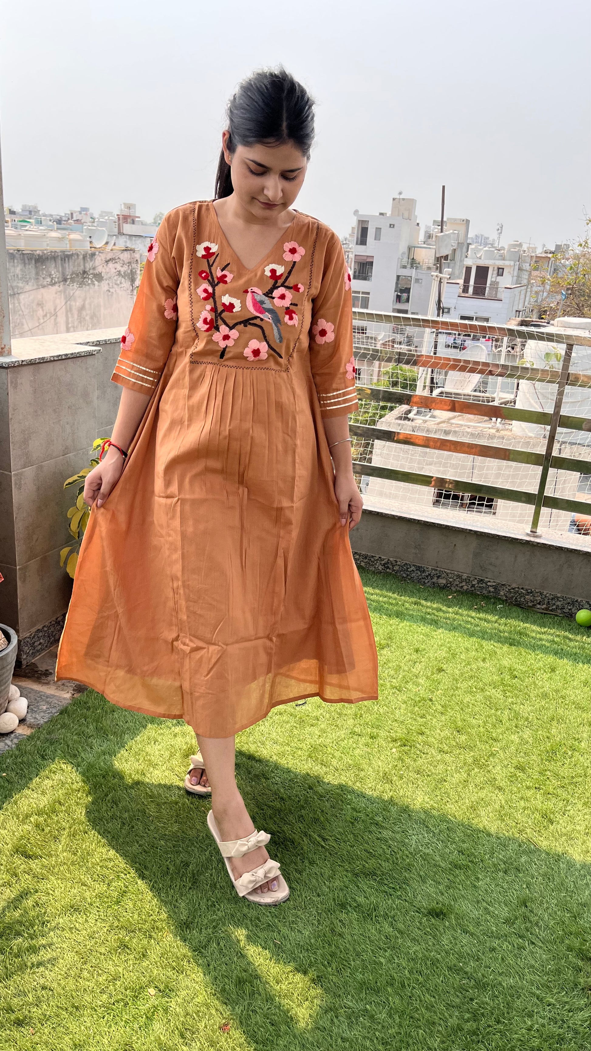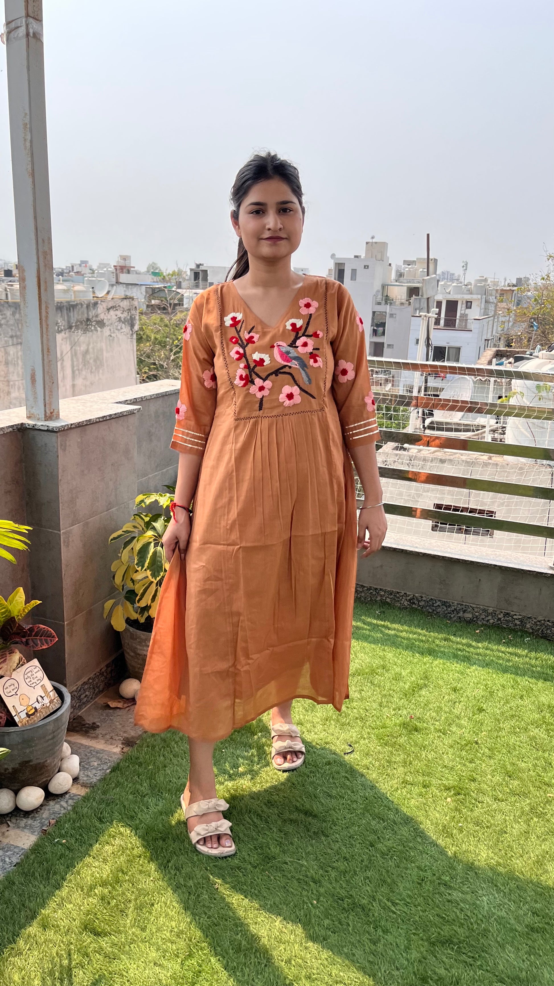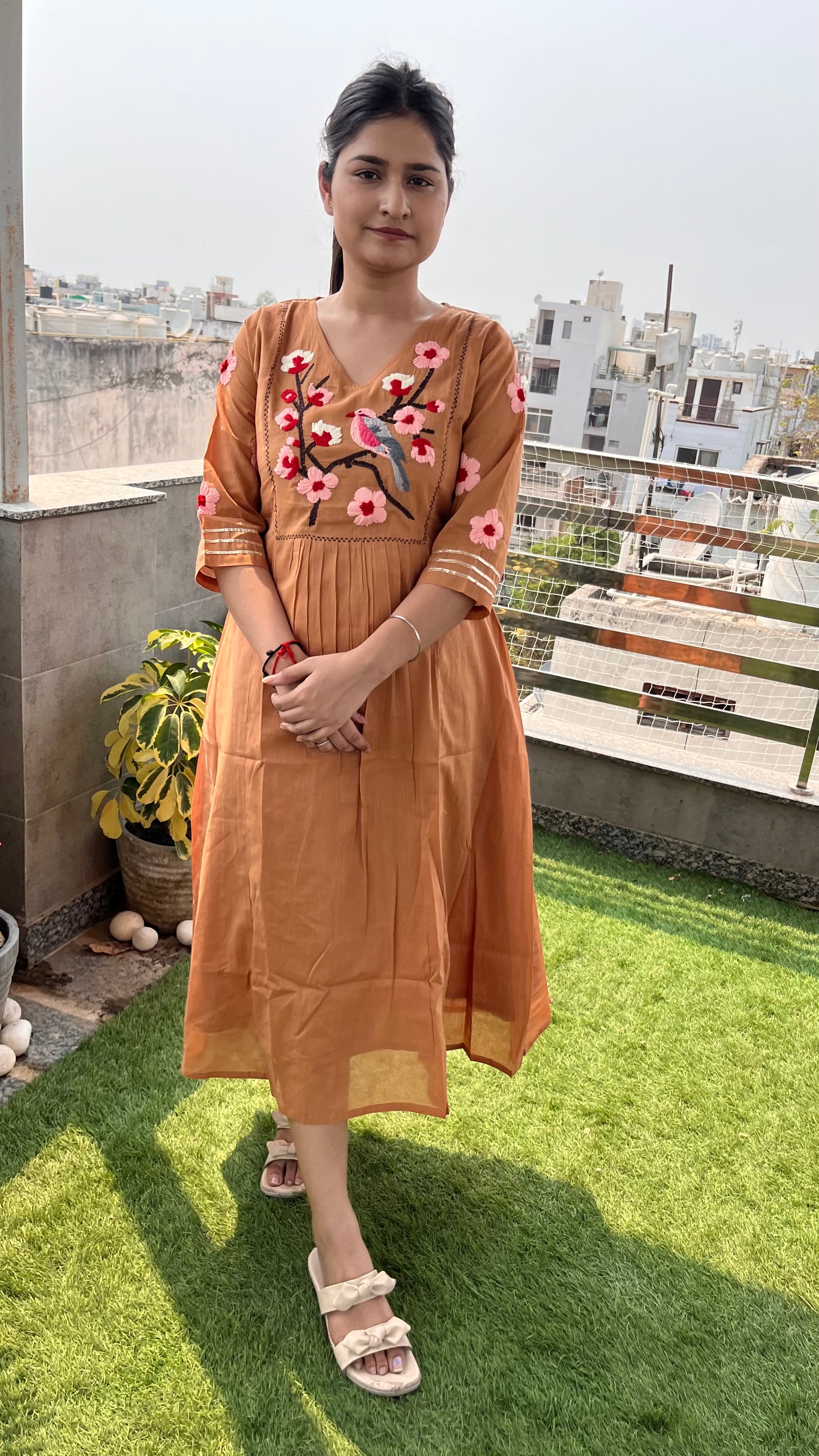 - The detailed hand embroidery with colorful floral patterns and birds detailing adds a touch of elegance.
