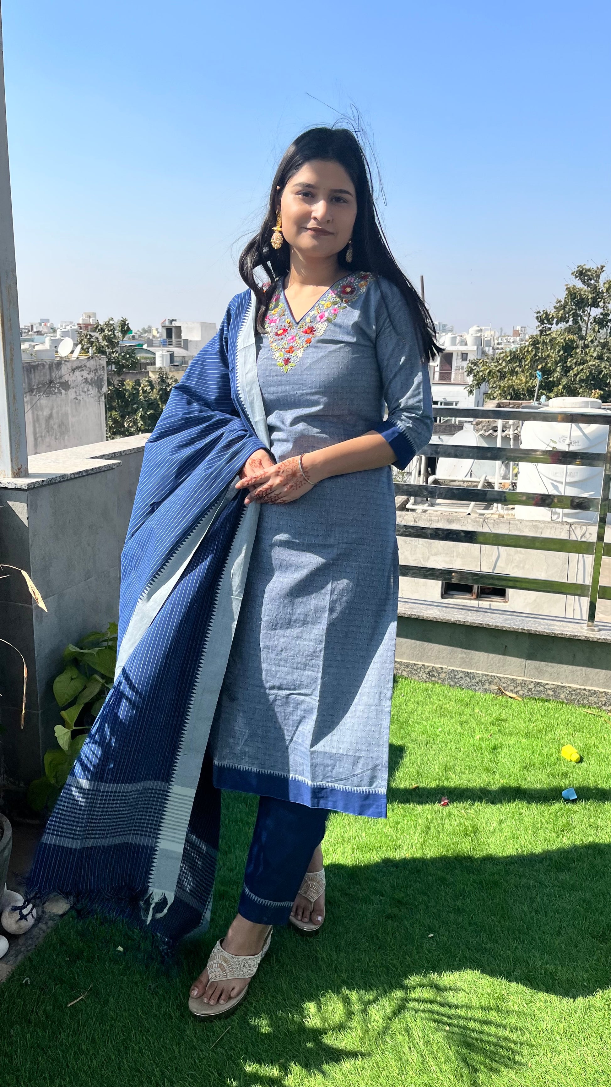 - The three-piece set, featuring a straight-cut kurta, pants, and a gracefully draped dupatta, ensures both comfort and style.