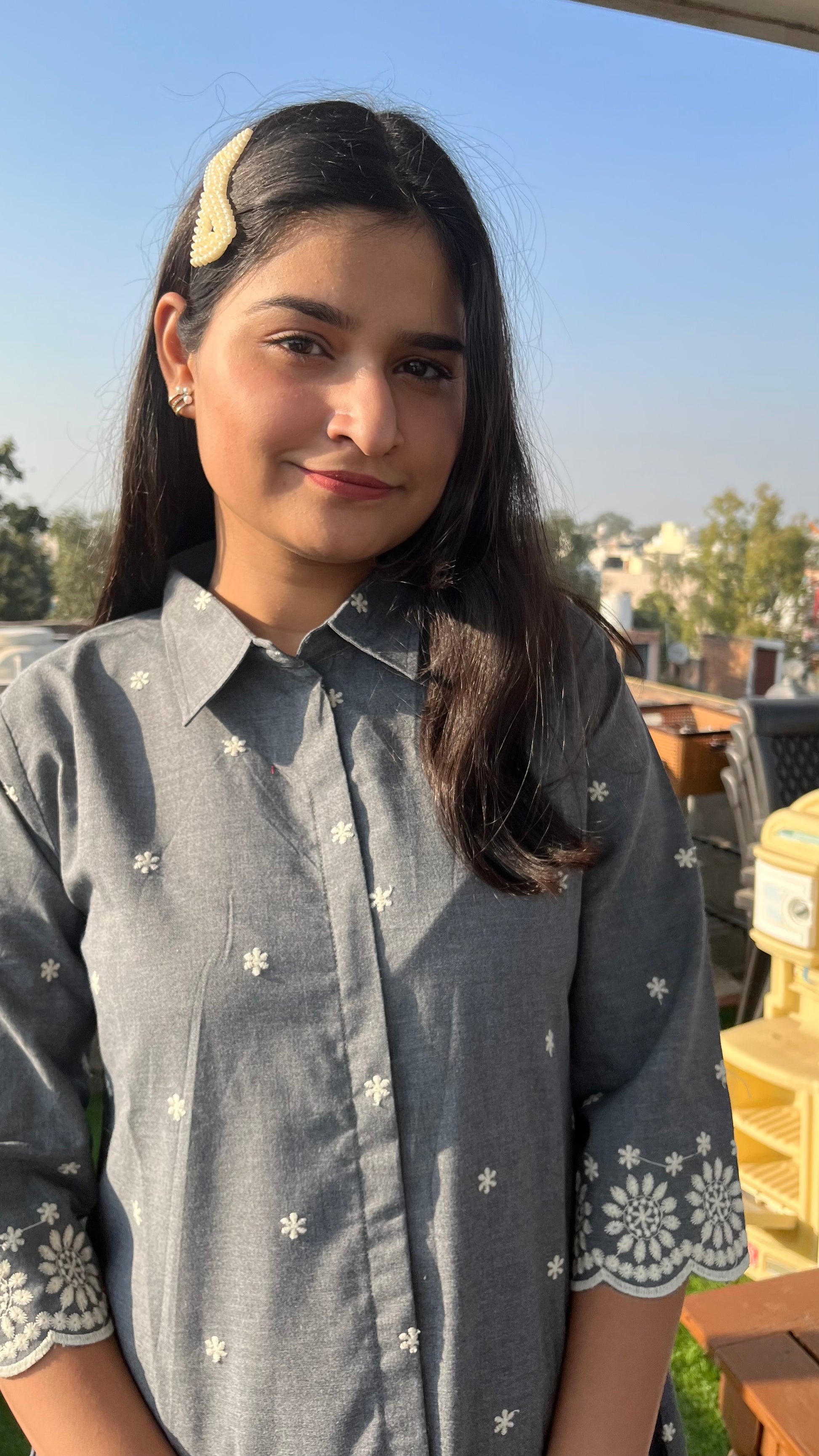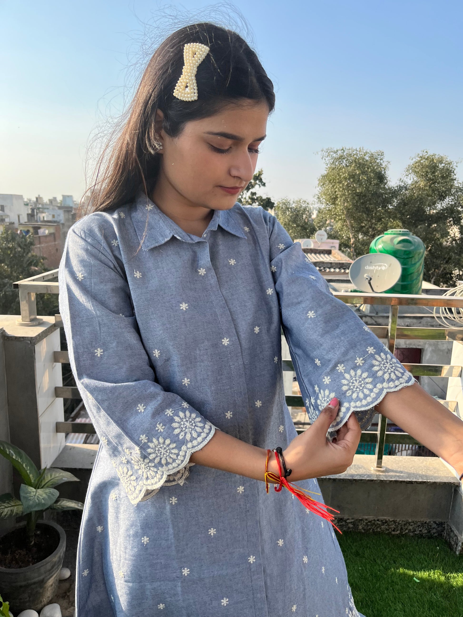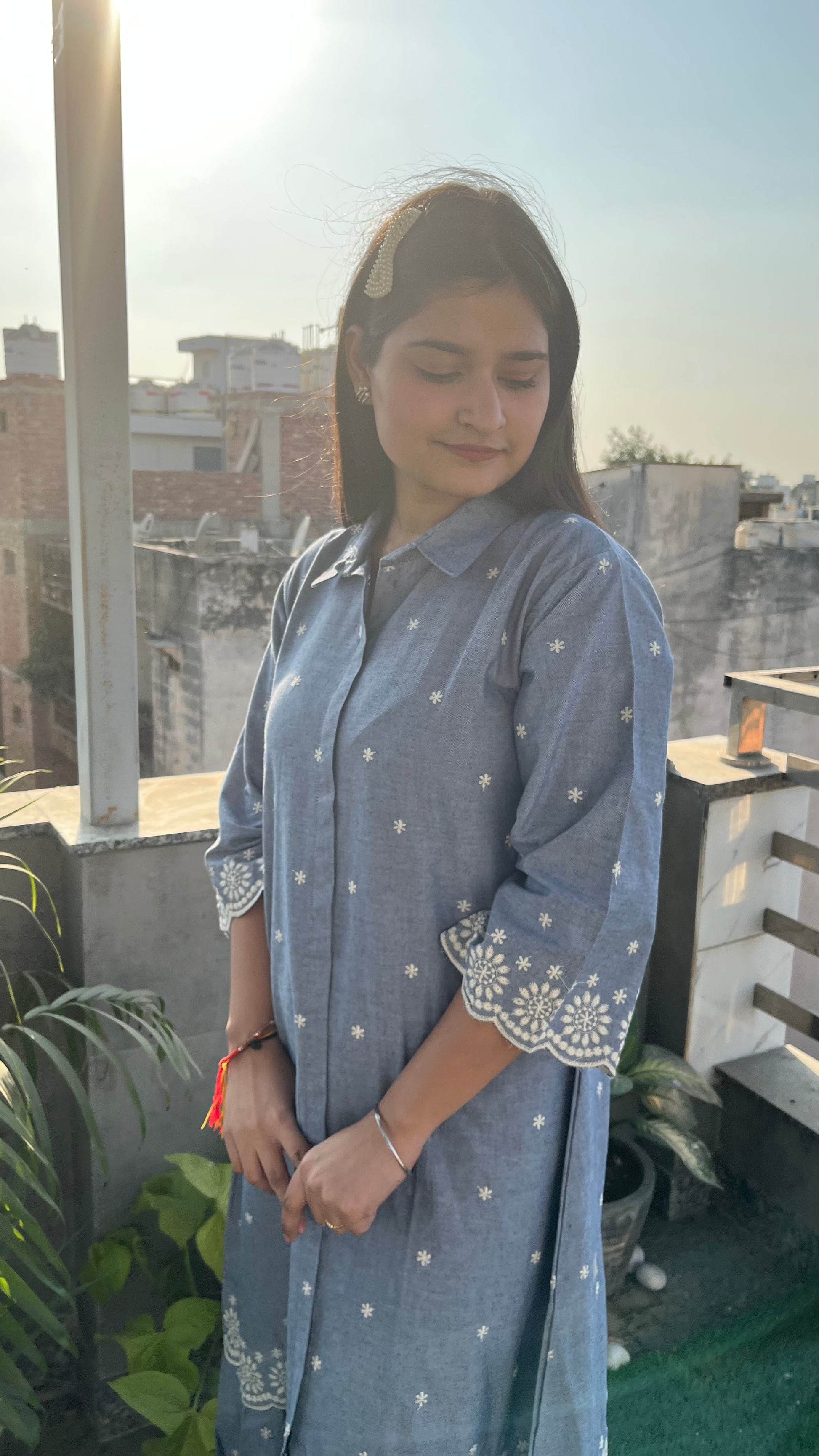 The dress features chikankari embroidery with very beautiful flared pattern in the end