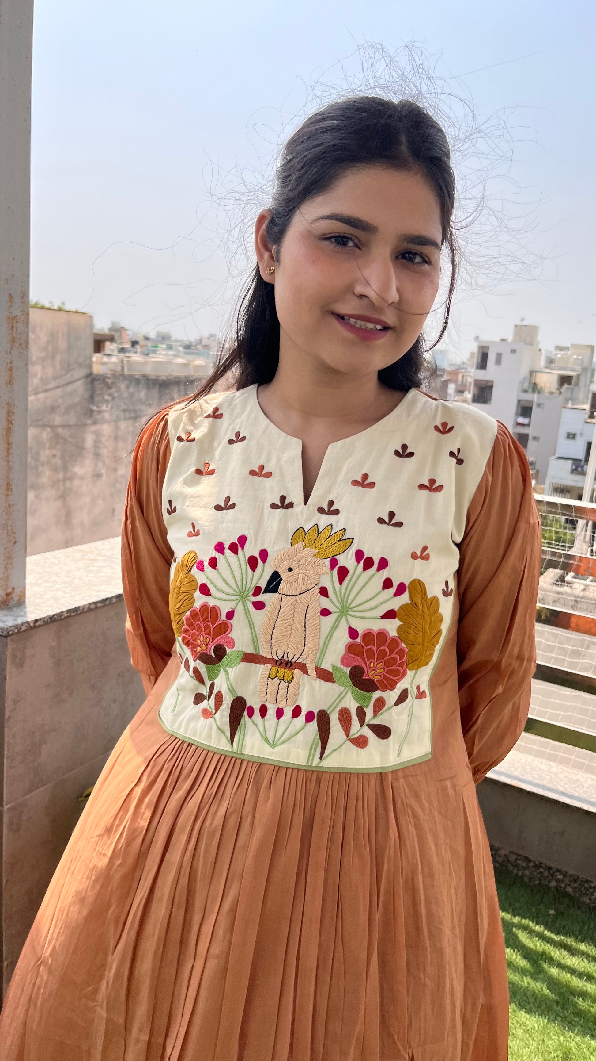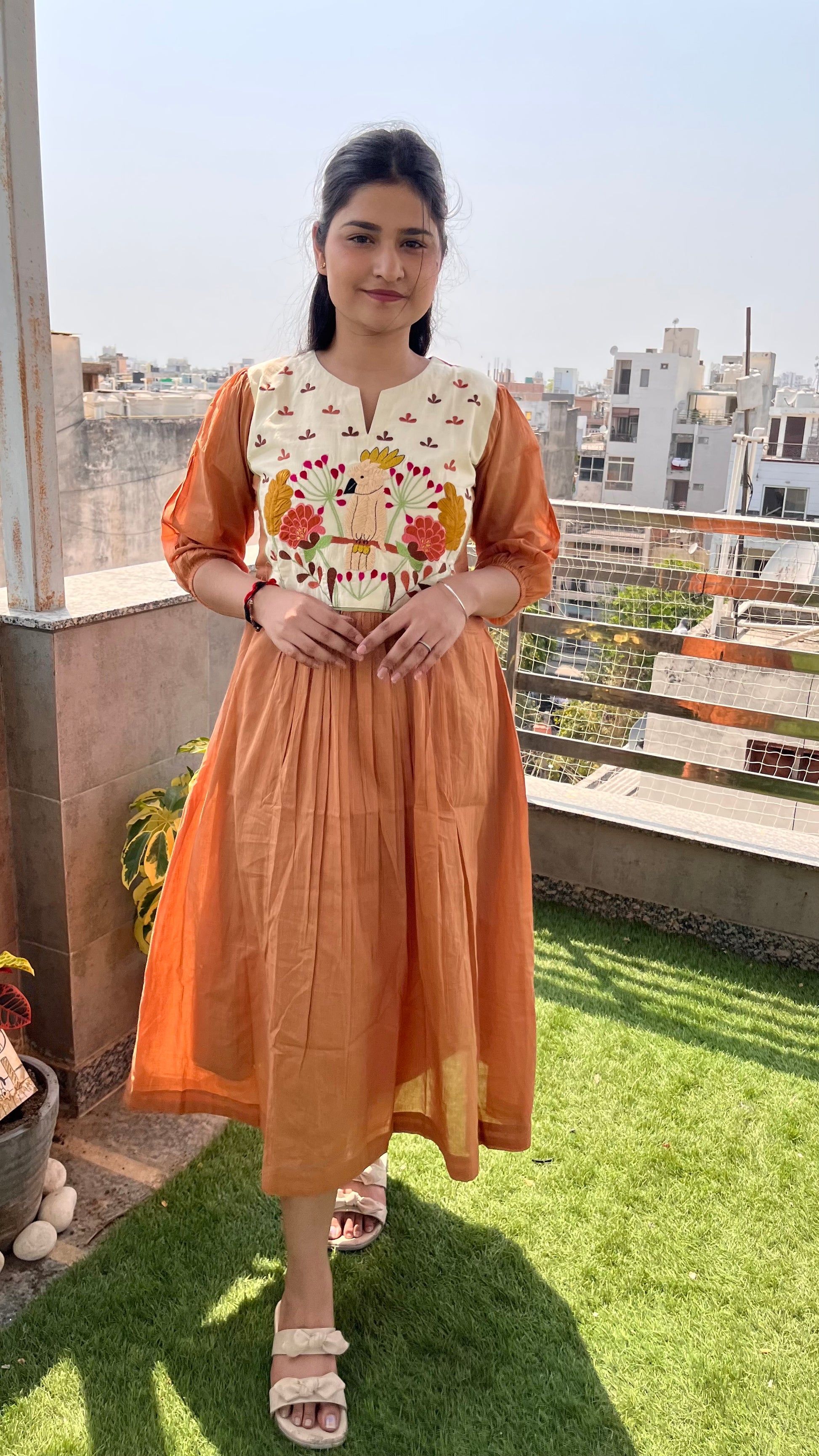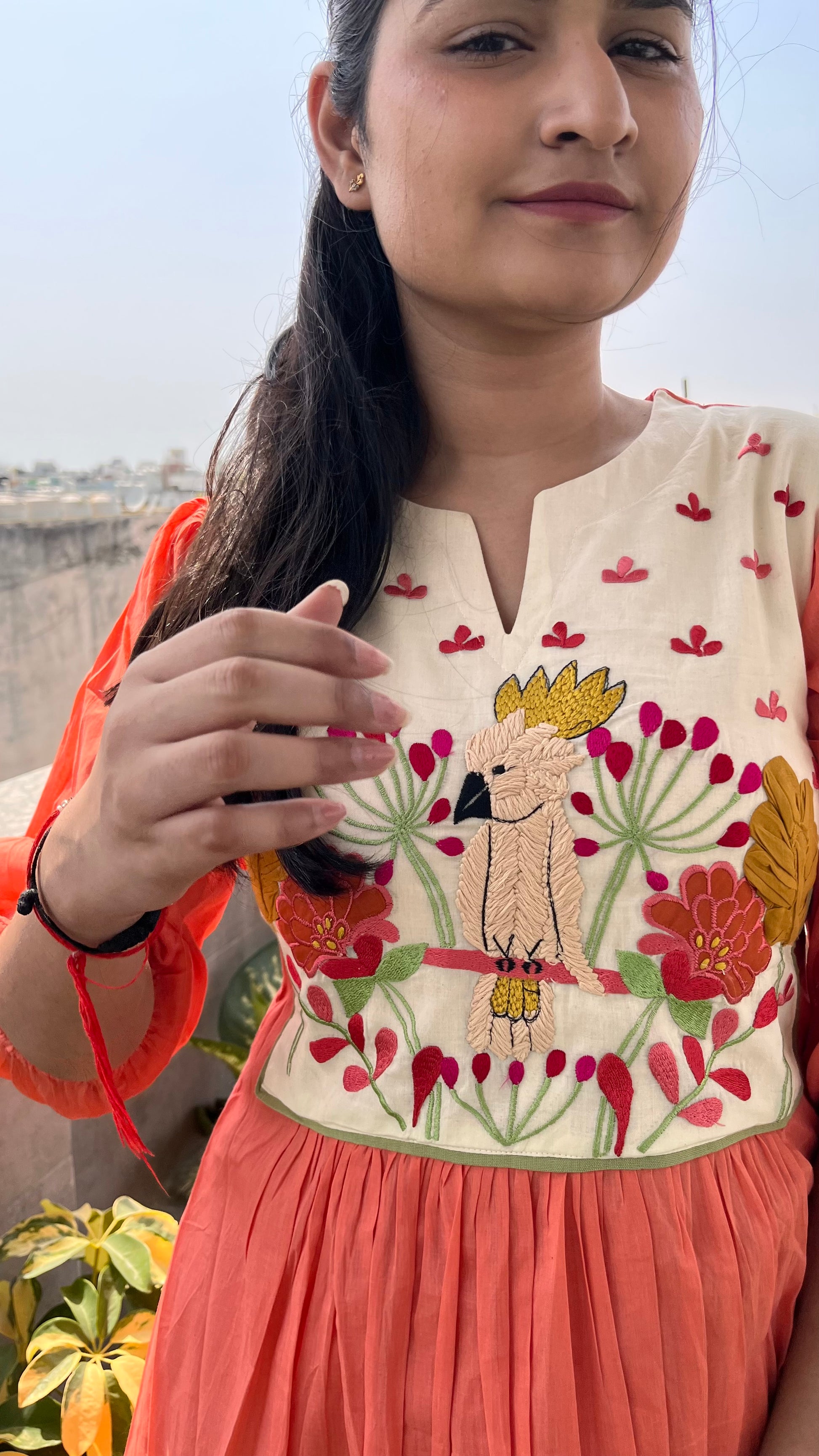 - The ivory yoke with beautiful colourful design adds a touch of elegance.