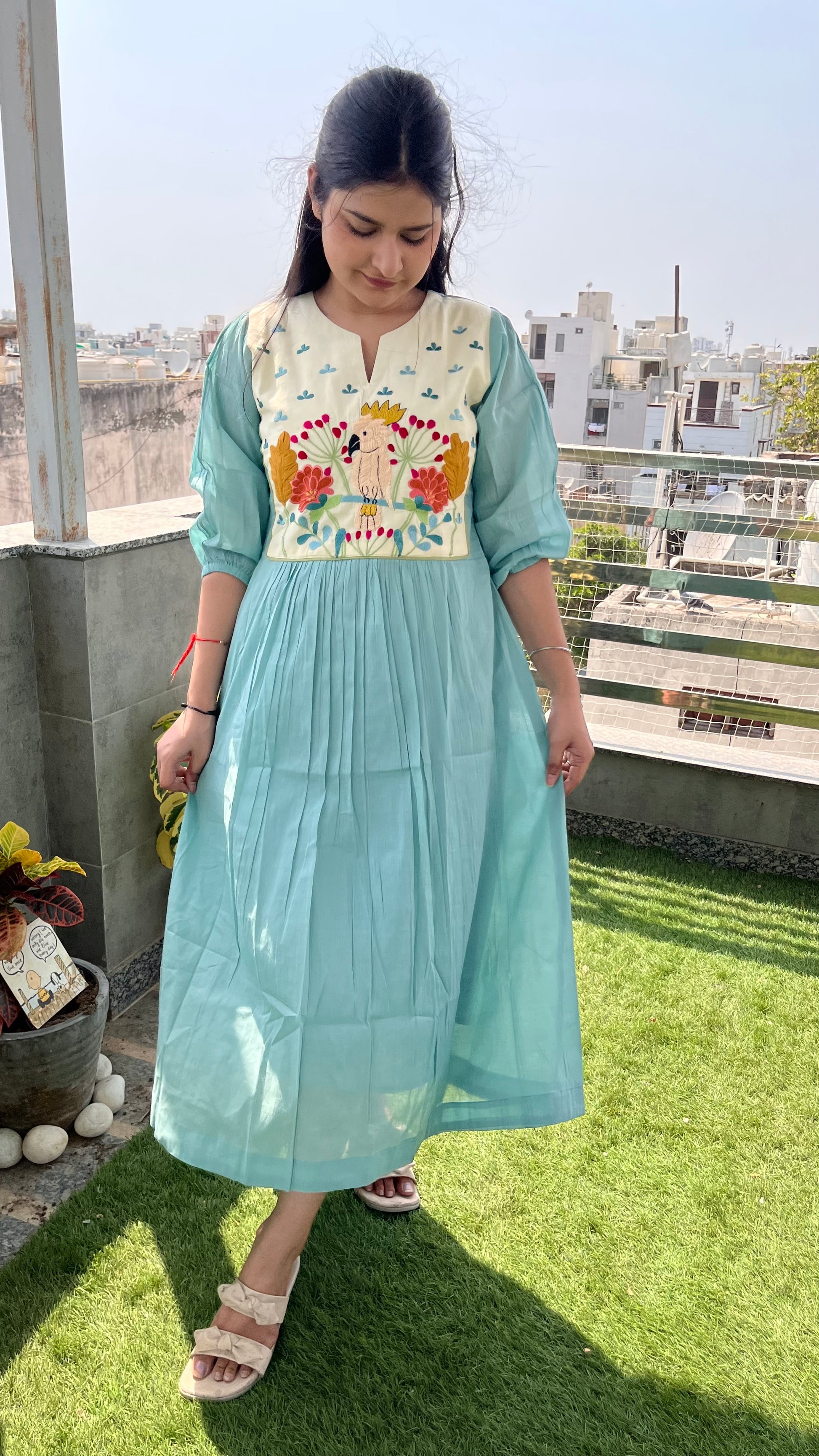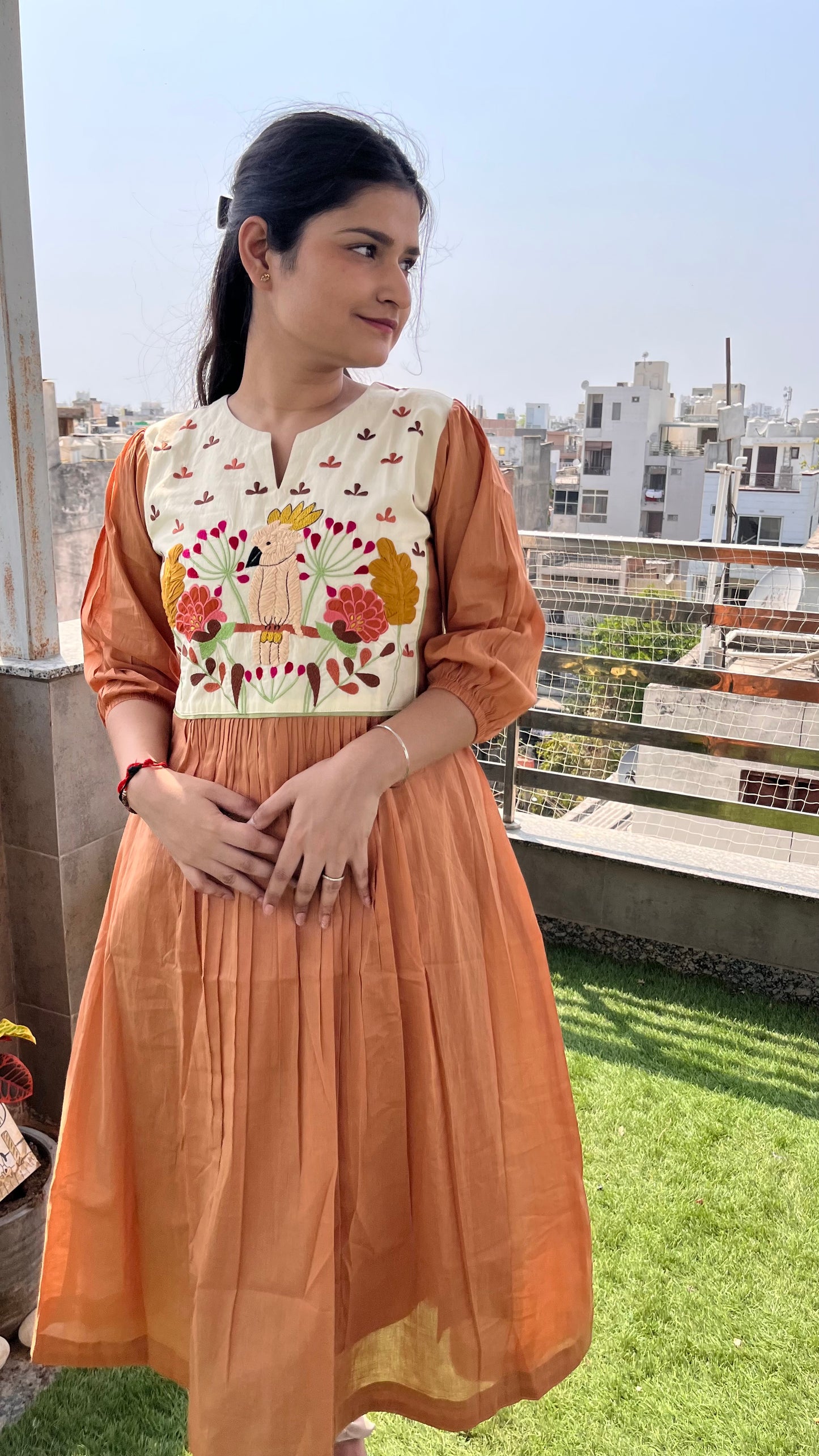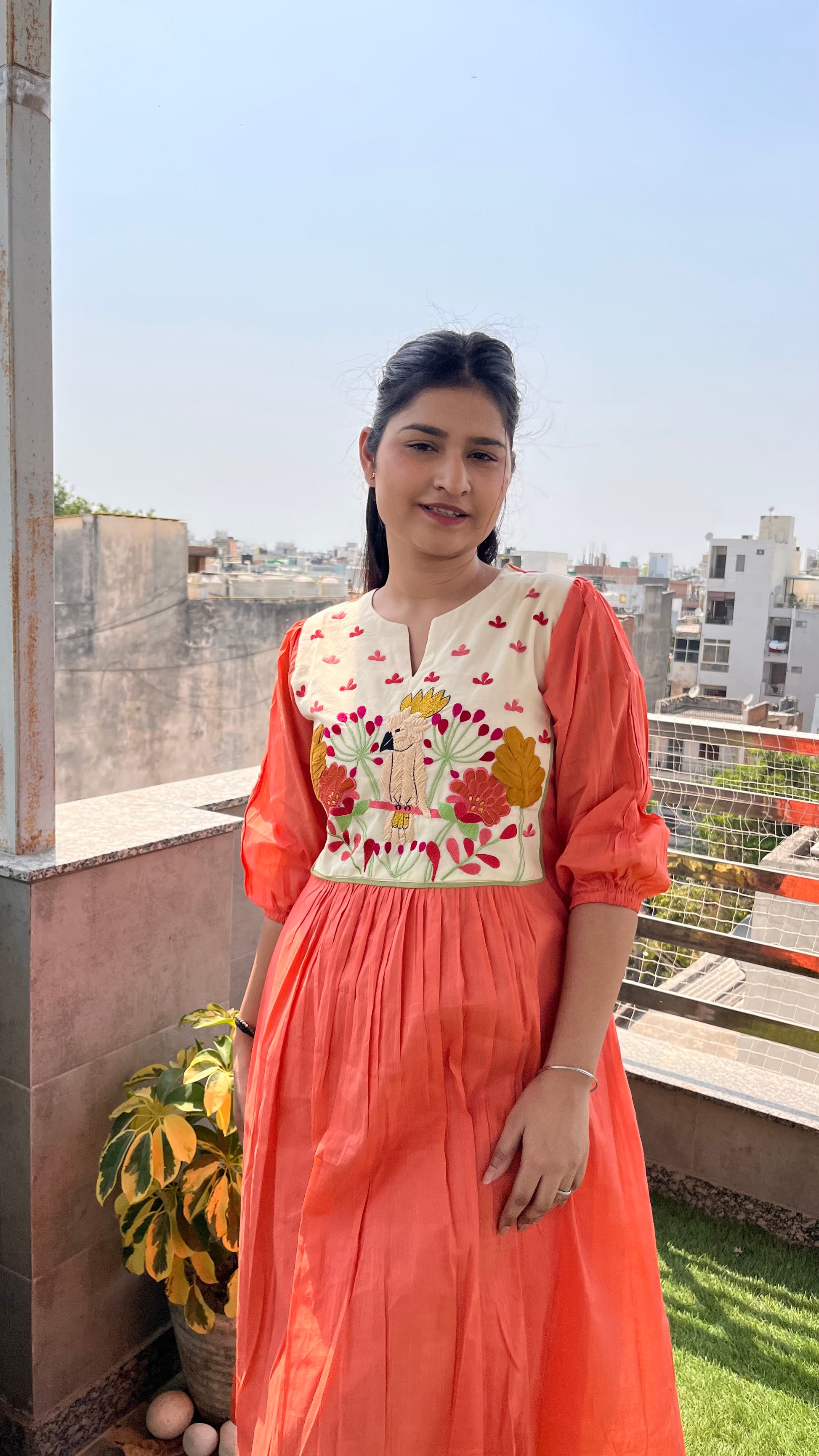 Elevate your style with this beautiful hand-embroidered tunic dress, made from pure mul mul fabric with attached cotton lining.
