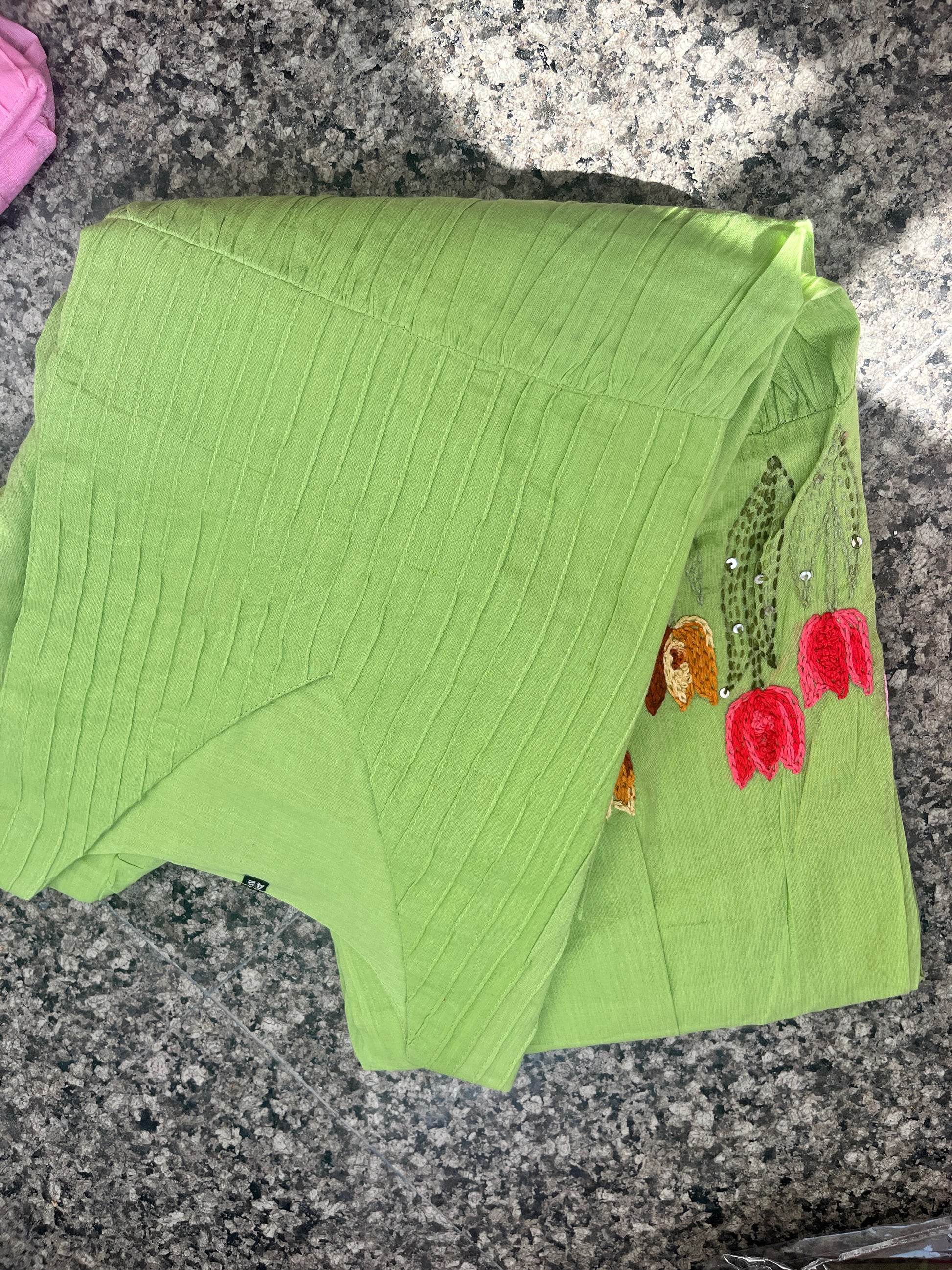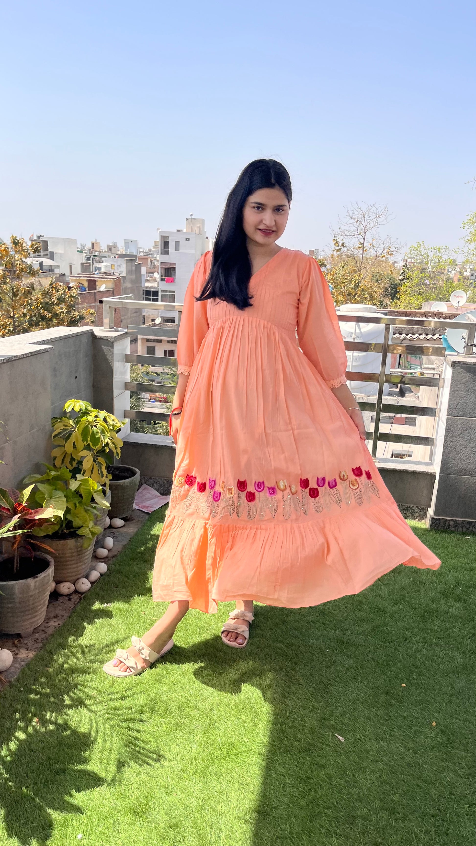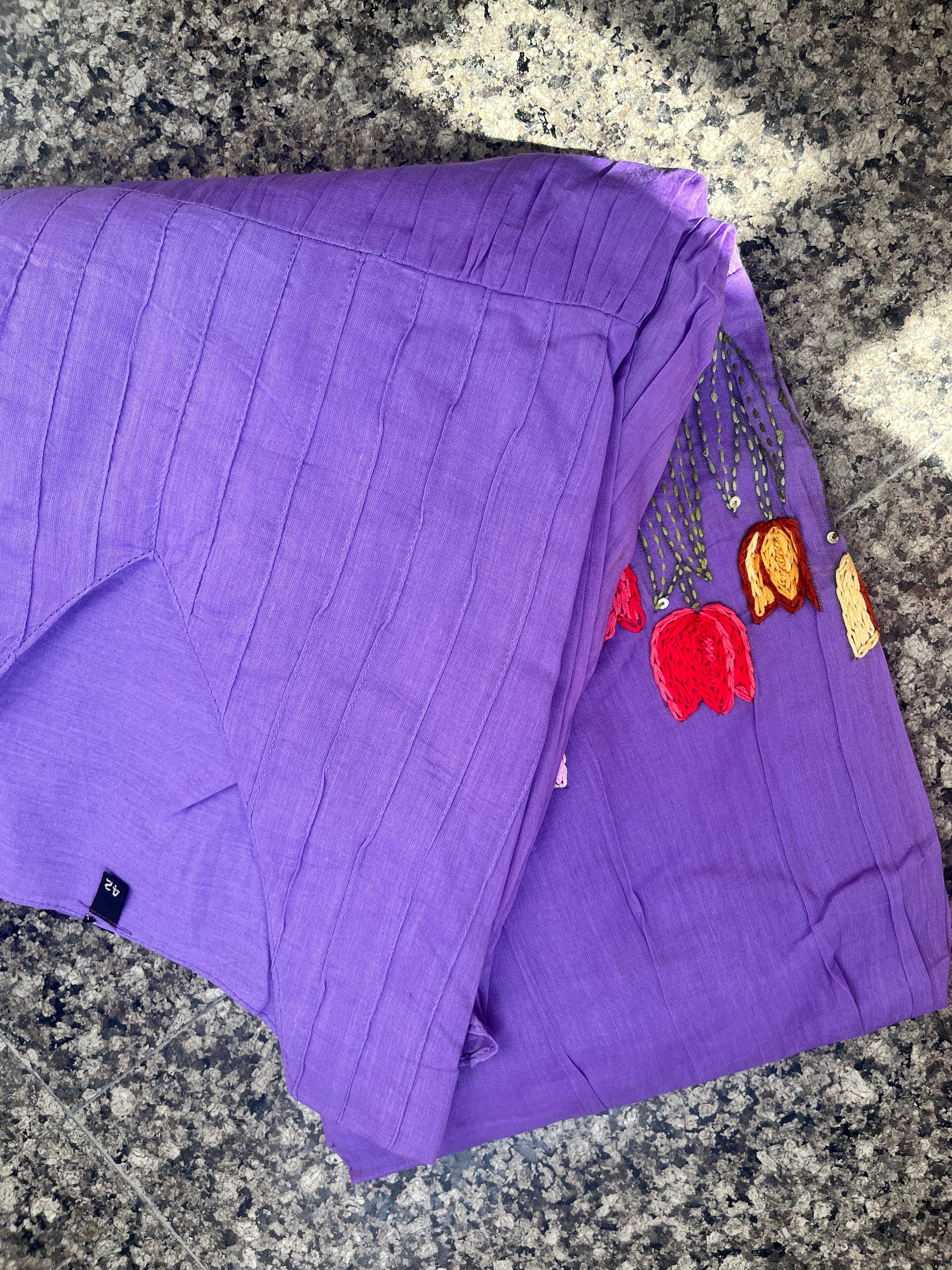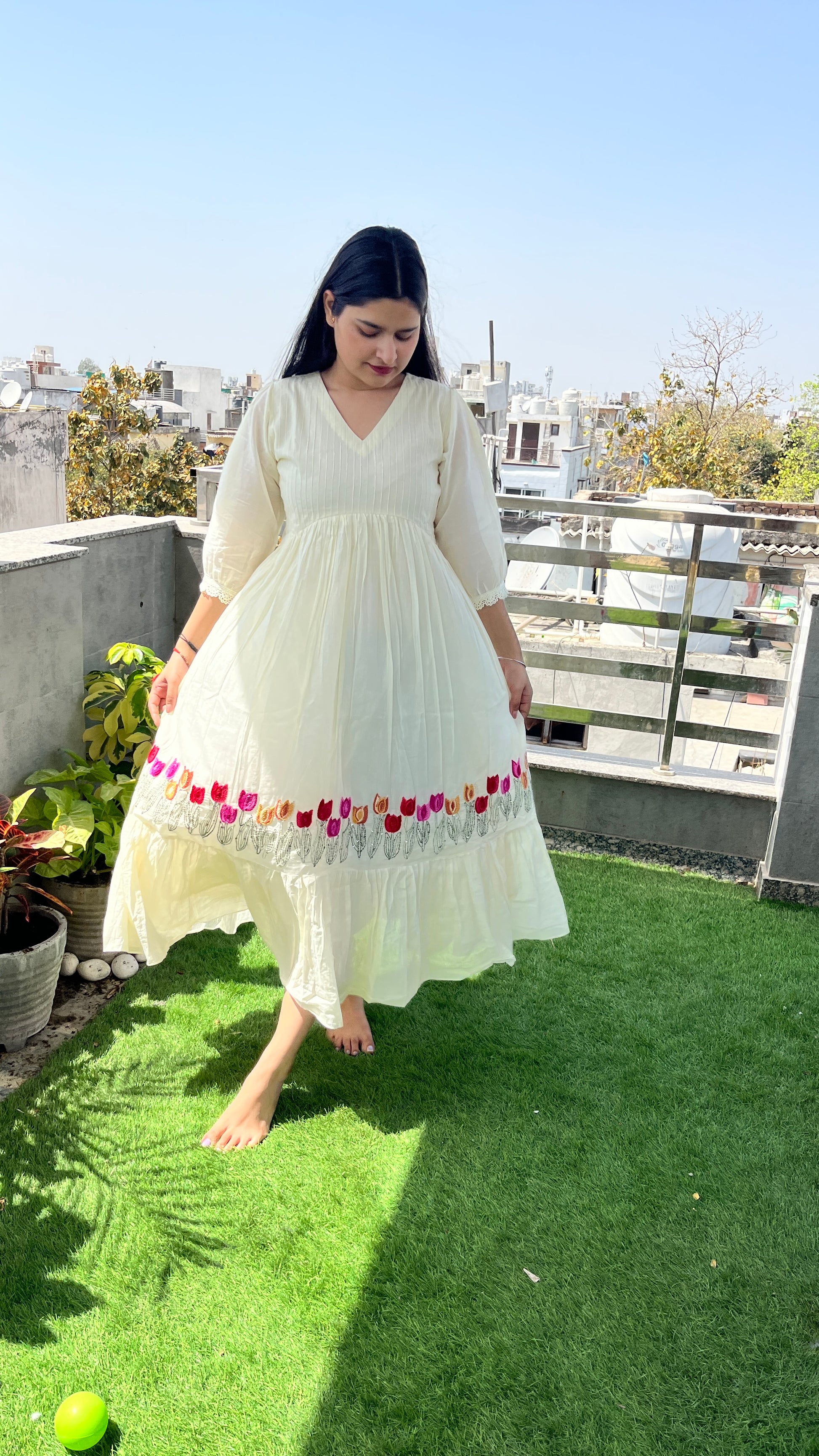 - The exquisite hand embroidery at the hem, complemented by a charming frill pattern, enhances its appeal.