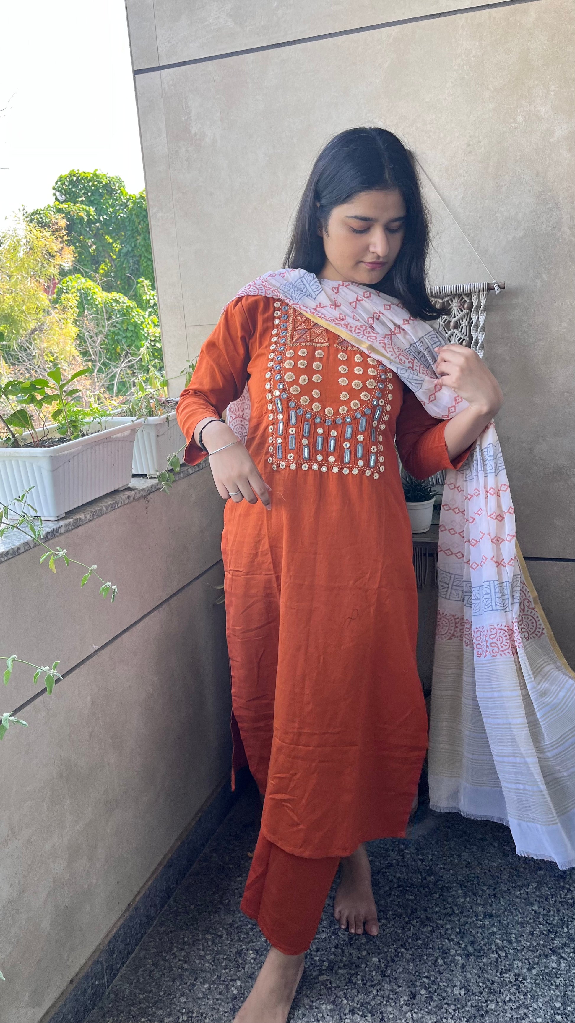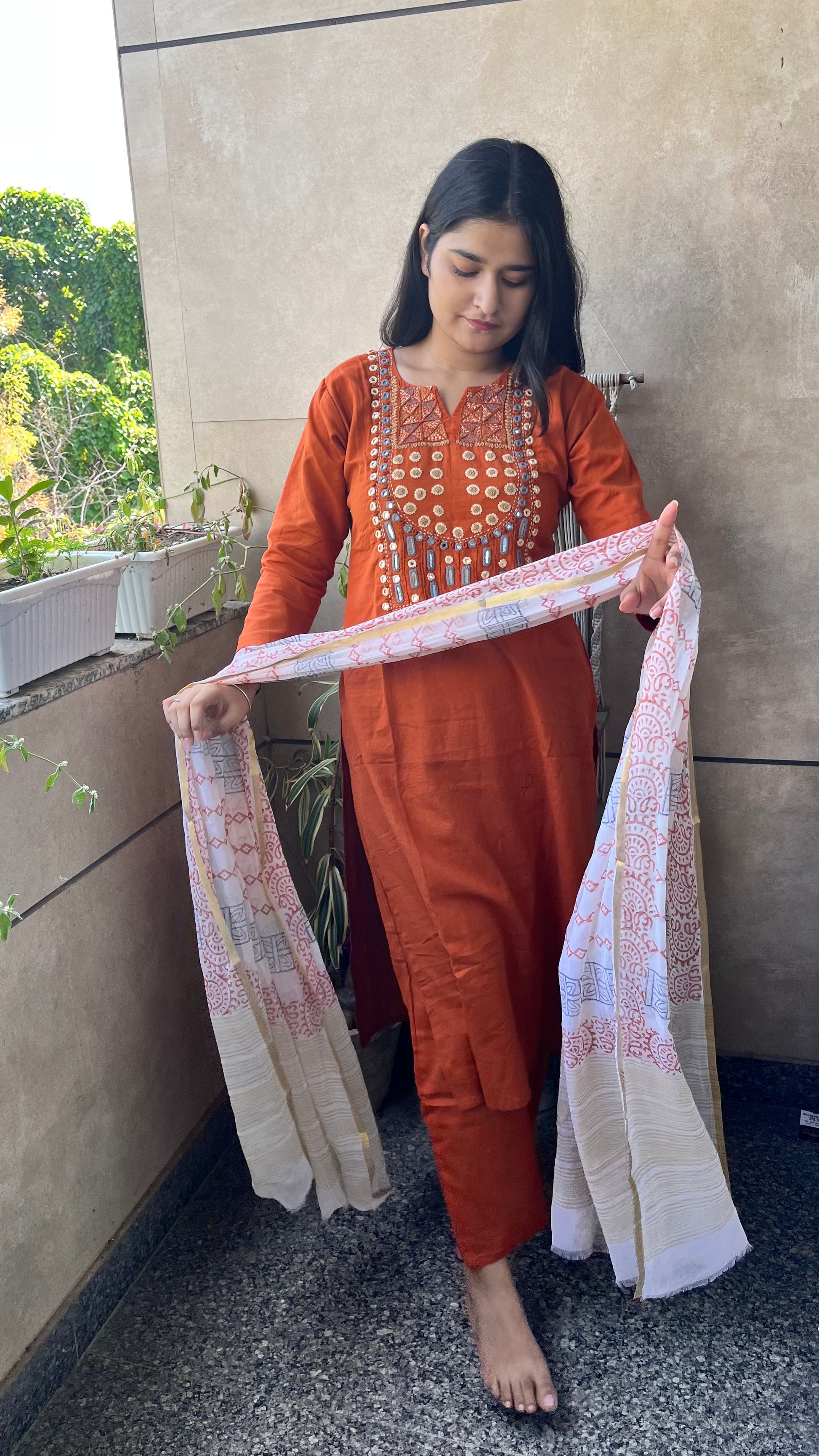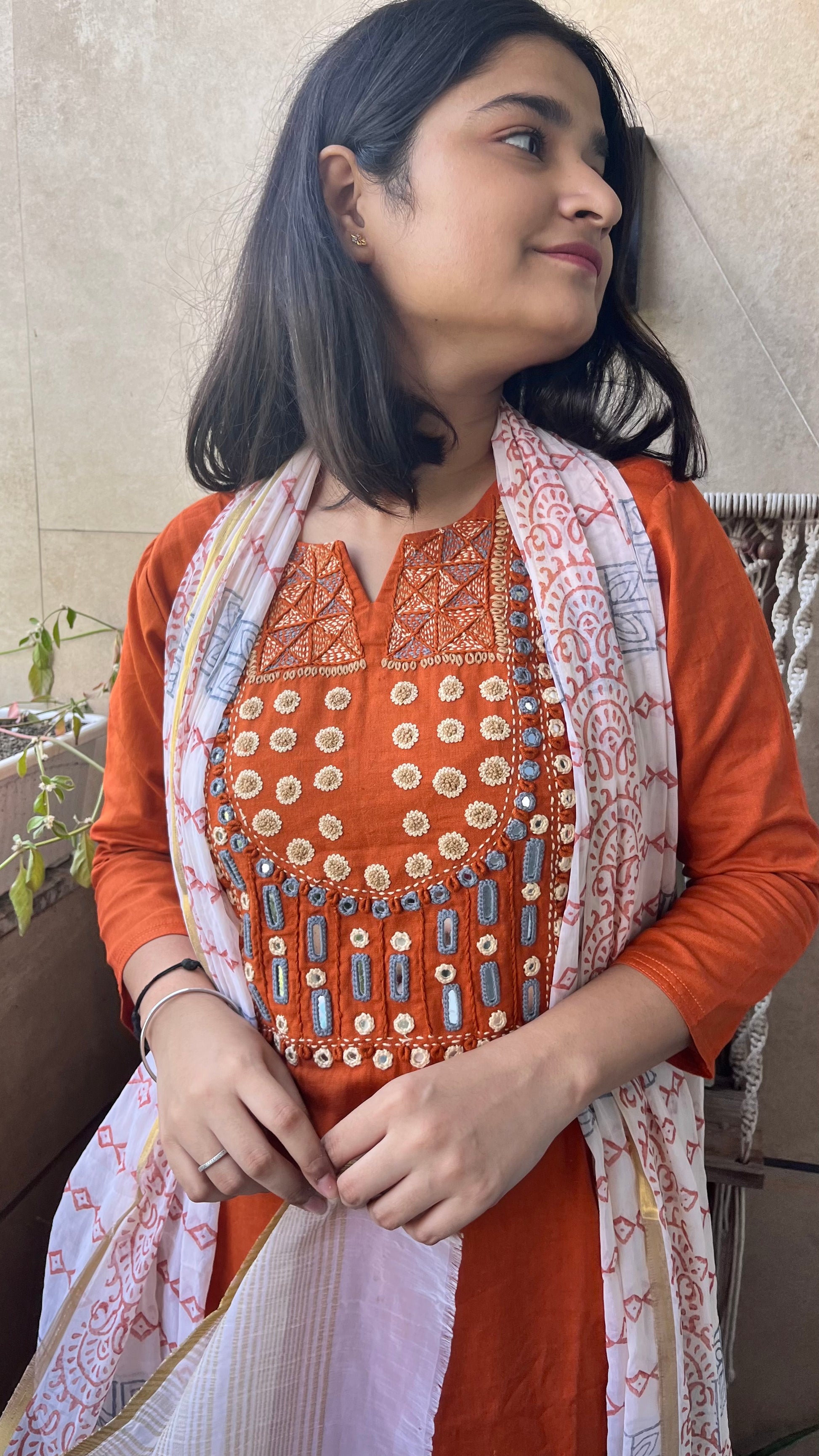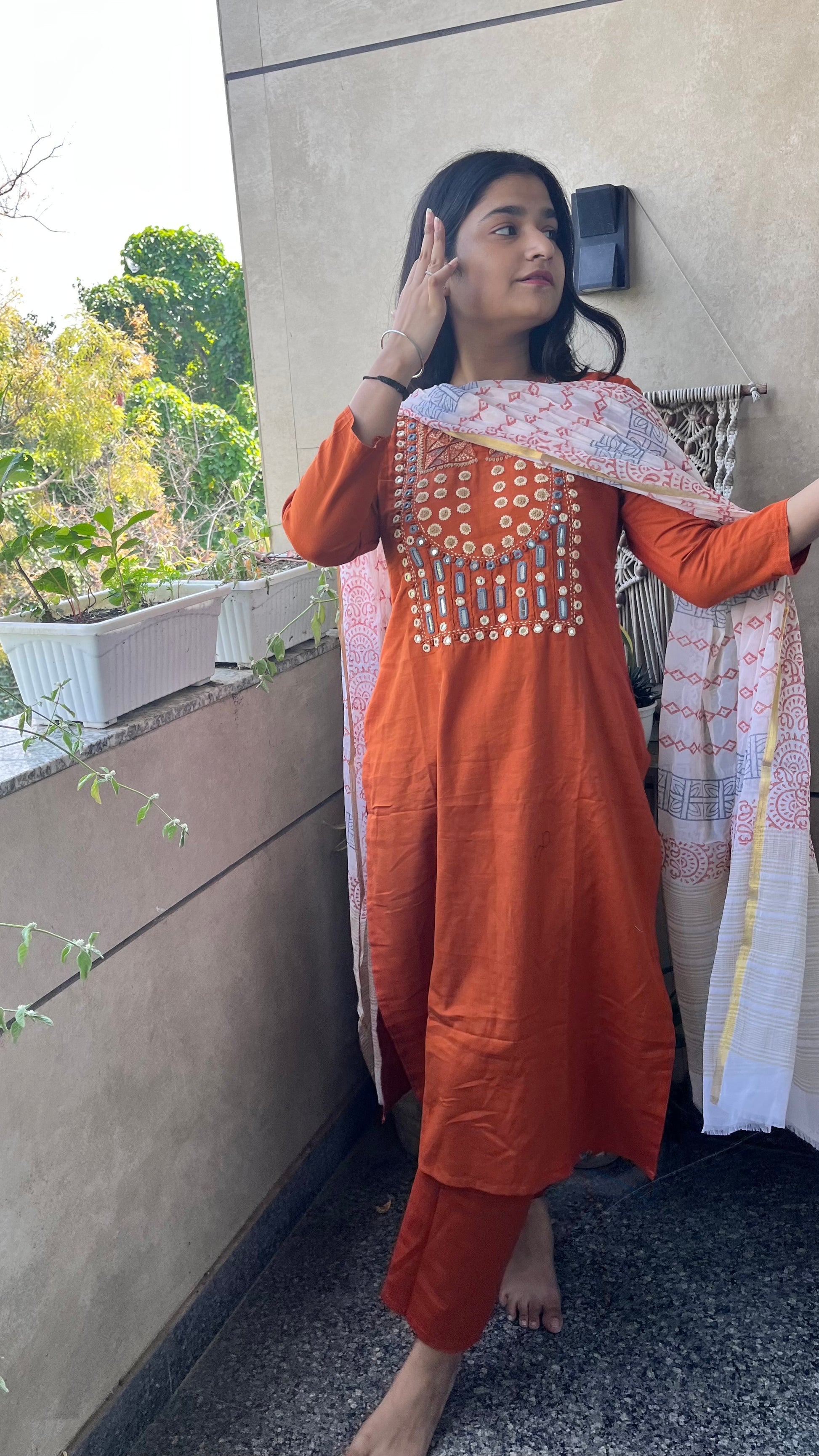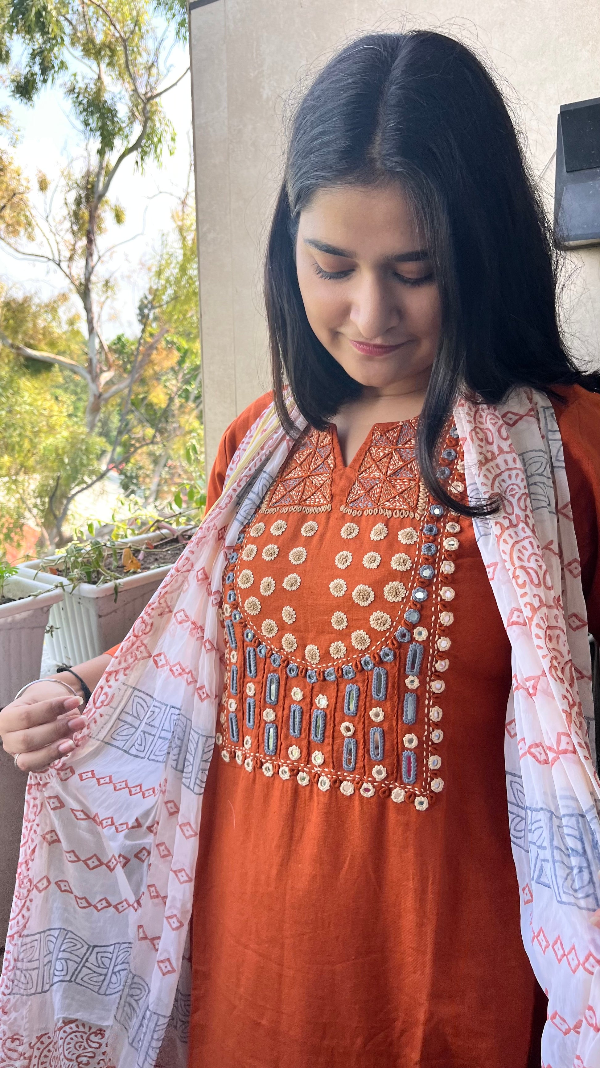 - Beautiful chiffon printed dupatta making the set more adorable.