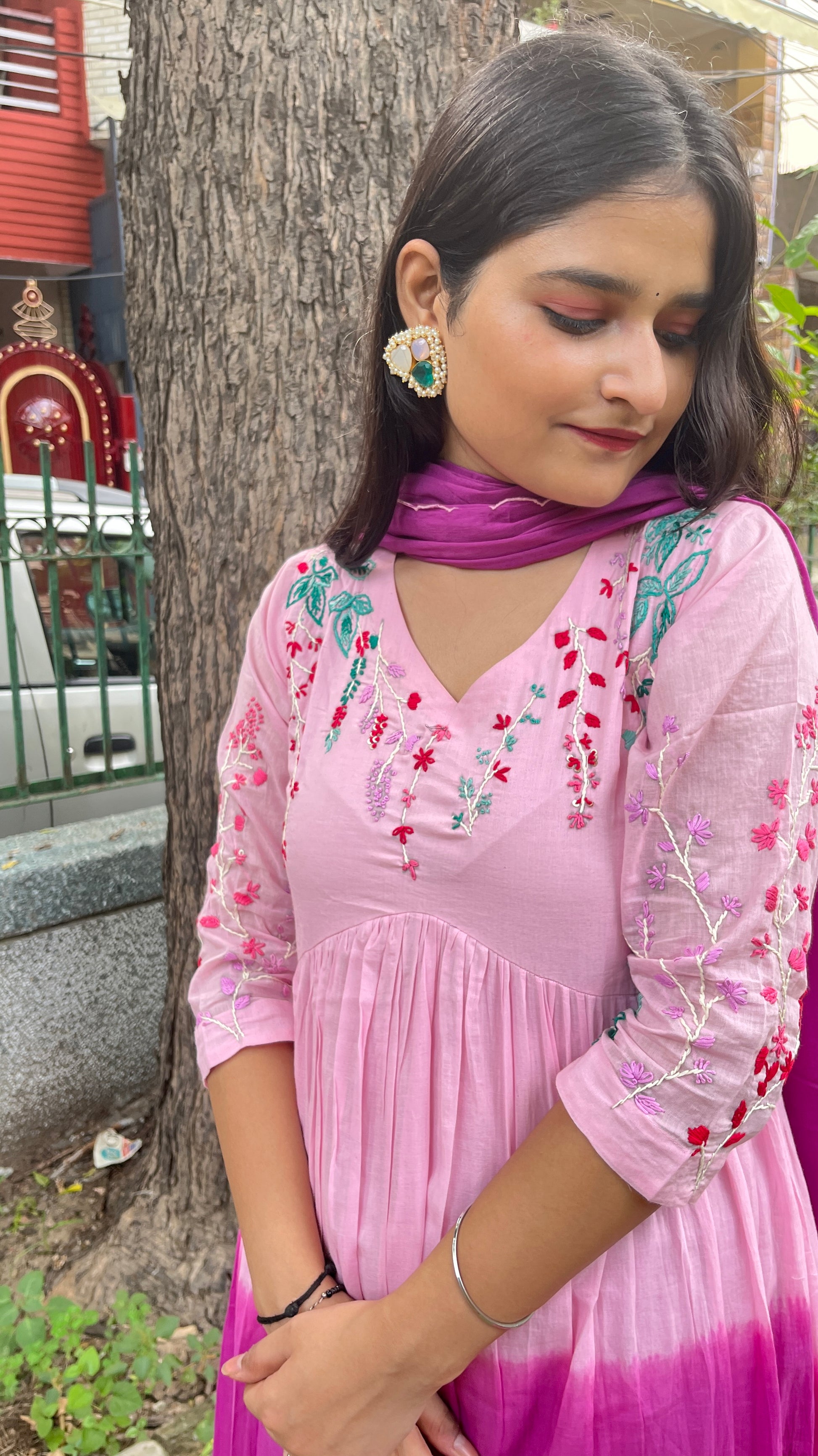 - Hand embroidery across the neck, shoulder, hem and sleeves.