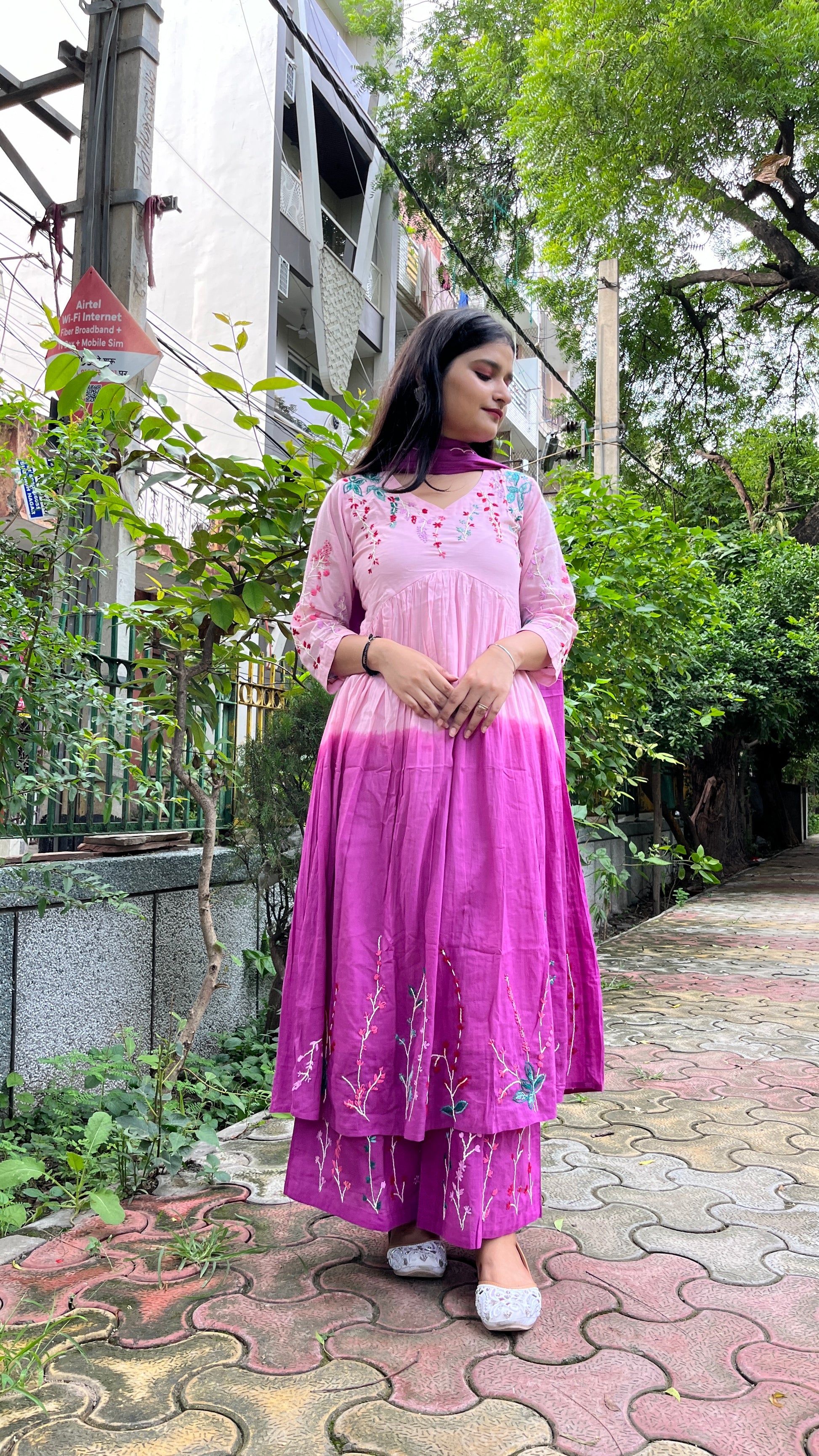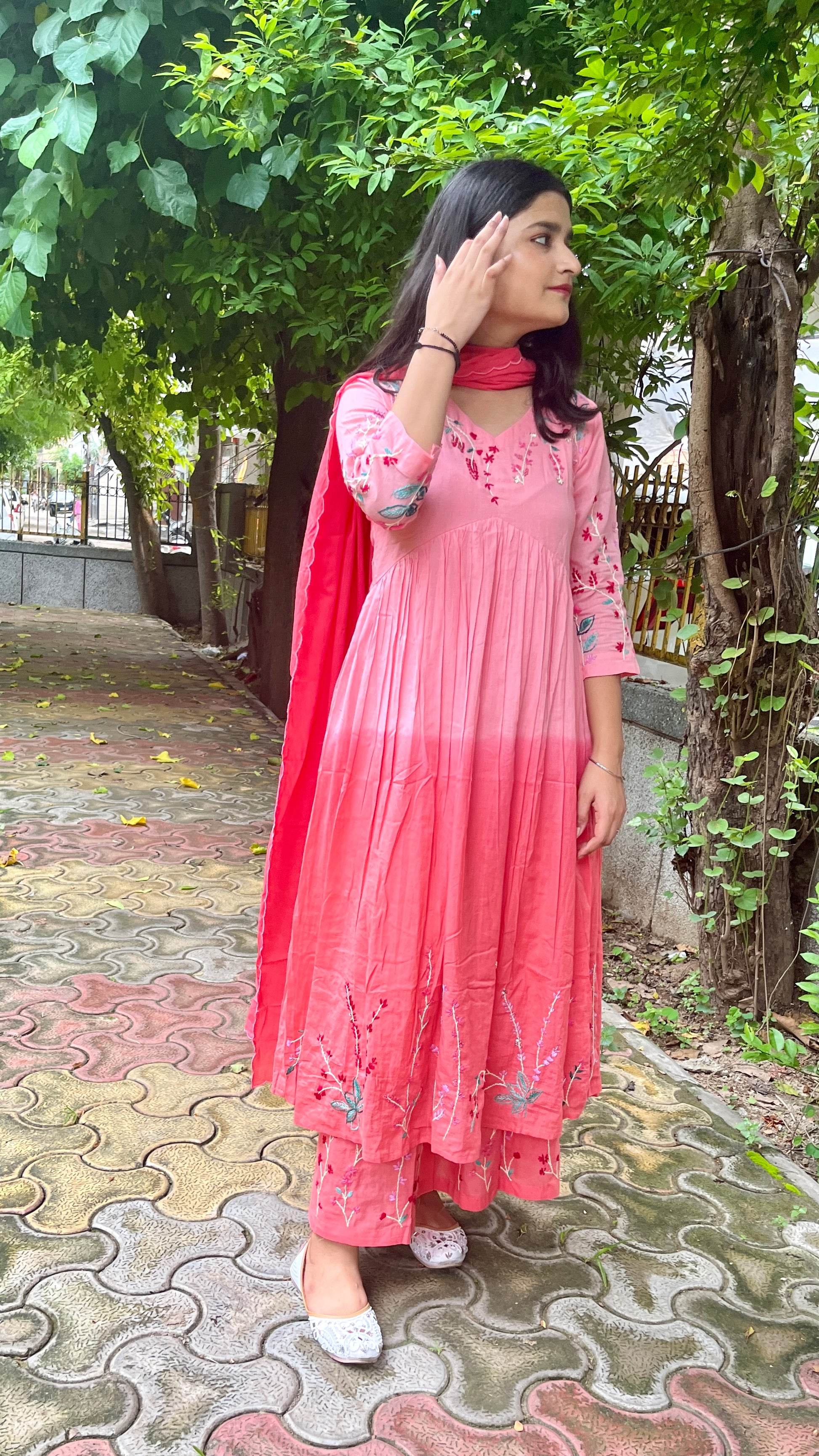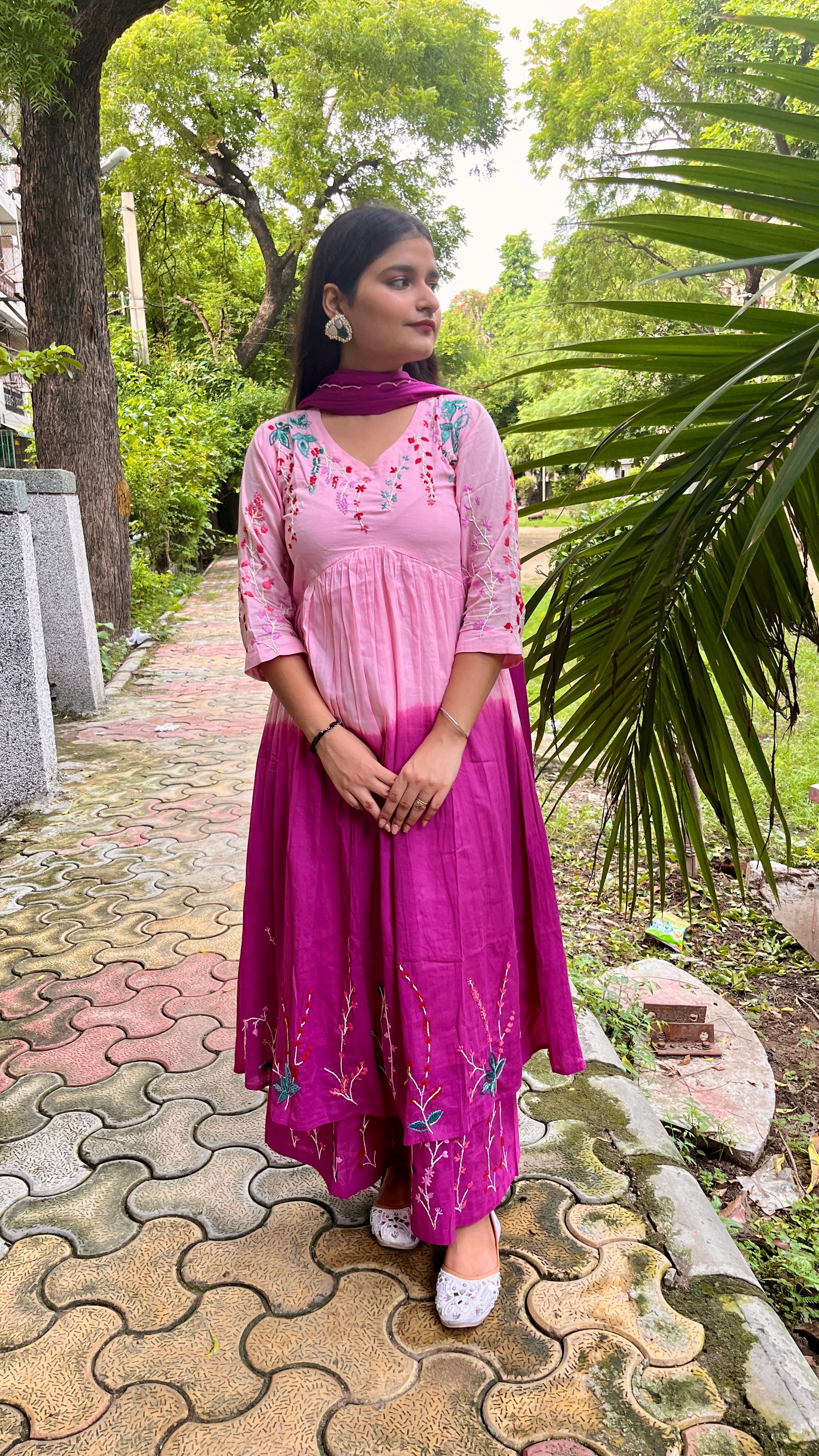 - Palazzo Pants: Matching embroidered patterns on the bottom