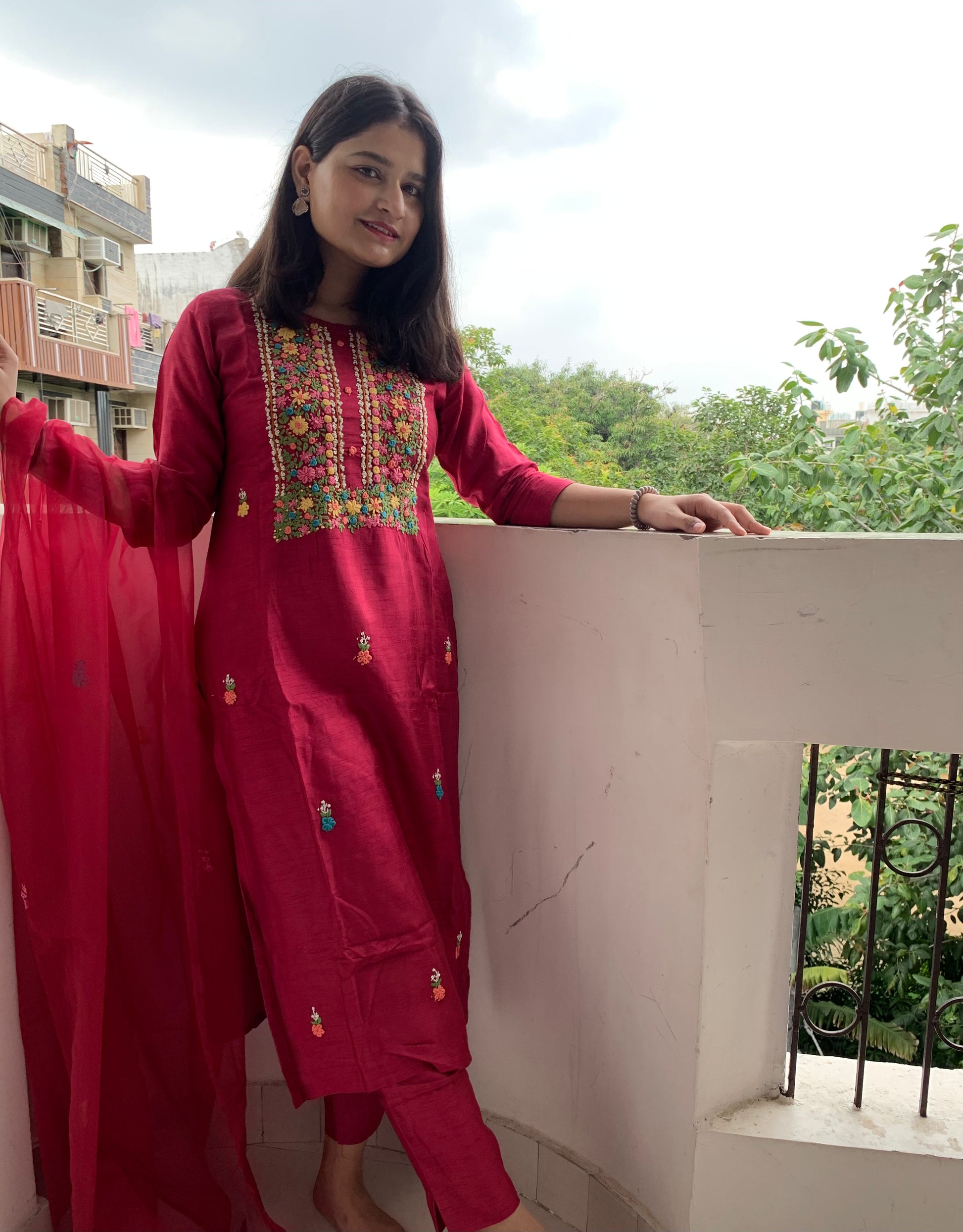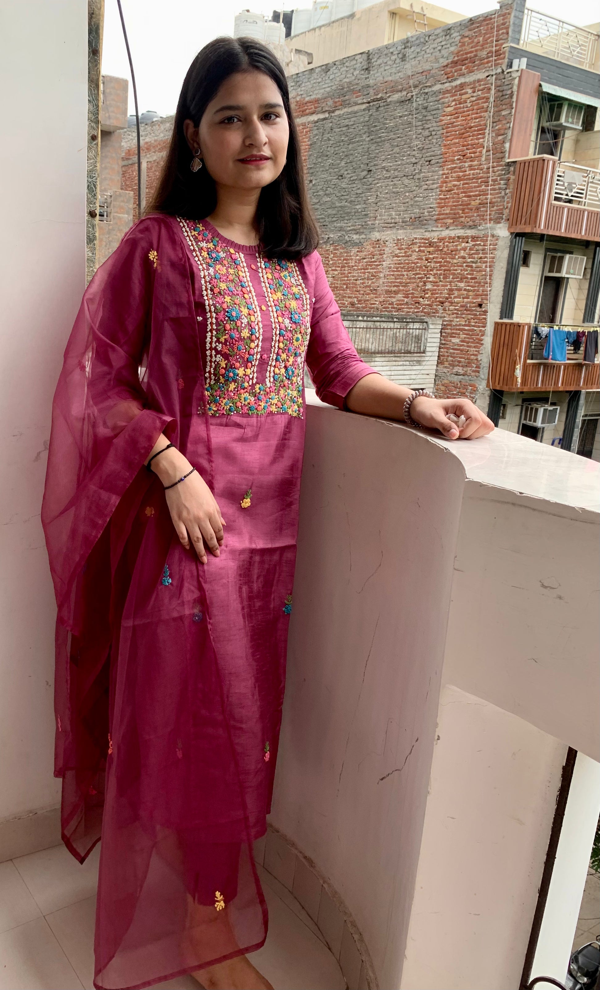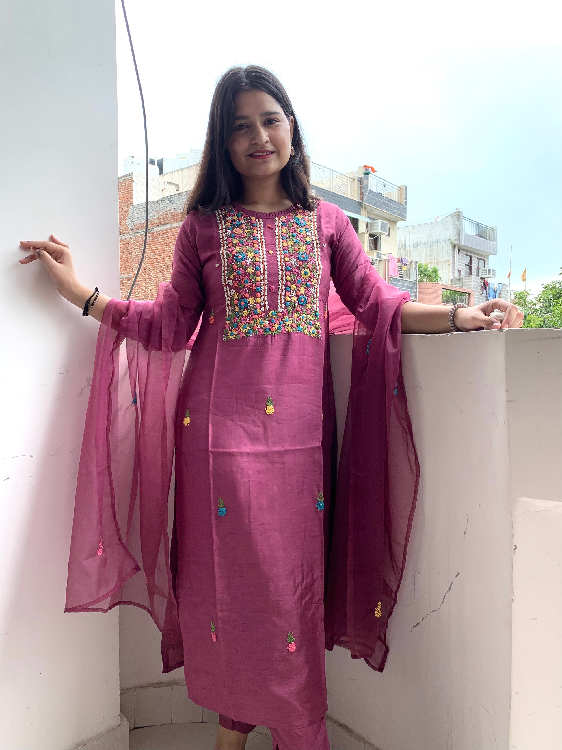 - The pure dola silk kurta and dupatta are adorned with intricate thread and sequence embroidery.