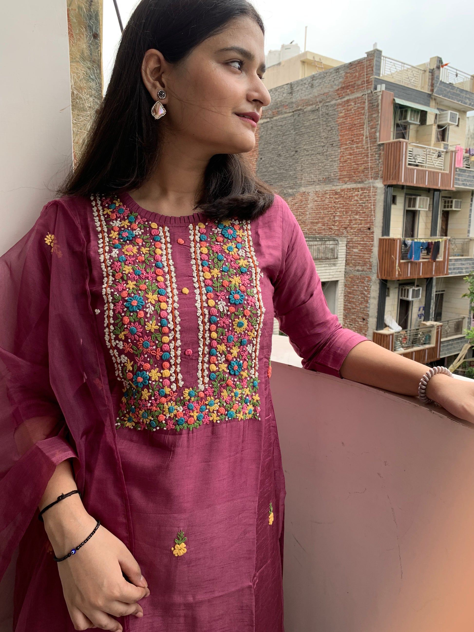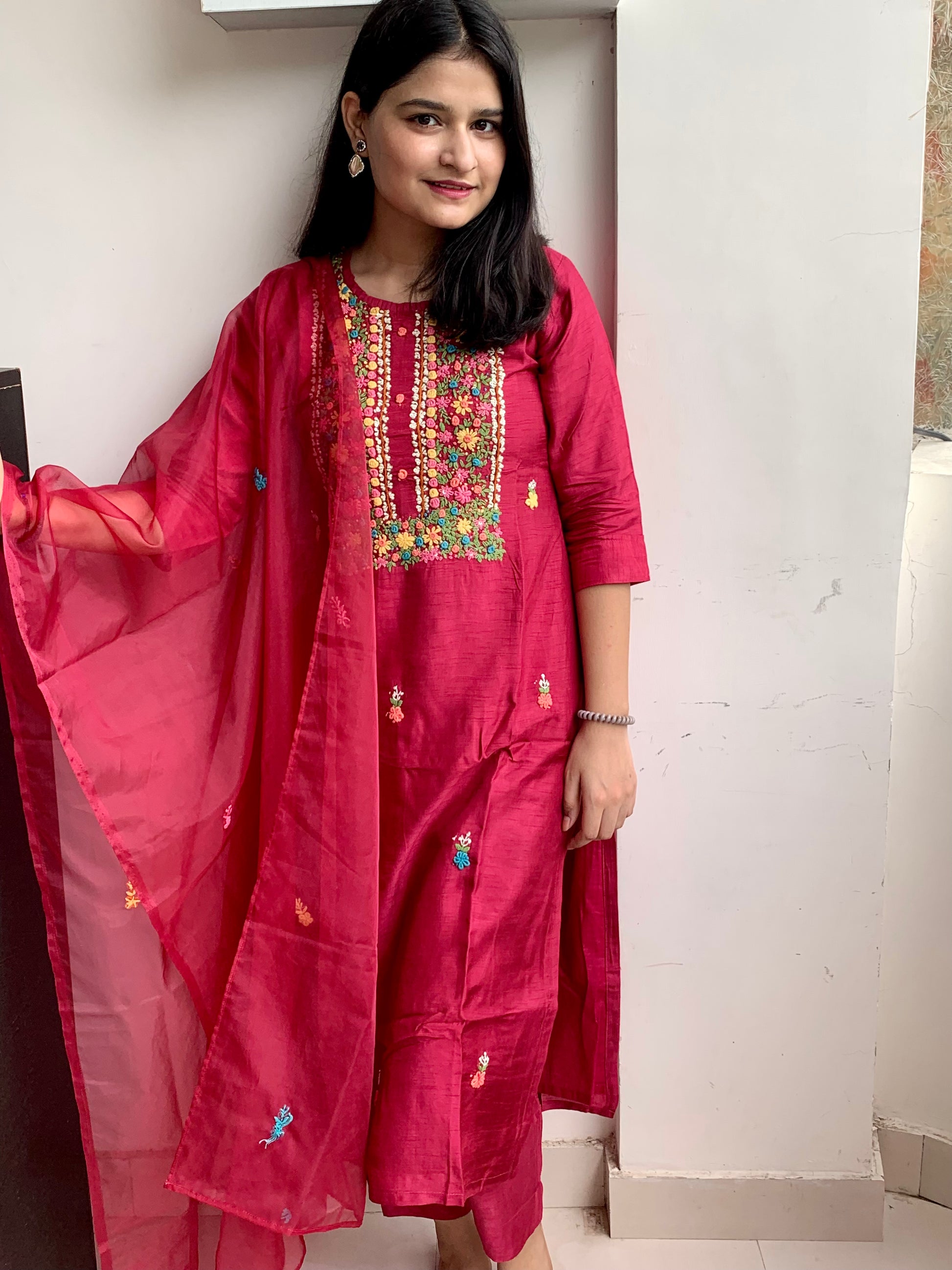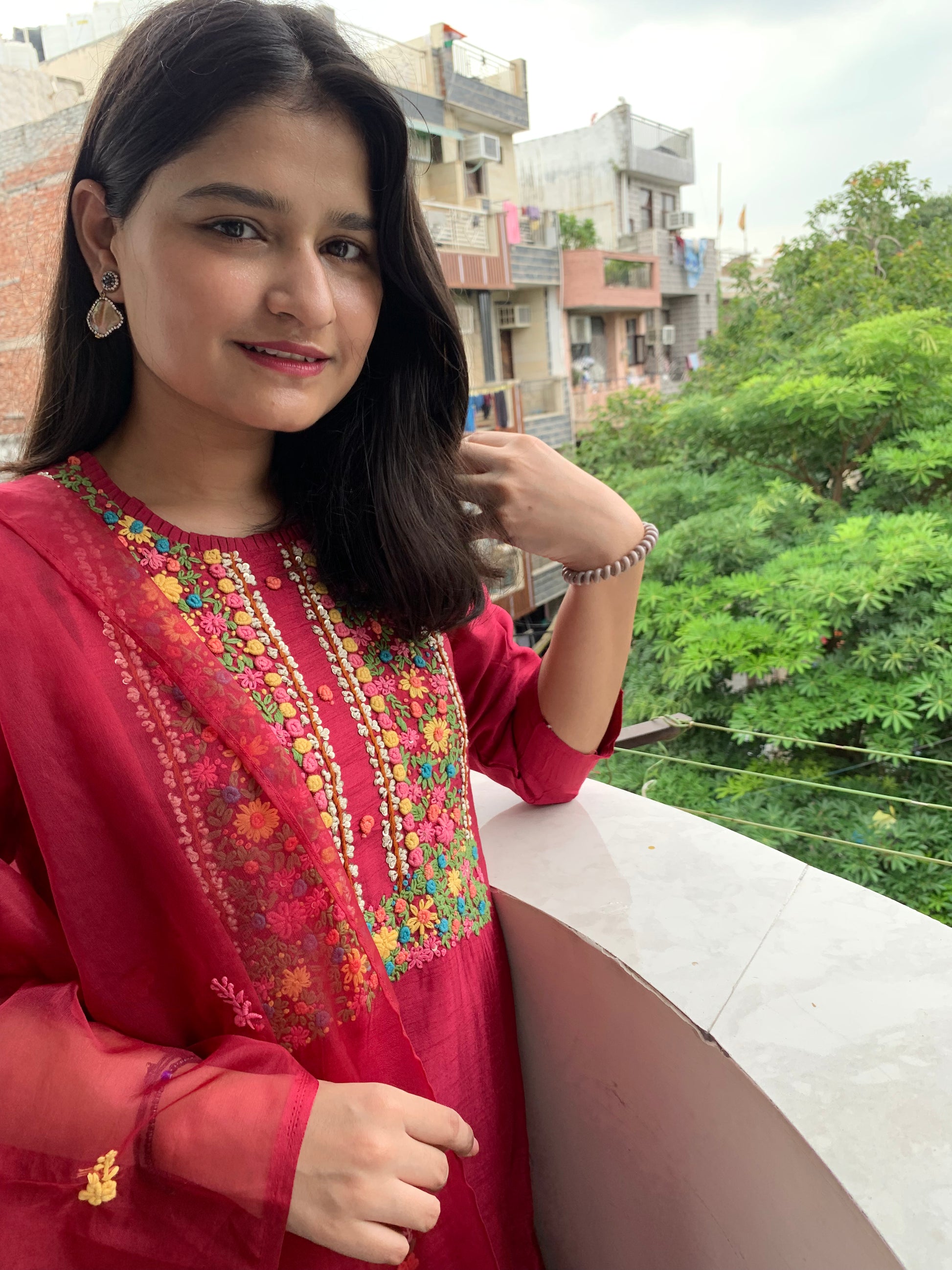 - The pure dola silk kurta and dupatta are adorned with intricate thread and sequence embroidery.