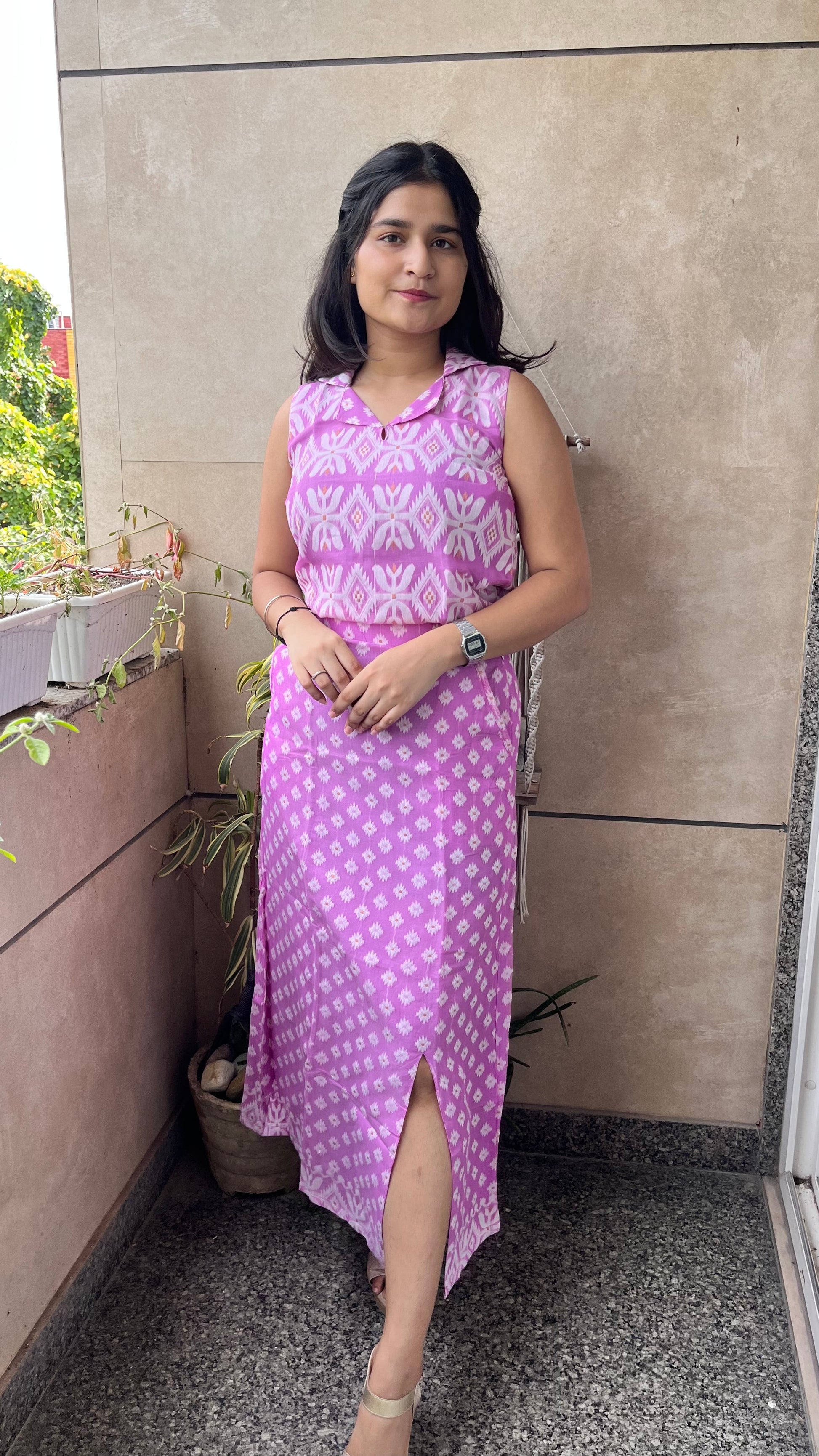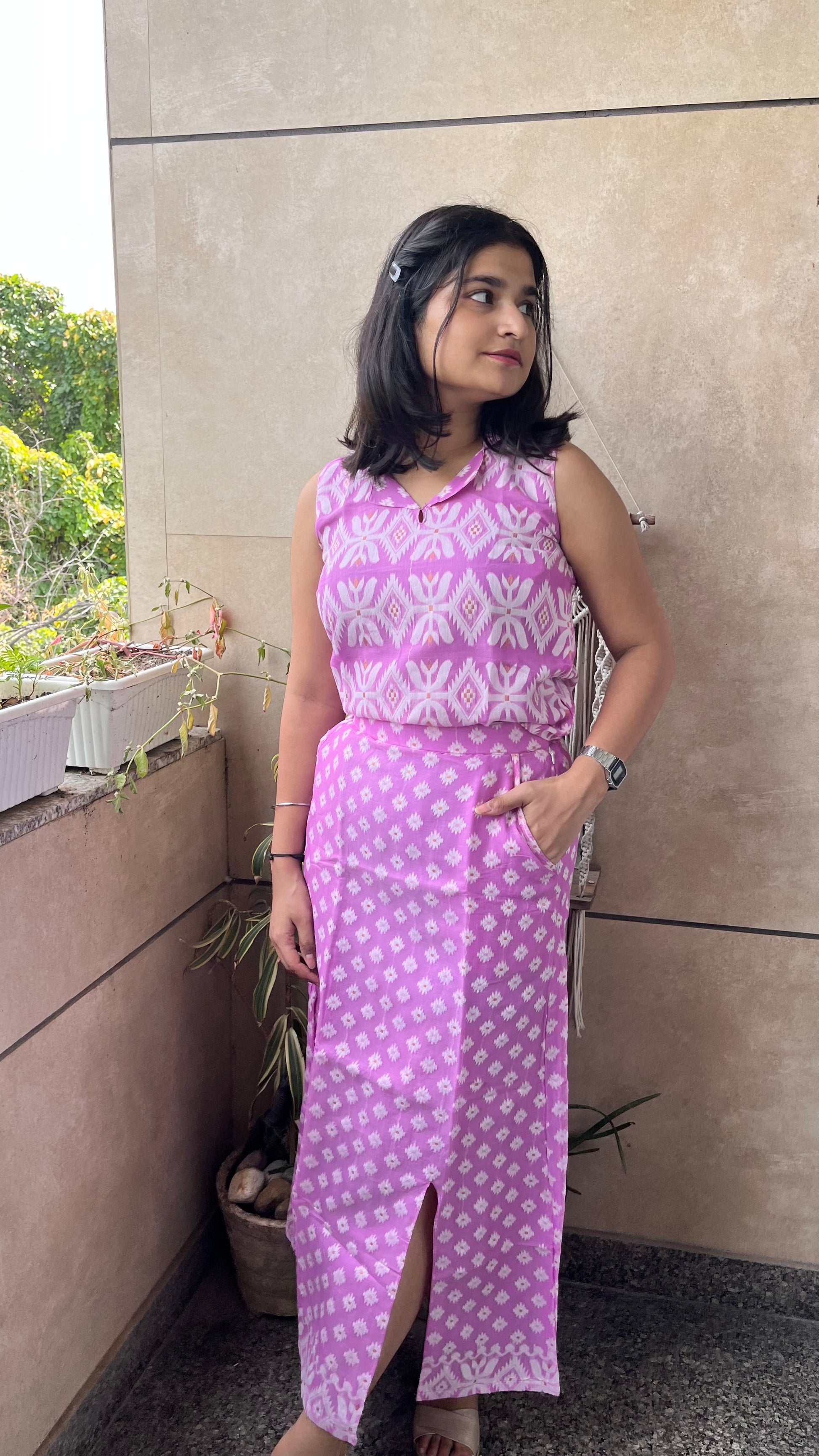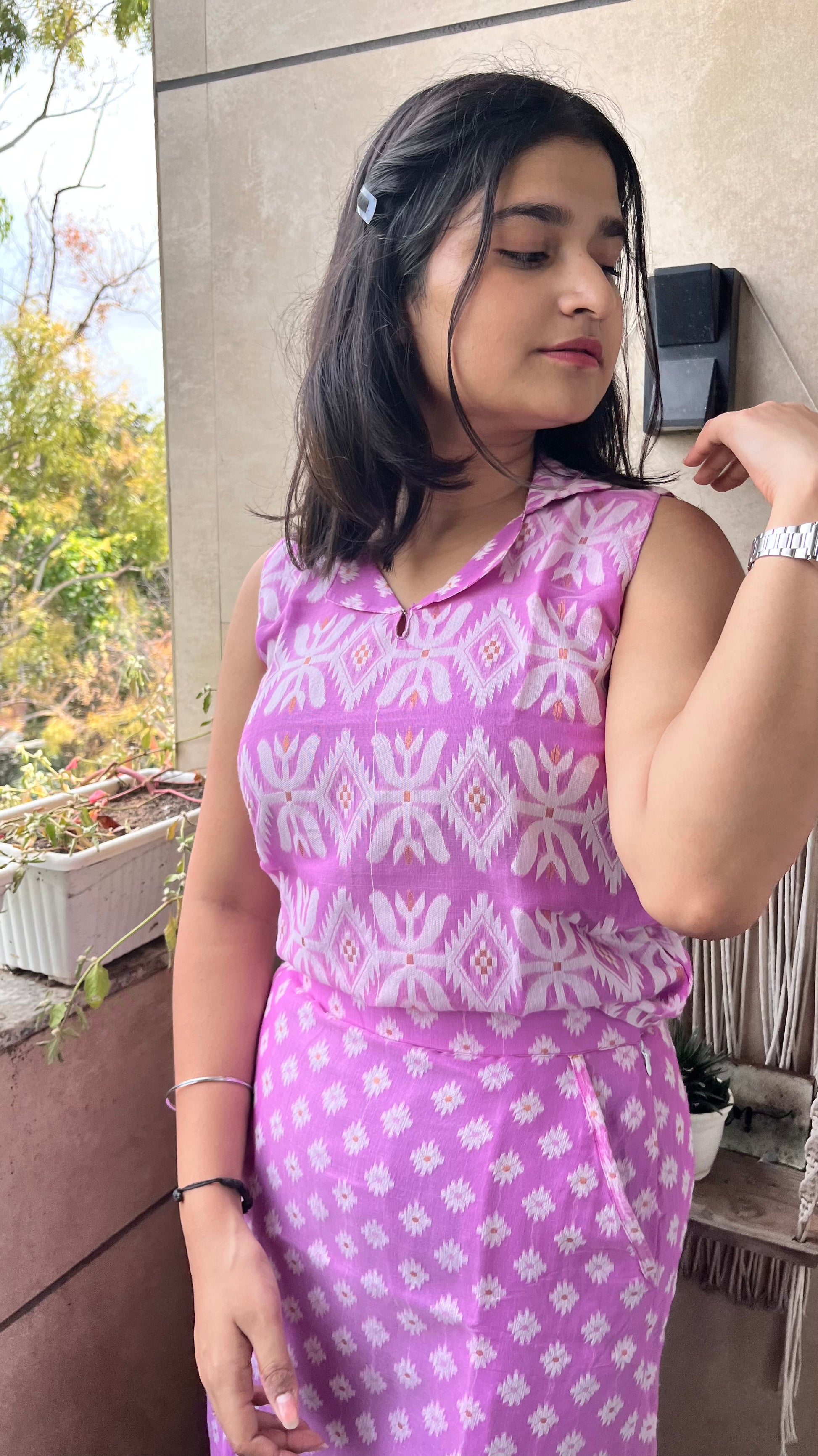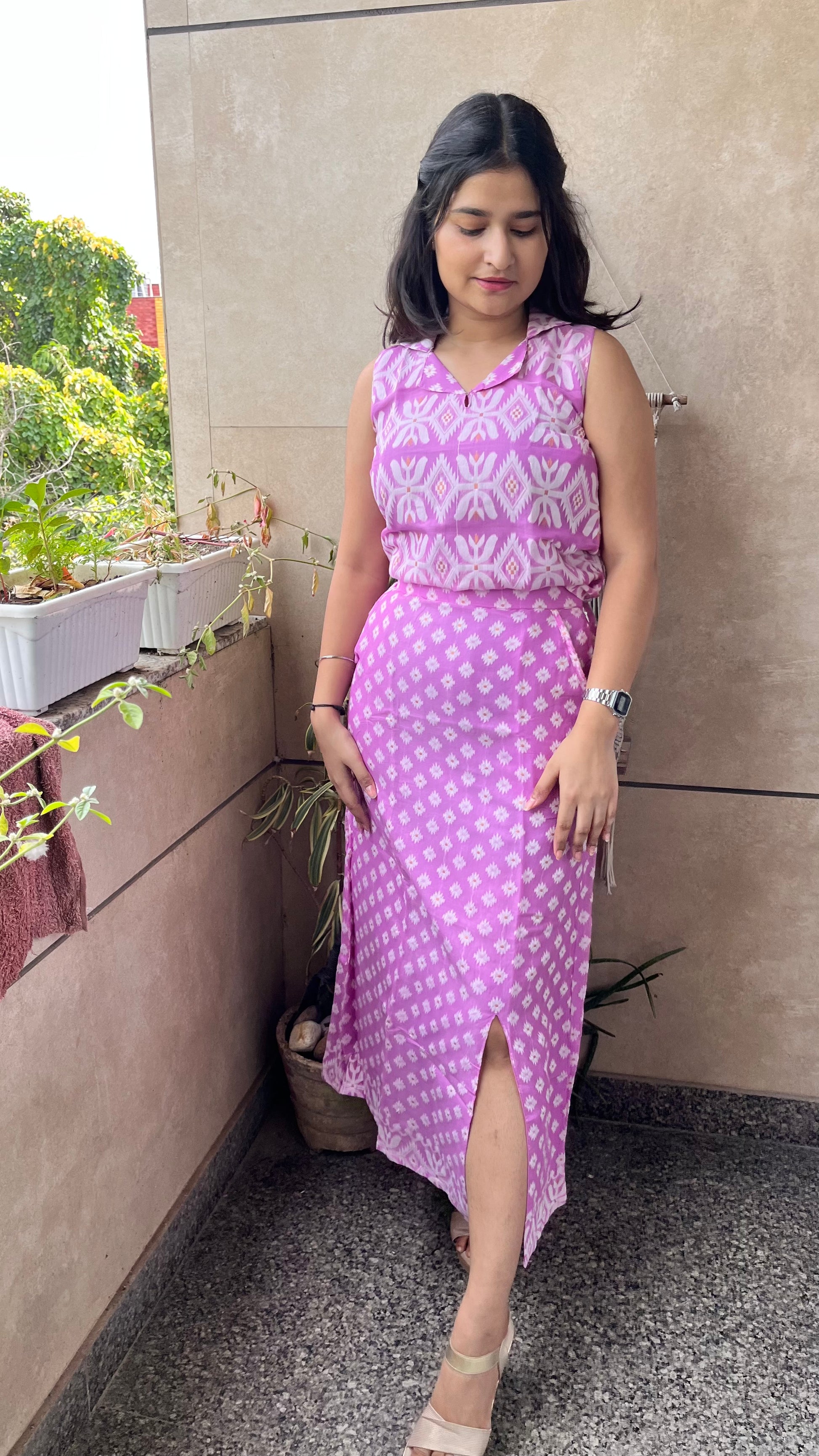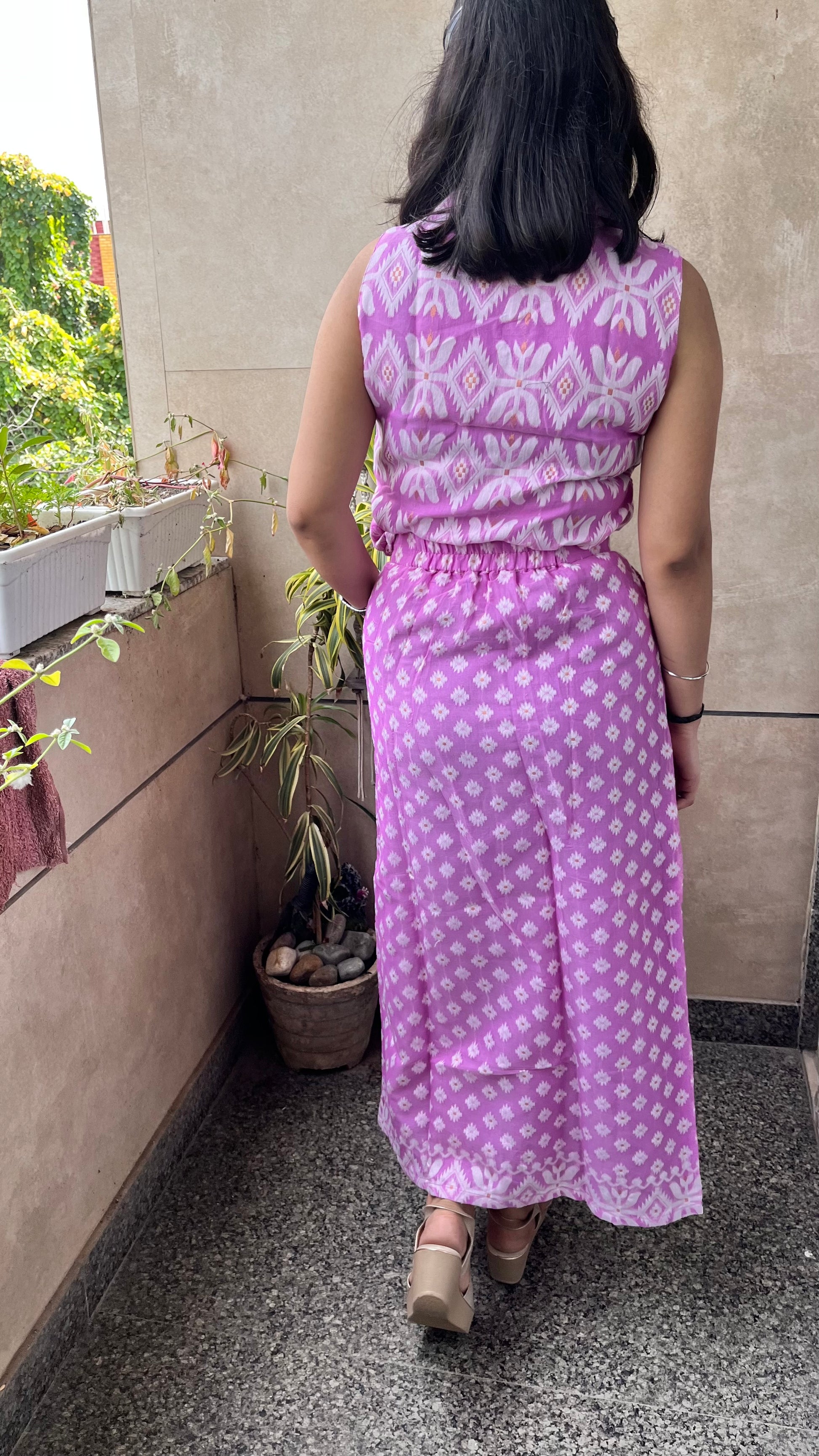 - Skirt has belt in front and elasticated from the back. It has zip and hook.