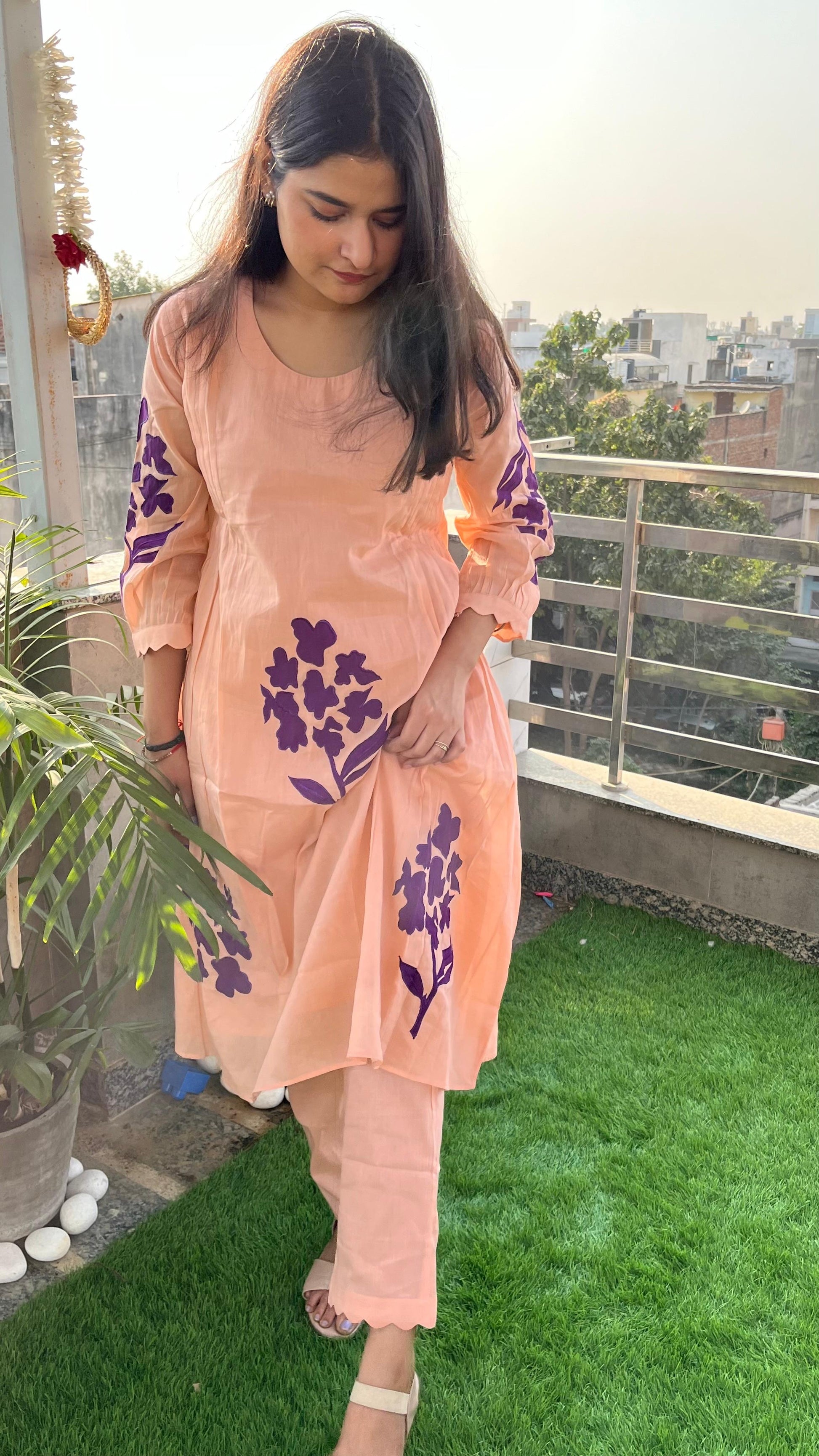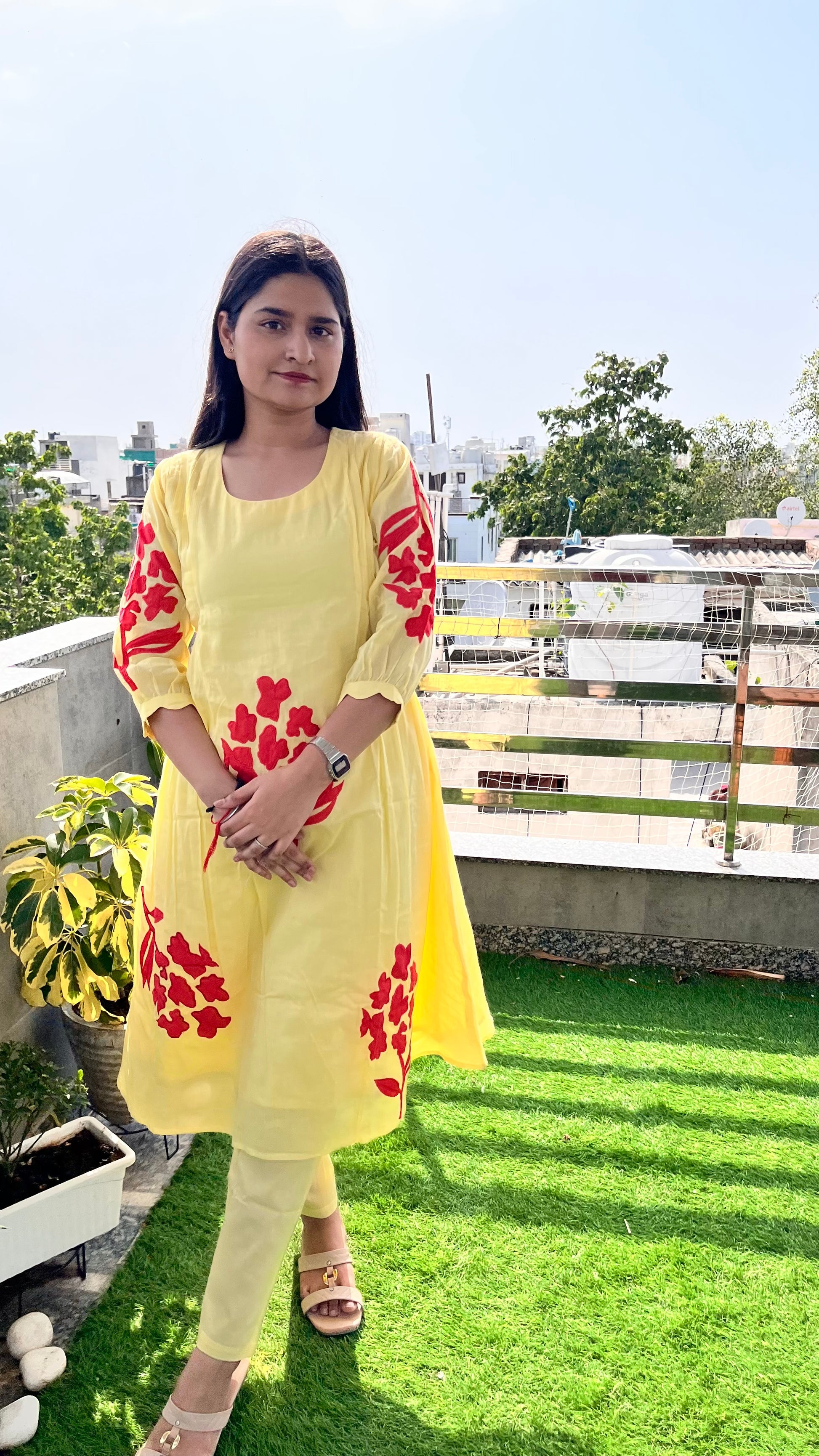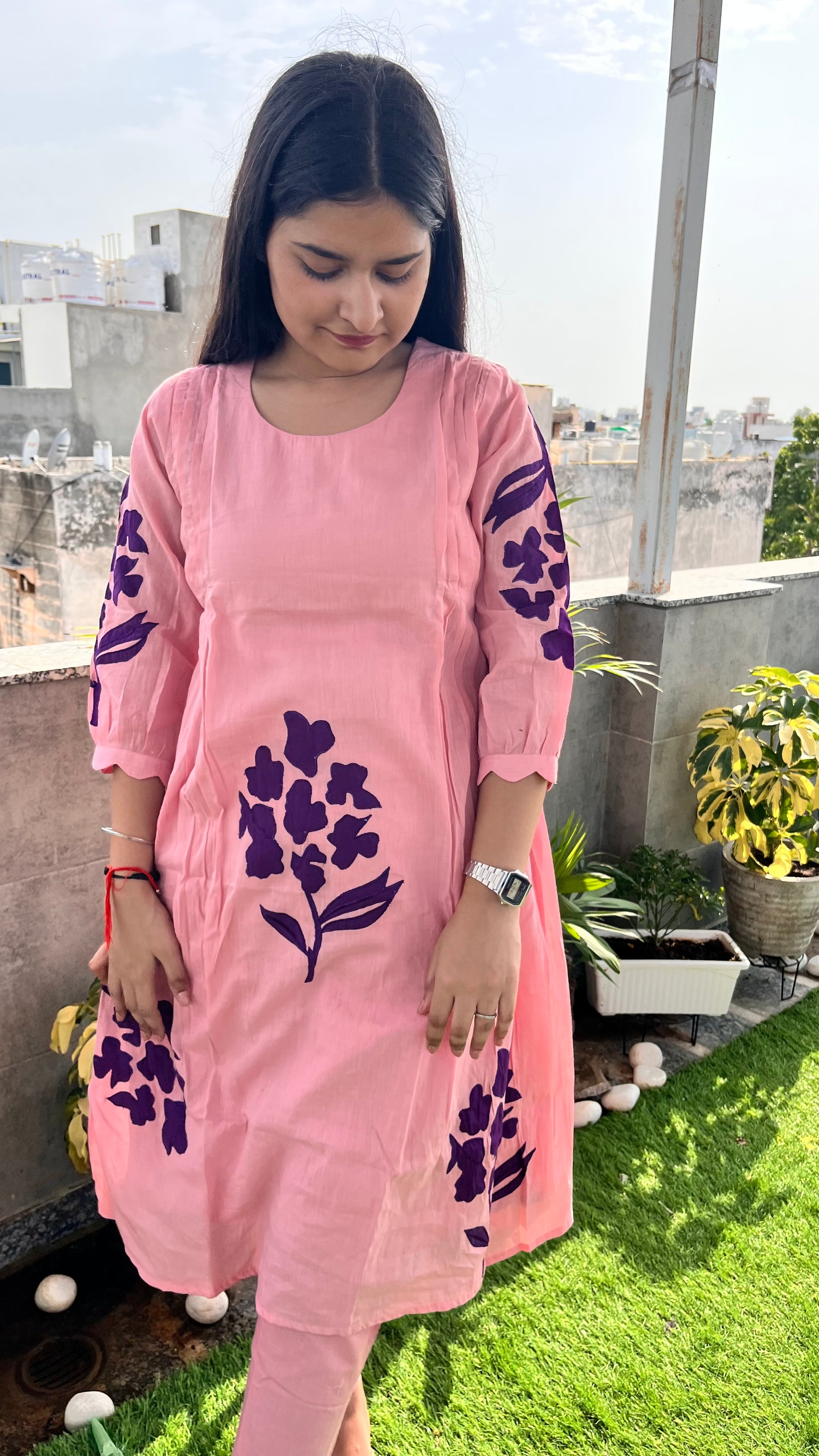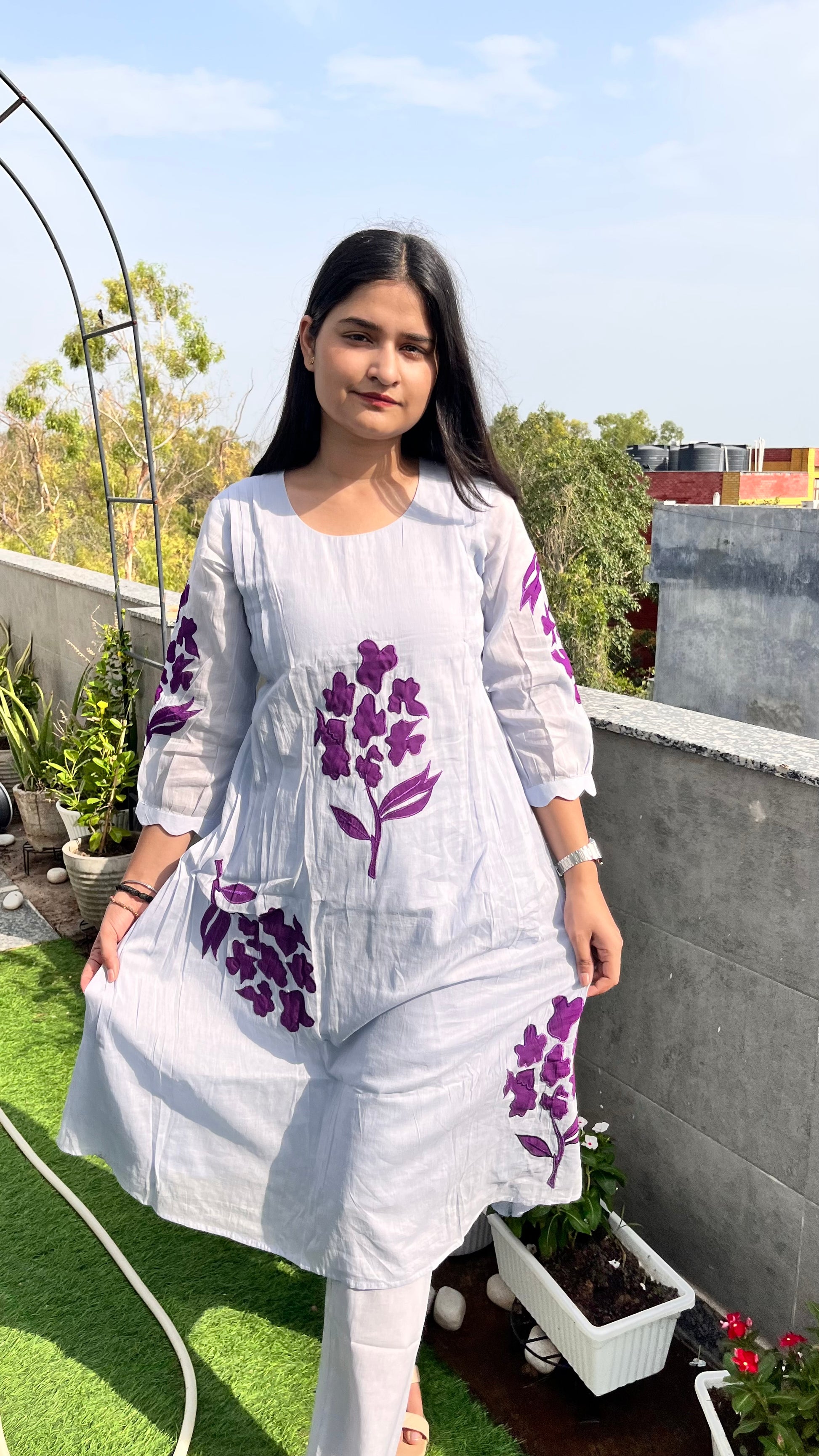 The top features a built-in lining for a smooth, polished look, complemented by intricate appliqué work that adds a stylish floral touch.