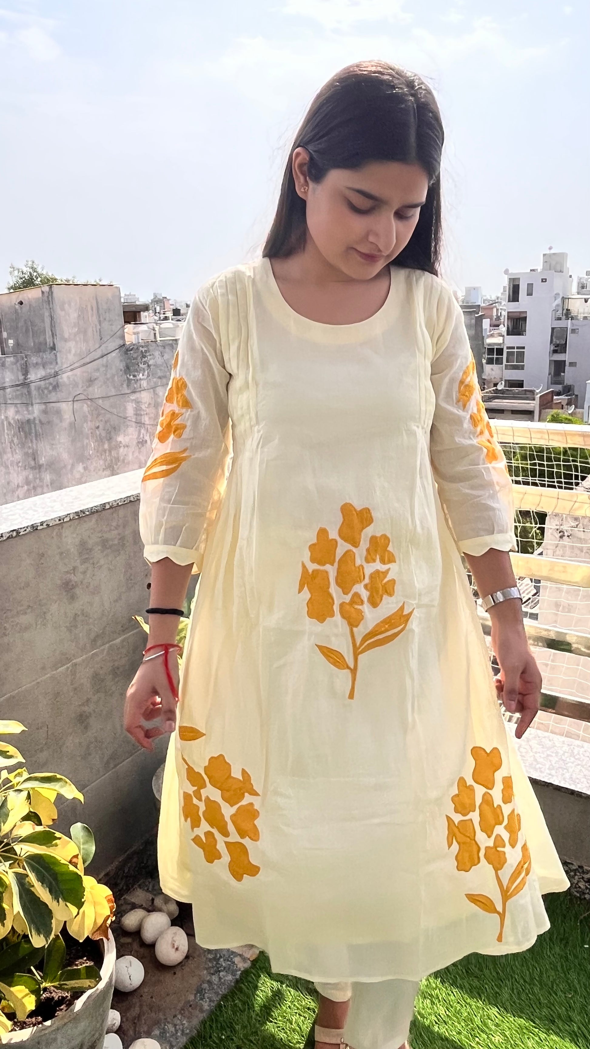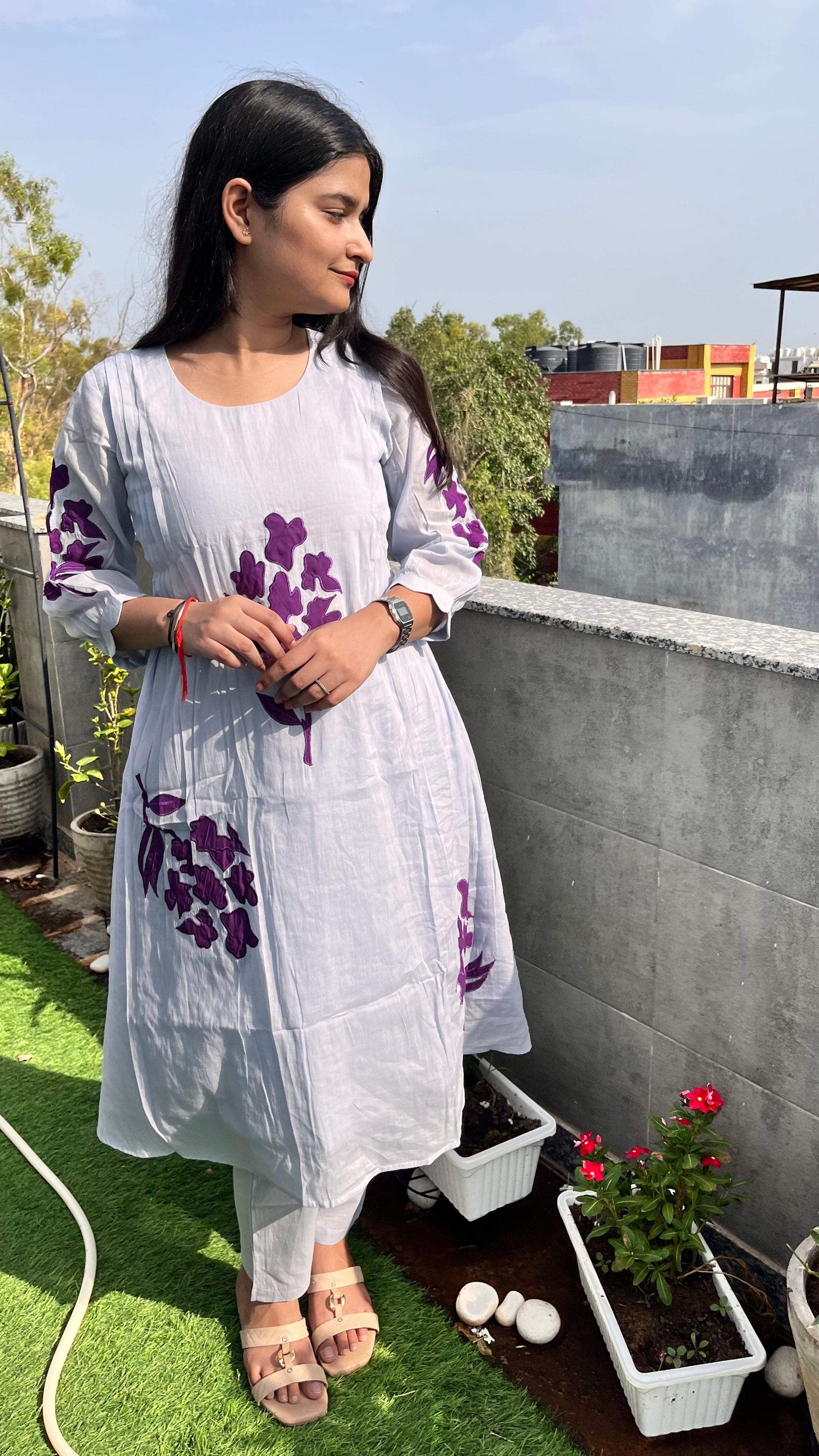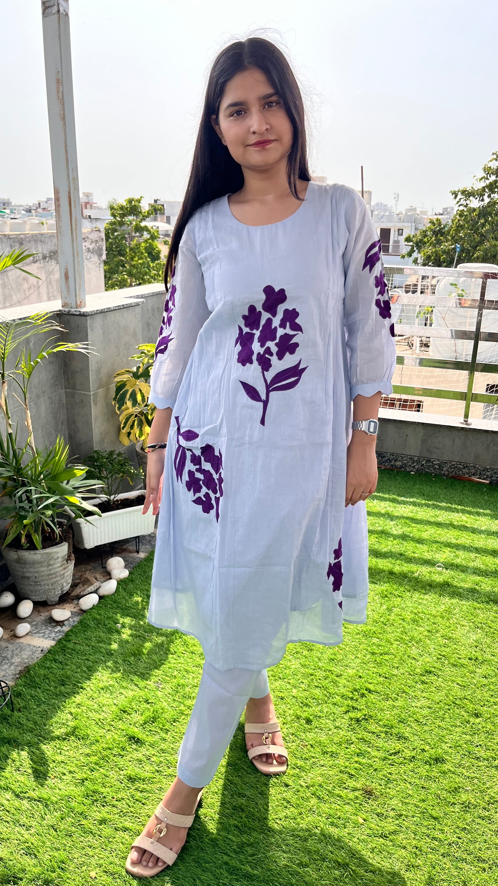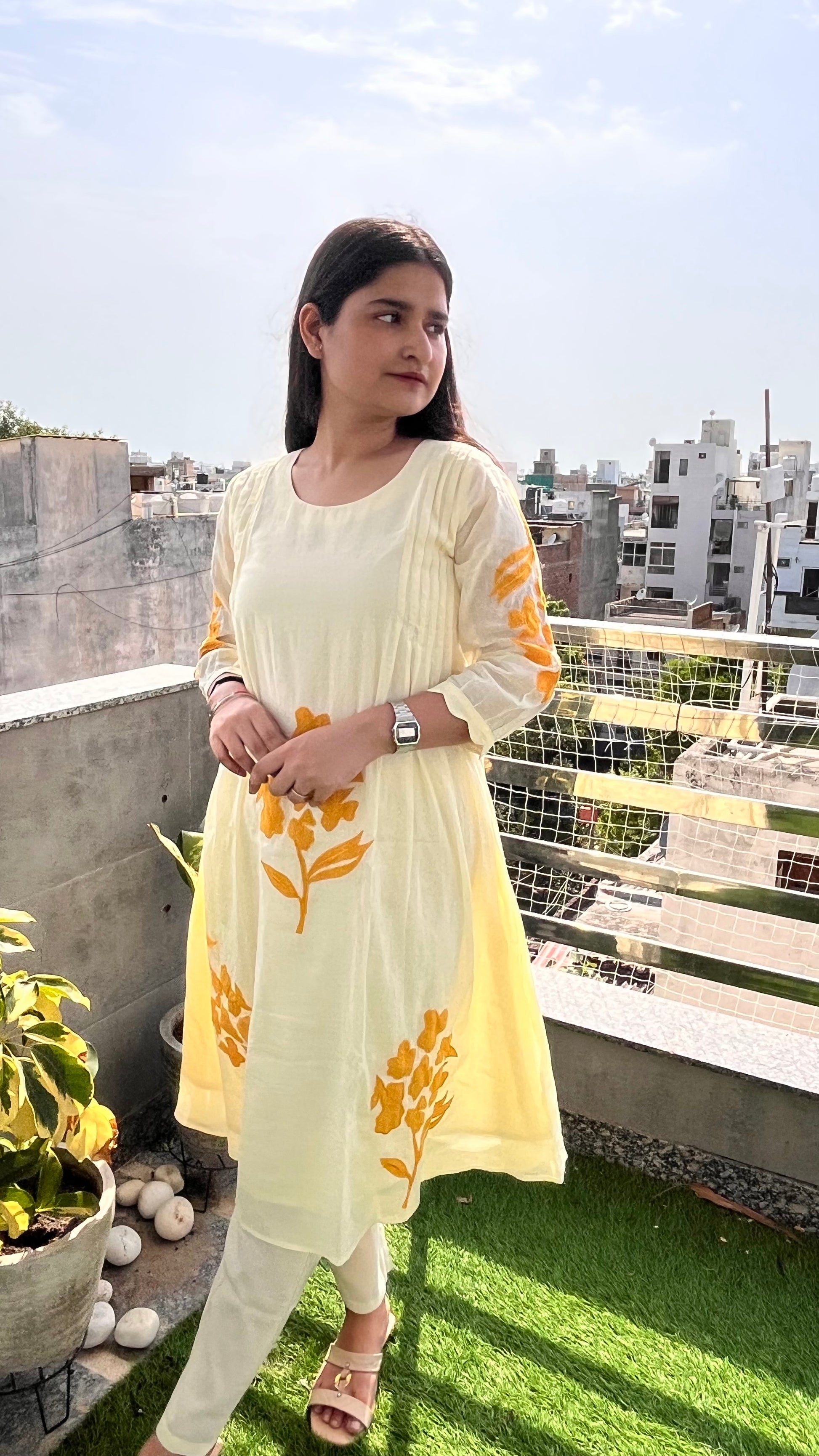 The top features a built-in lining for a smooth, polished look, complemented by intricate appliqué work that adds a stylish floral touch.