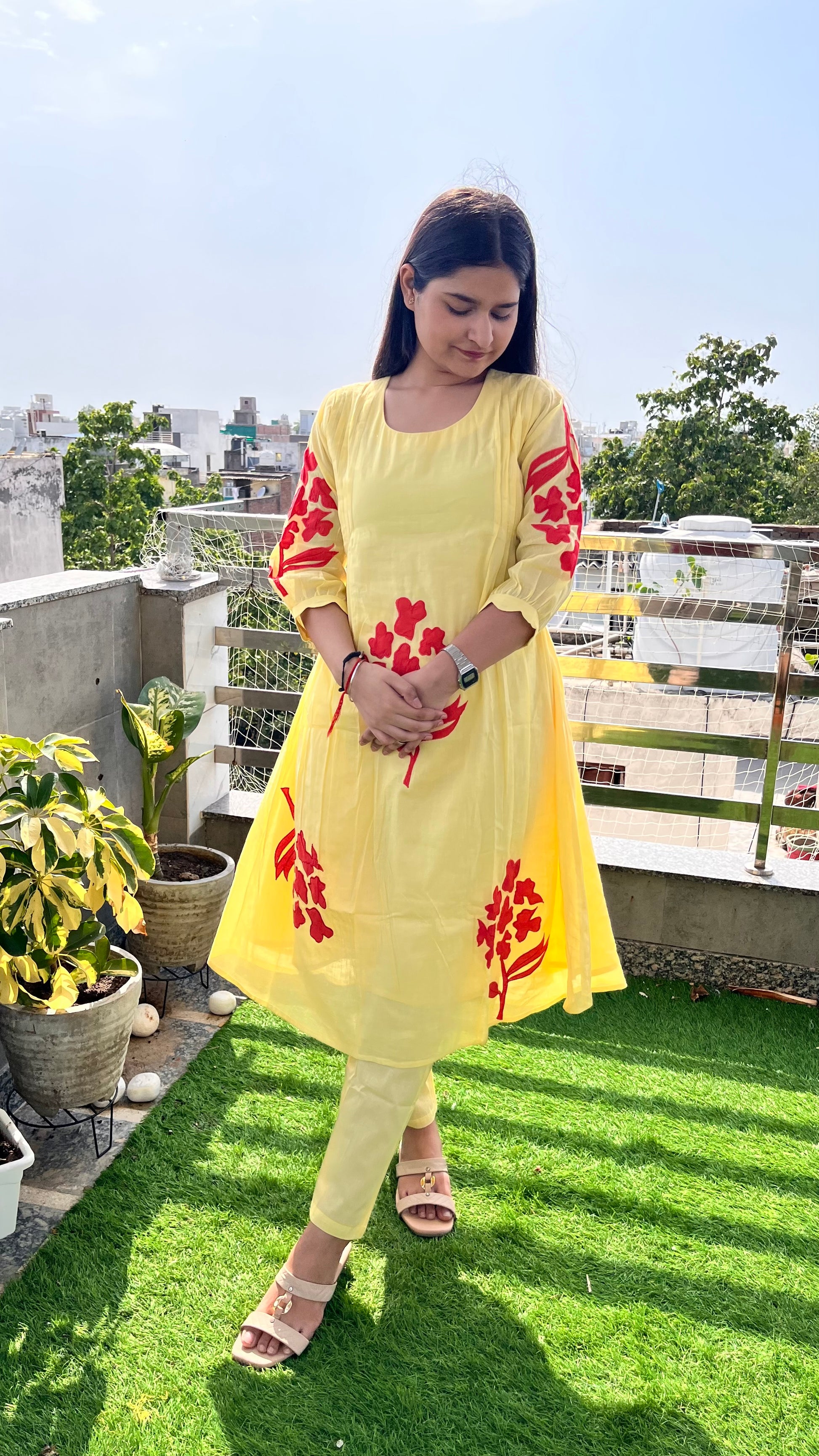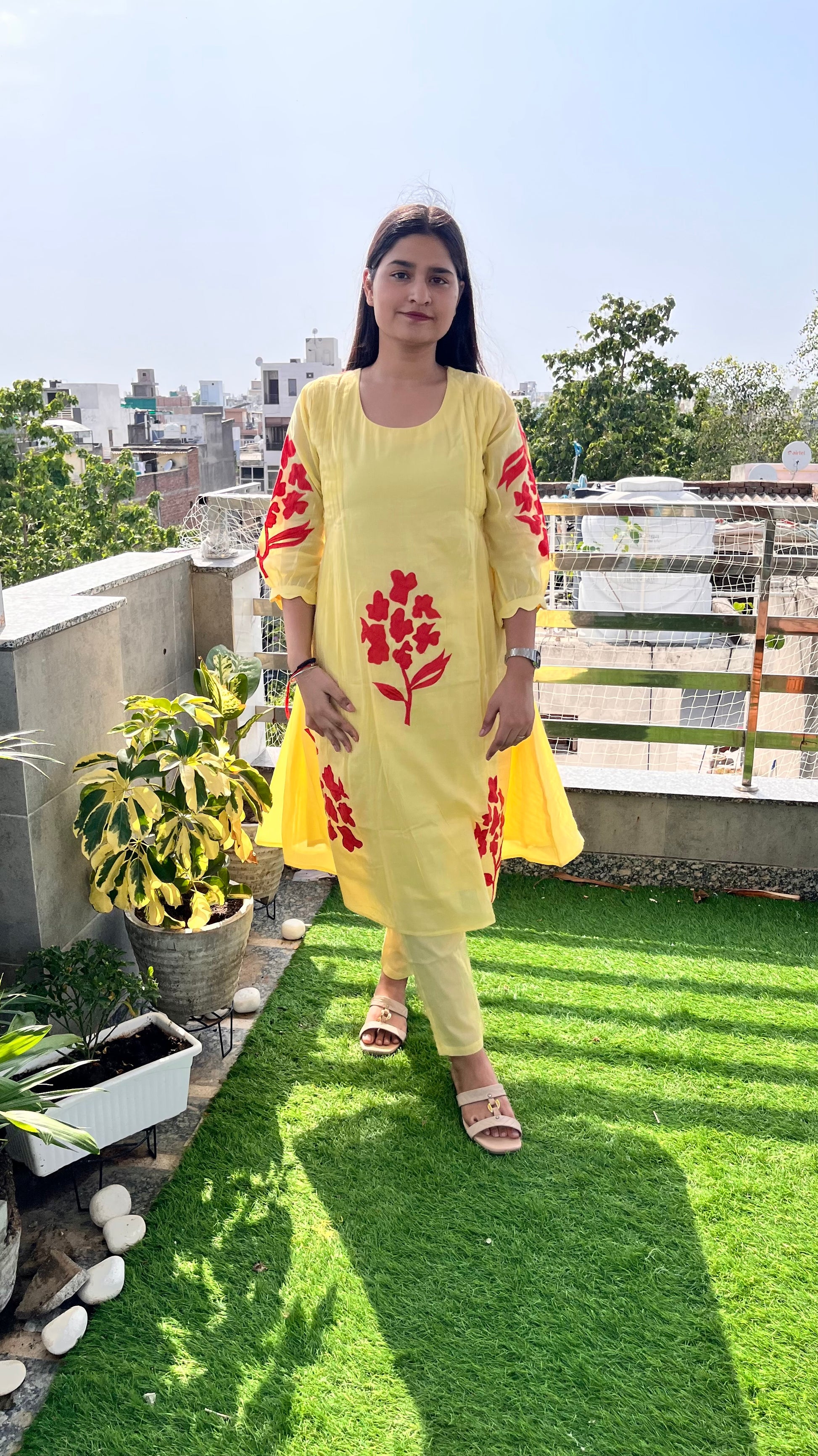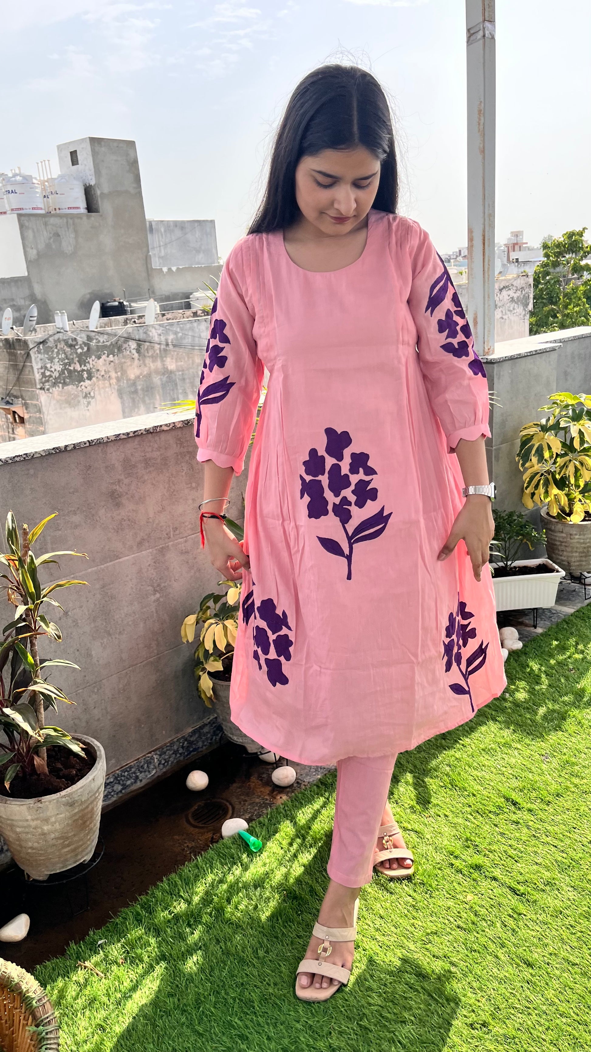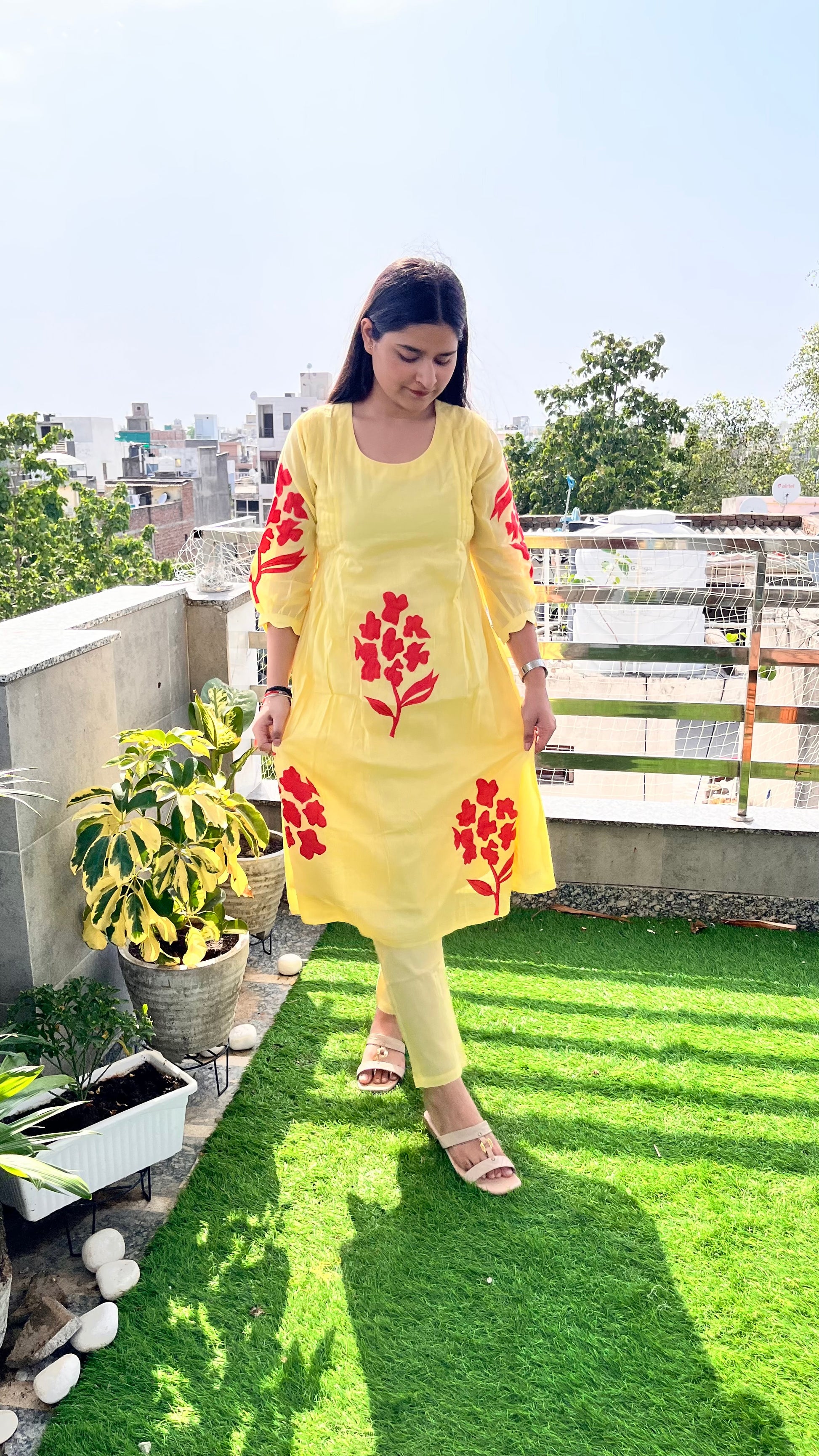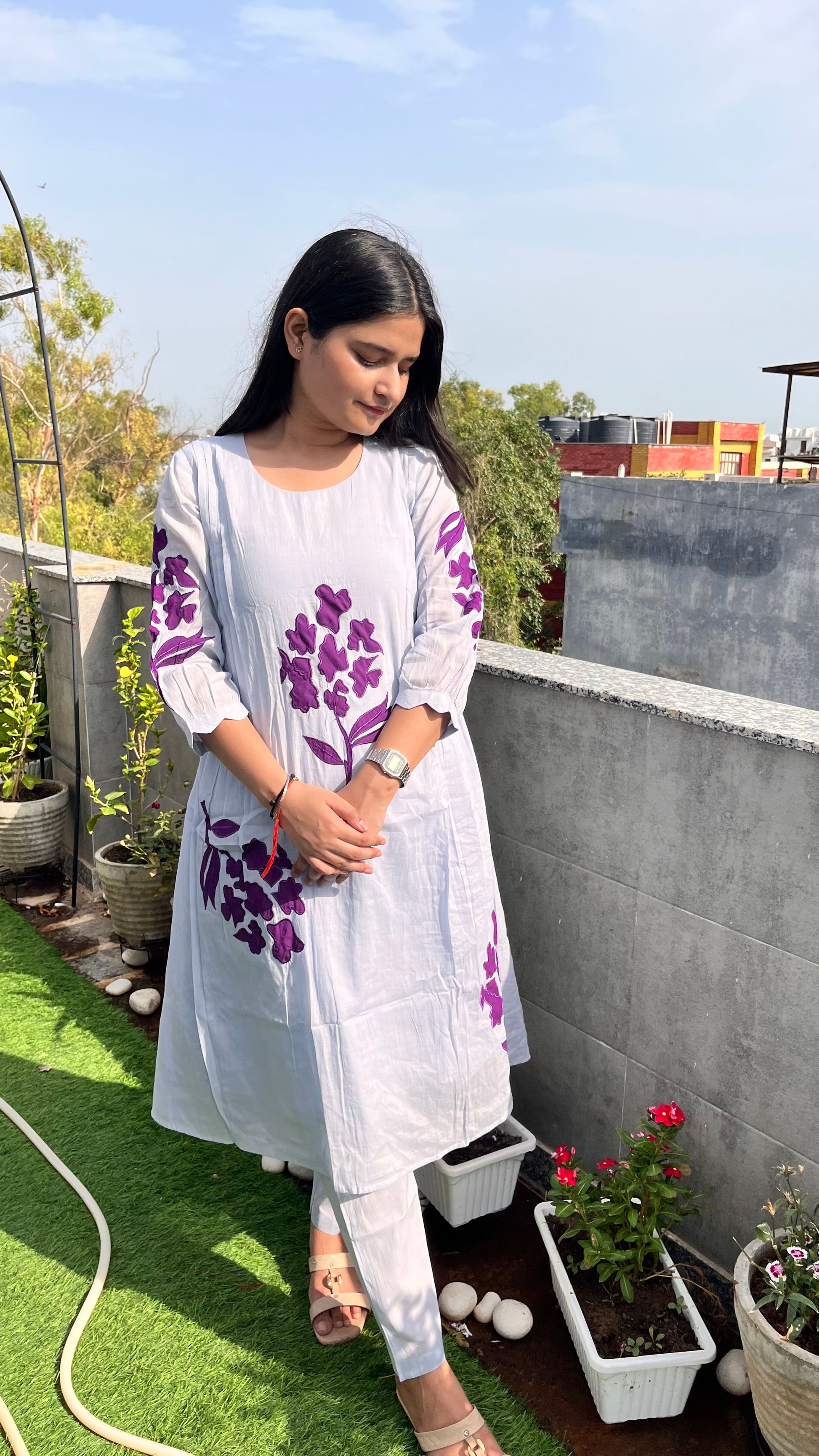 The top features a built-in lining for a smooth, polished look, complemented by intricate appliqué work that adds a stylish floral touch.