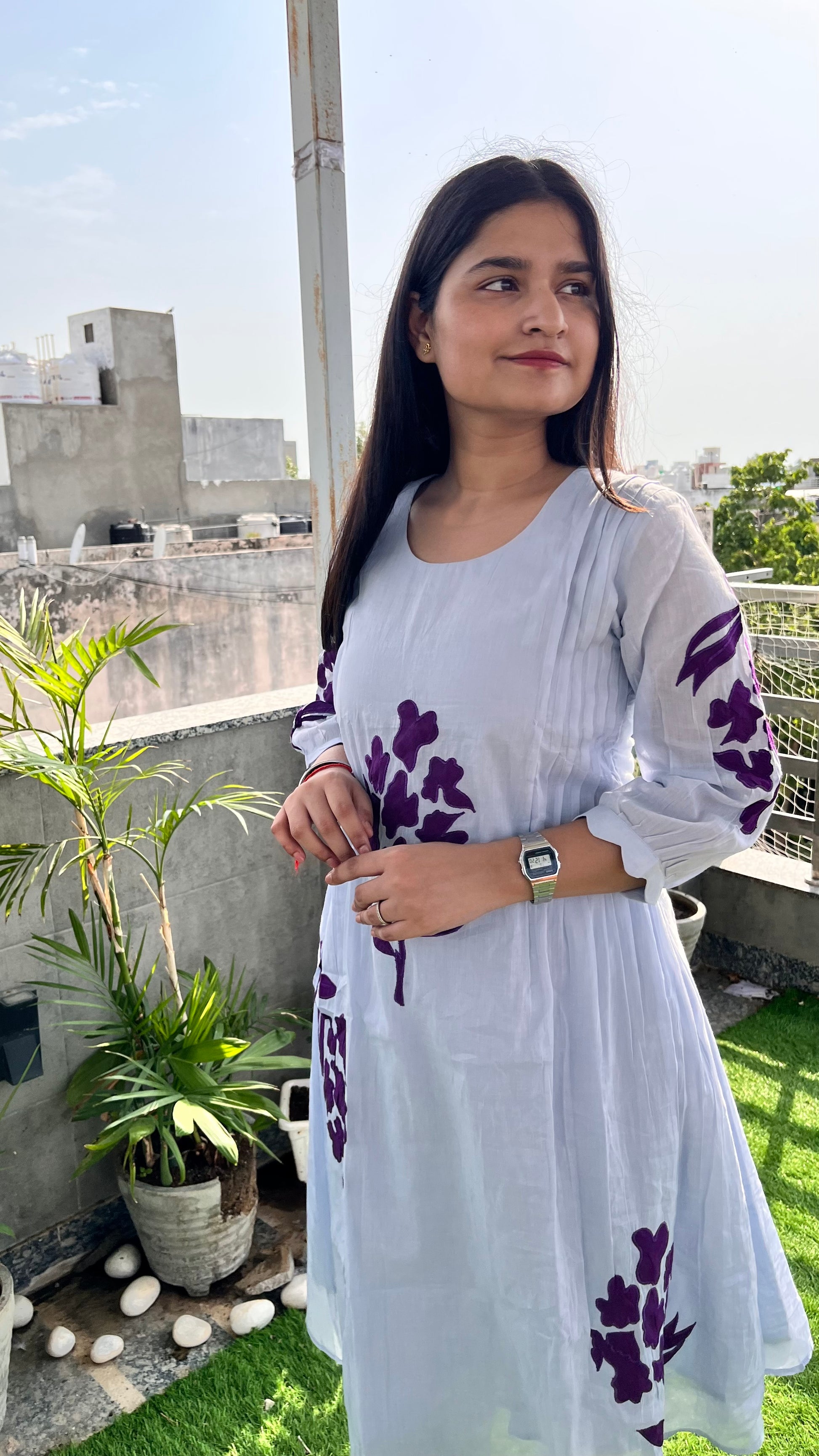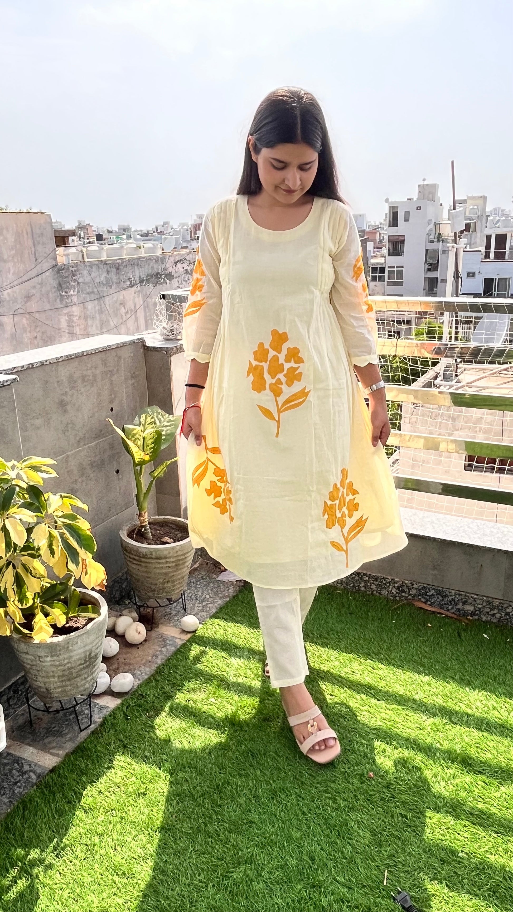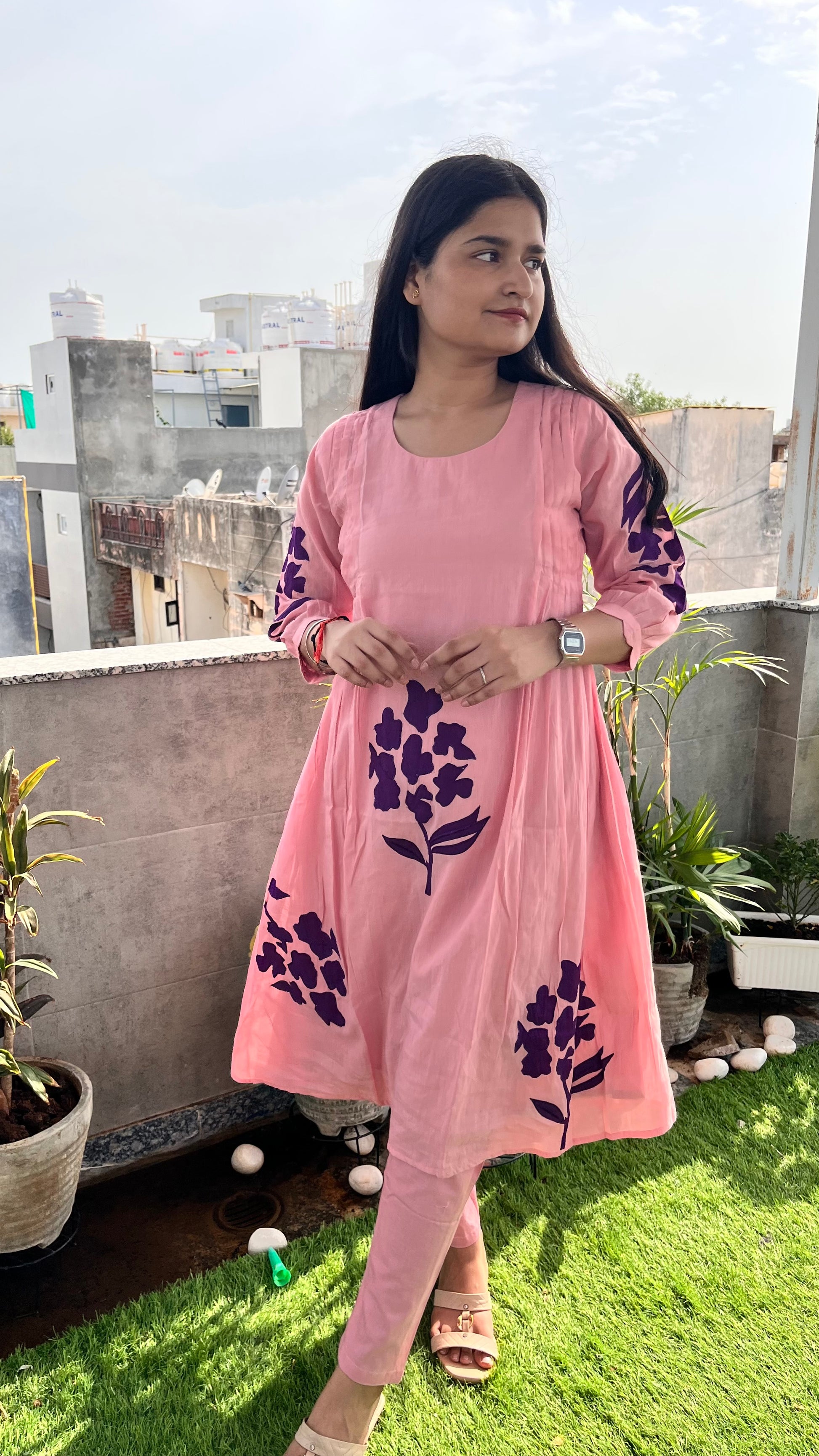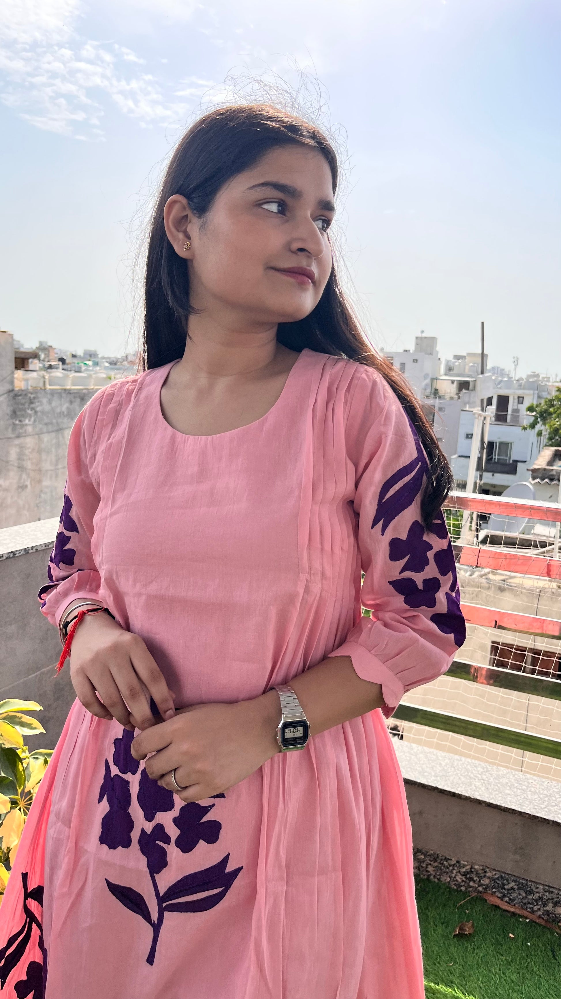 The top features a built-in lining for a smooth, polished look, complemented by intricate appliqué work that adds a stylish floral touch.