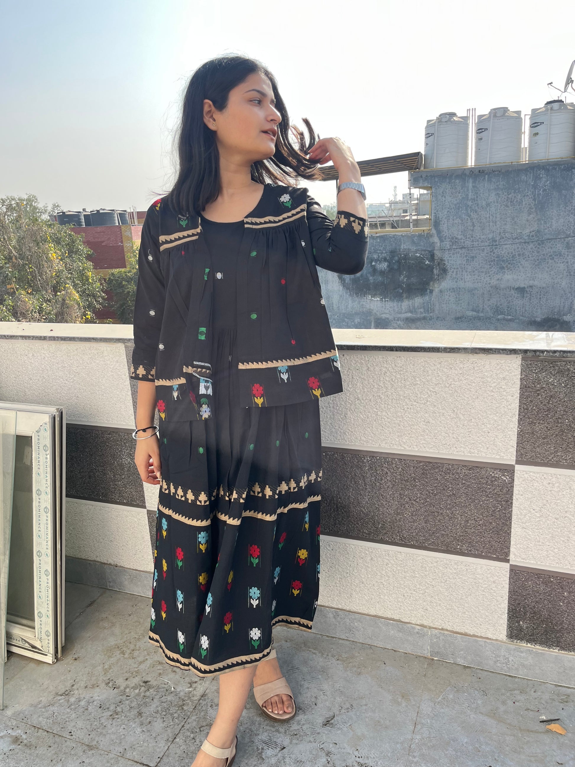 - Very unique and stylish jacket (can be worn separately) with beautiful jamdani weave detailing