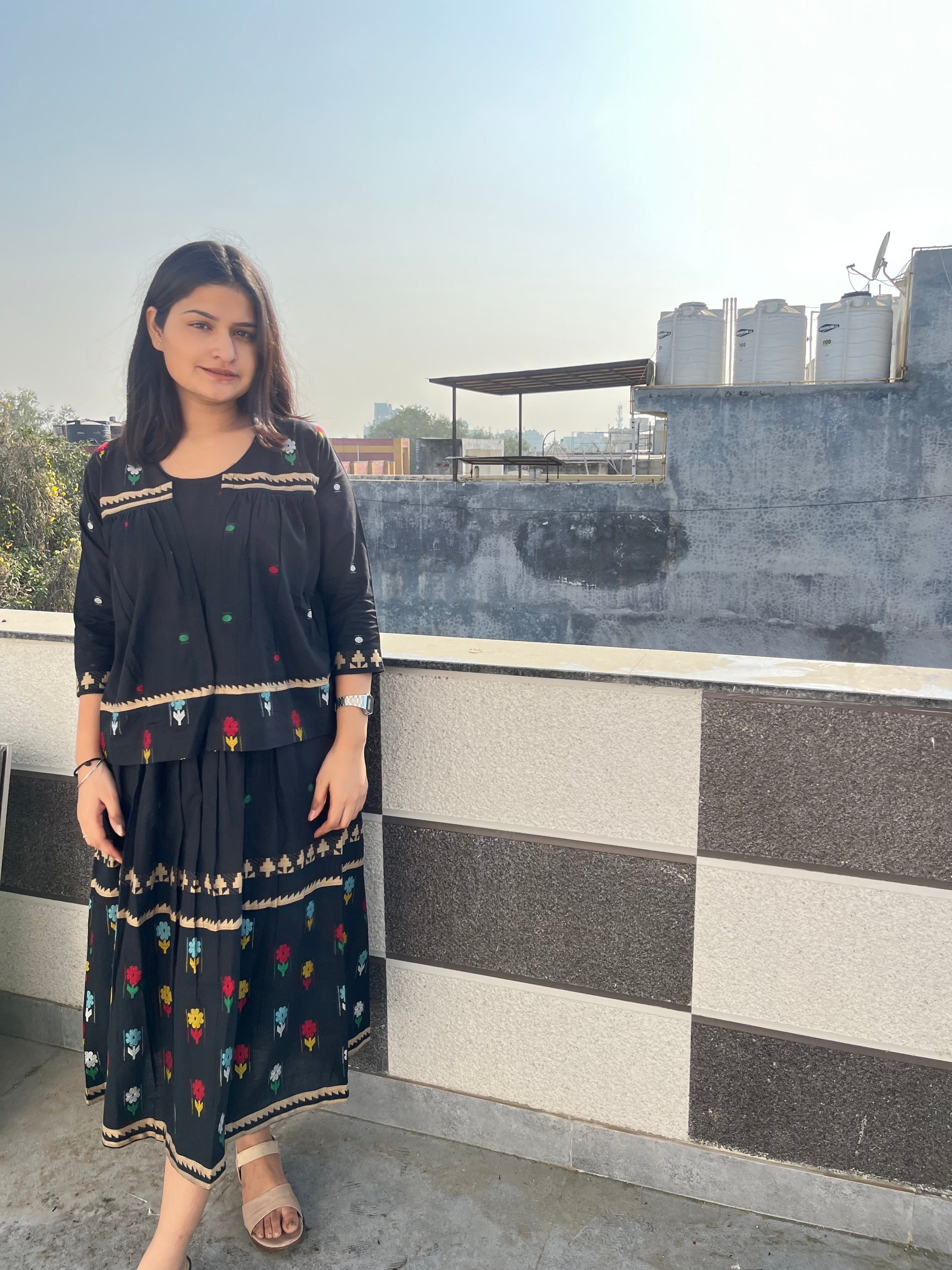 - It has black beautiful inner with beautiful jamdani weave on ghera (cut sleeves) (can be wore separately)