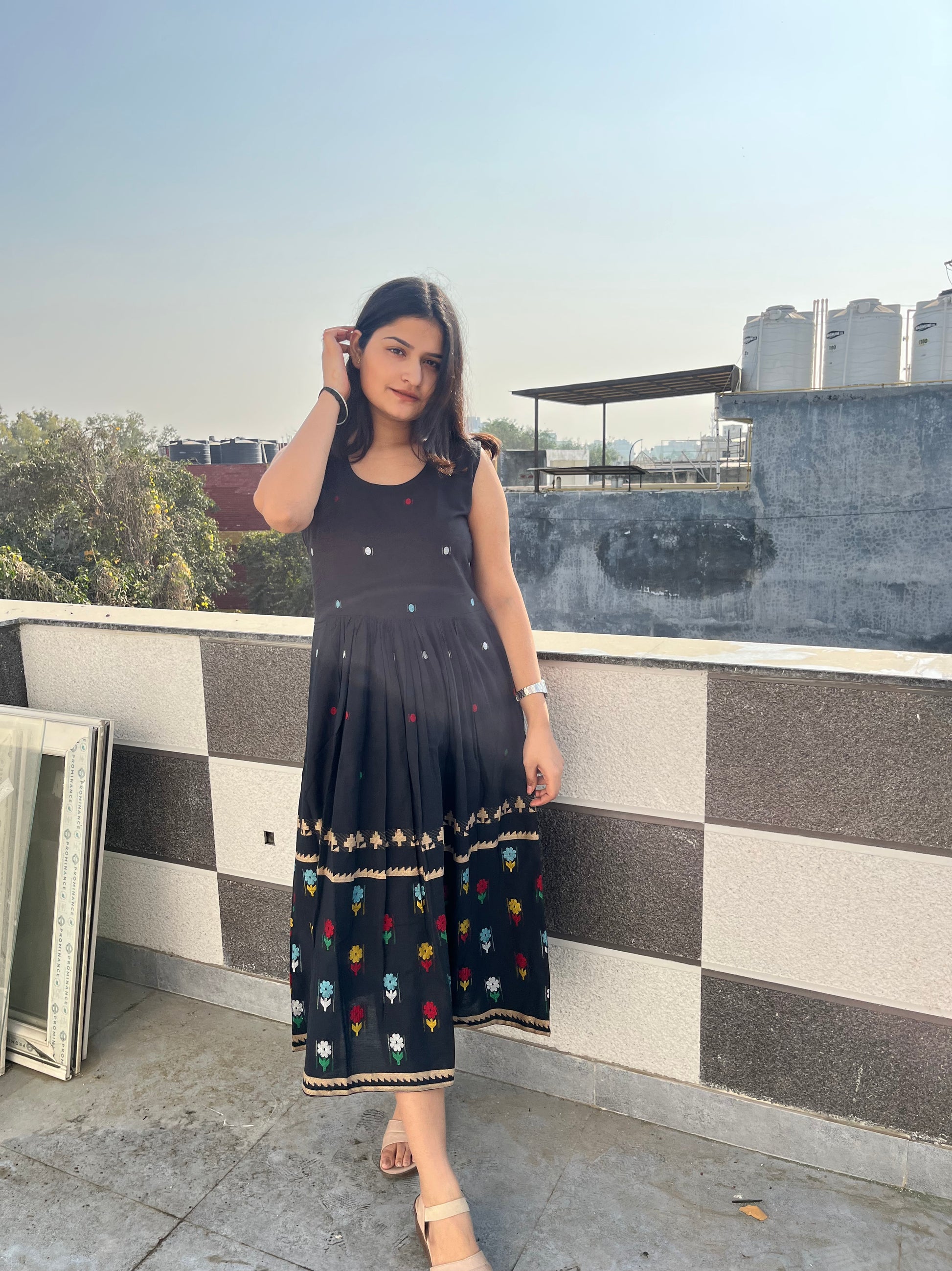 - Jamdani dress features woven jamdani floral patterns.
