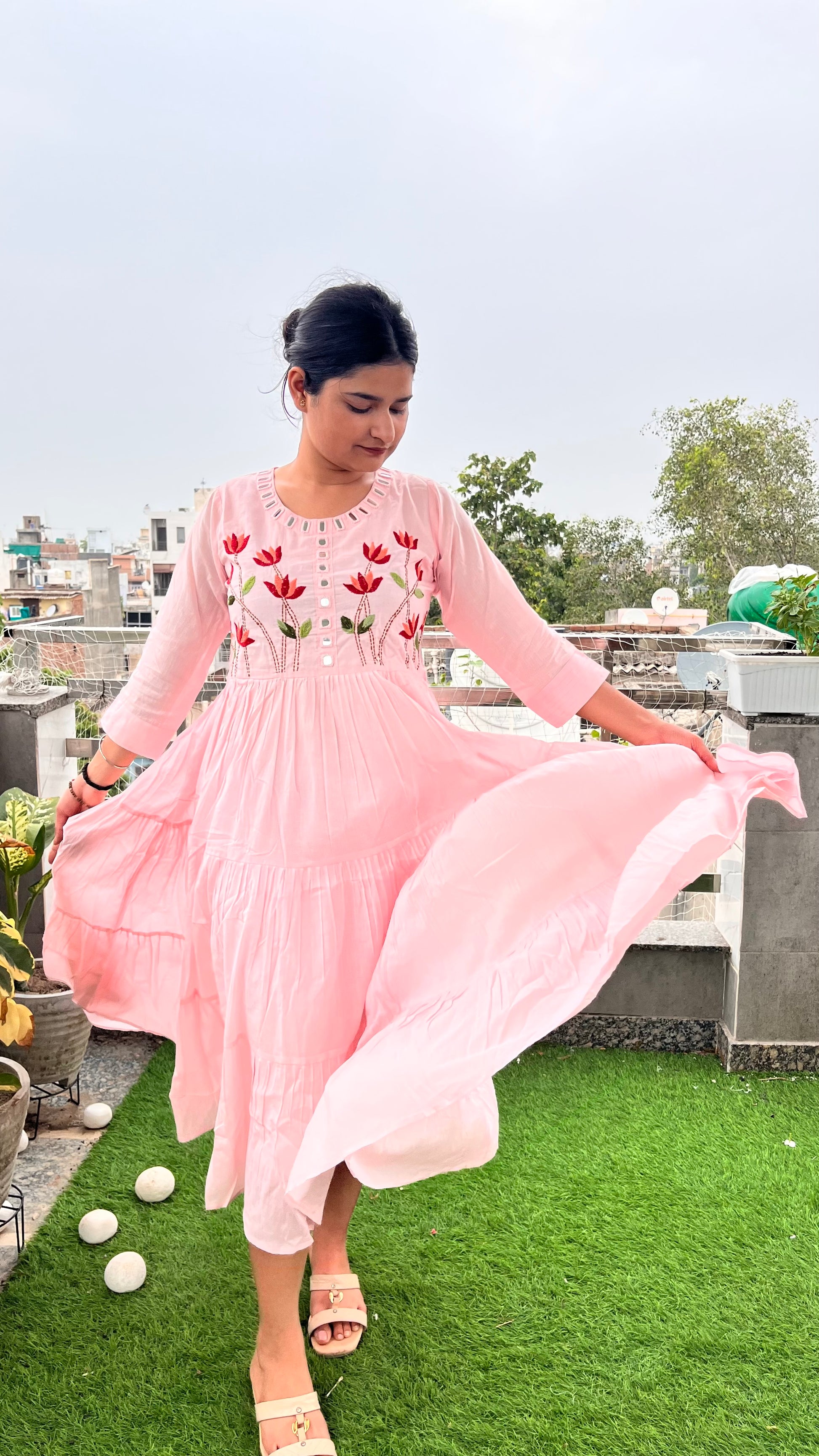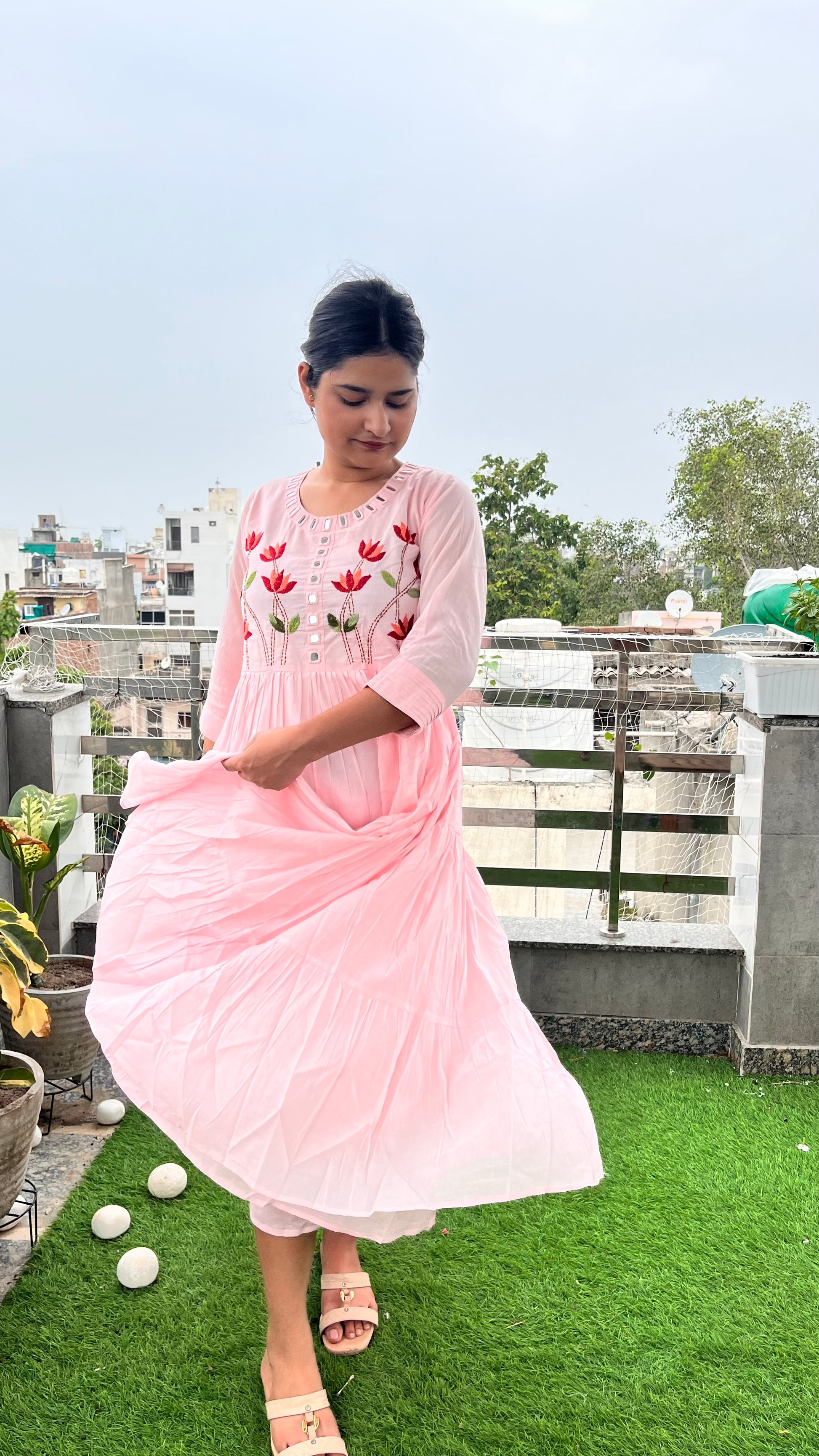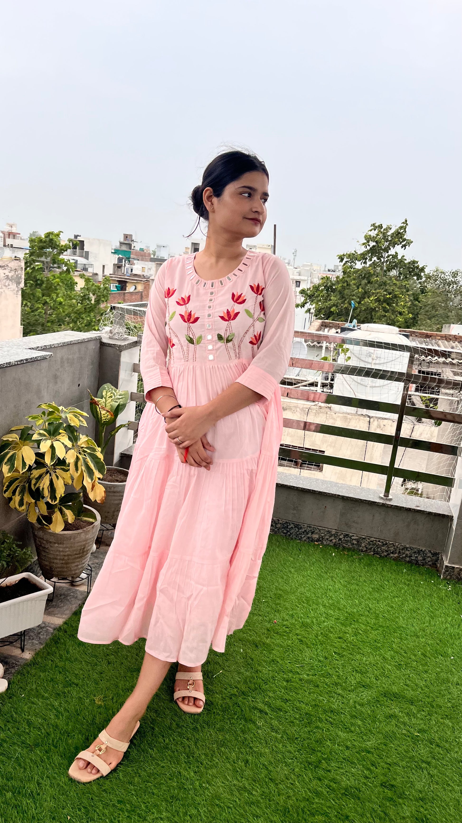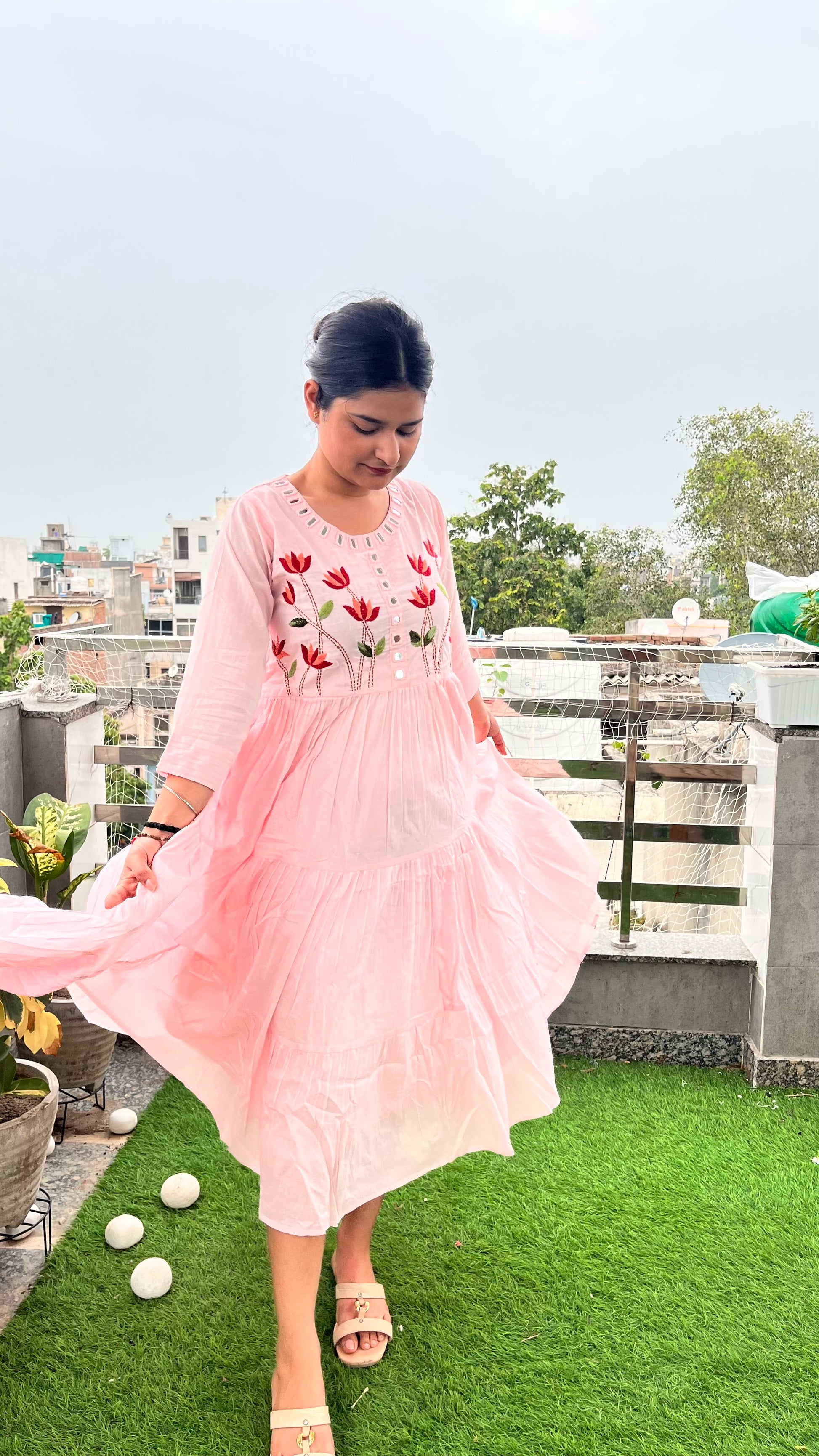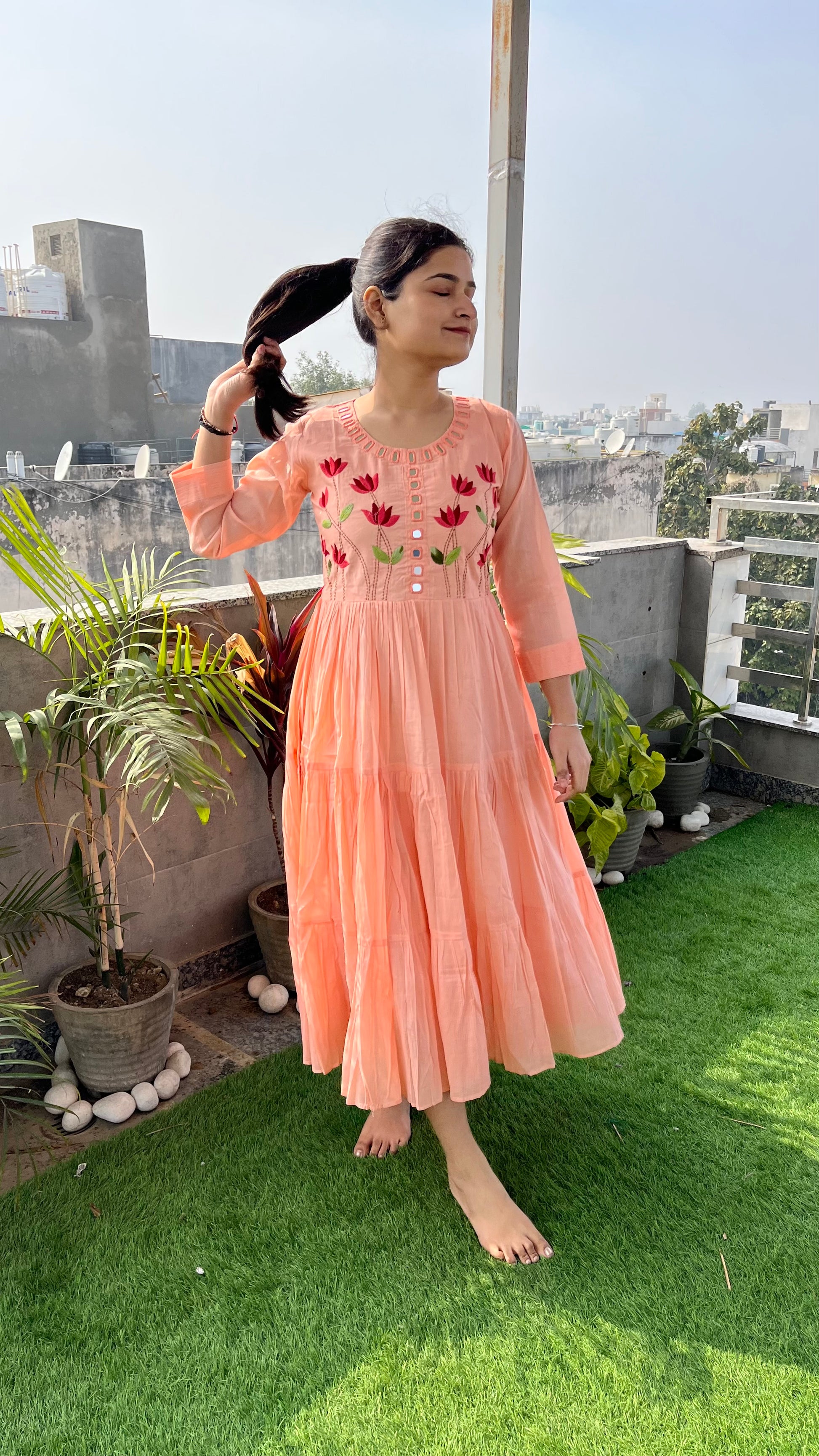 - The highlight of this piece is the intricate hand embroidery with floral motifs, accented by delicate mirror work that adds a subtle sparkle, making it perfect for both casual and festive occasions