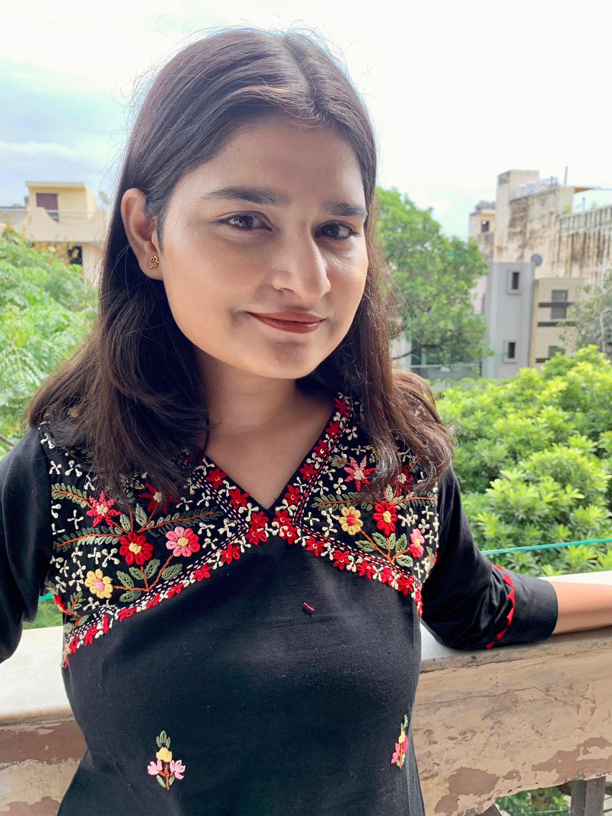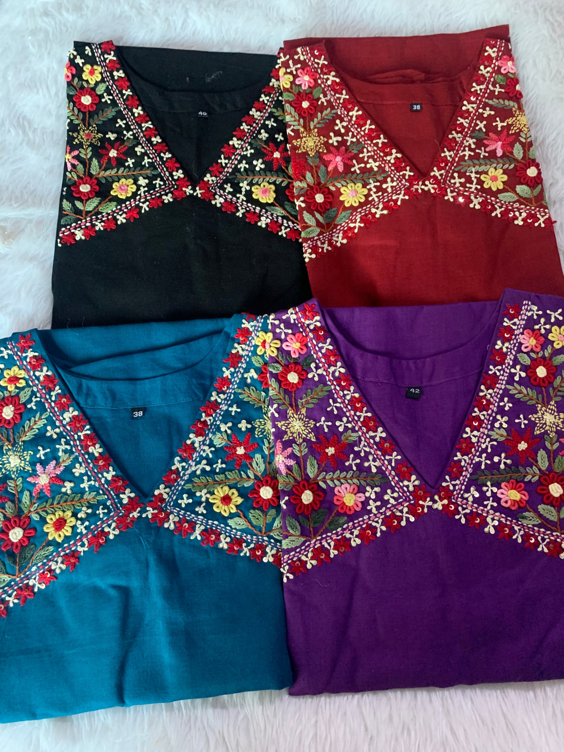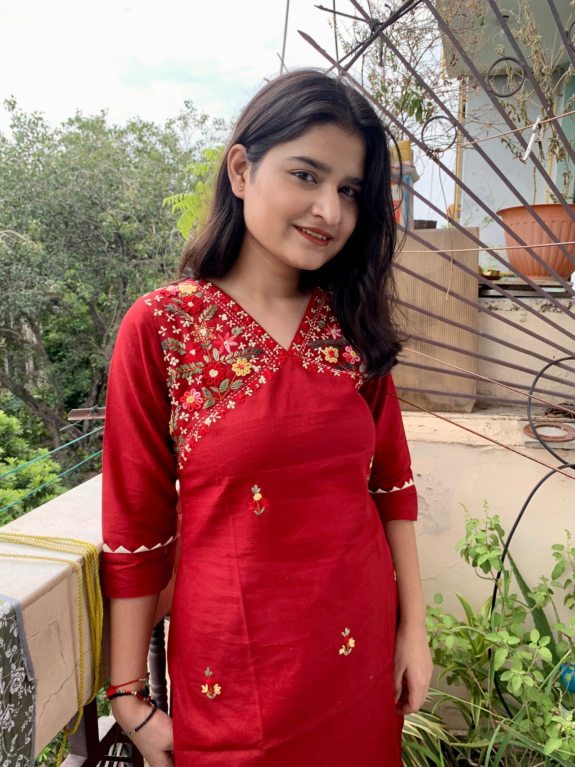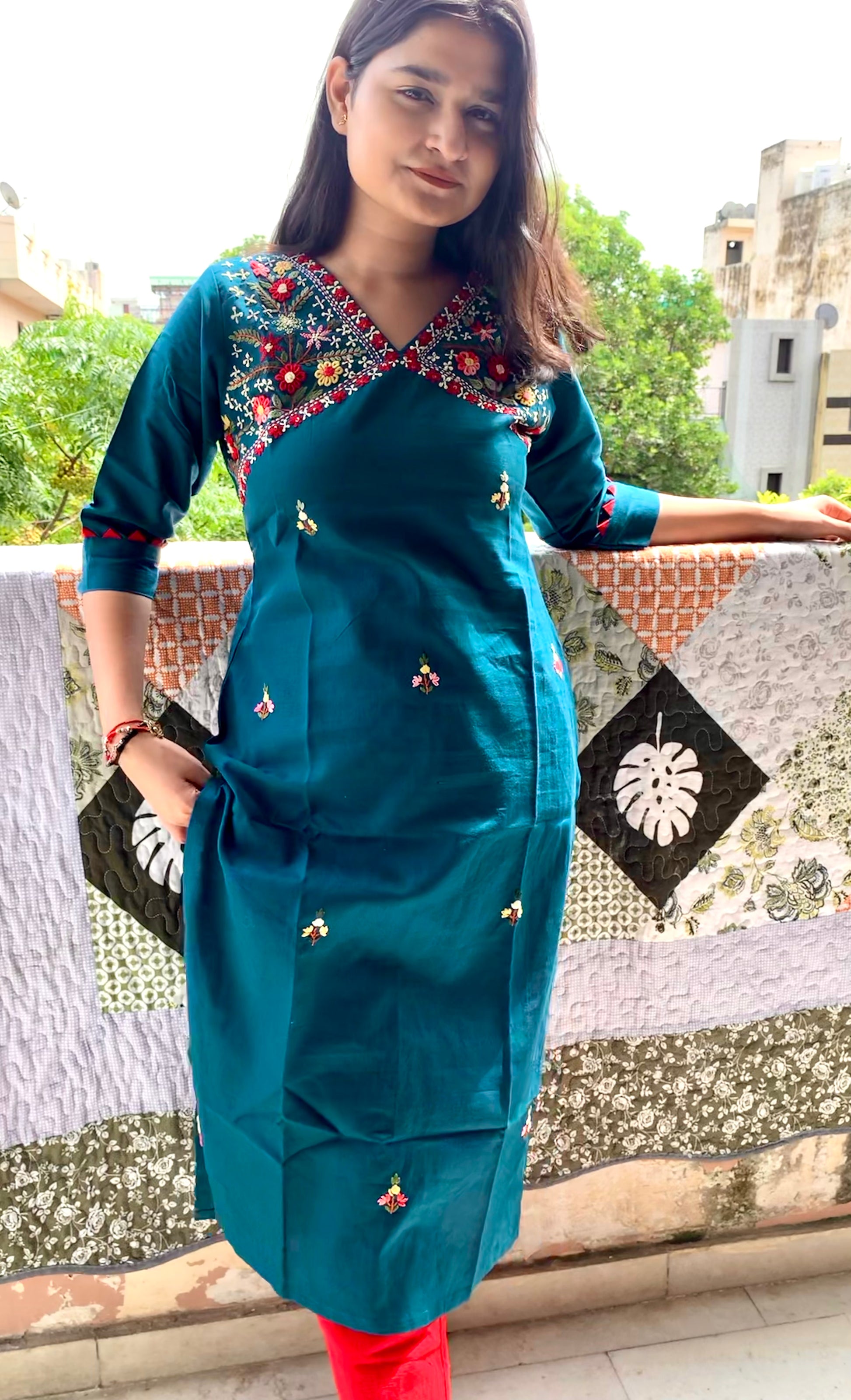 - This stunning kurta design showcases the exquisite hand-embroidered mini lily flowers, adding a touch of elegance to its overall beauty.