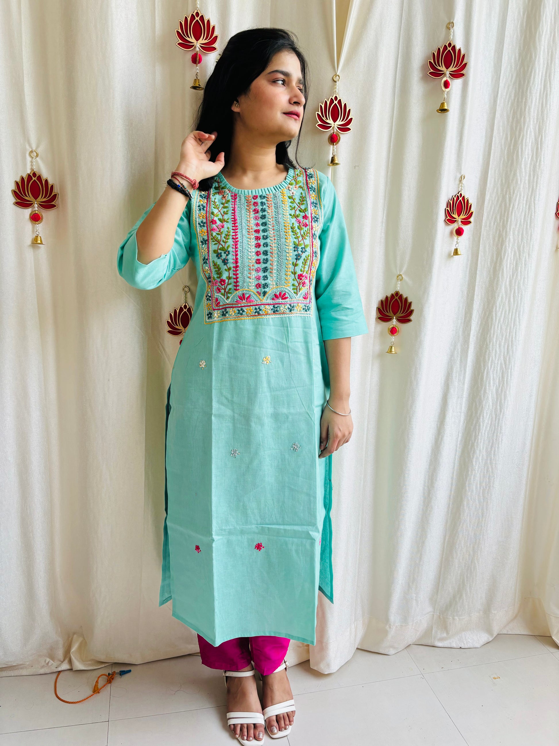 - Elevate your wardrobe with this stunning kurti, artfully crafted by master artisans.