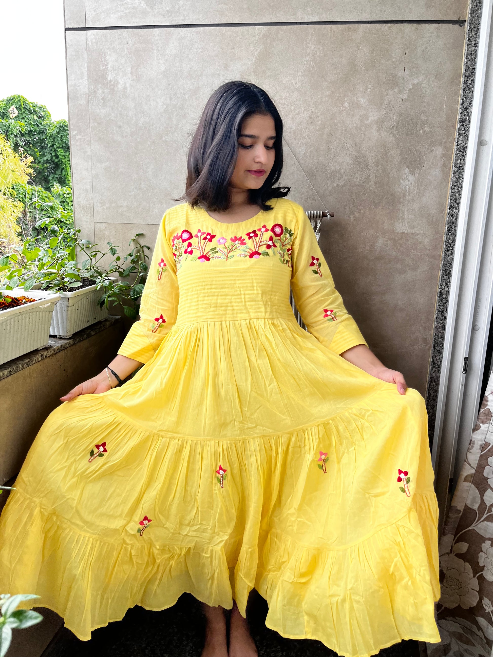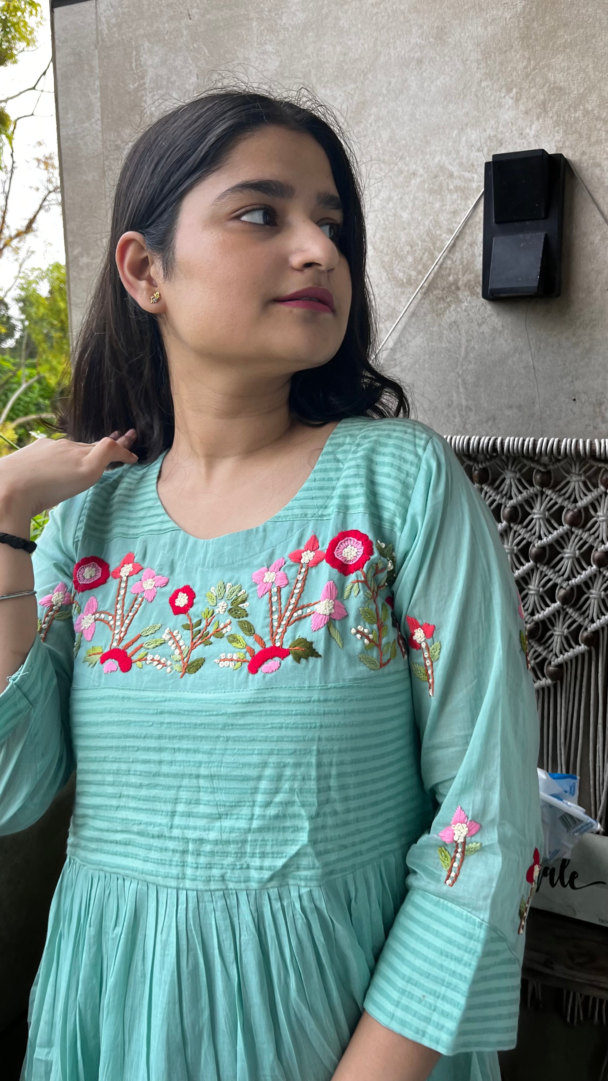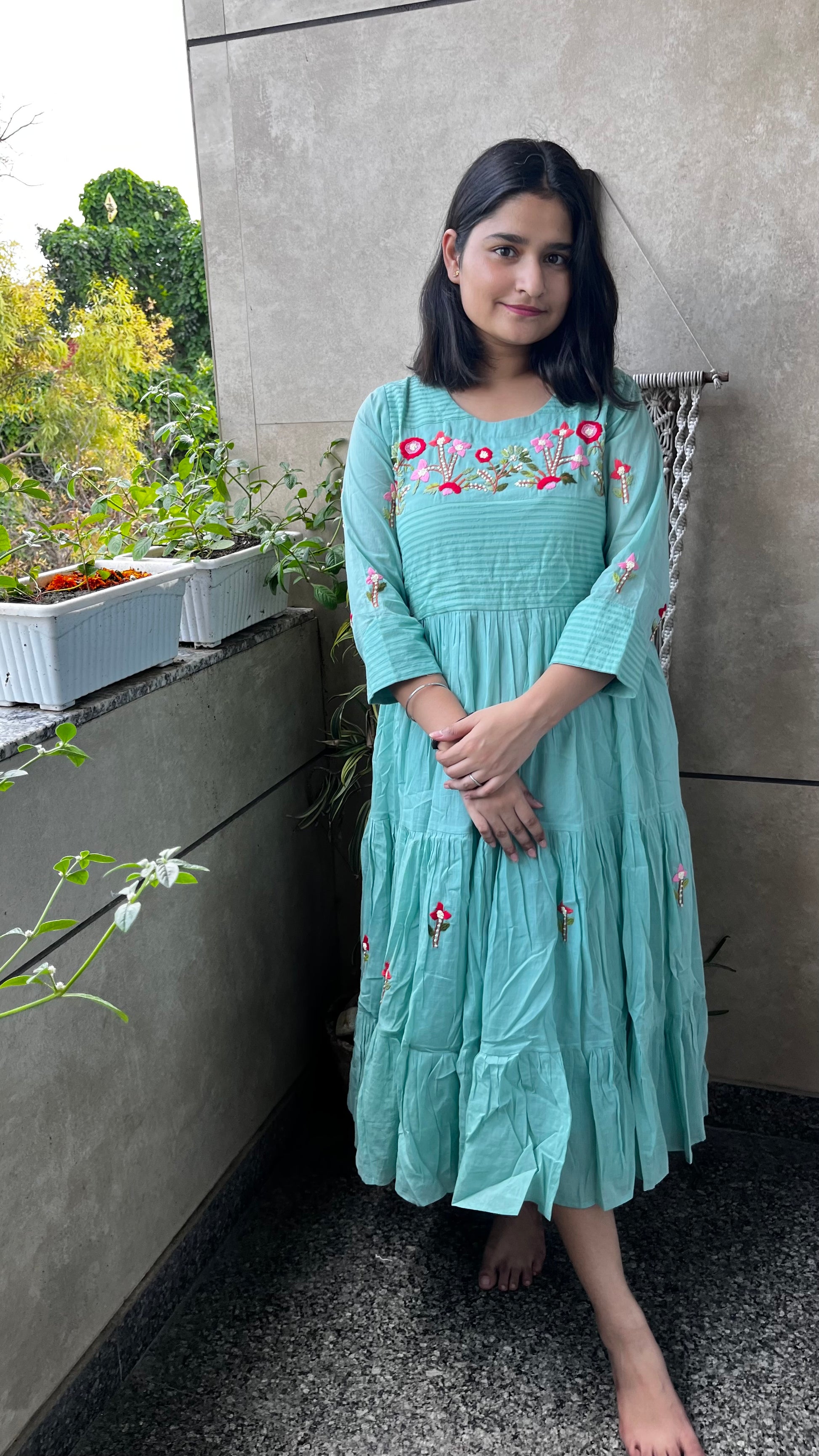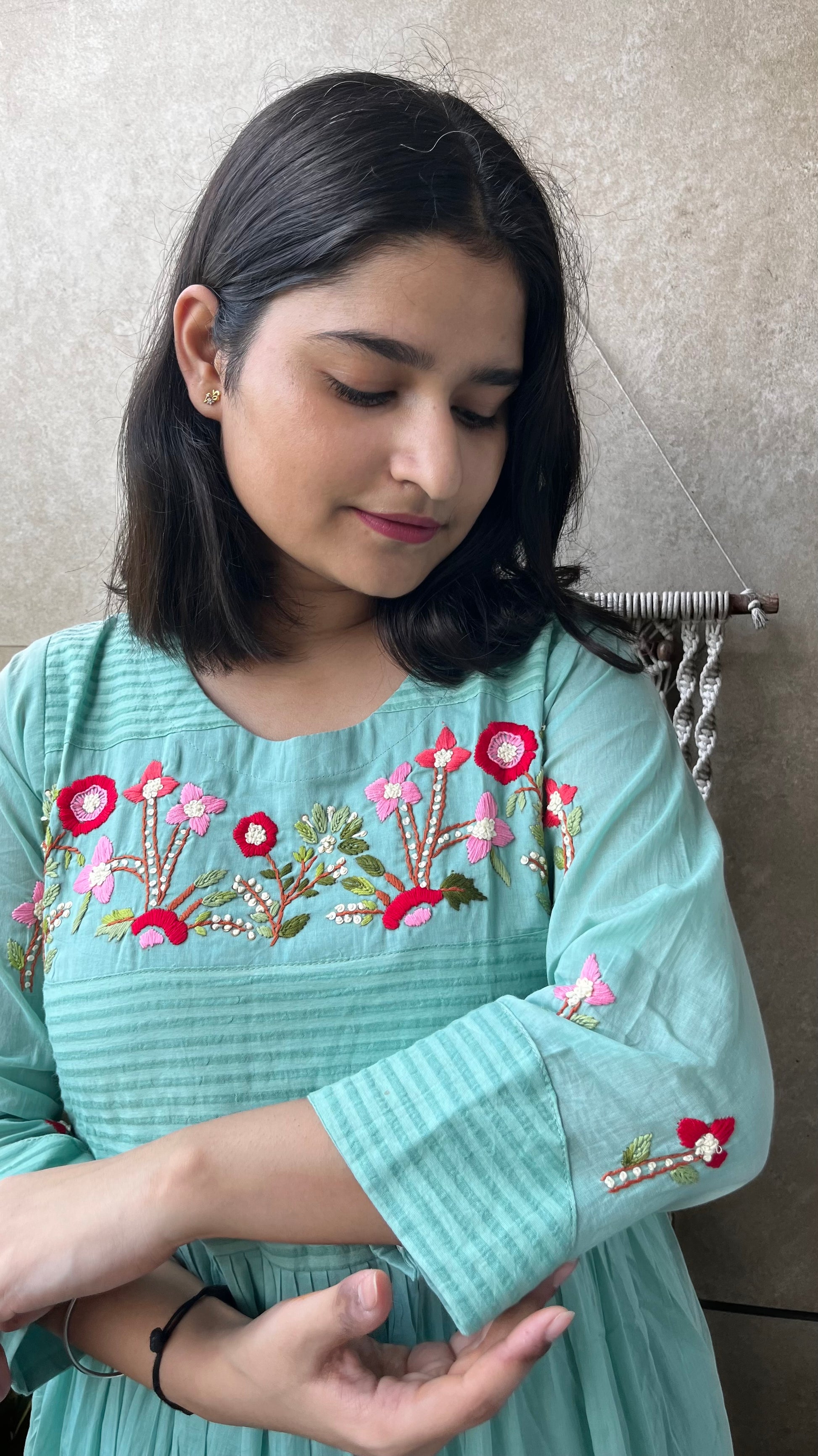 - It has a beautiful hand embroidery on the sleeves, yoke and ghera.