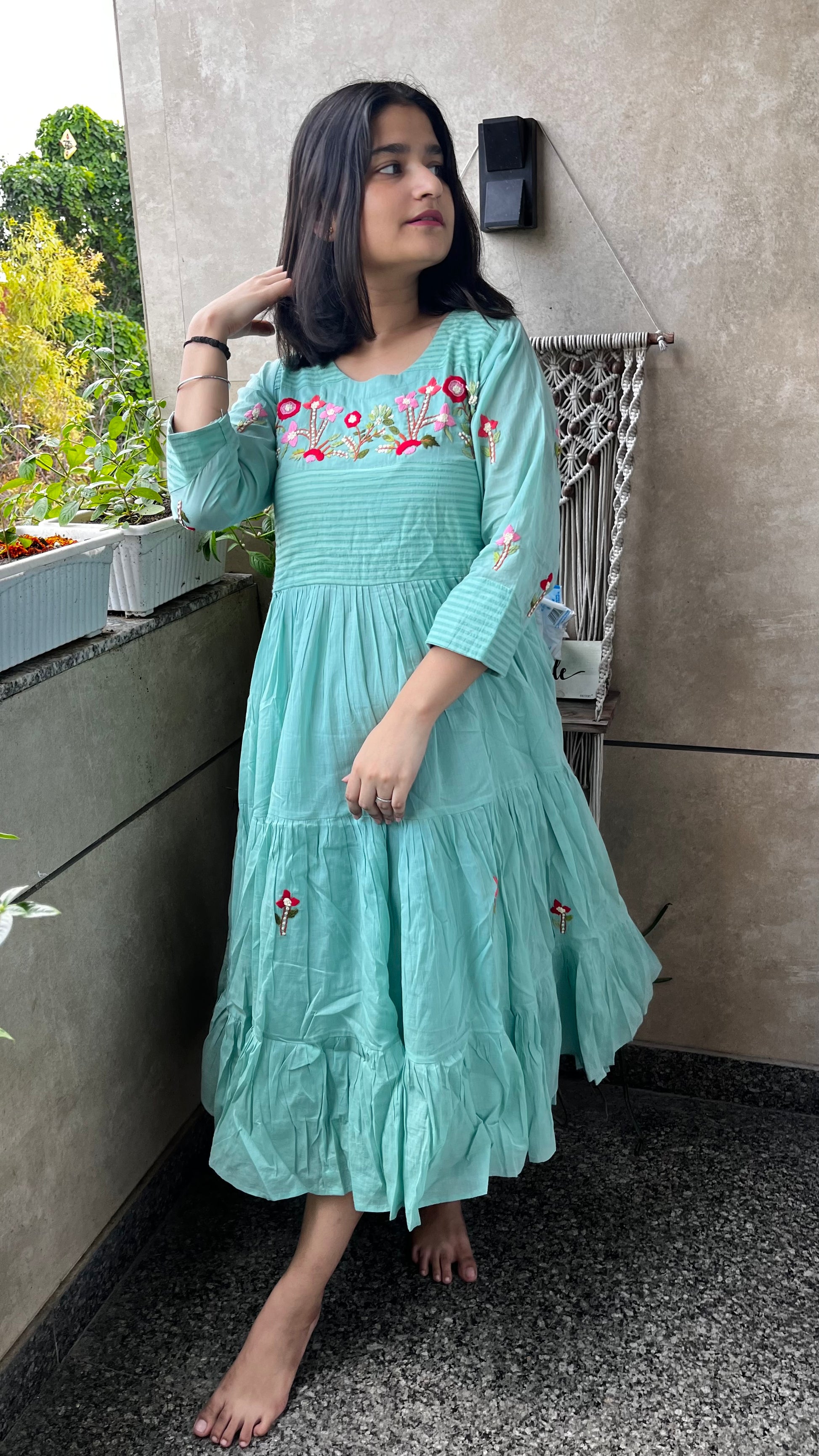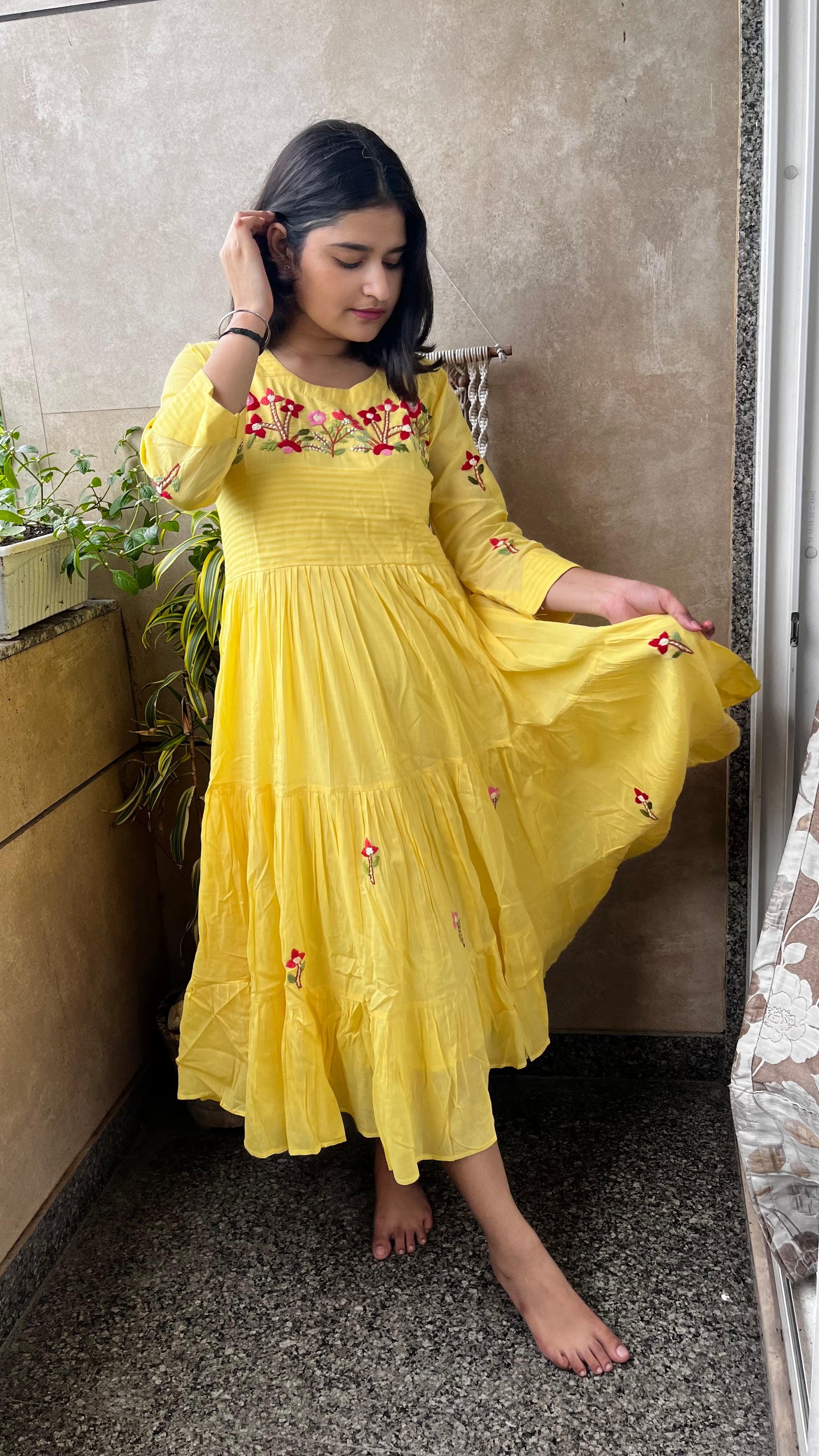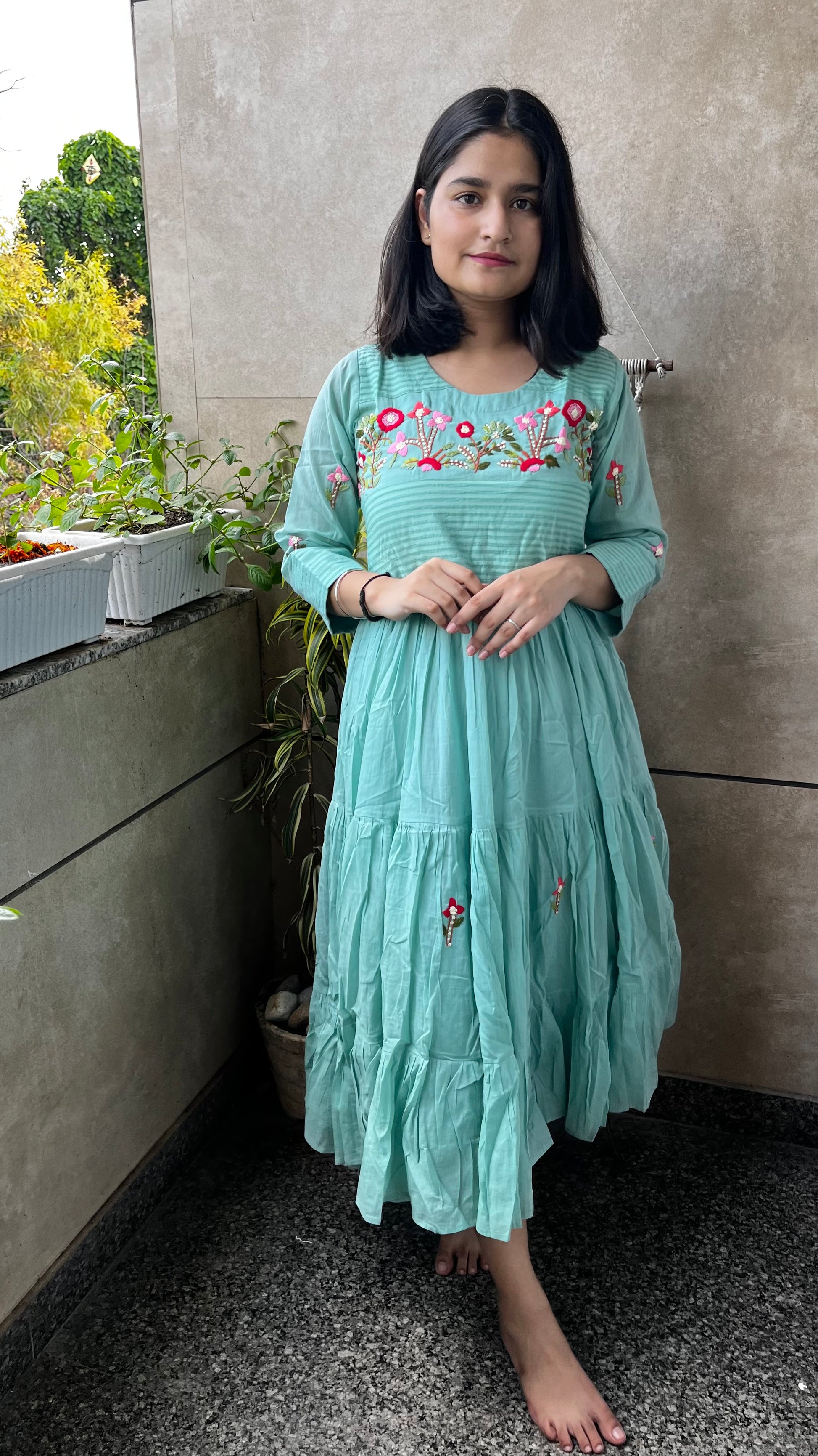 - It has a beautiful hand embroidery on the sleeves, yoke and ghera.
