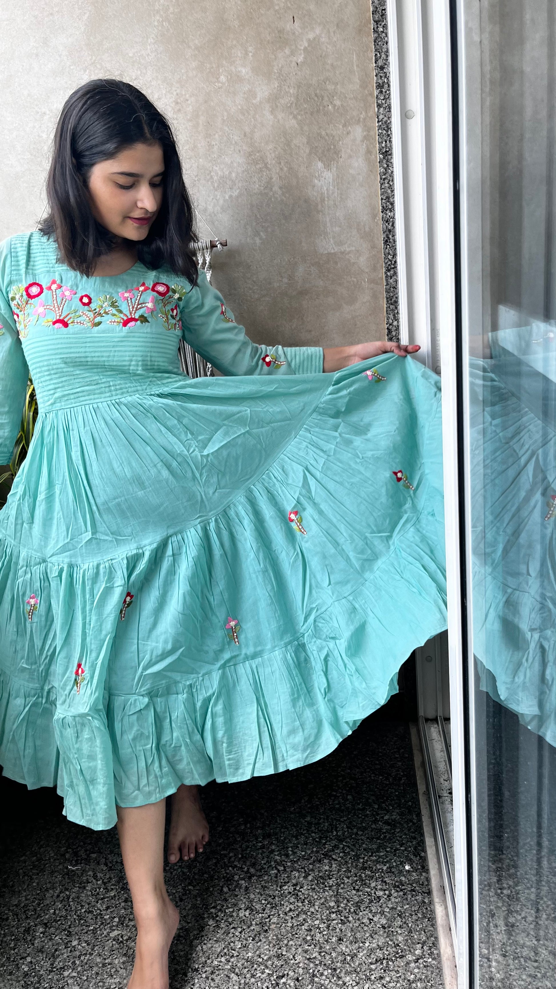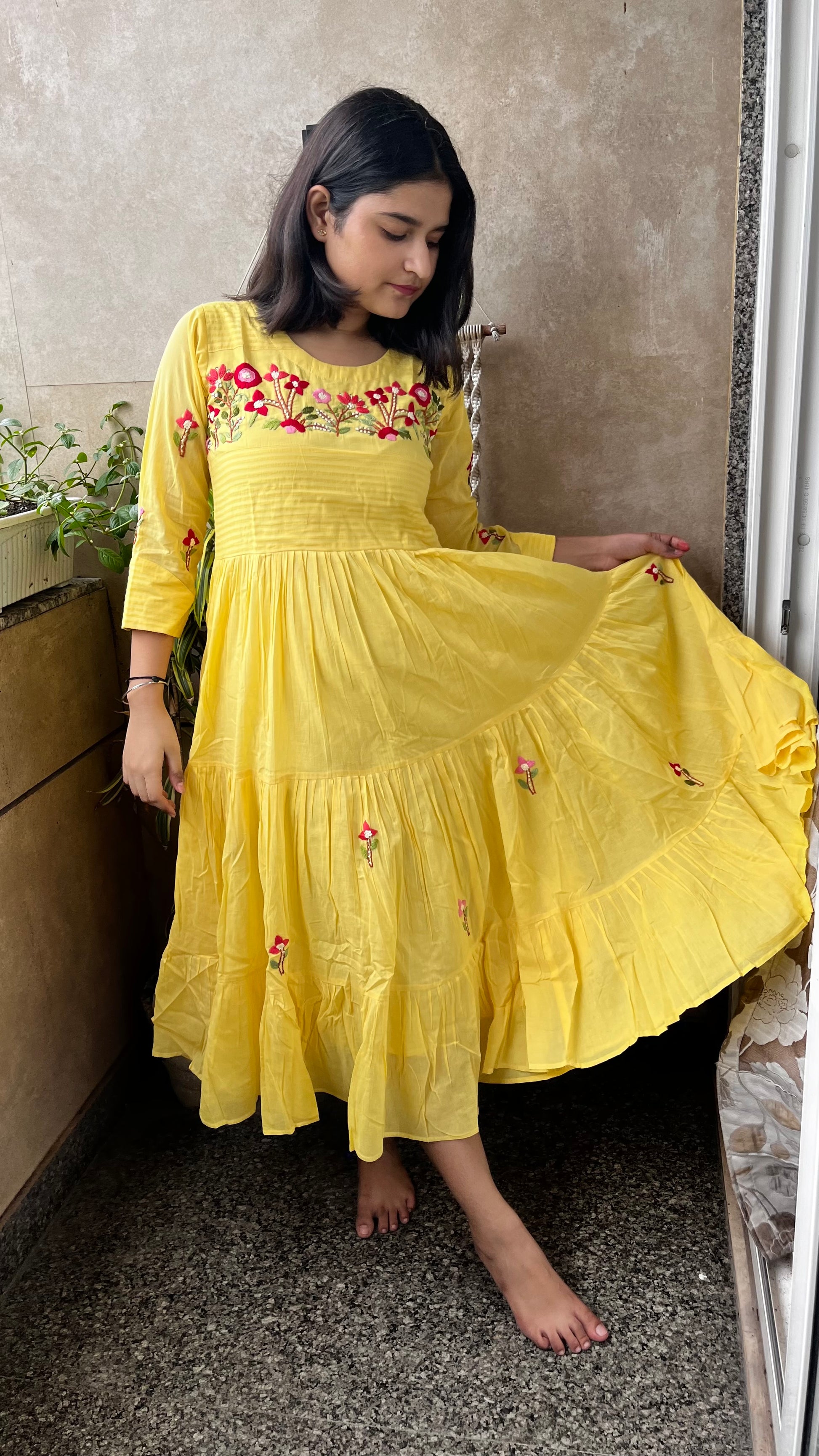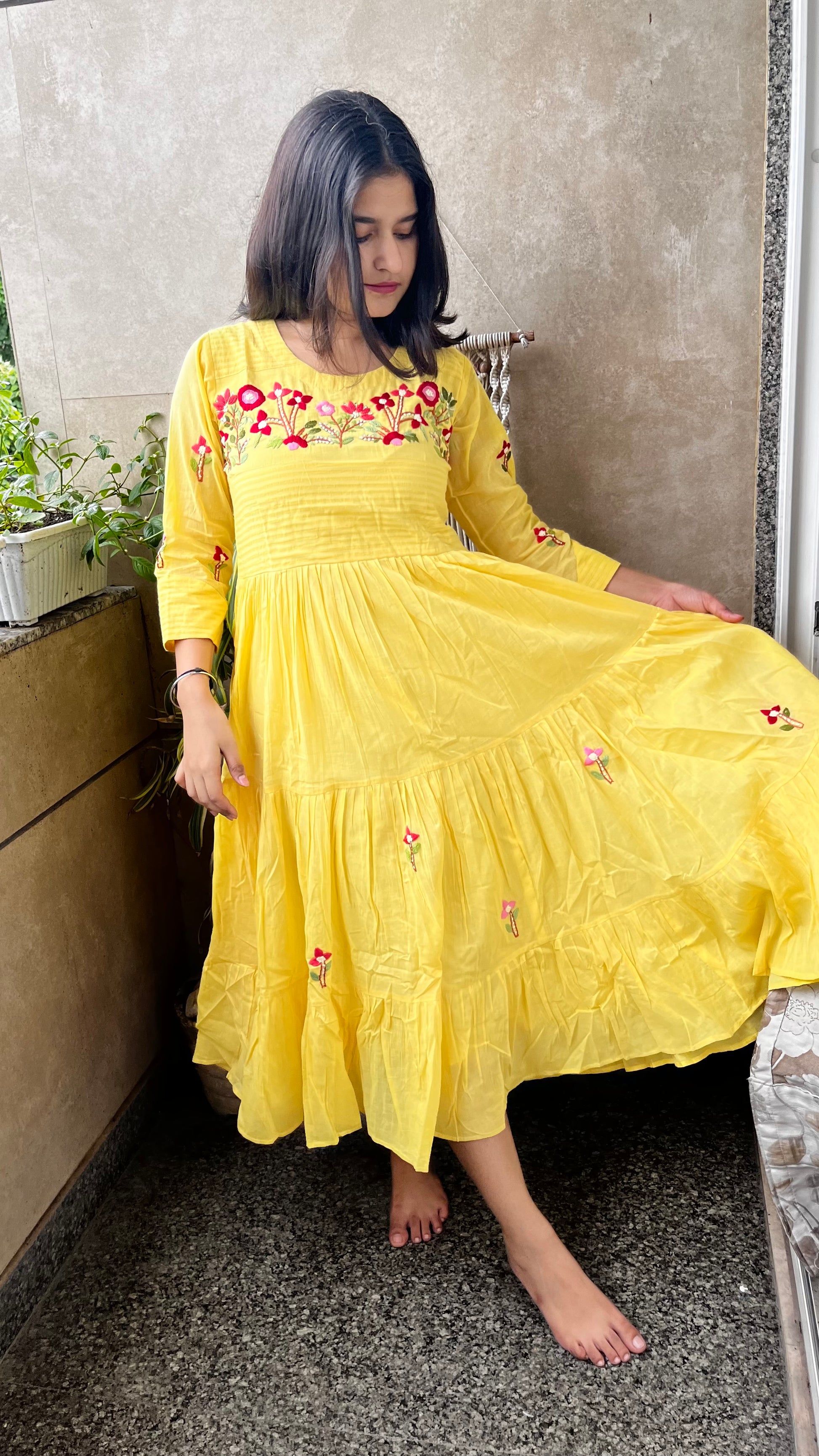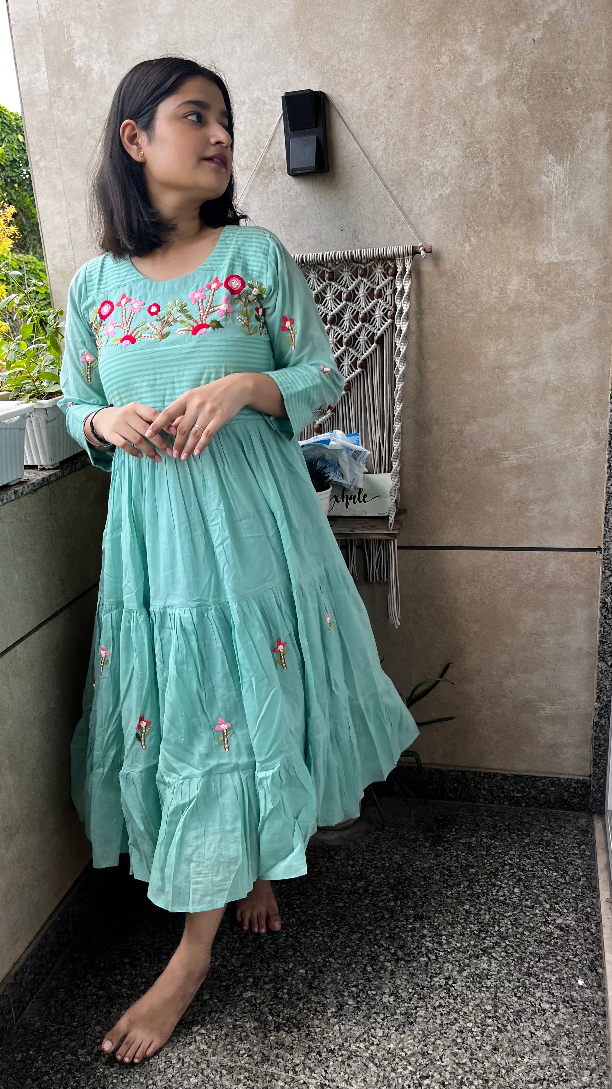 - It has a beautiful hand embroidery on the sleeves, yoke and ghera.