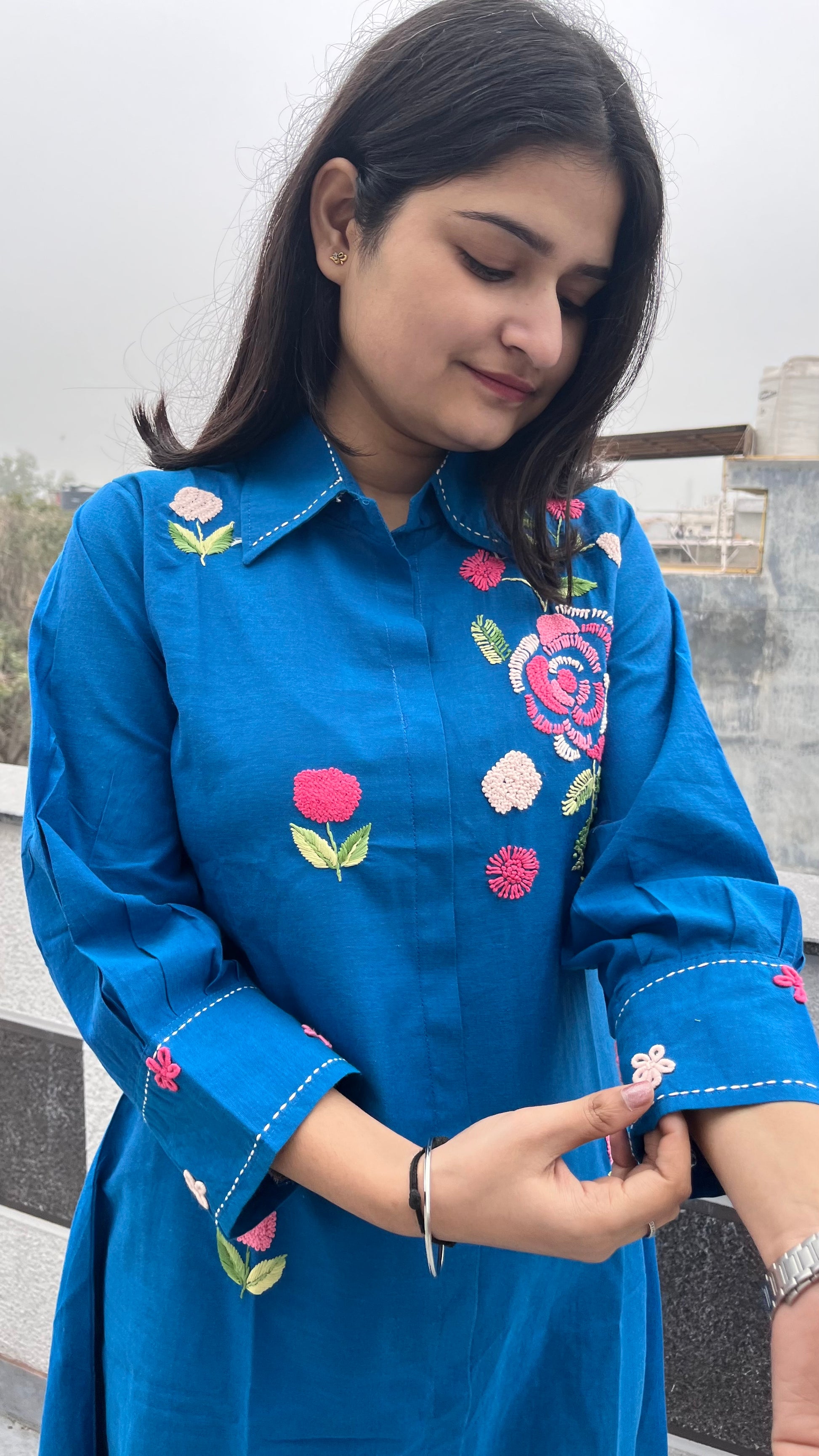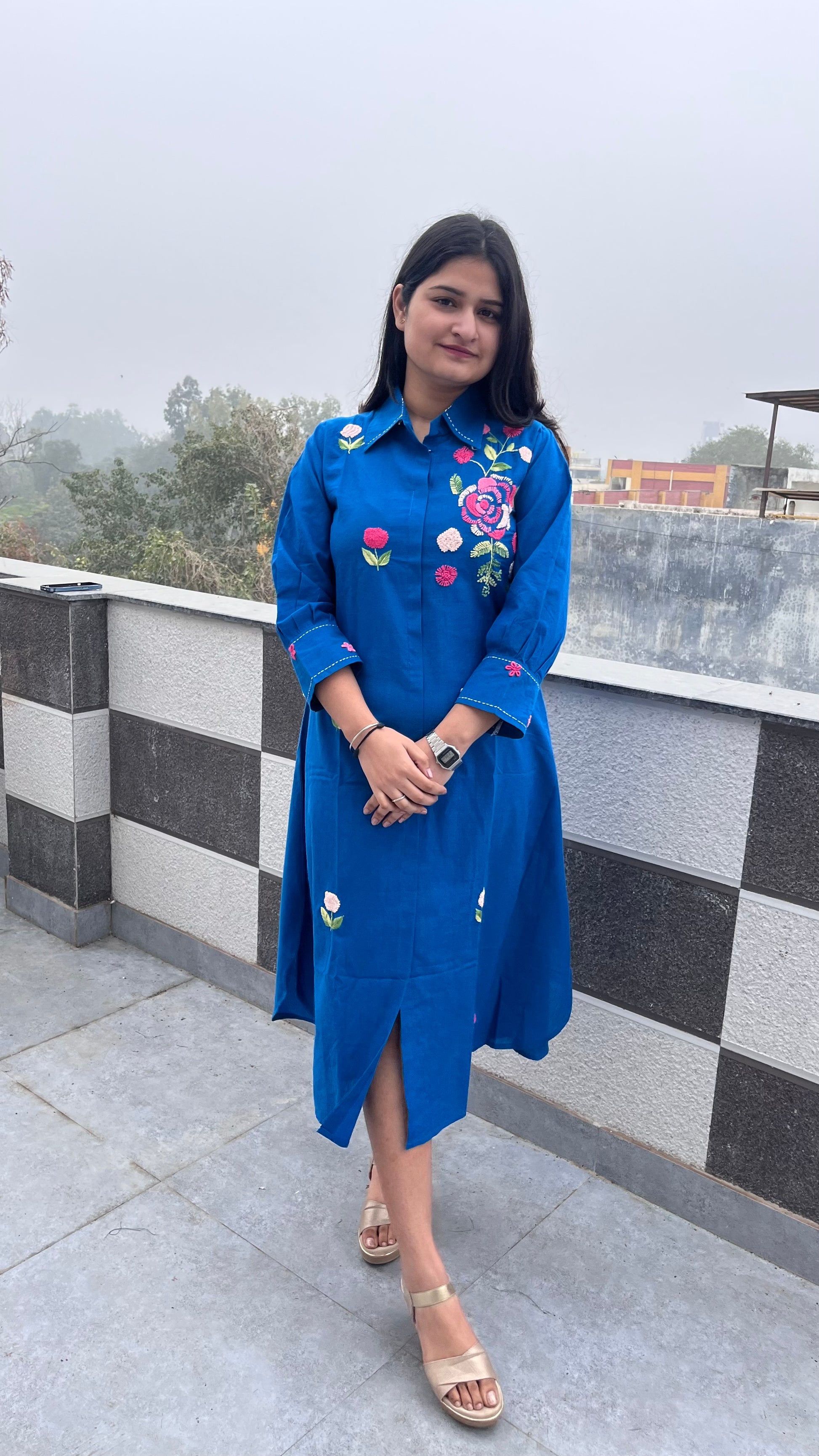 - The vibrant floral hand embroidery on the sleeves, all over the dress enhance its feminine charm, making it a perfect choice for casual outings.