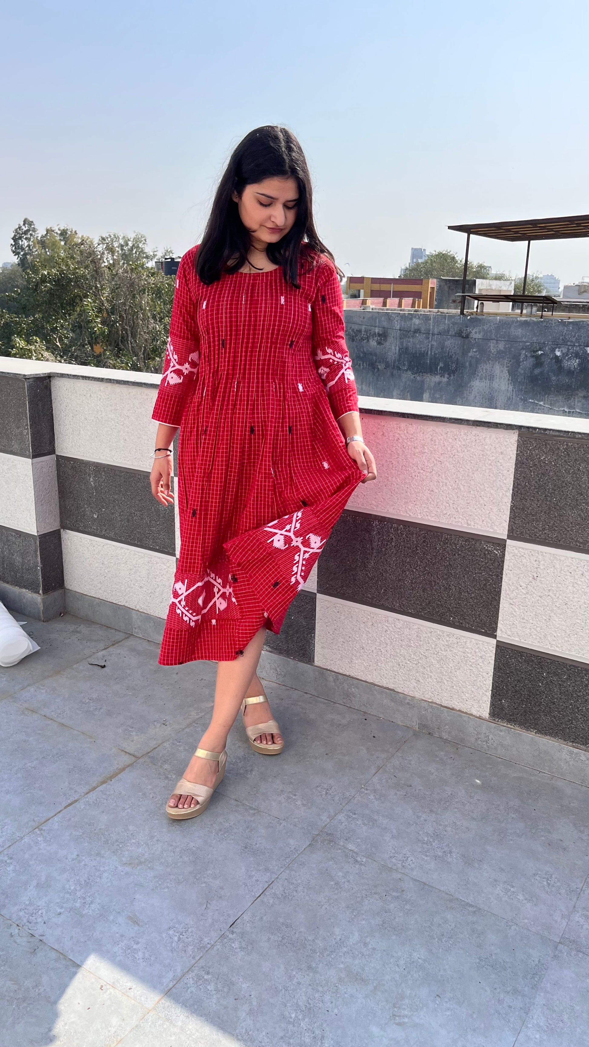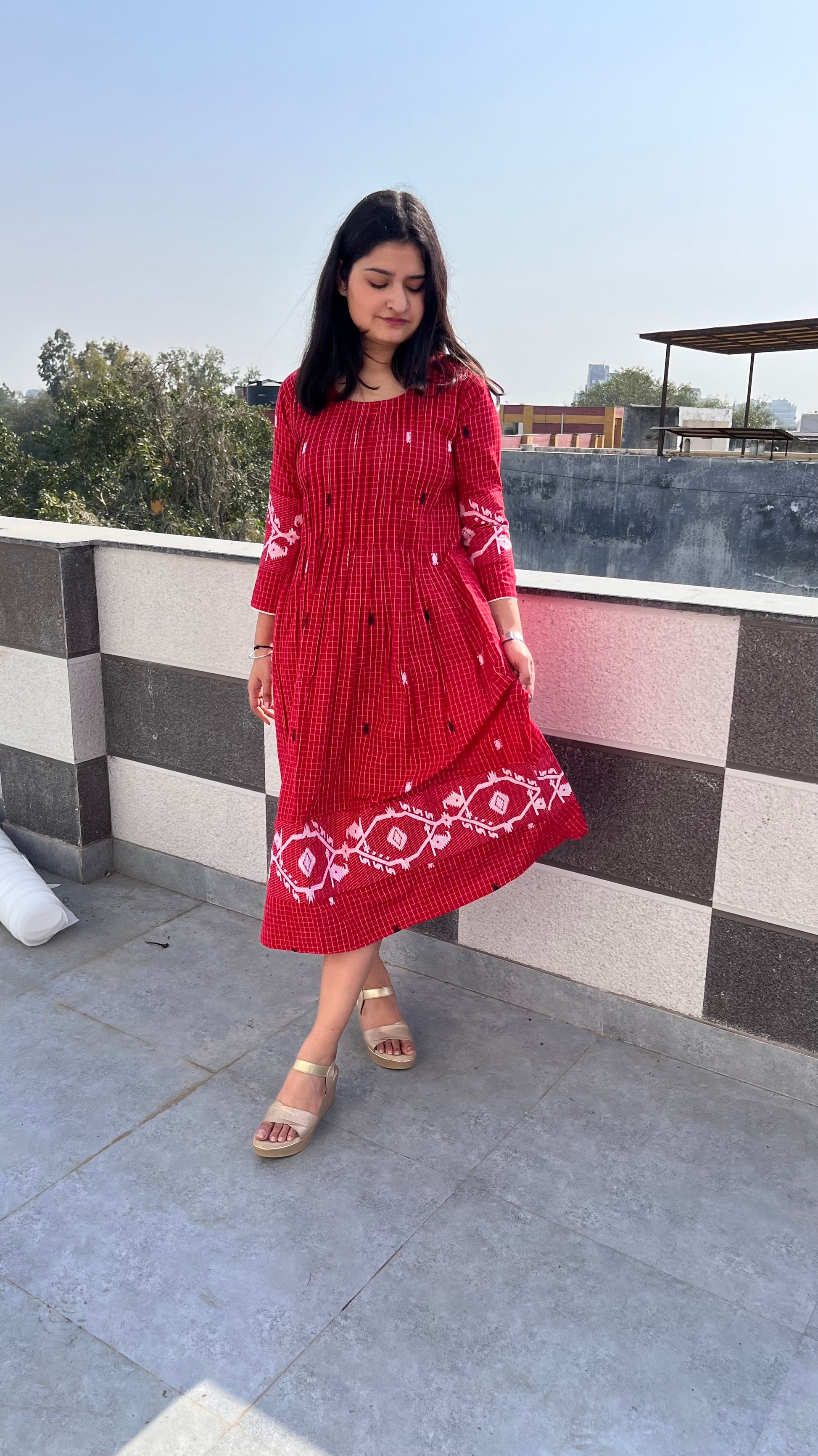 - Very unique and stylish frock pattern with beautiful pleated detailing