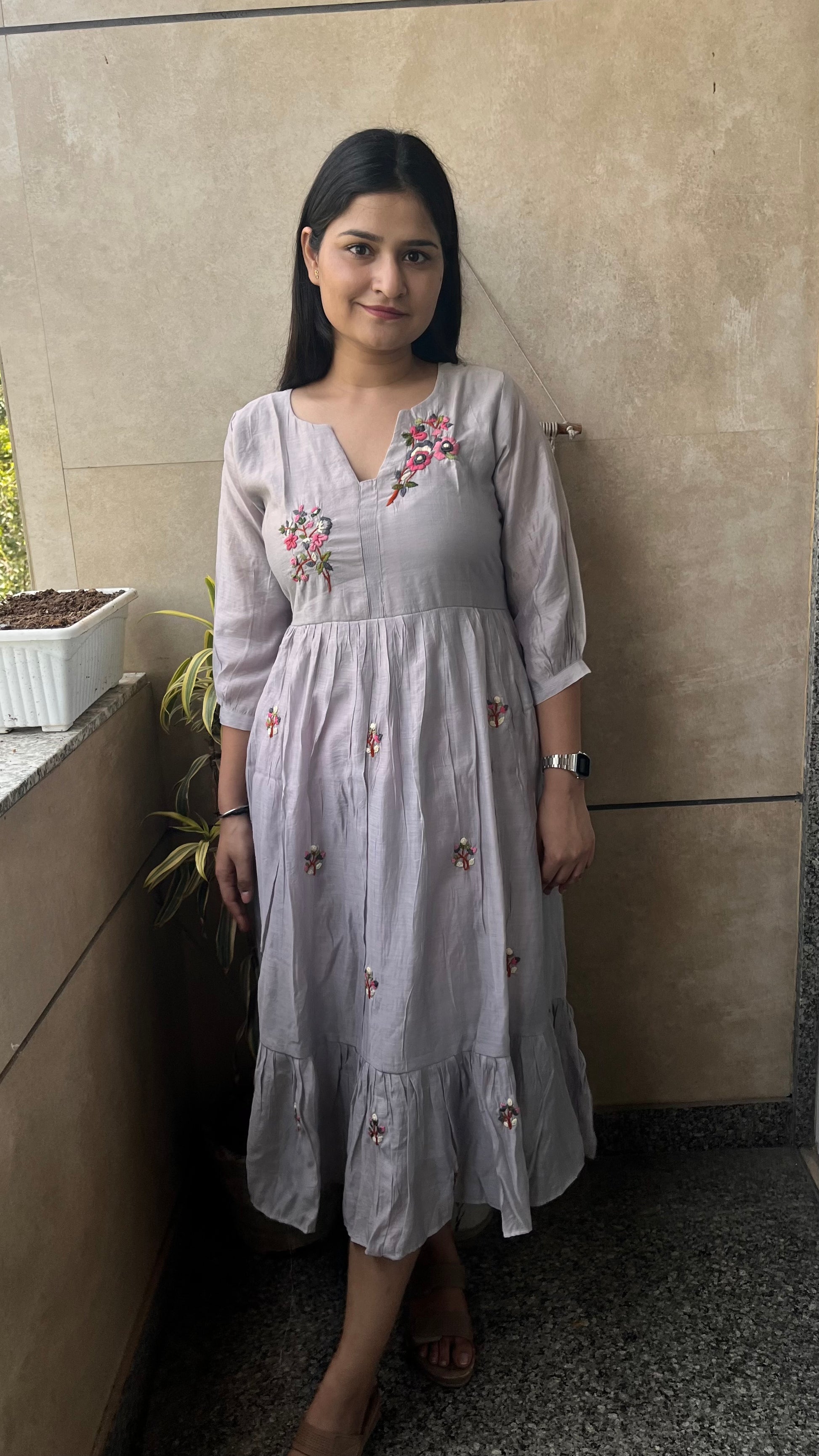 - Look at this pretty grey shade dress. Isn’t it adorable?