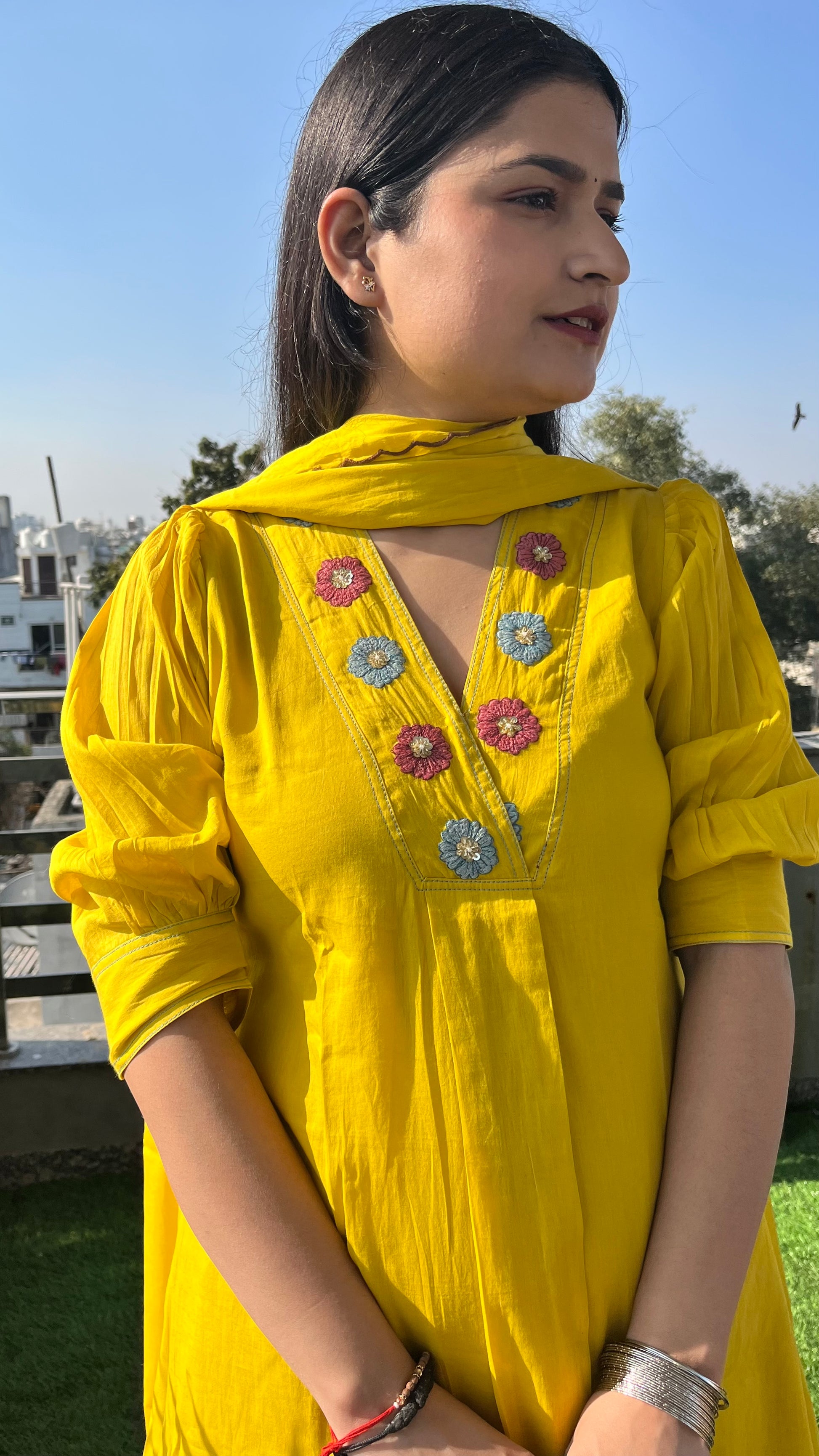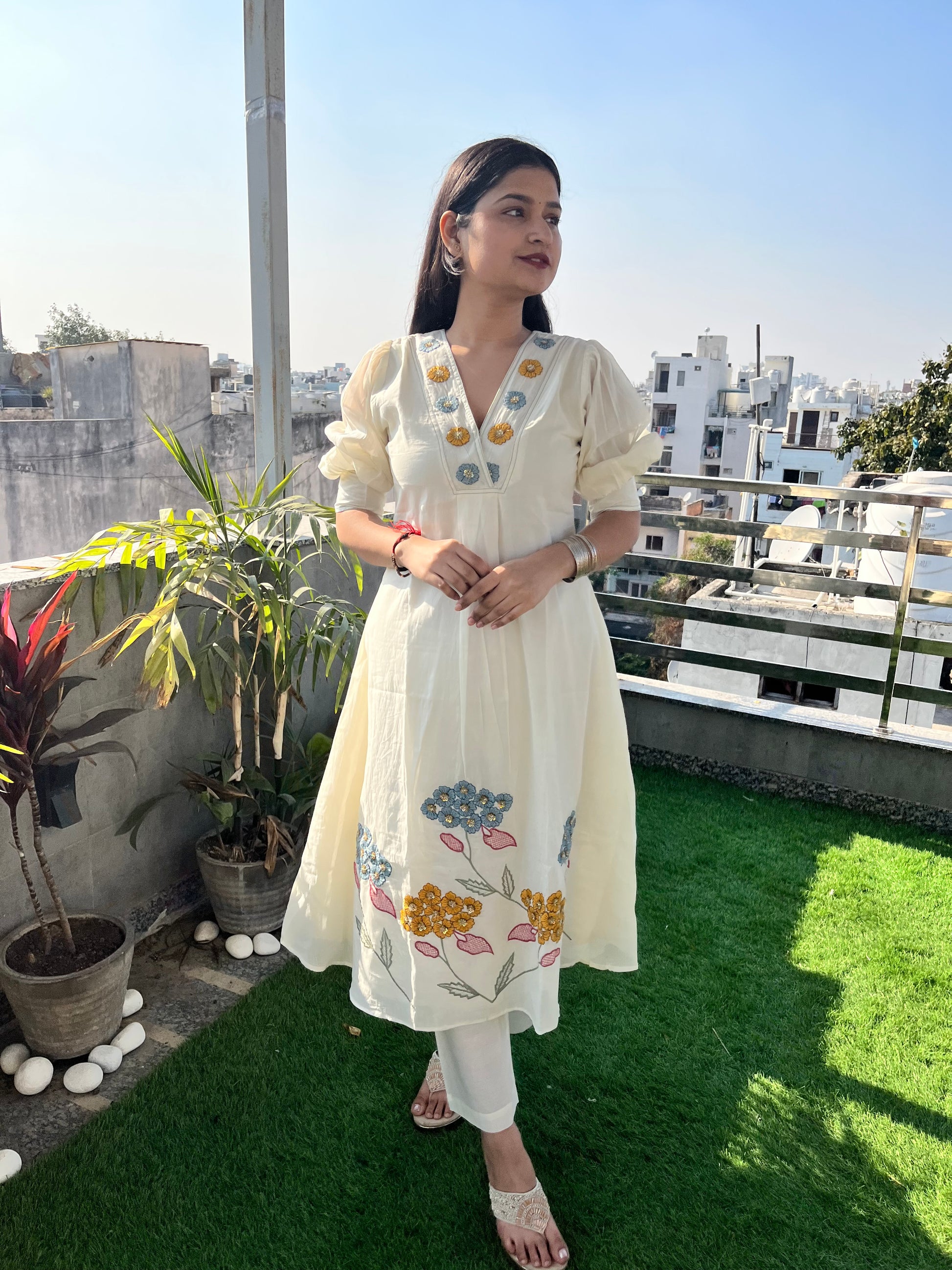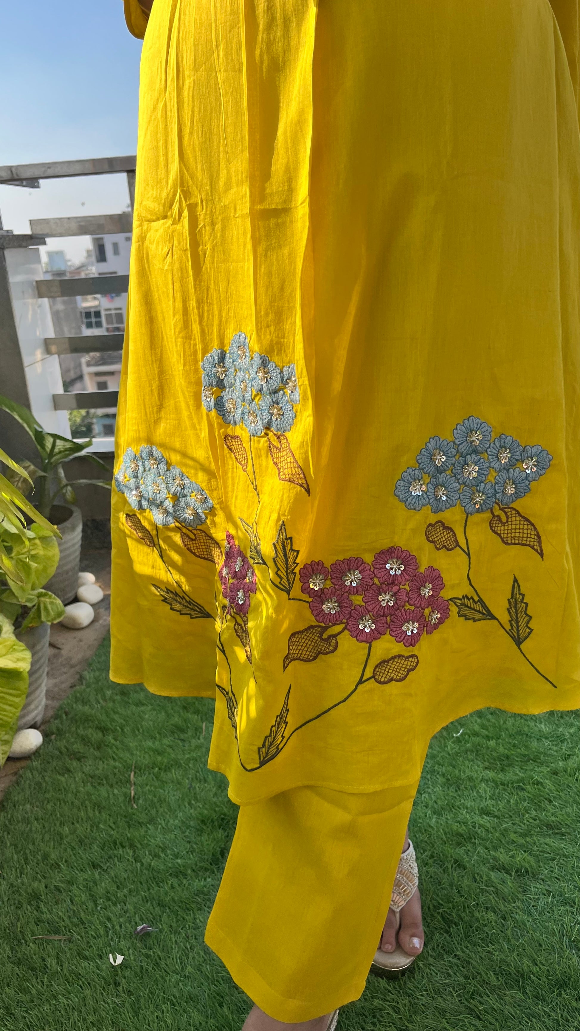 Kurta is having beautiful hand embroidery by thread and sequence
