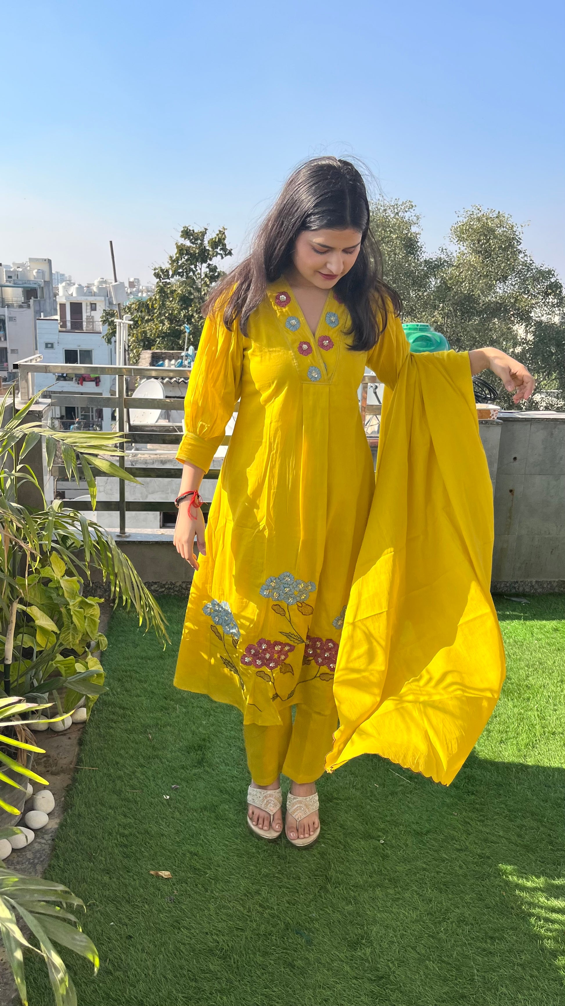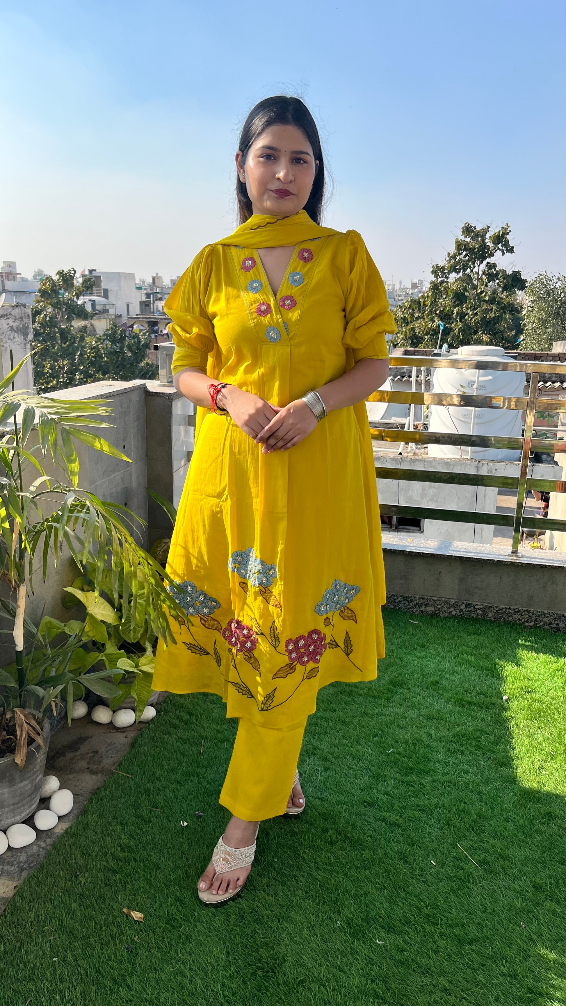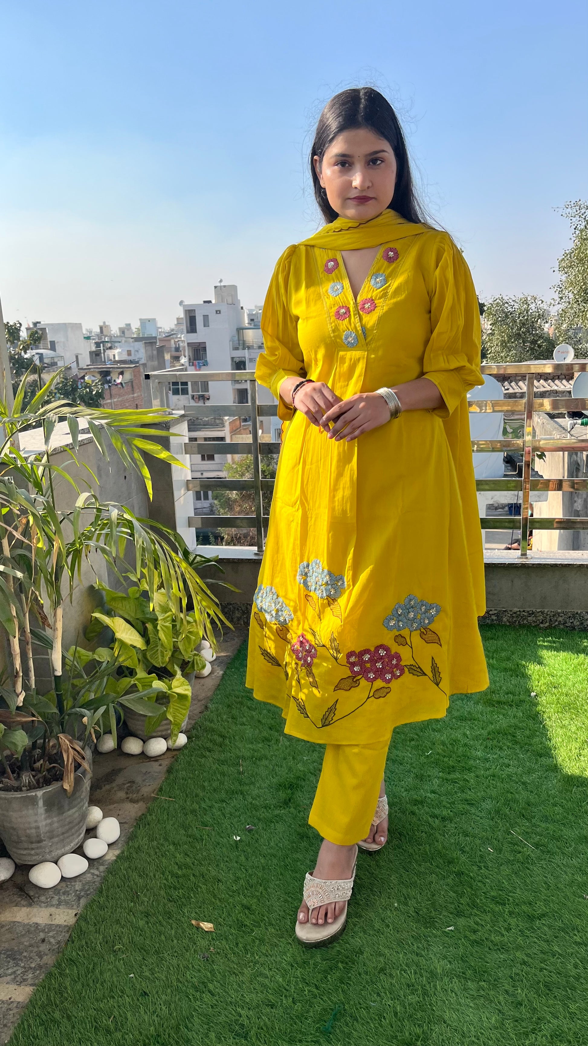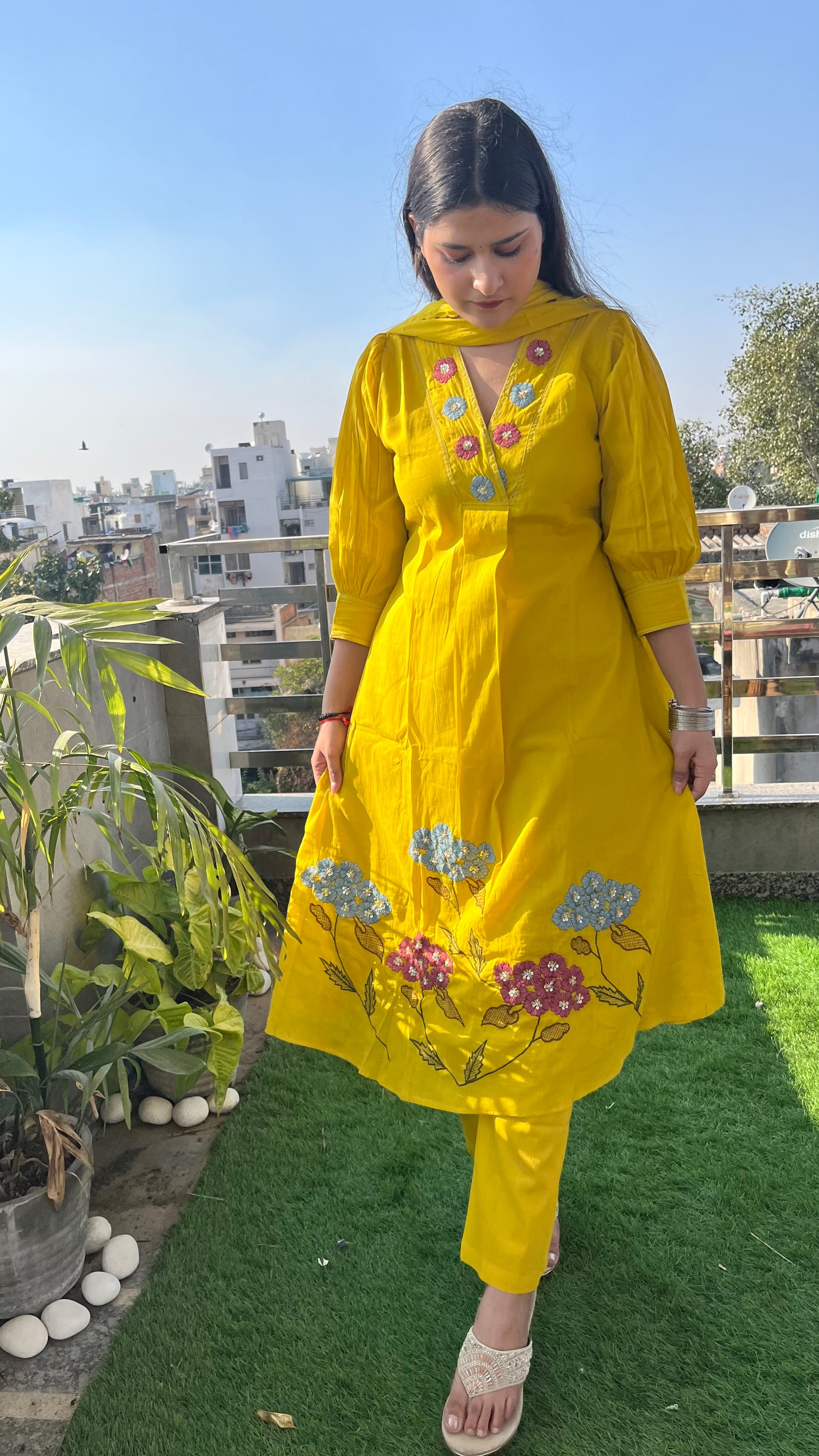 Kurta is having beautiful hand embroidery by thread and sequence