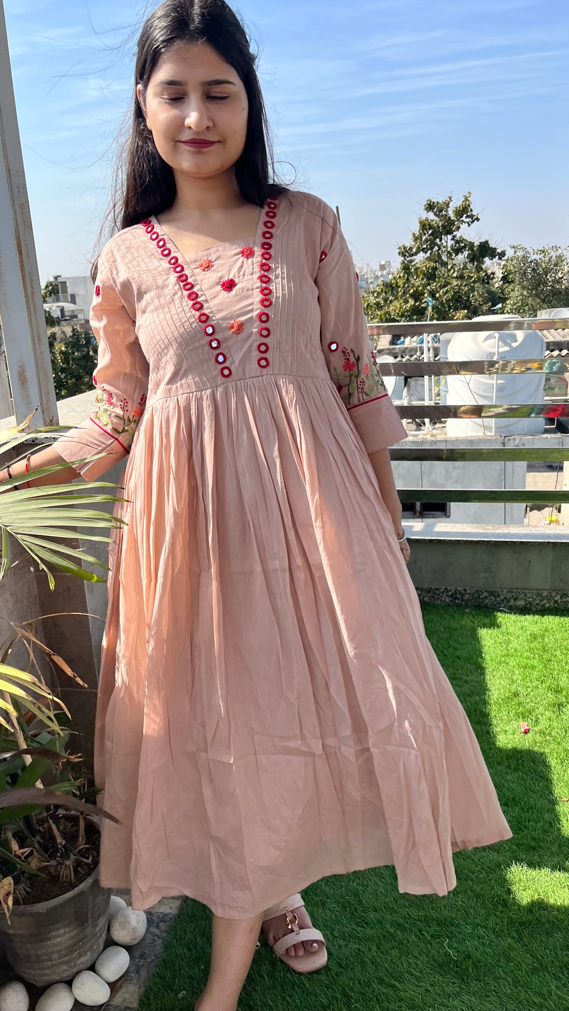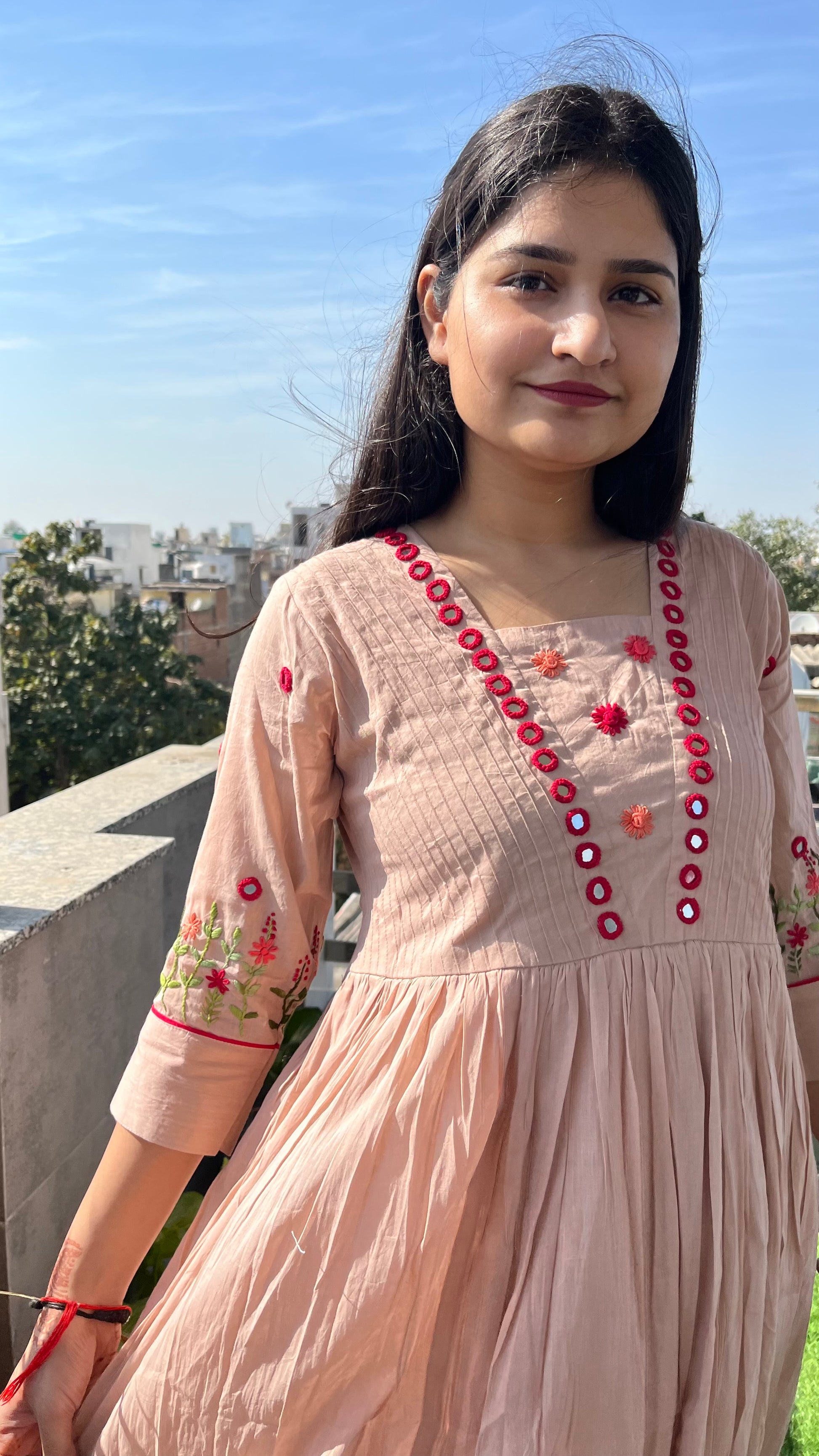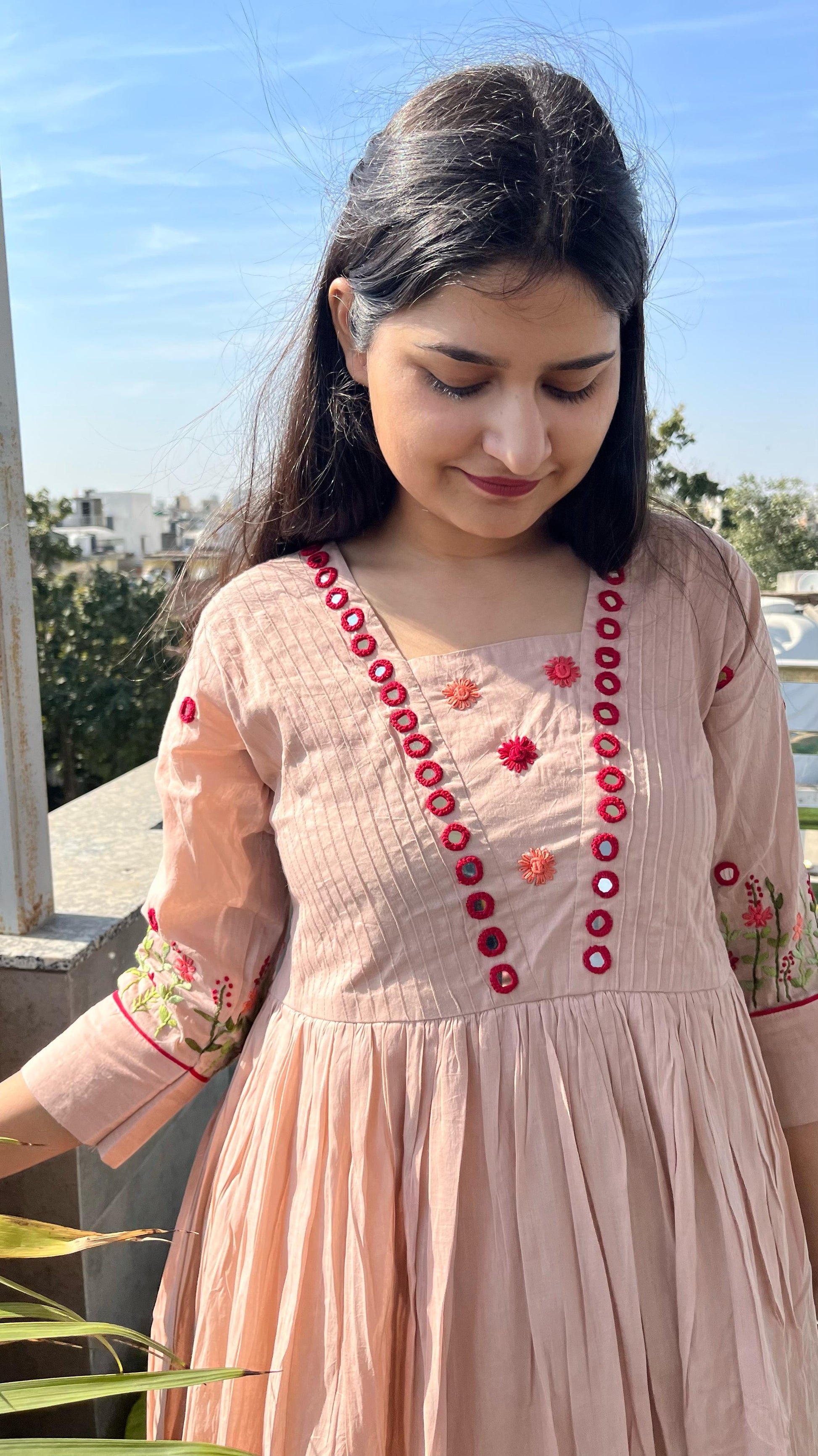 - Available in soft pastel pink and grey , this dress embodies traditional craftsmanship with a contemporary touch—perfect for any occasion that calls for effortless elegance.