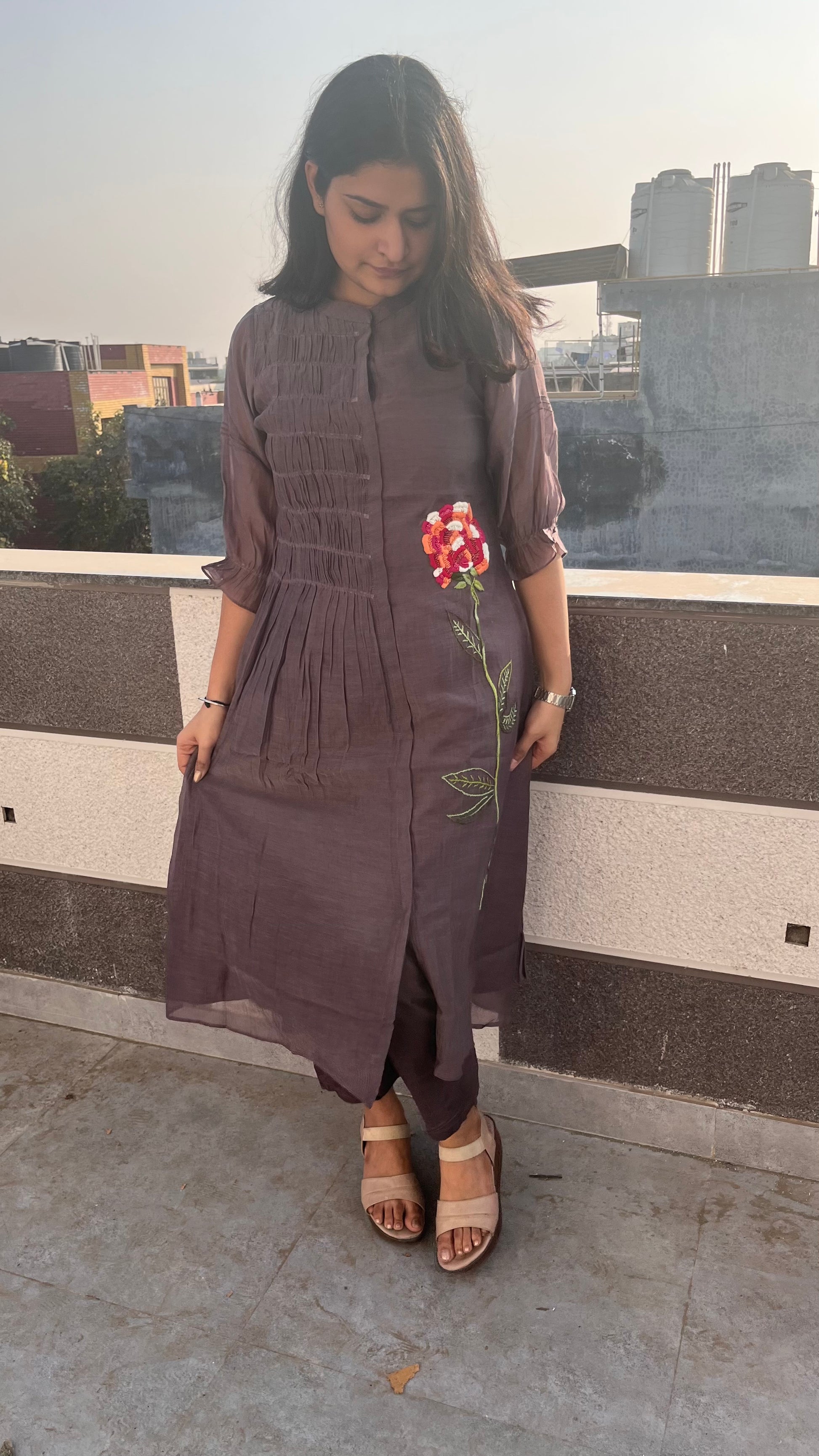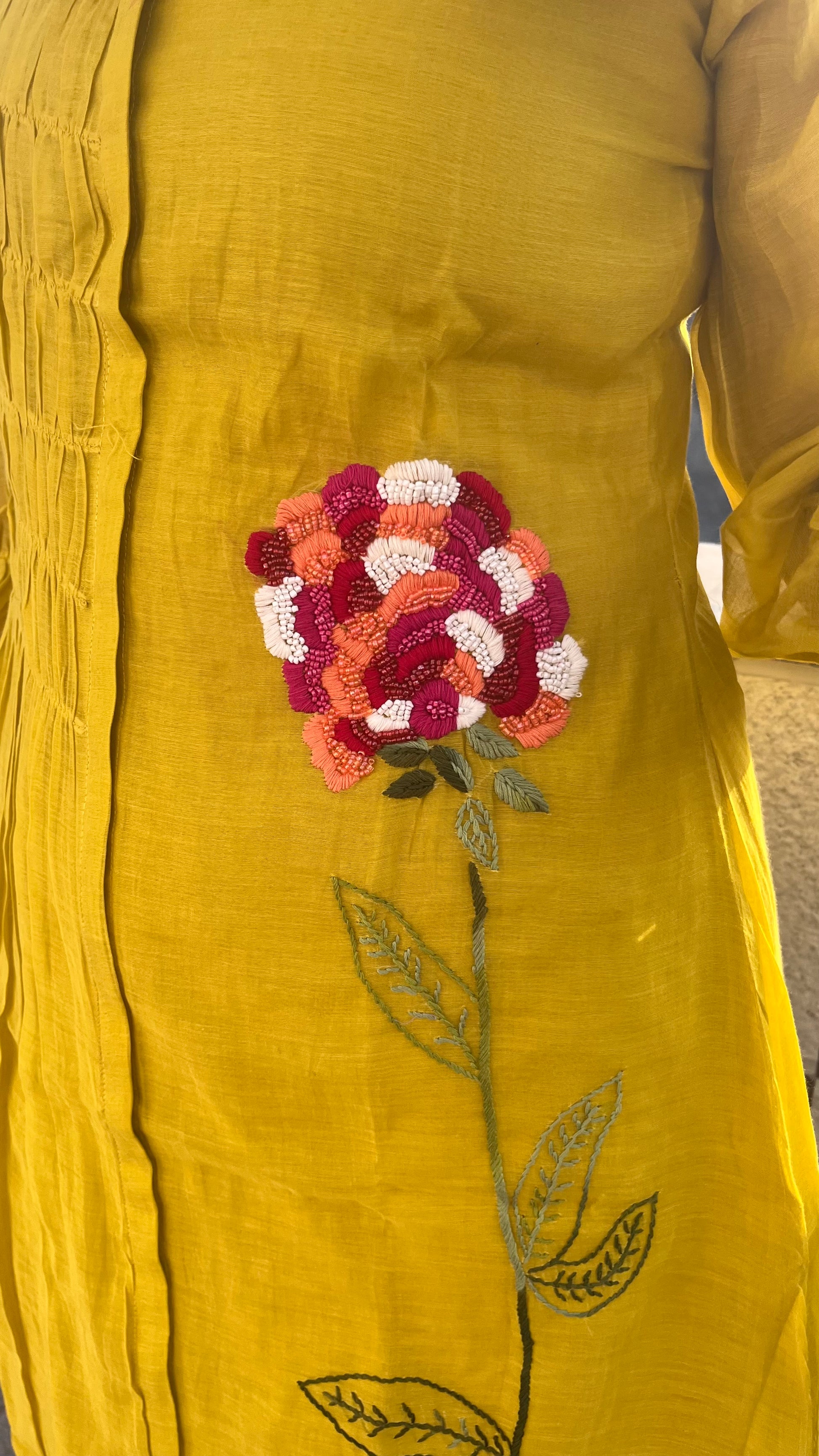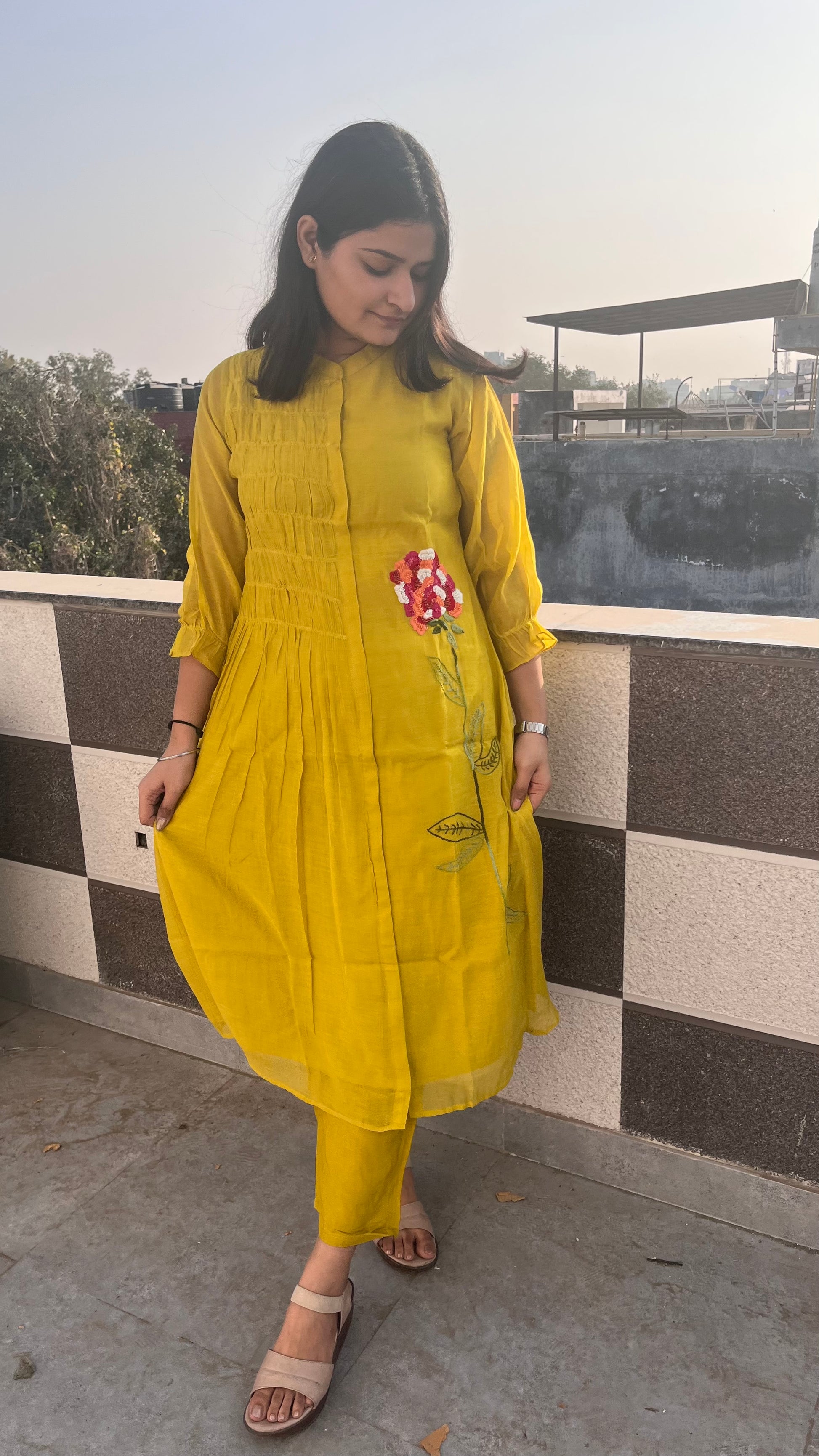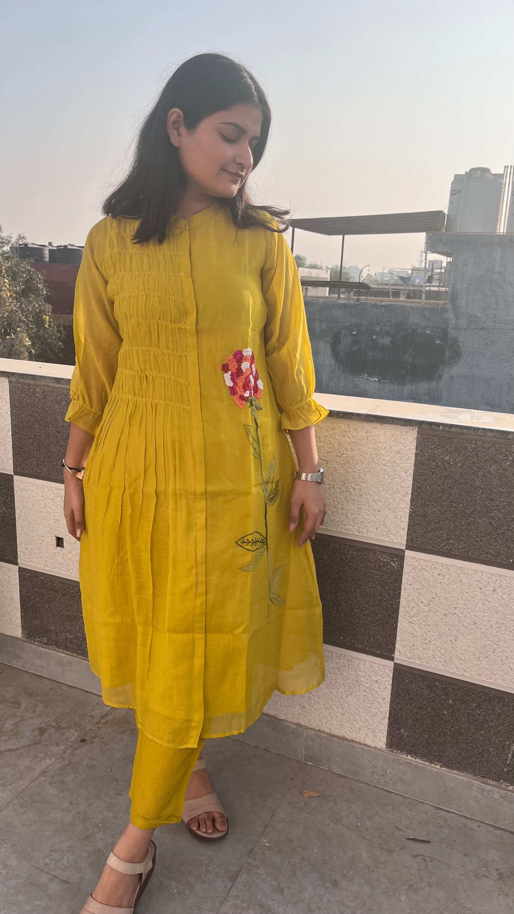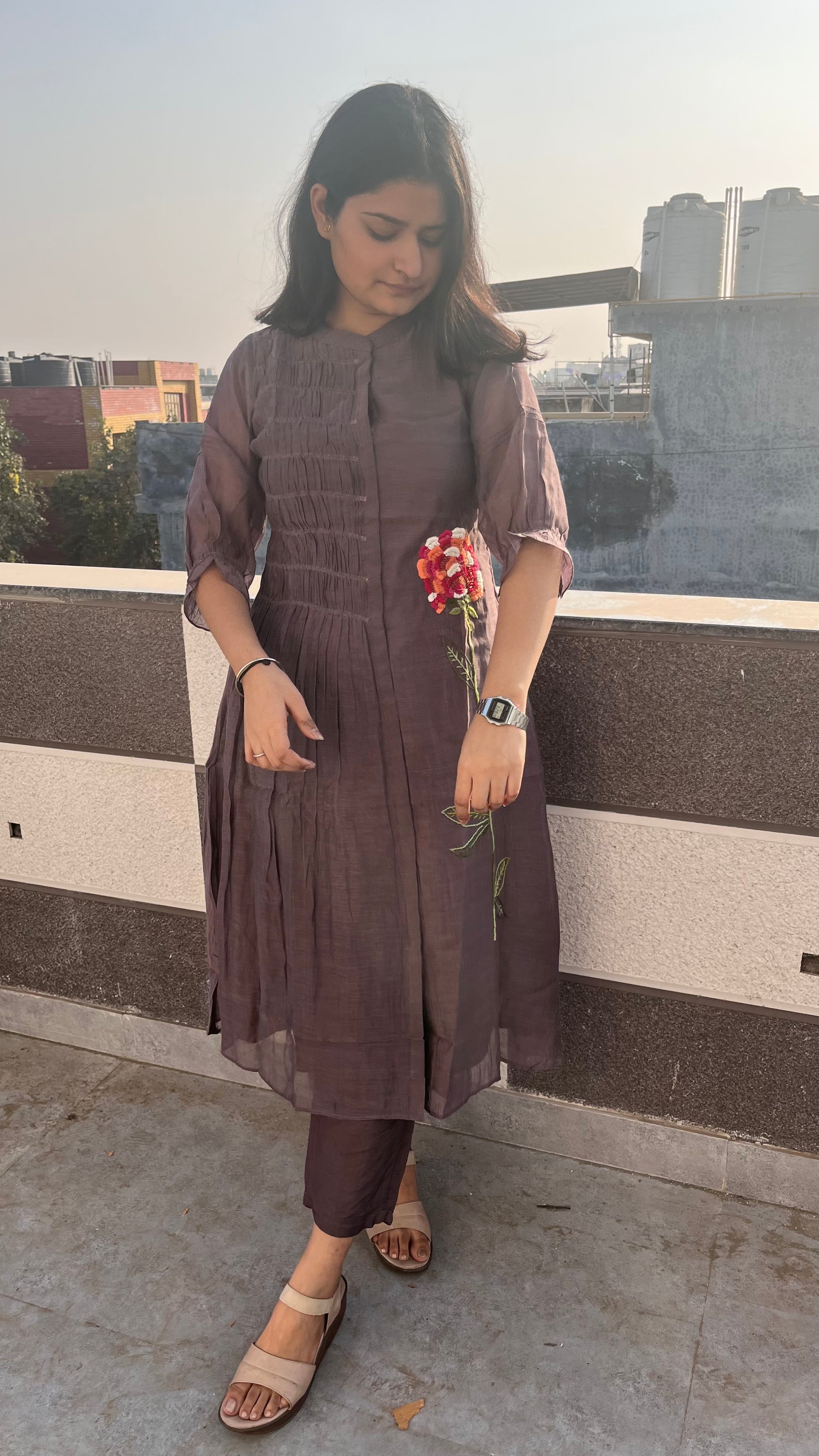 - This exquisite coord set is crafted from luxurious Mul Chanderi fabric, known for its lightweight, breathable texture and subtle sheen