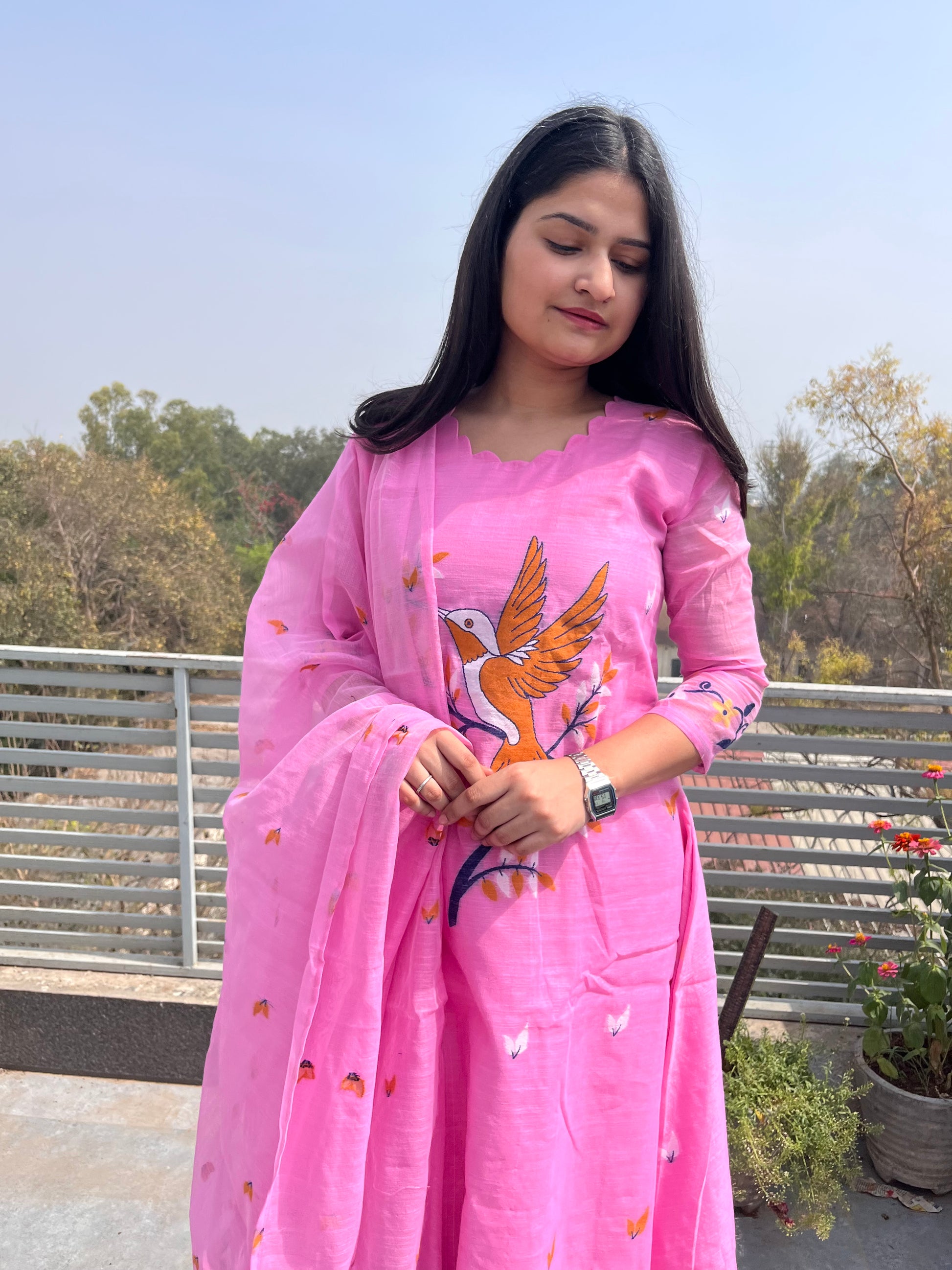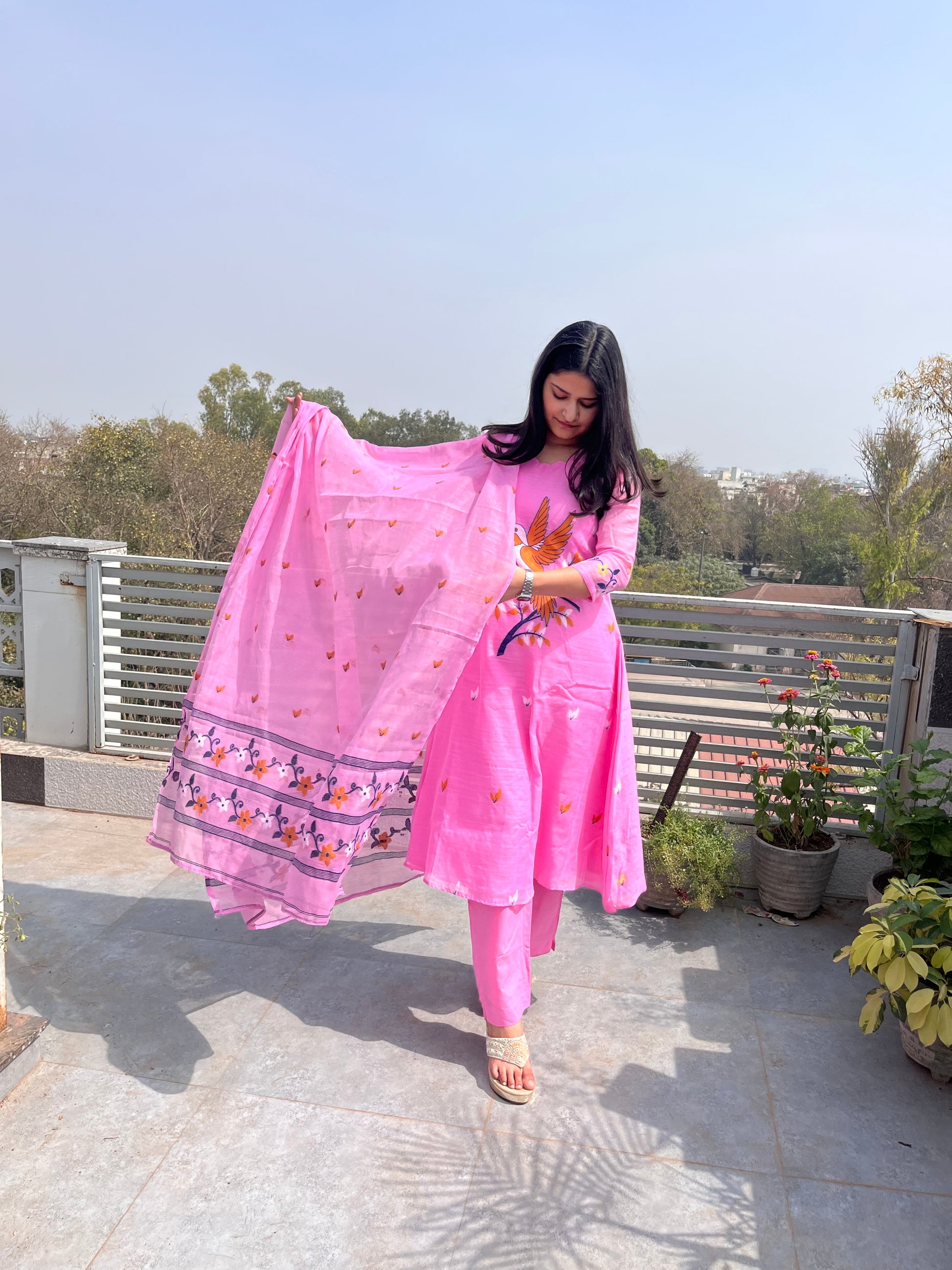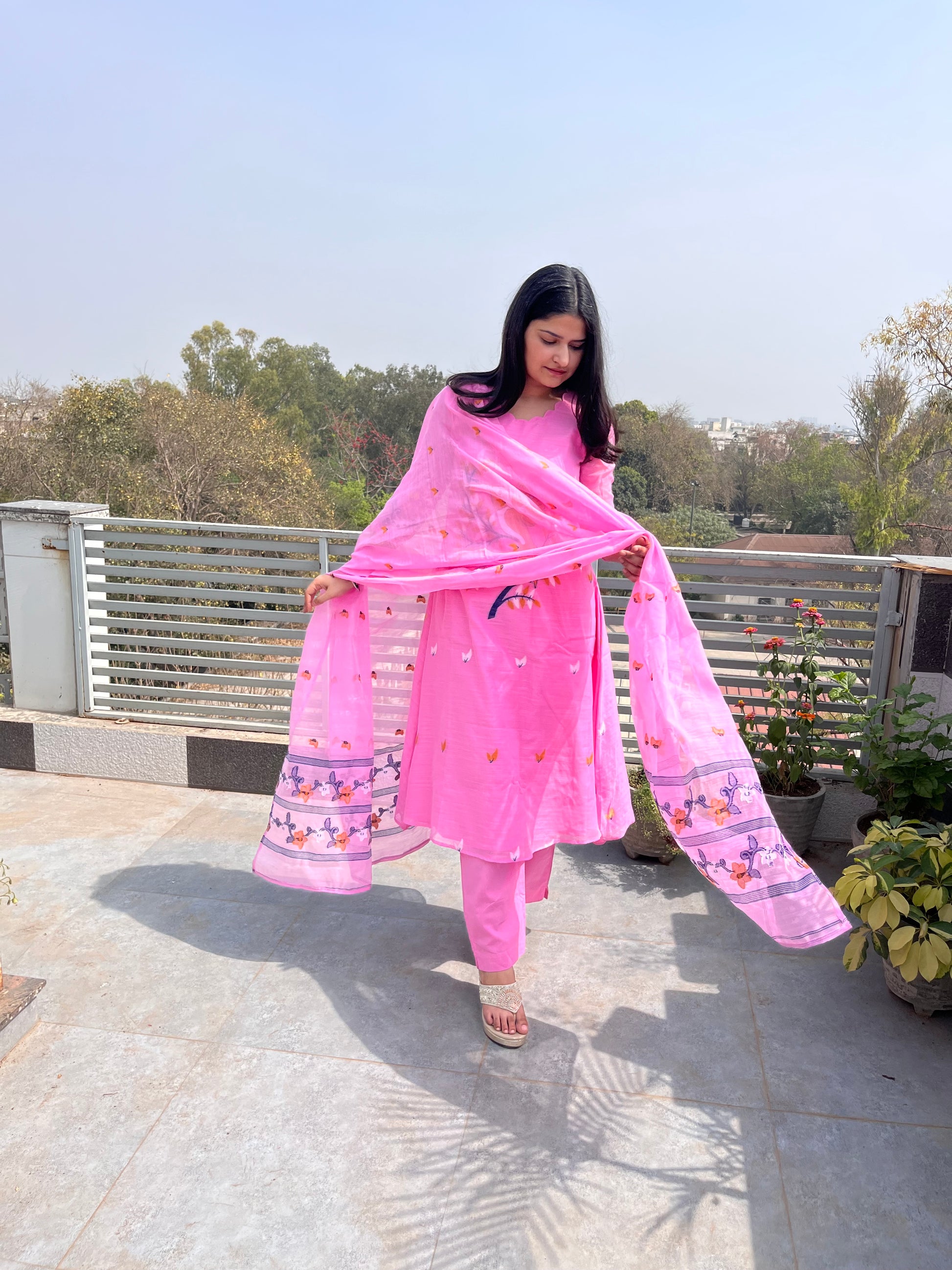- The dupatta is very pretty with complete hand weaved design.