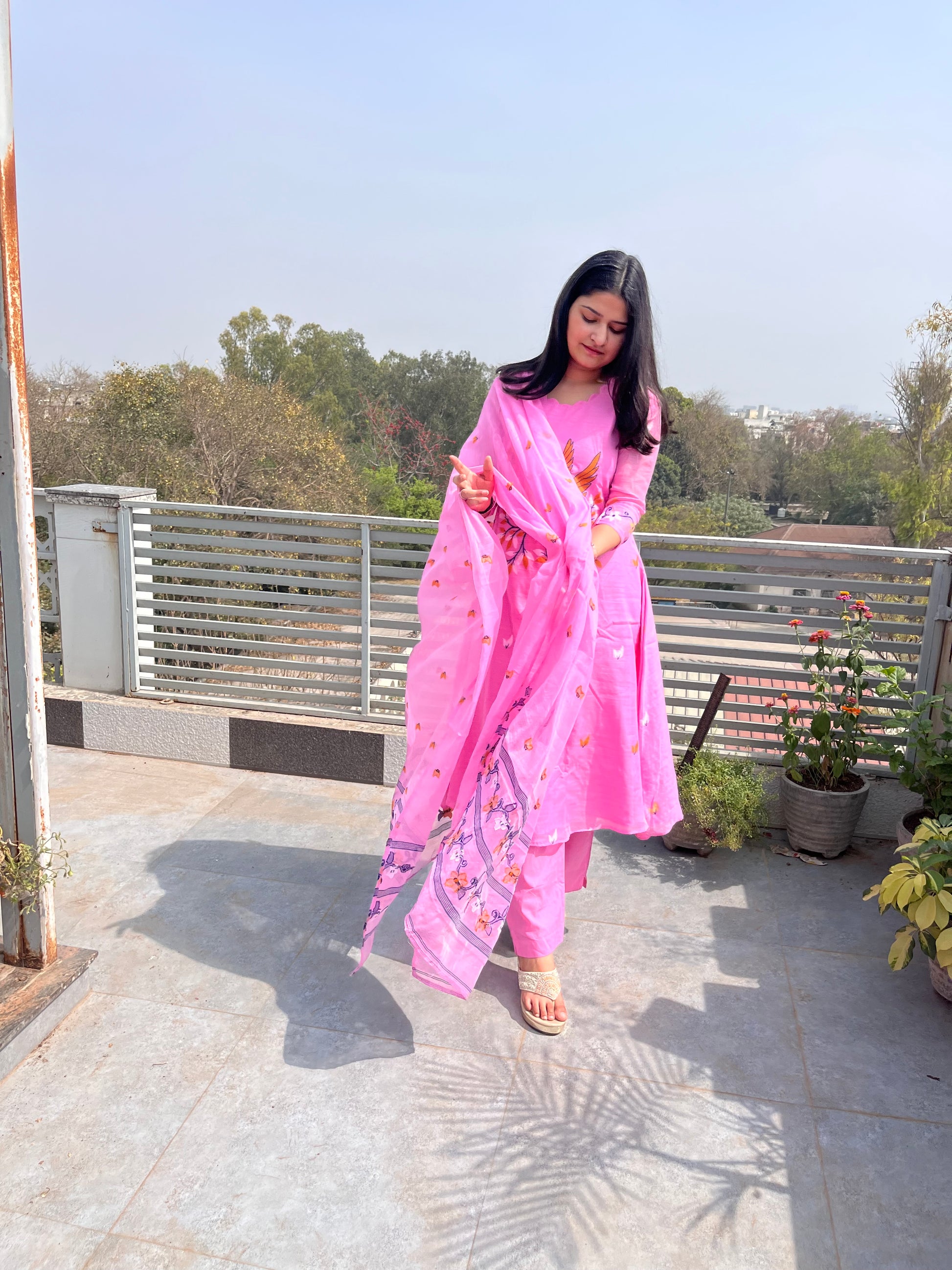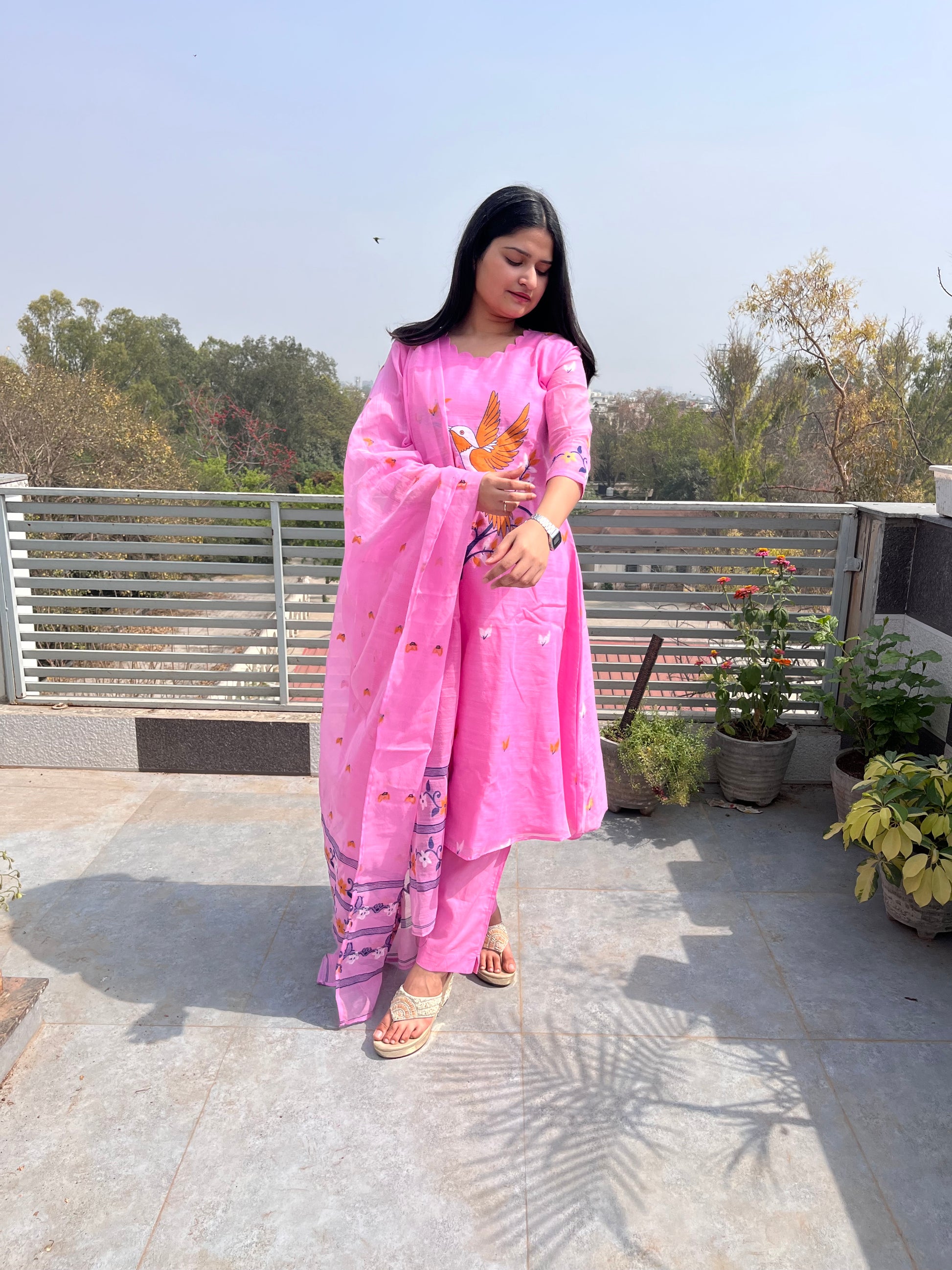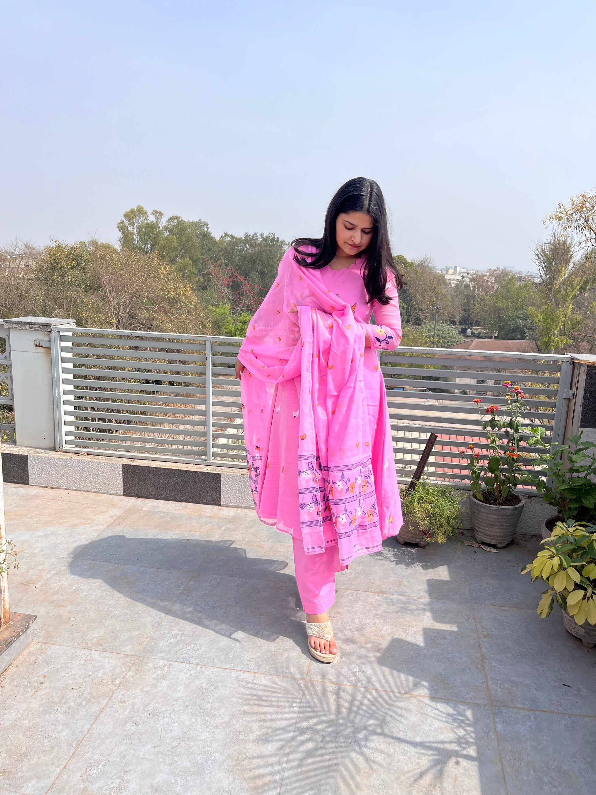 - The dupatta is very pretty with complete hand weaved design.