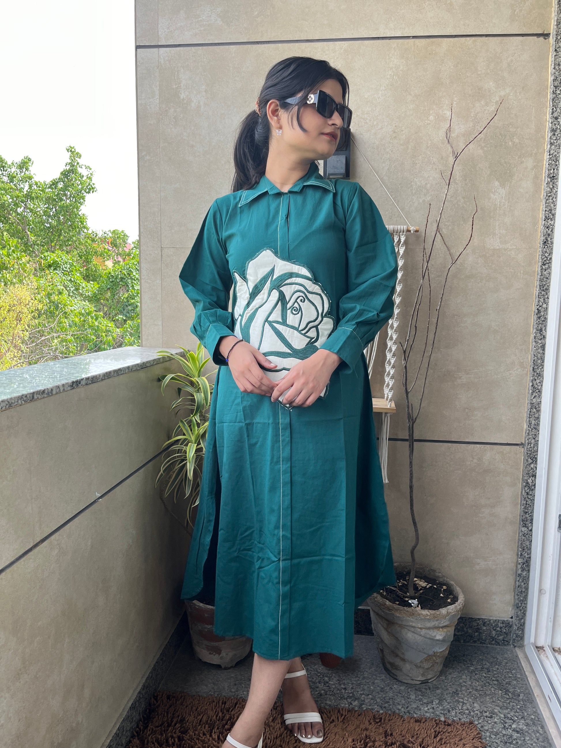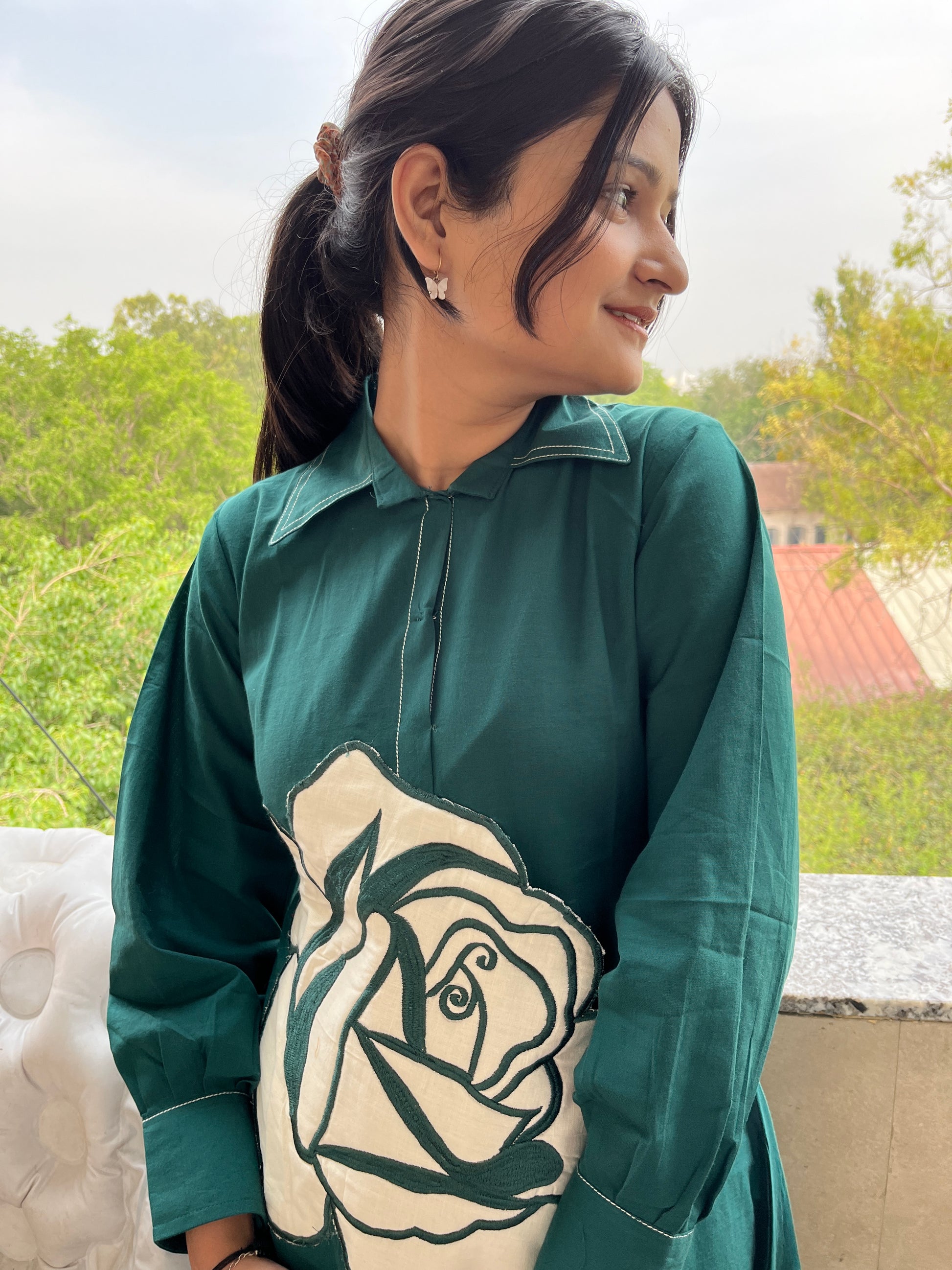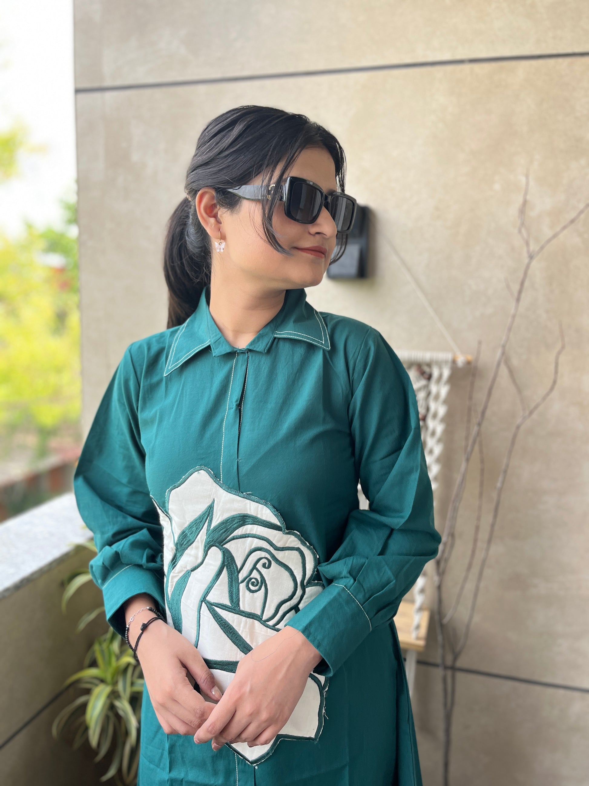 - This stylish tunic dress in a refreshing rama green color is a must-have for the summer season.