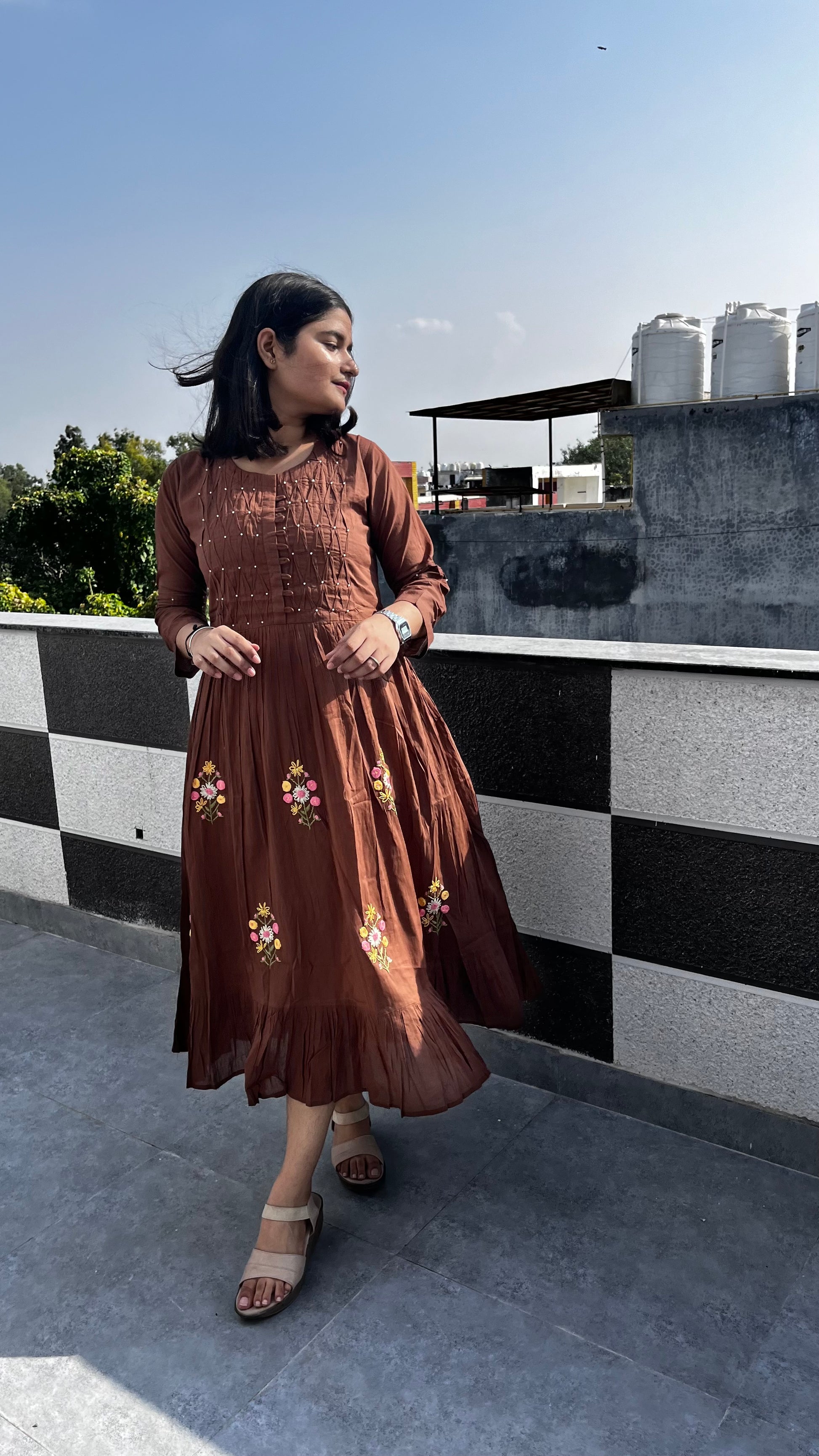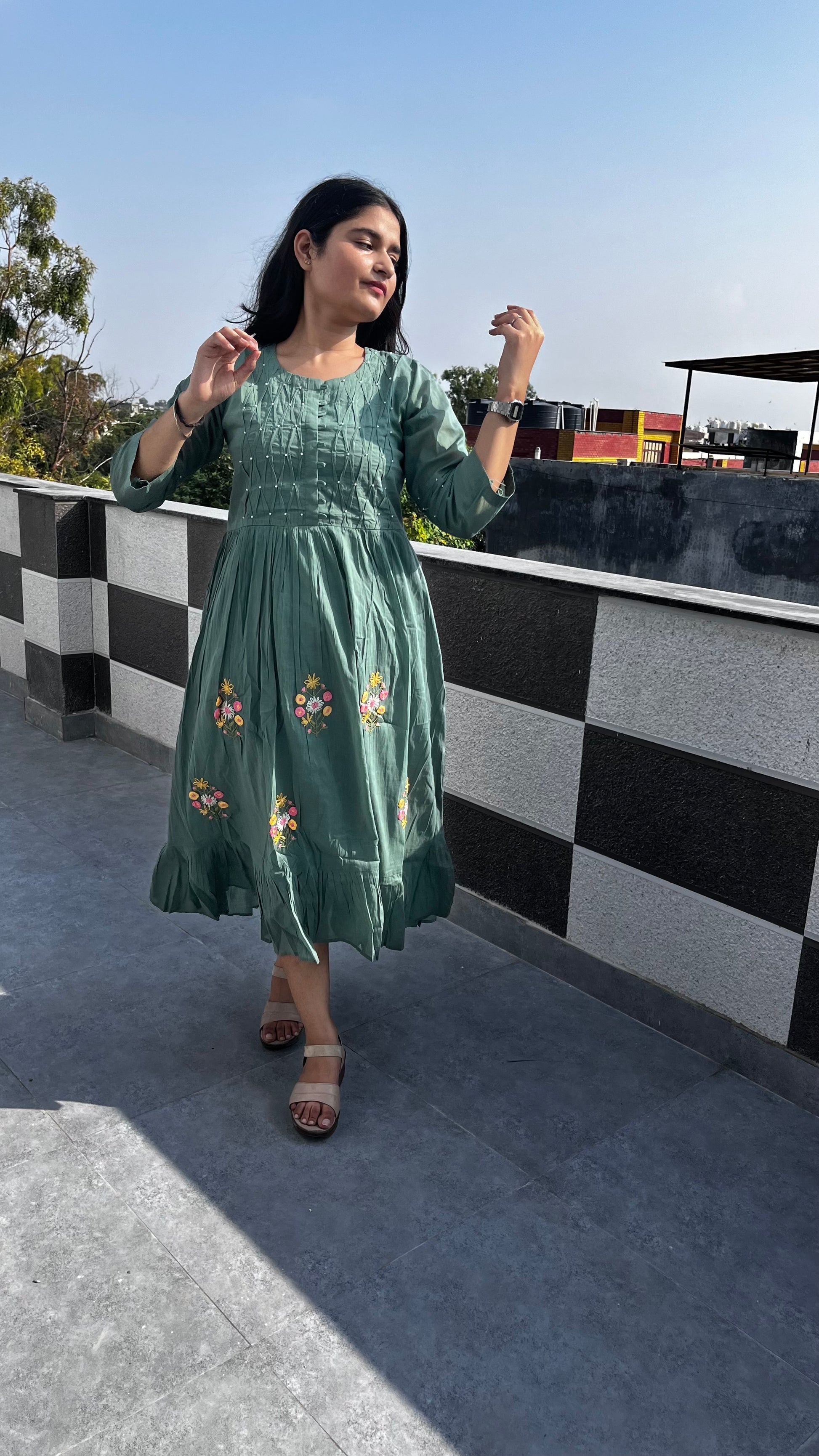 - The tunic is adorned with intricate hand embroidery work on the ghera.