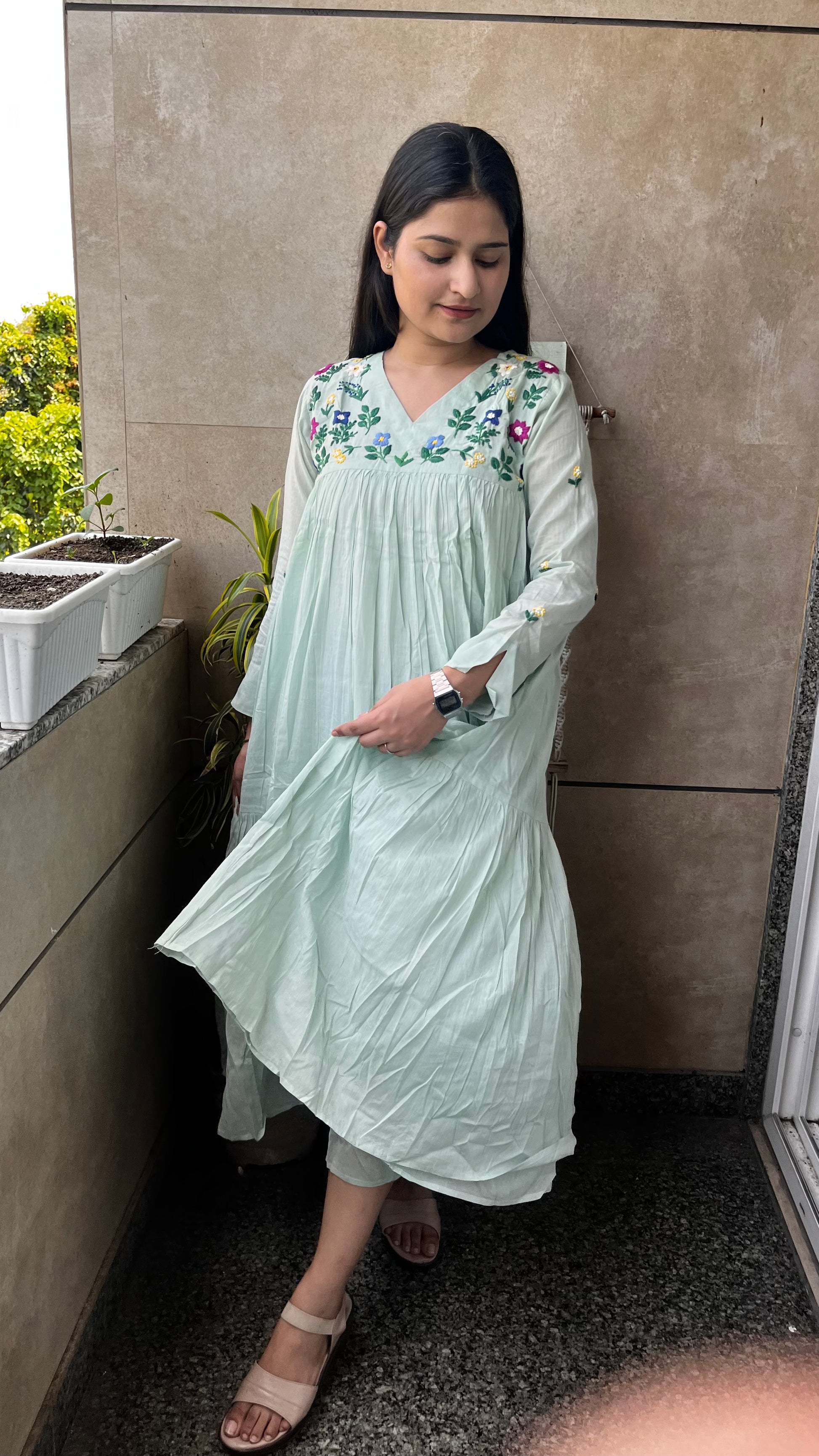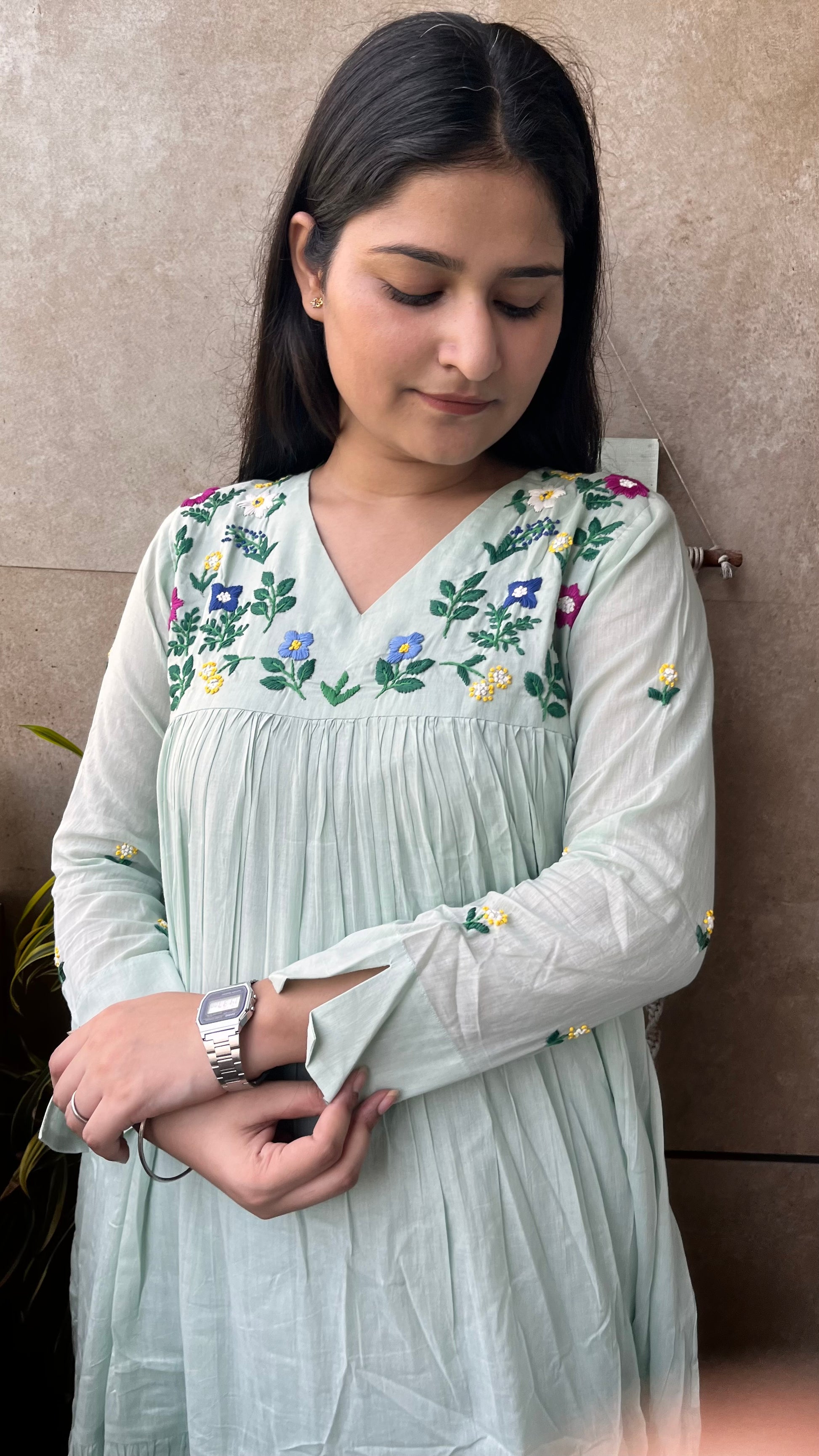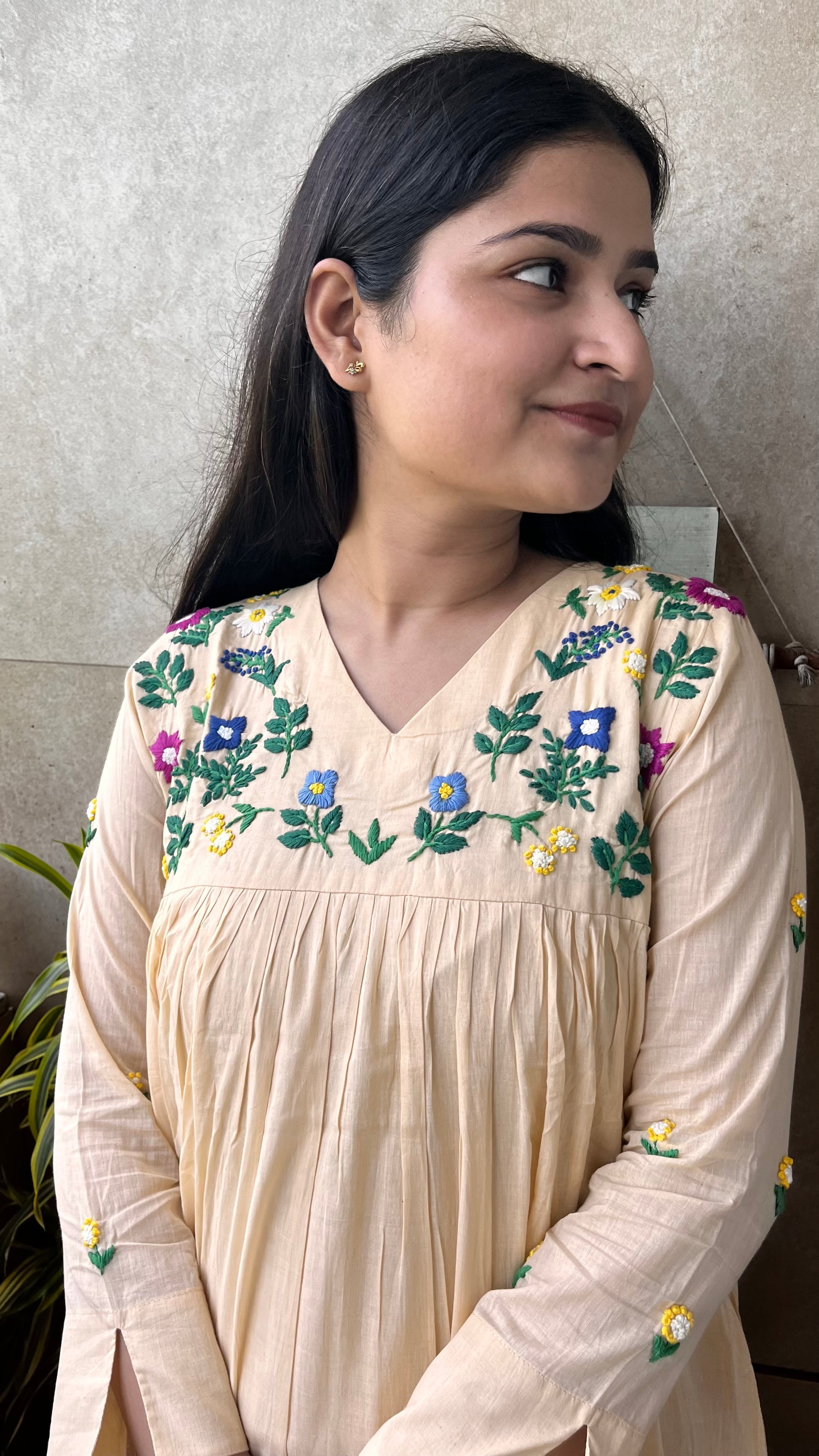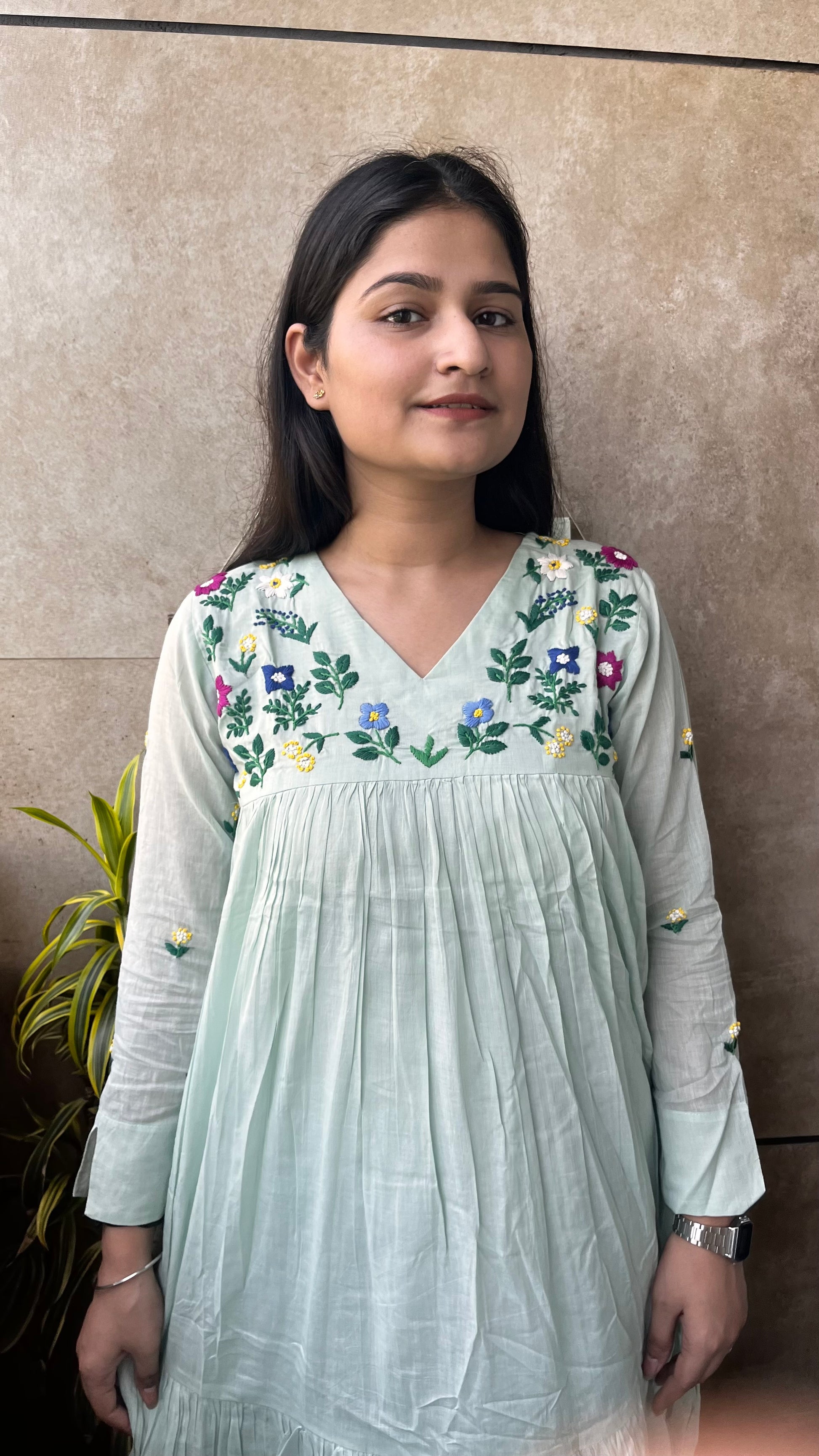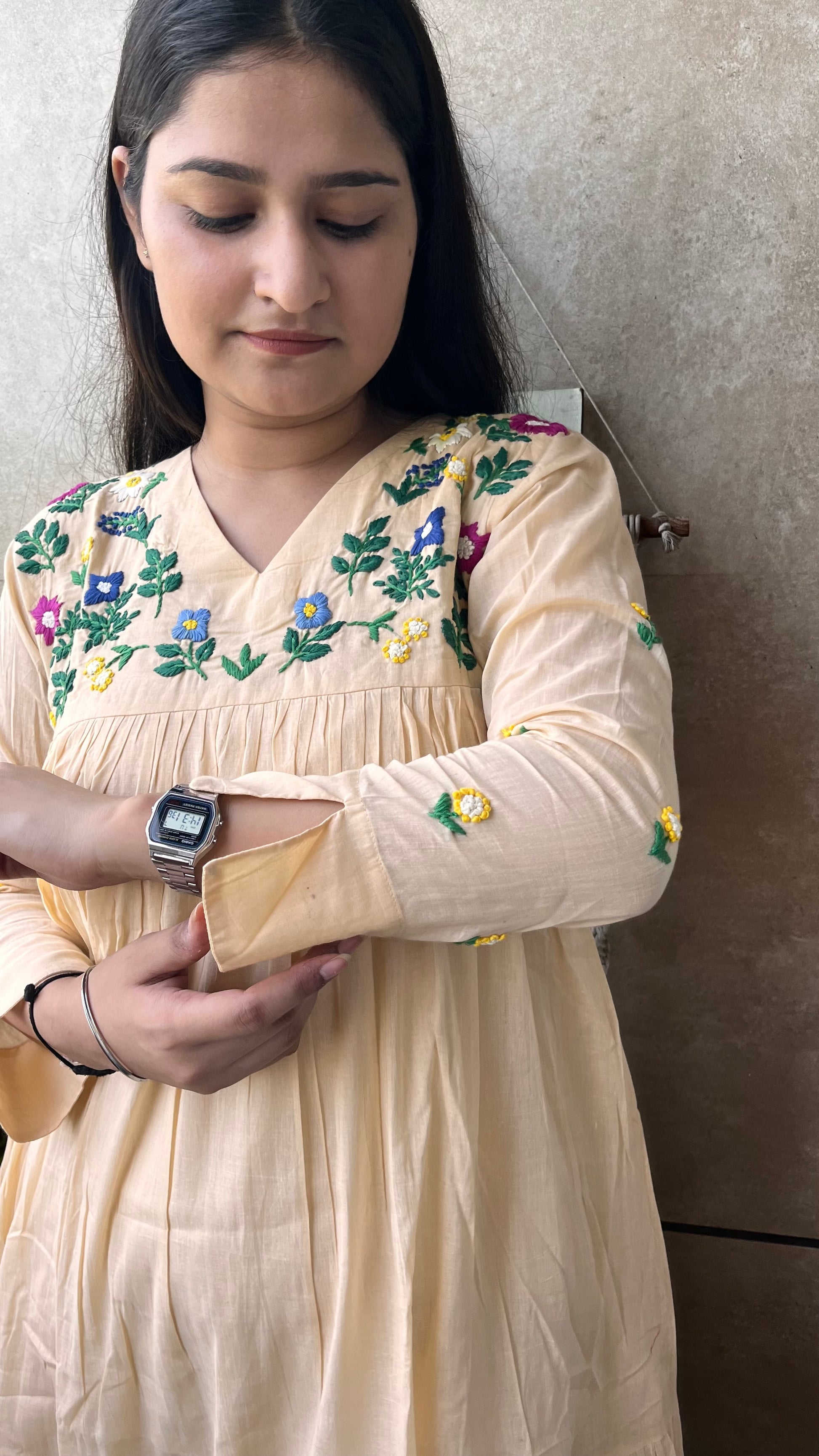 - The vibrant floral hand embroidery on the yoke and sleeves enhance its feminine charm, making it a perfect choice for casual outings or festive occasions