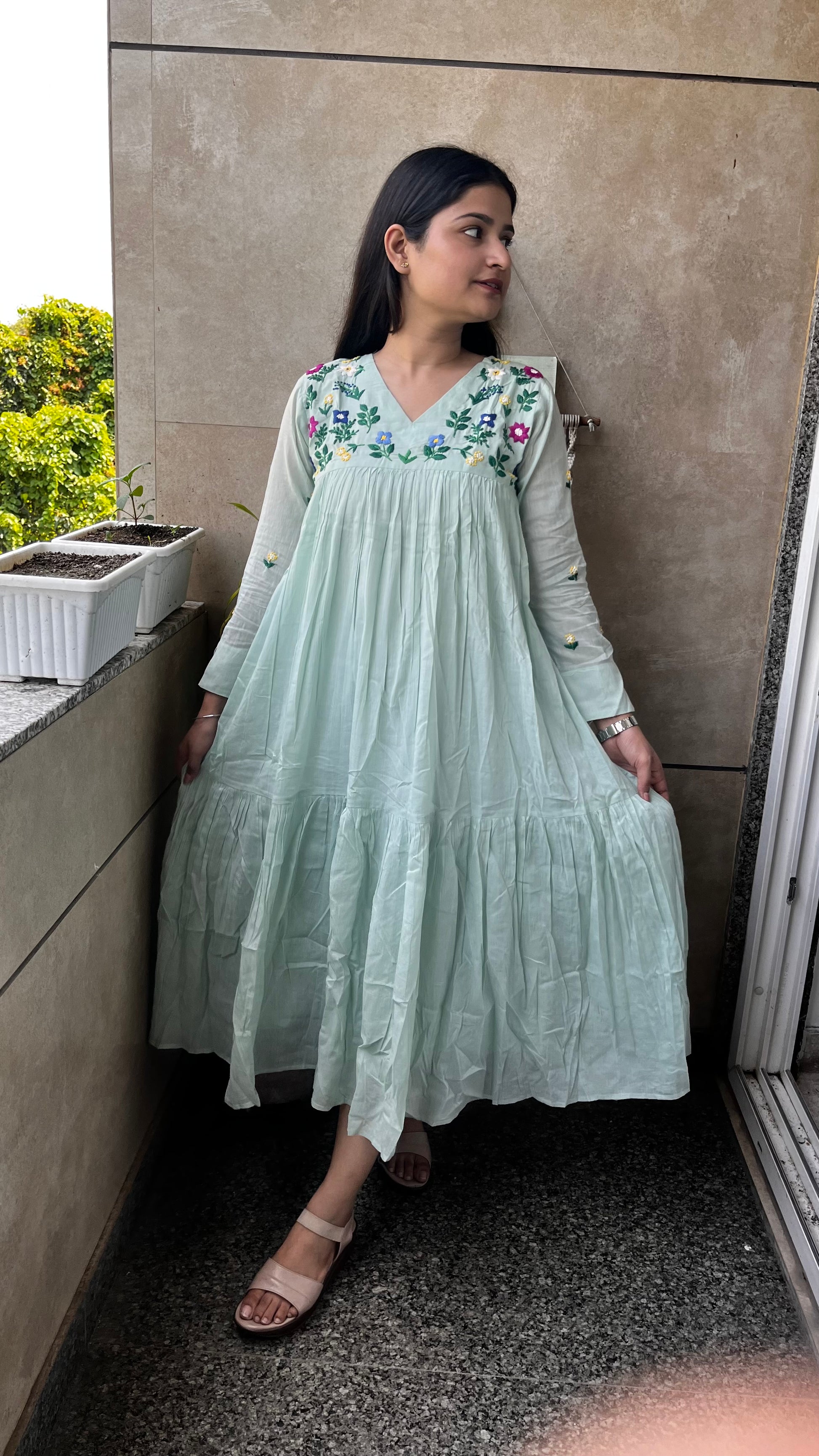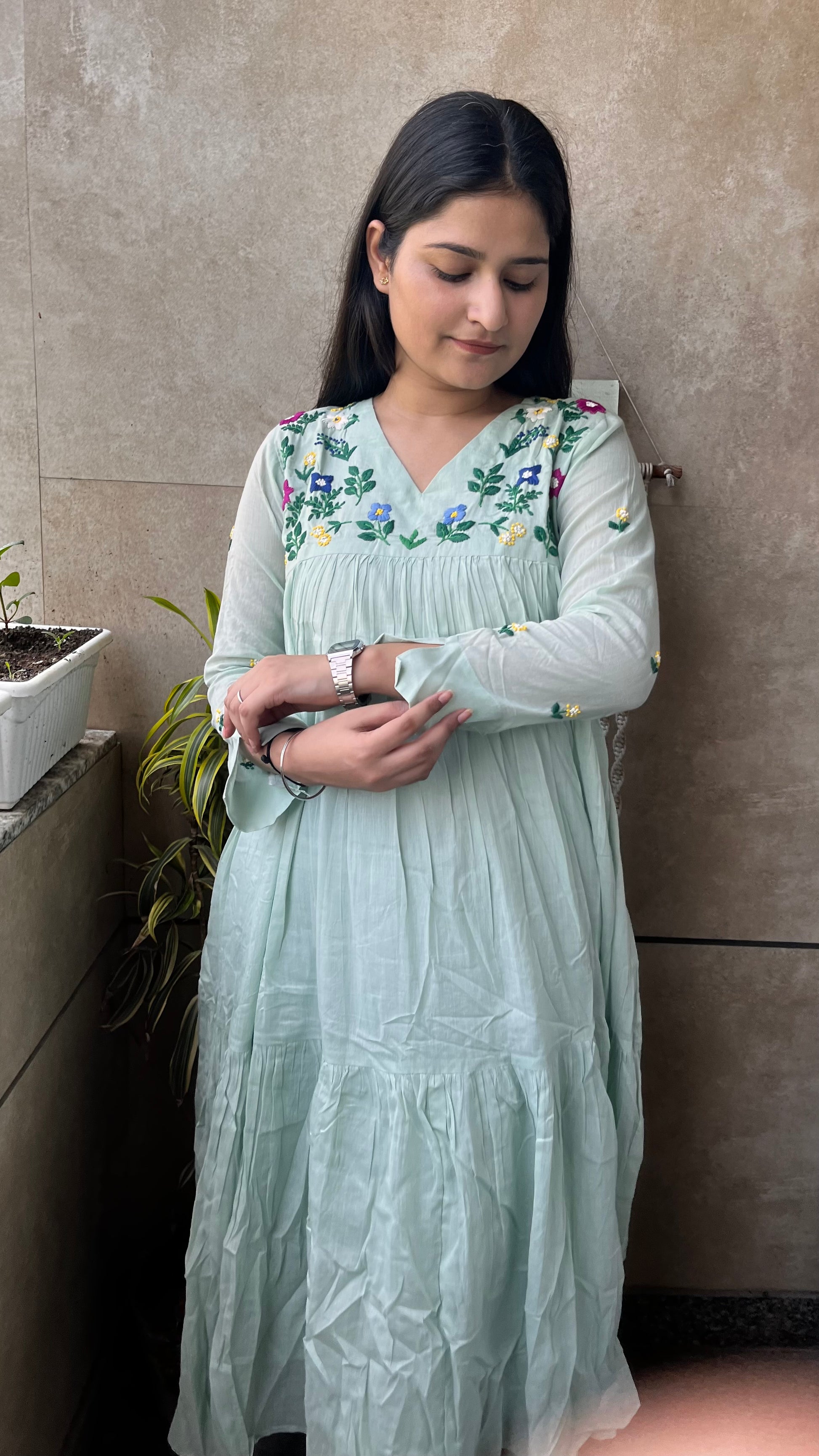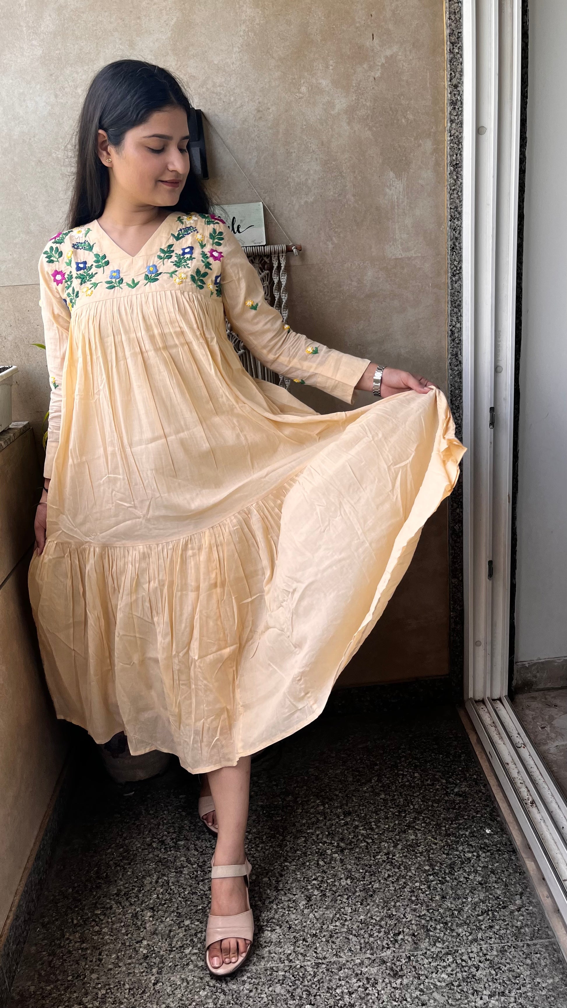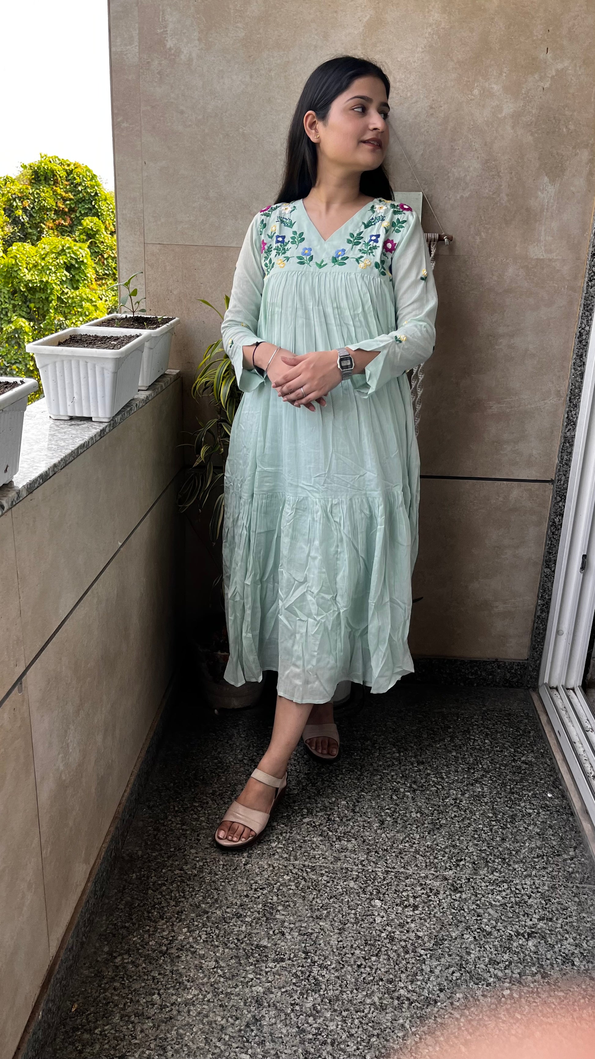 - The vibrant floral hand embroidery on the yoke and sleeves enhance its feminine charm, making it a perfect choice for casual outings or festive occasions