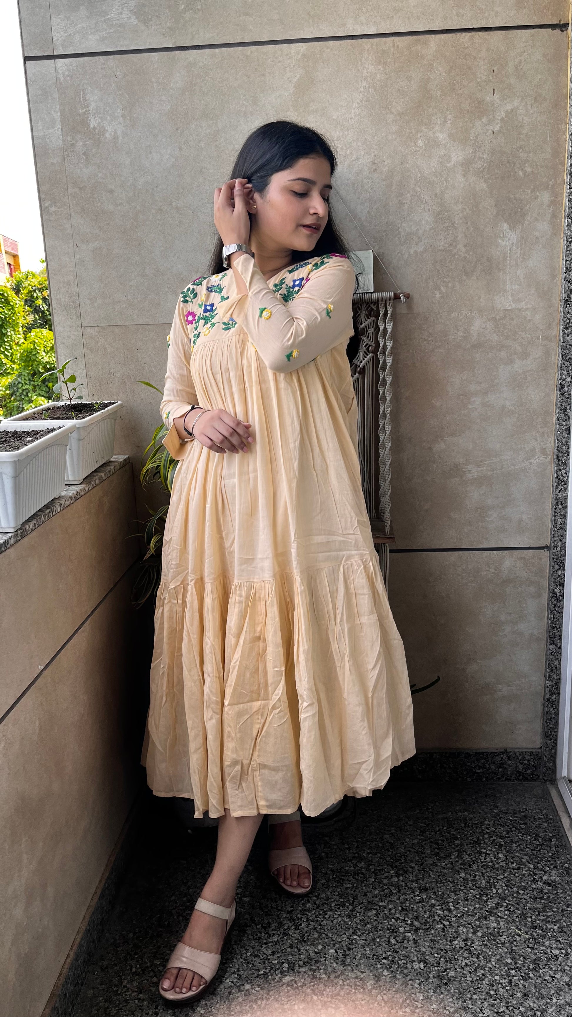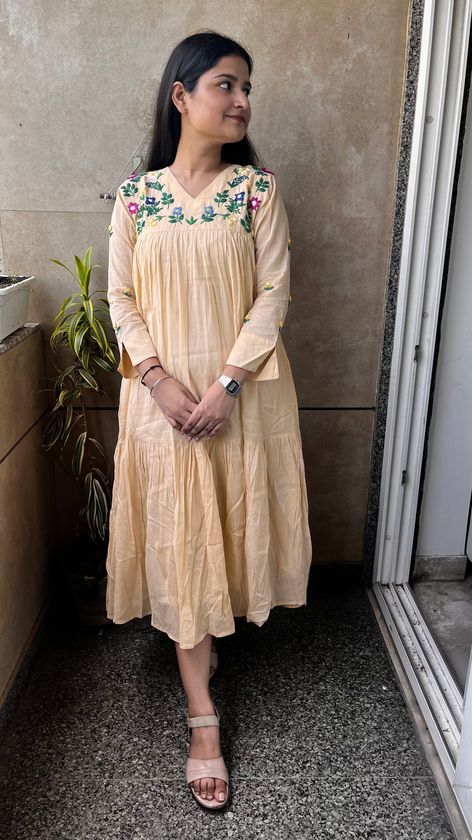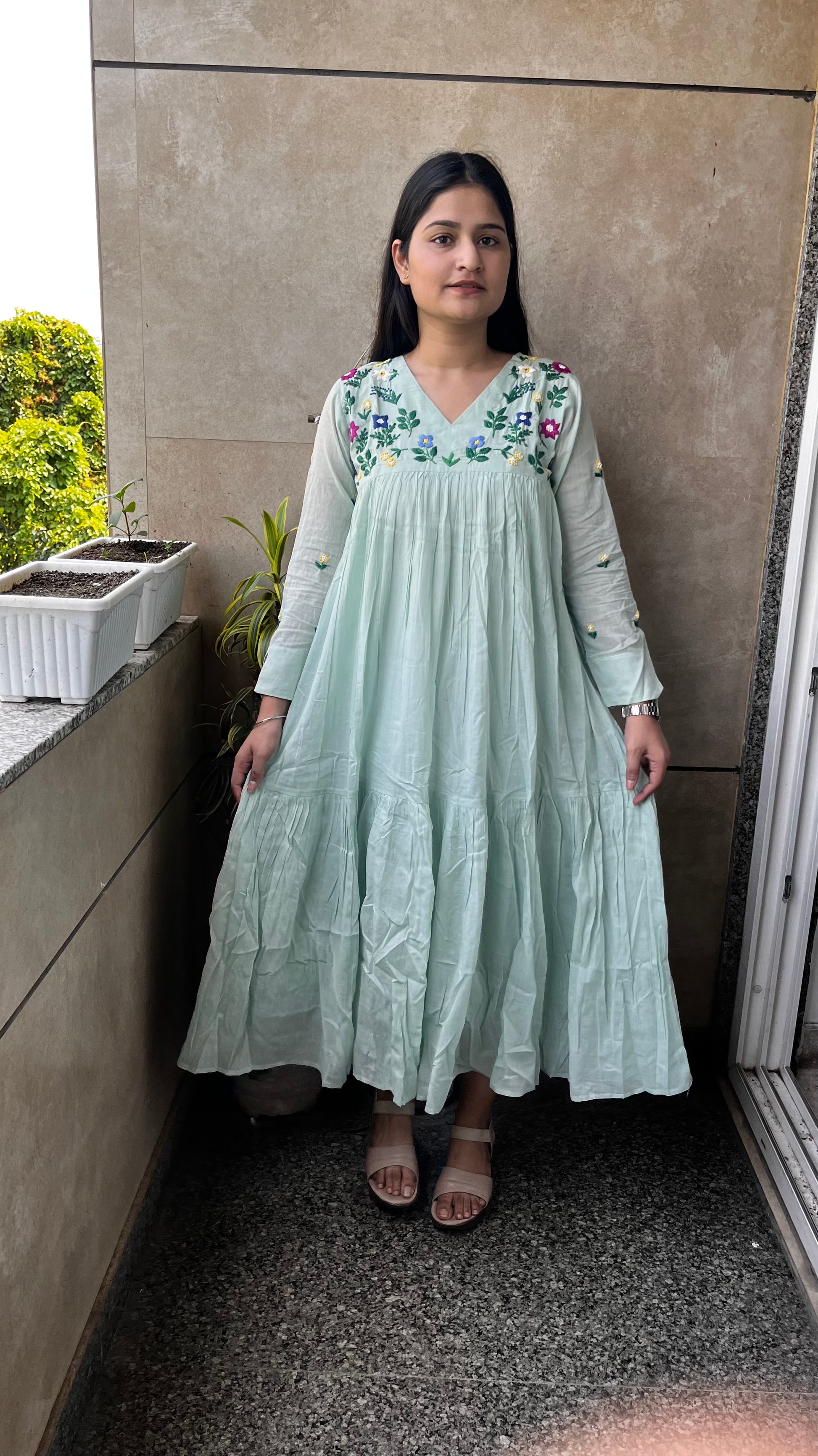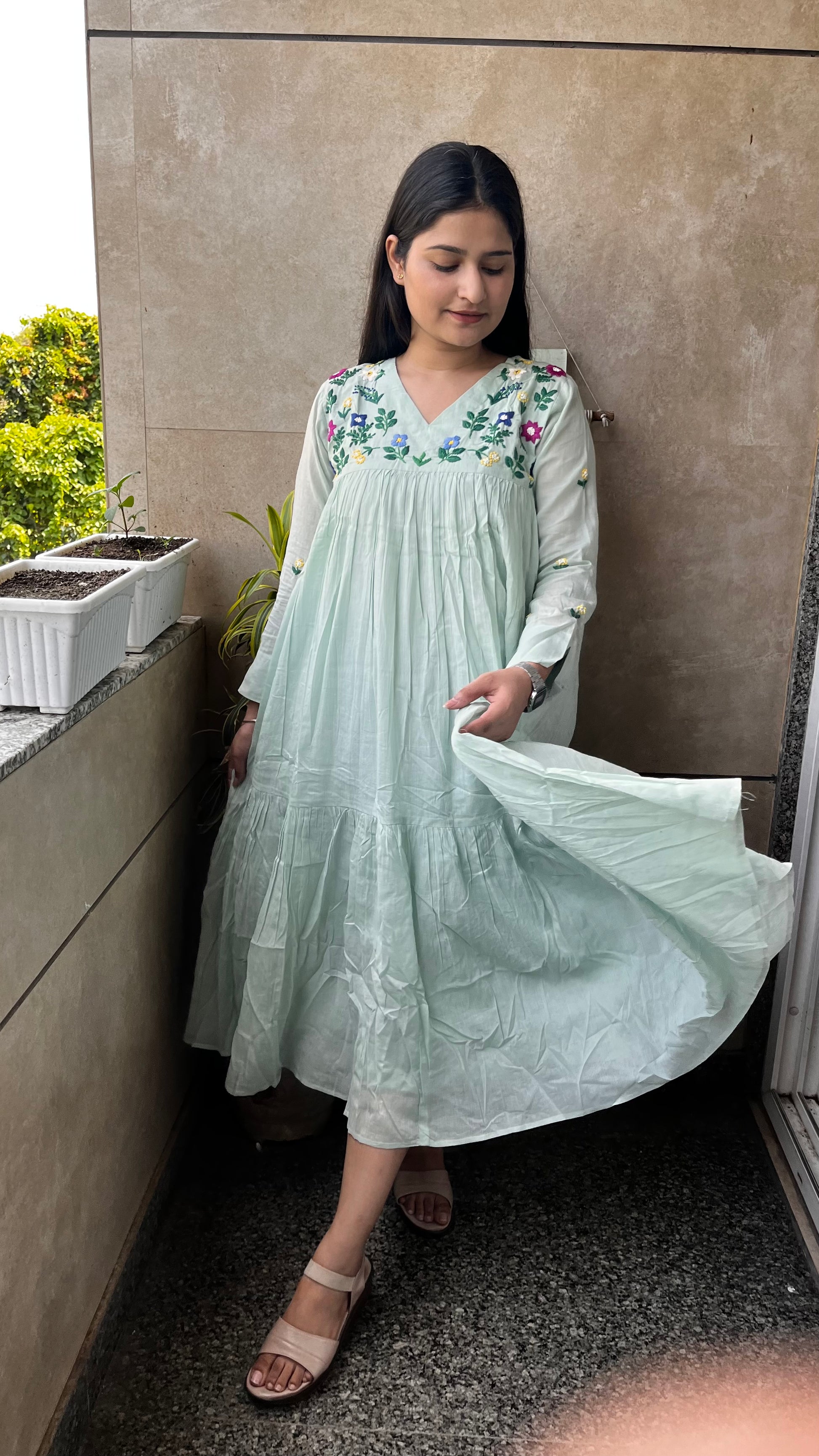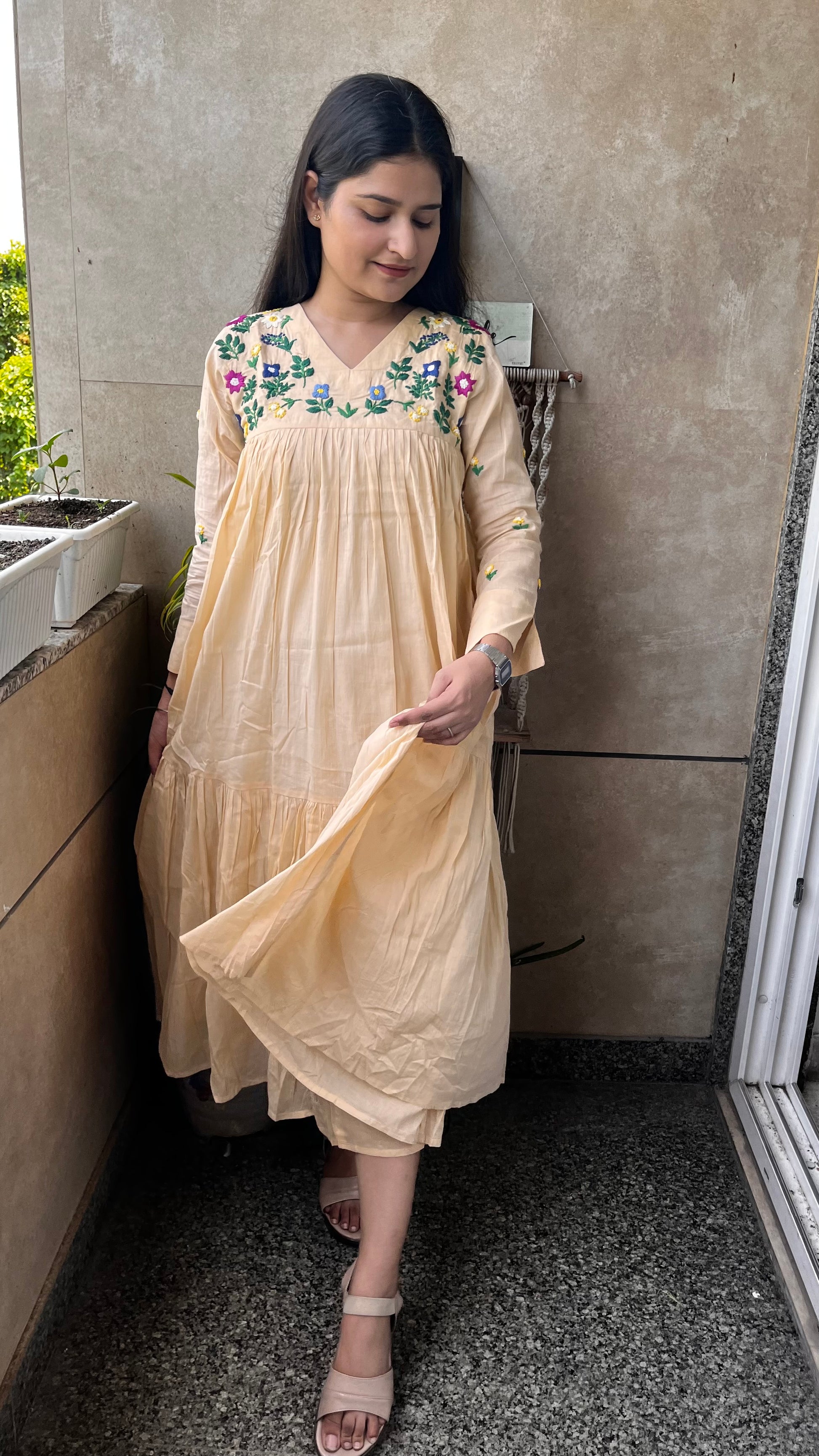 - The vibrant floral hand embroidery on the yoke and sleeves enhance its feminine charm, making it a perfect choice for casual outings or festive occasions