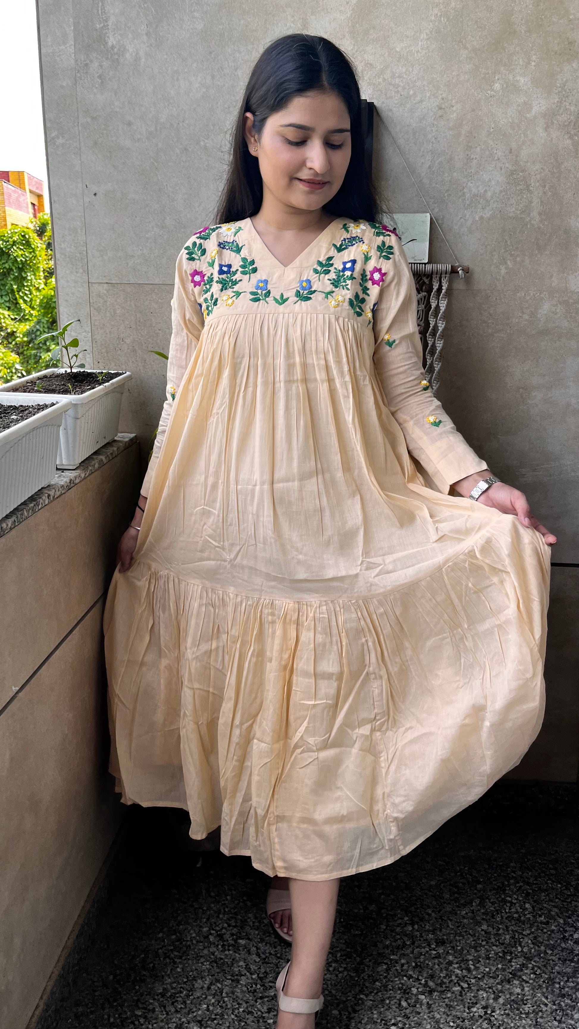 - This charming dress, made from pure mul mul cotton with an attached lining, boasts intricate hand embroidery.