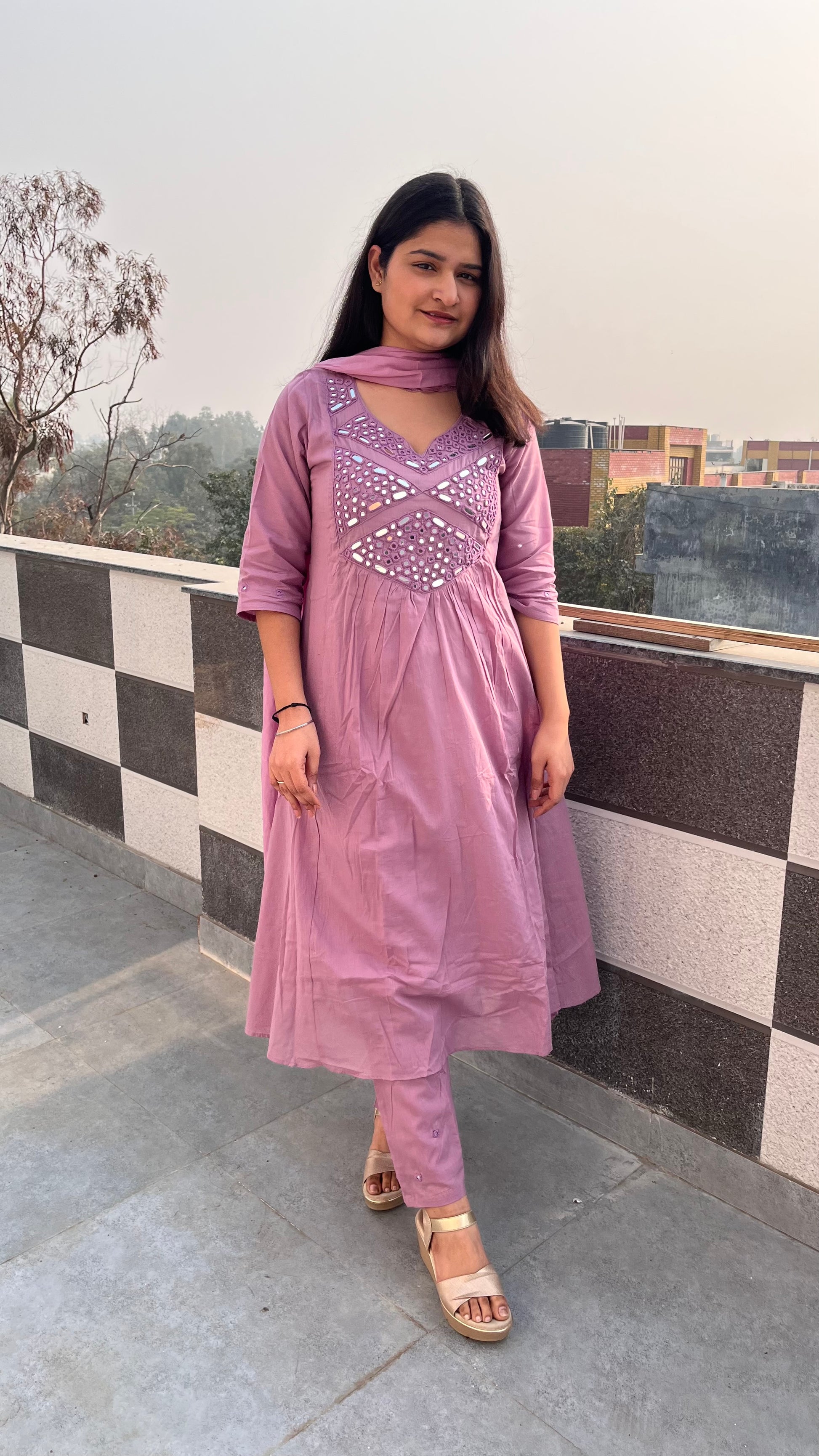 - It has a beautiful scalloped dupatta.