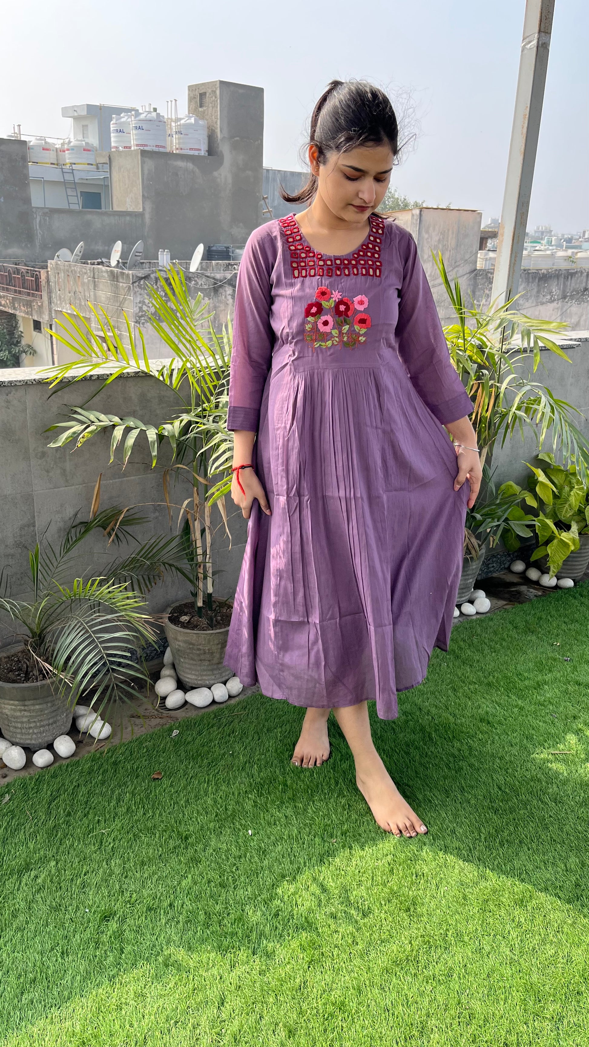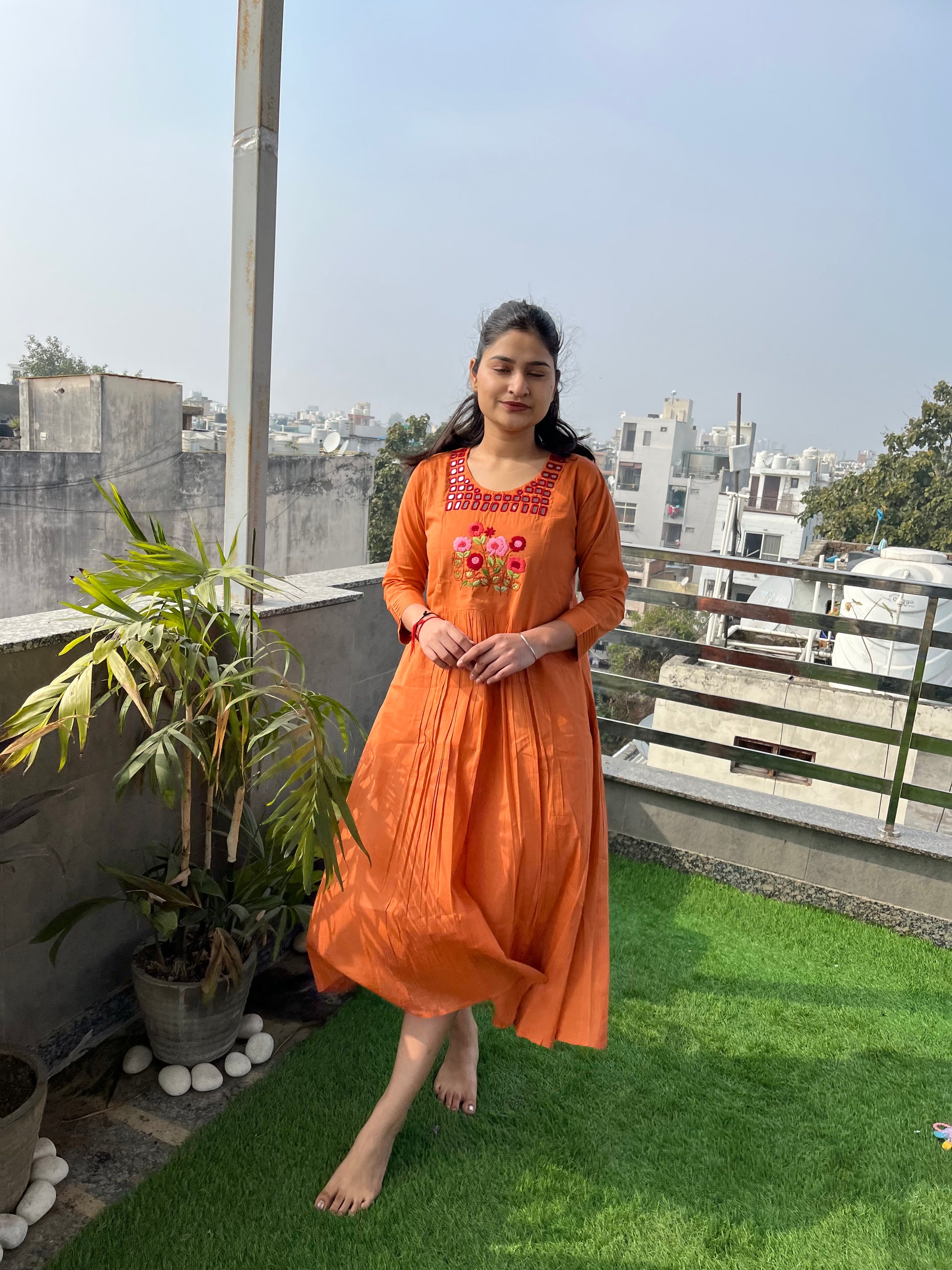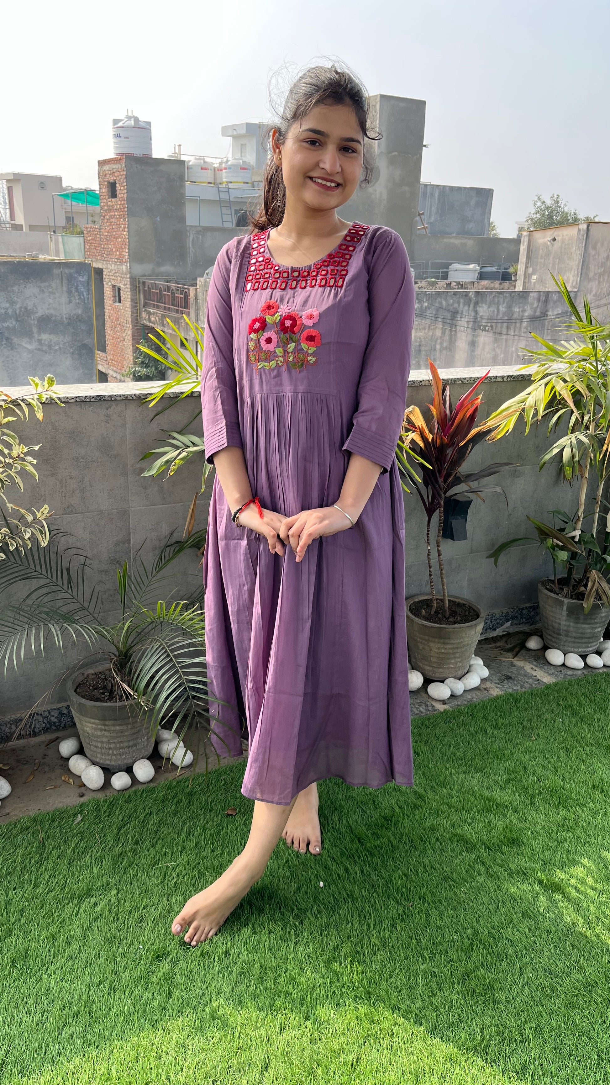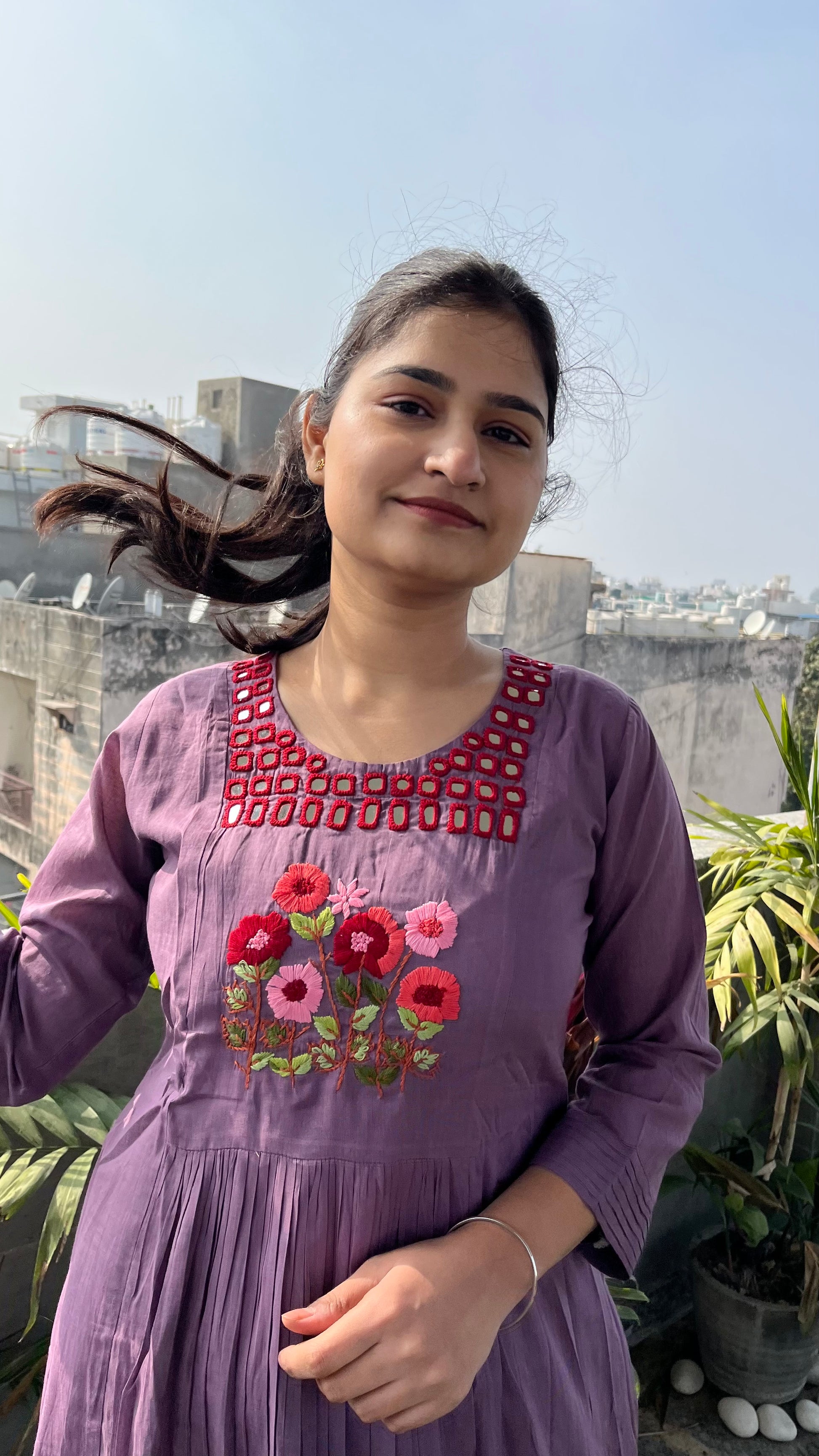 - The detailed hand embroidery with colorful floral patterns adds a touch of elegance, while the mirror work along the neckline enhances its festive charm.