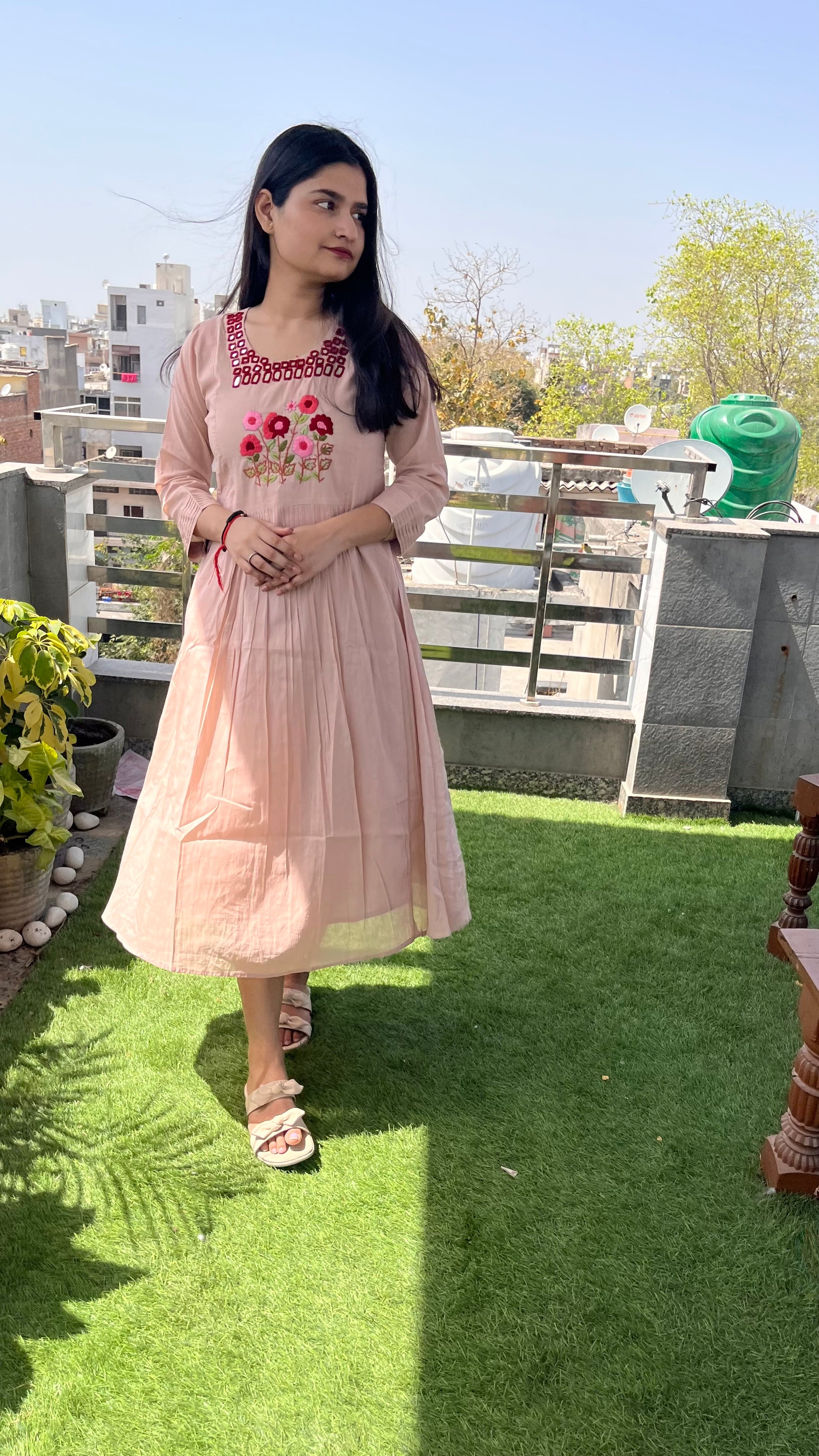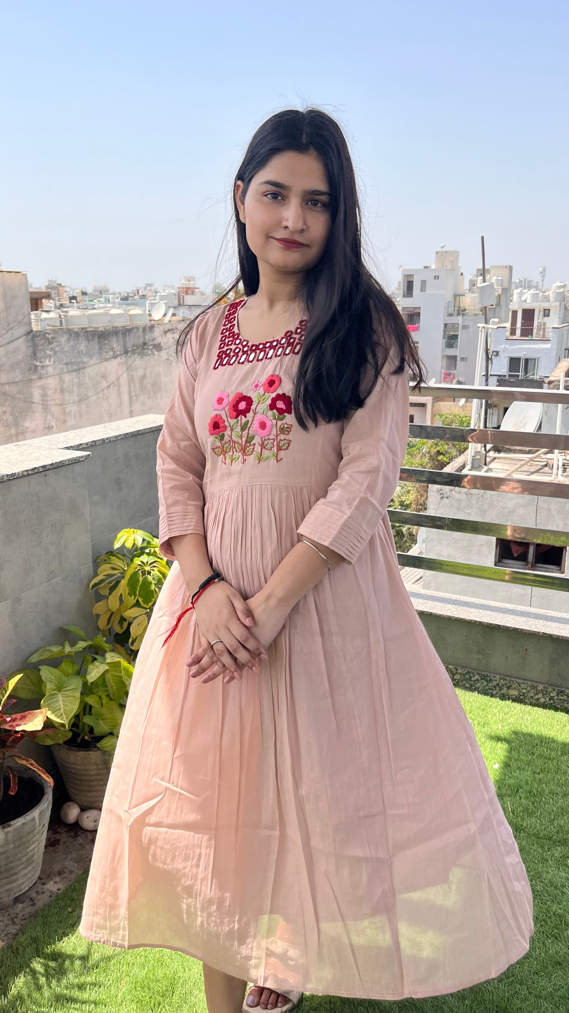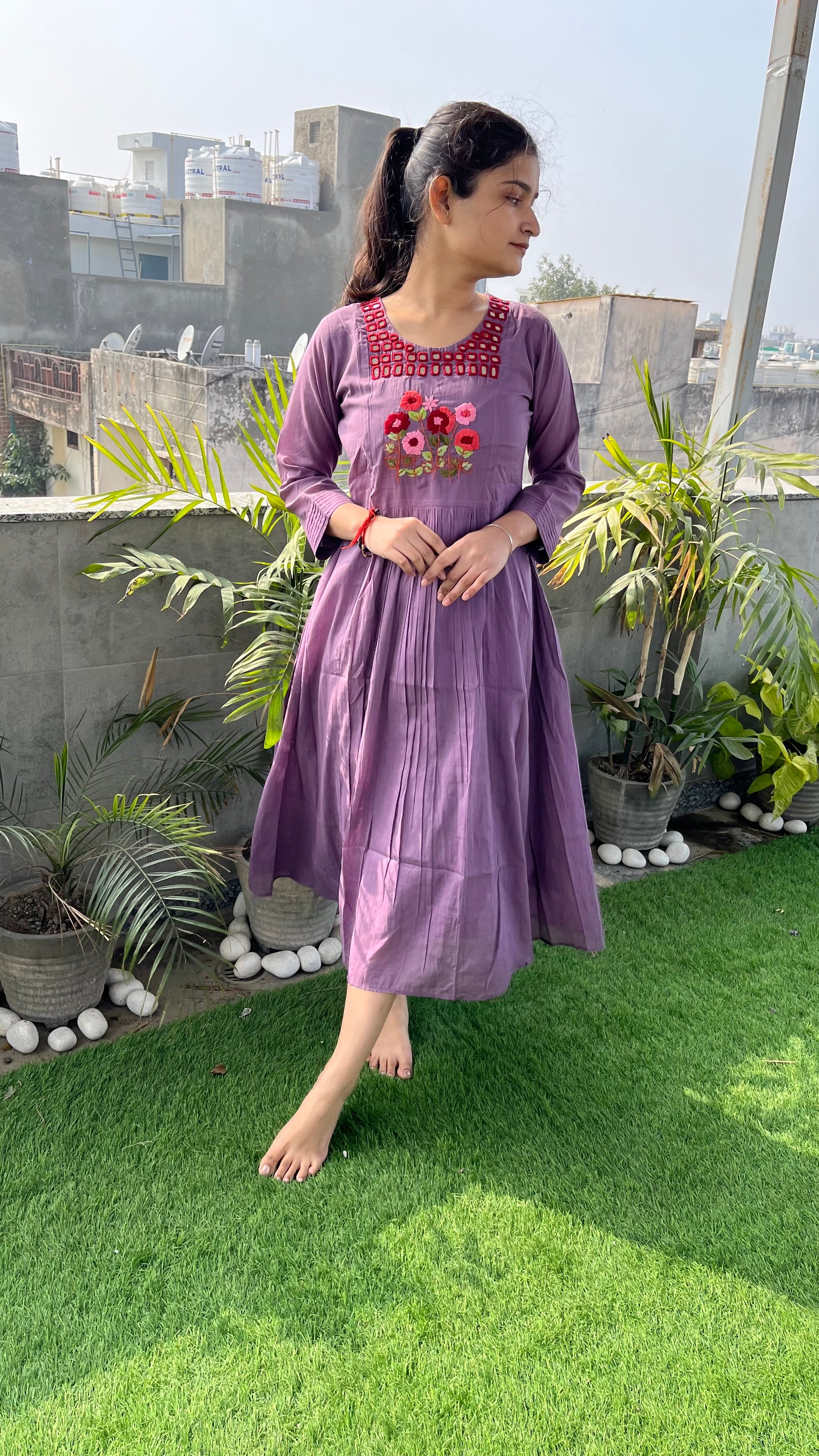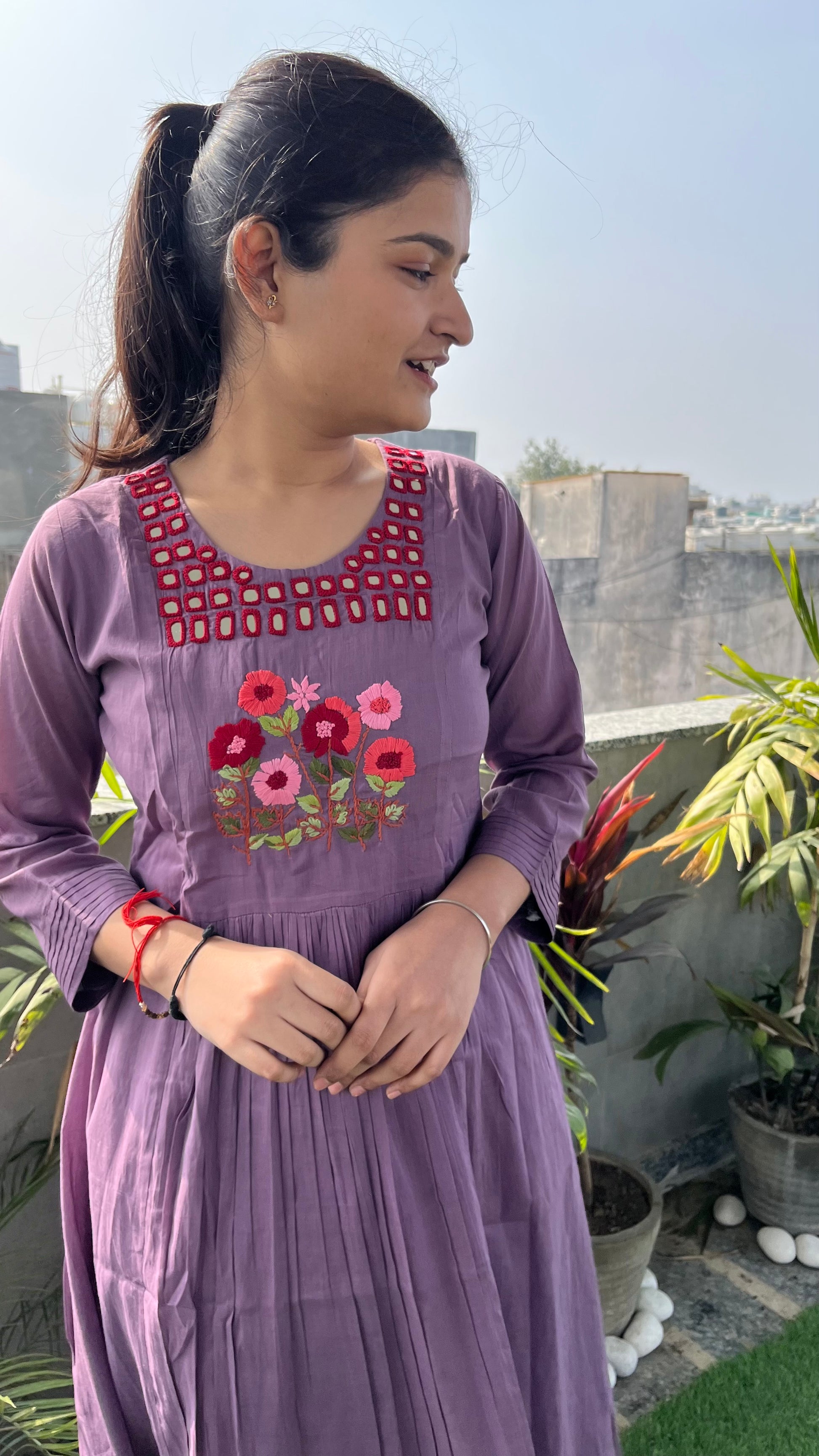 - The detailed hand embroidery with colorful floral patterns adds a touch of elegance, while the mirror work along the neckline enhances its festive charm.